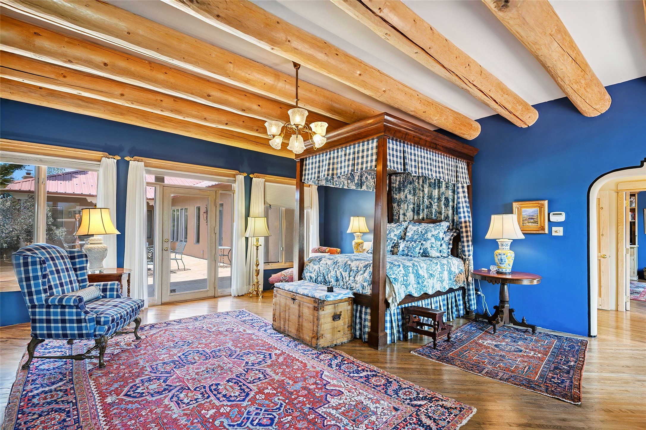 One of the most majestic estates in all of Santa Fe, this rare, exceptional compound impresses with TWO separate homes, (4) lots with 10+ acres total, (2) wells, a 3-stall barn and absolutely stunning Sangre Mountain views! This extraordinary estate excites and captivates with two impressive, separate homes, (6) garage spaces total, a stable with flexible use of space and some of the most magical and lush grounds found anywhere in Santa Fe, all within a 10-minute drive to the historic Santa Fe Plaza. The main house impresses with 4,919 square feet, inherent warmth and an expansive ranch-style porch which overlooks the fenced pastures and Sangre De Cristo Mountain views. The second home delights with 3,697 square and an open-concept design, ideal for large gatherings. This estate must be seen to fully appreciate the rarity of this land, the incredible homes and the opportunity to own one of the most iconic estates in all of Santa Fe.