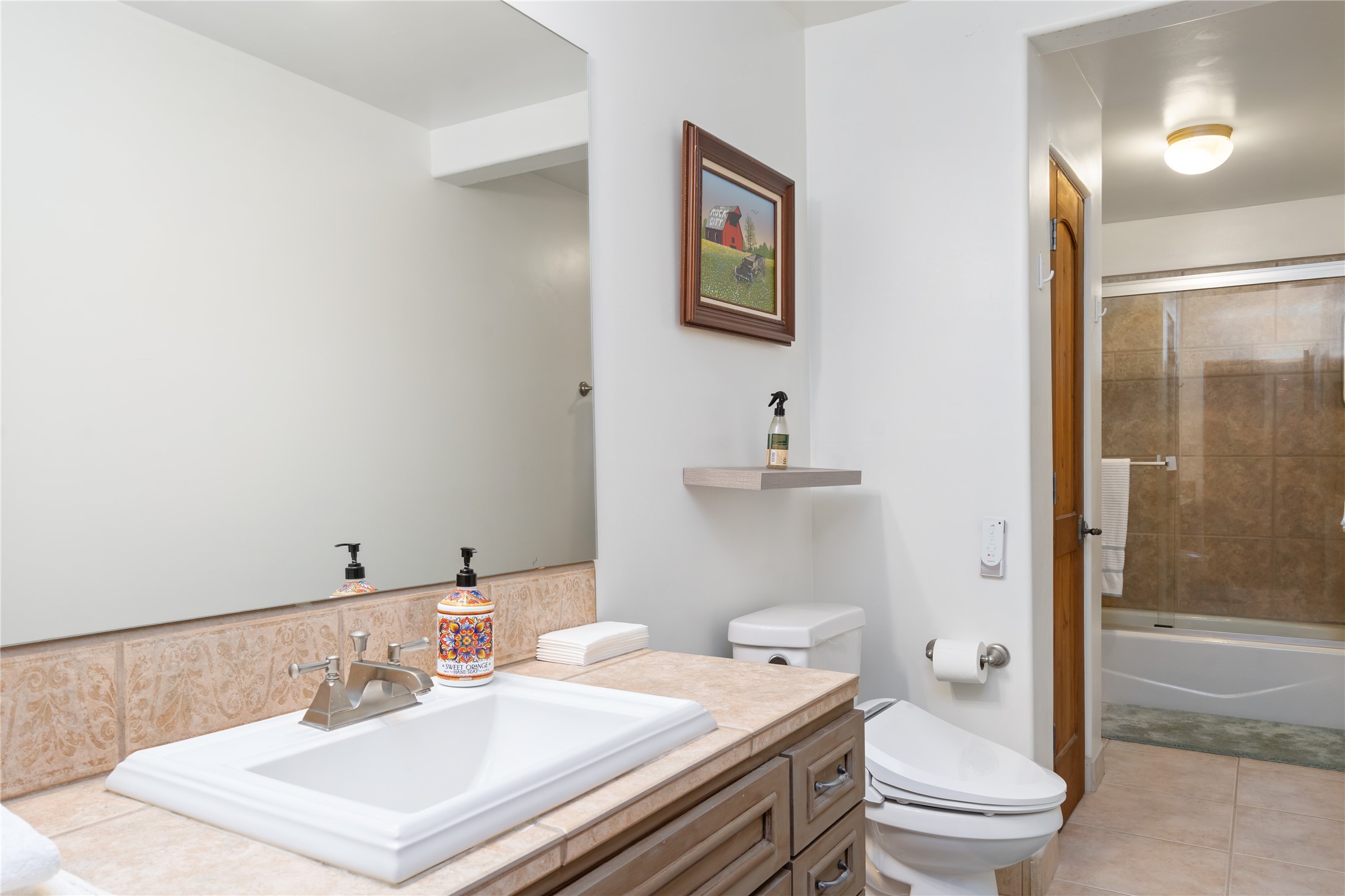 You'll love this custom Santa Fe home with a guest house that proves you can have both beauty and brains. Tucked away on a quiet cul-de-sac in the exclusive Village Estates of Rancho Viejo, this thoughtfully designed home blends smart living with timeless Santa Fe charm. Let's start with the brains: 23 owned solar panels creating electric bills under $10 a month. There's a whole-house water filtration/softener system, a hot water recirculating pump on an Alexa plug, a remotely operated irrigation system, and more. As for the beauty: an inviting new kitchen designed for gathering and gourmet cooking takes center stage in the one-level main house. You'll enjoy generous living and dining areas, a private primary suite with a kiva fireplace, dual custom closets, and a remodeled en suite bath with spa-like finishes. Two guest bedrooms share a full bath, and there's a bright office plus a powder room with a shower--perfect for overnight guests. The living room has a gas fireplace, and there's also a convenient utility room with extensive storage.Step outside to a welcoming patio accessible from the living room or primary suite. Downstairs, a stylish guest house has its own entrance, living space, bedroom, modern kitchen, full bath, and a walk-out covered patio with an outdoor kitchen--perfect for long-term guests or multi-generational living.Enjoy unobstructed views of the Ortiz and Sandia Mountains, or wake up to the sunrise over the Sangre de Cristos. Whether it's morning coffee or sunset cocktails, the patios are the perfect place to soak it all in. Situated on 1.25 acres and backing up to a dedicated greenbelt, the property offers privacy and space. And yes, there's an oversized 3-car garage.When you're ready to explore, Rancho Viejo offers over 12 miles of scenic walking and biking trails--perfect for a morning stroll, evening ride, or spontaneous dog walk. The neighborhood is designed to keep you connected--to nature and to community.