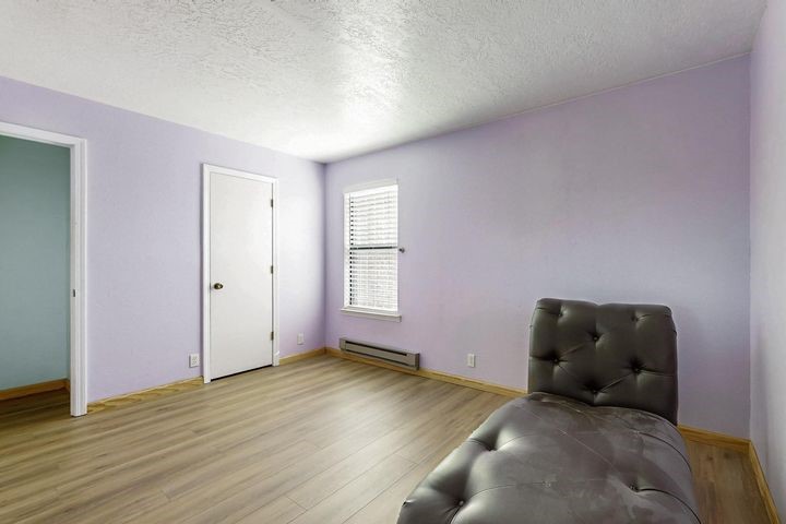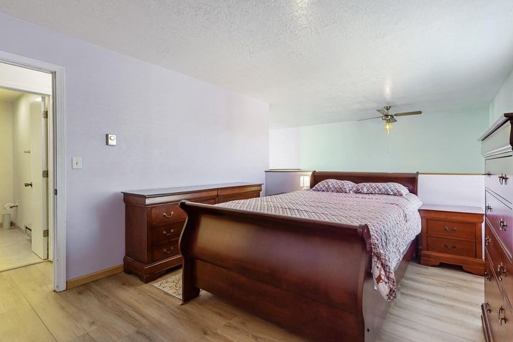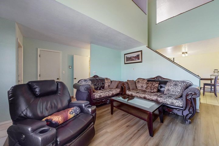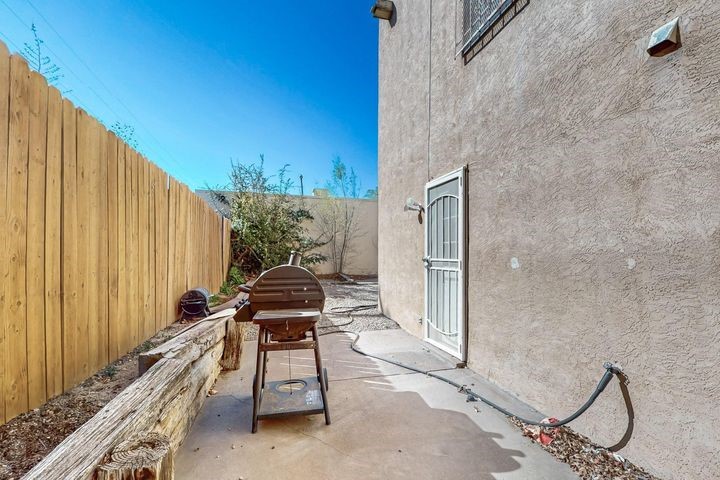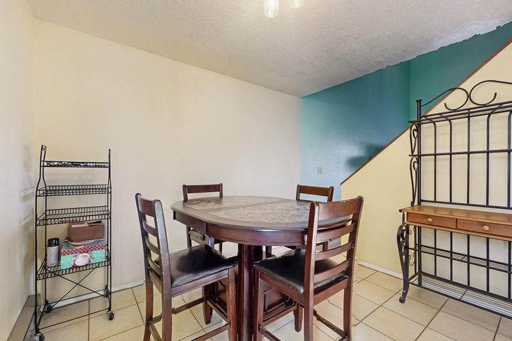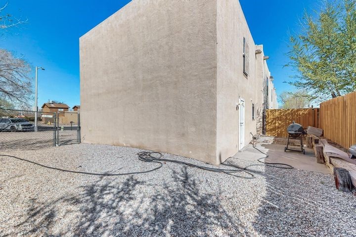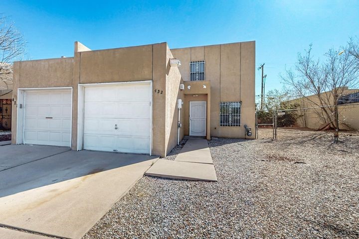 Great opportunity with this charming 2-story townhome with a prime location near Kirtland Air Force Base and Sandia Labs. This charming residence features a thoughtfully designed open-flowing floor plan that maximizes space and functionality, creating a welcoming ambiance with high ceilings, two spacious bedrooms and an oversized one-car garage. The sun-filled kitchen offers a breakfast bar and nook, baseboards, and evaporative cooling. The house is on a large corner lot, providing extra space for gatherings and the potential for backyard access. Convenient location and close to stores and restaurants. DON'T MISS THIS AMAZING OPPORTUNITY!!!