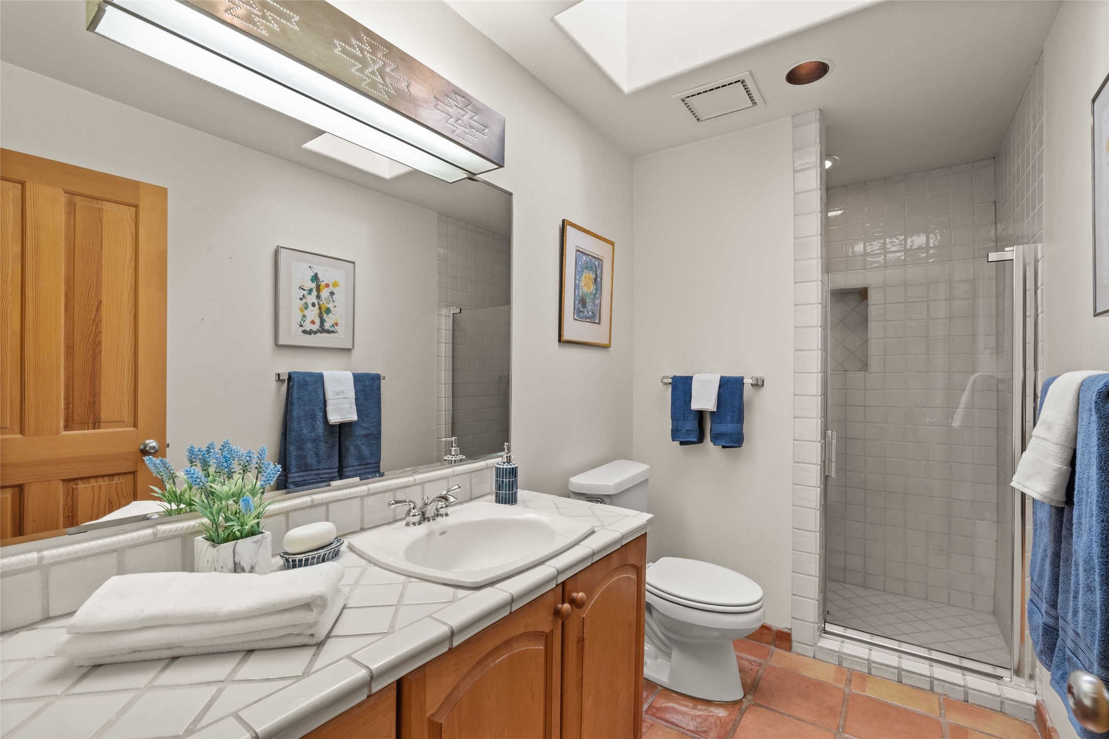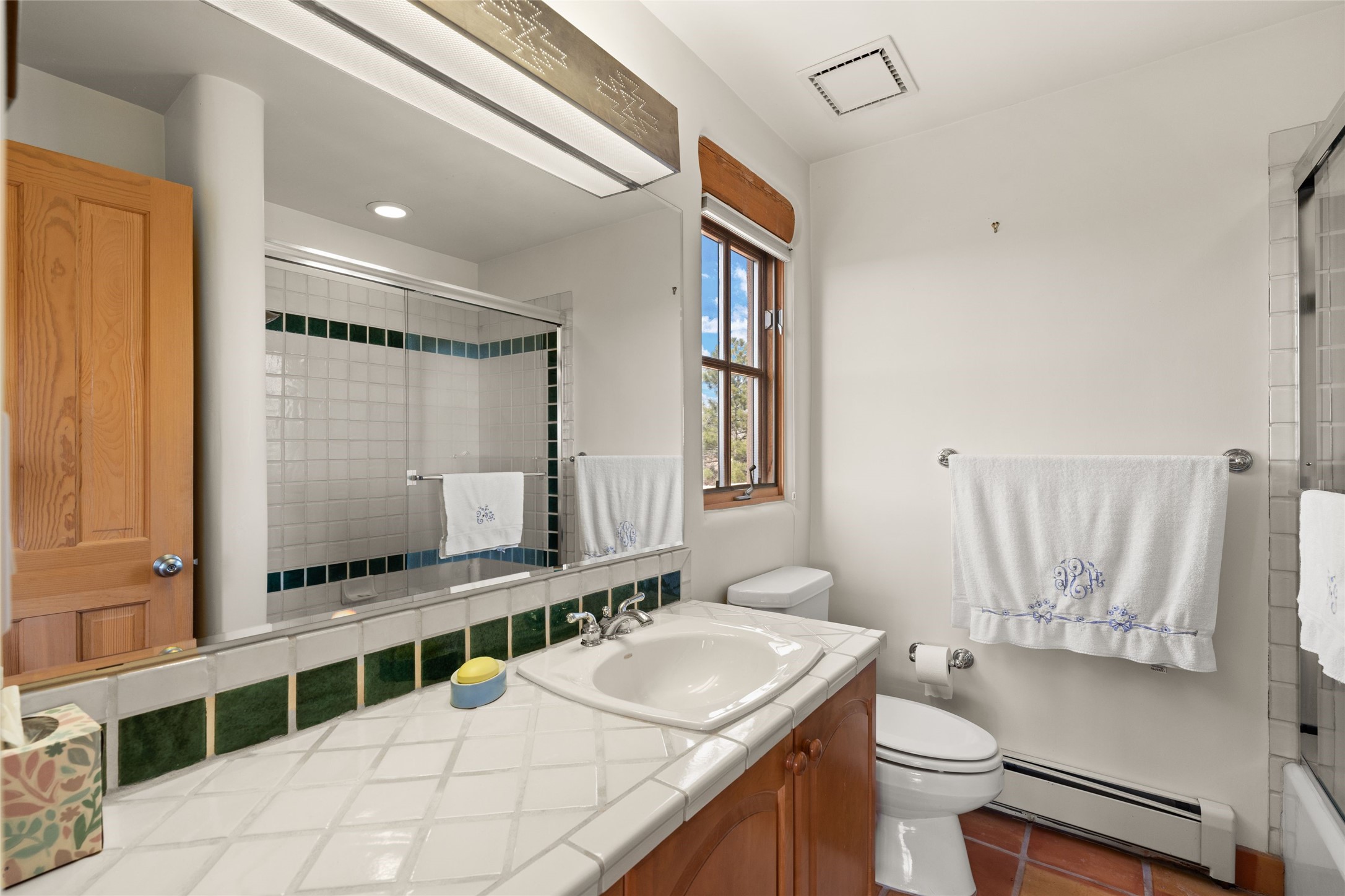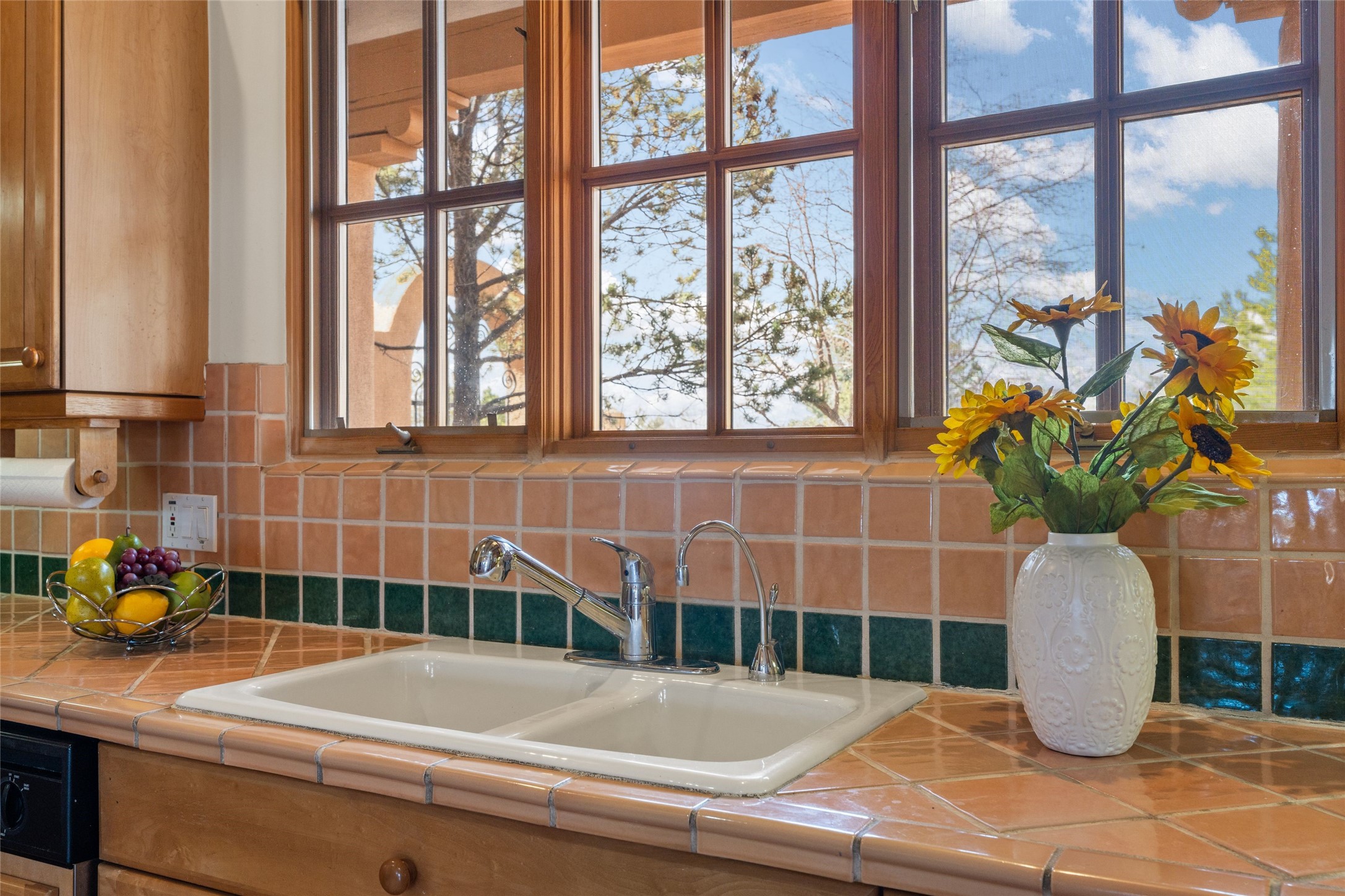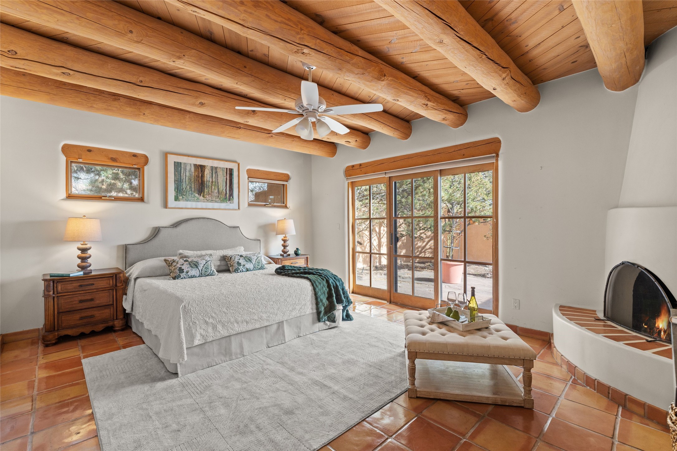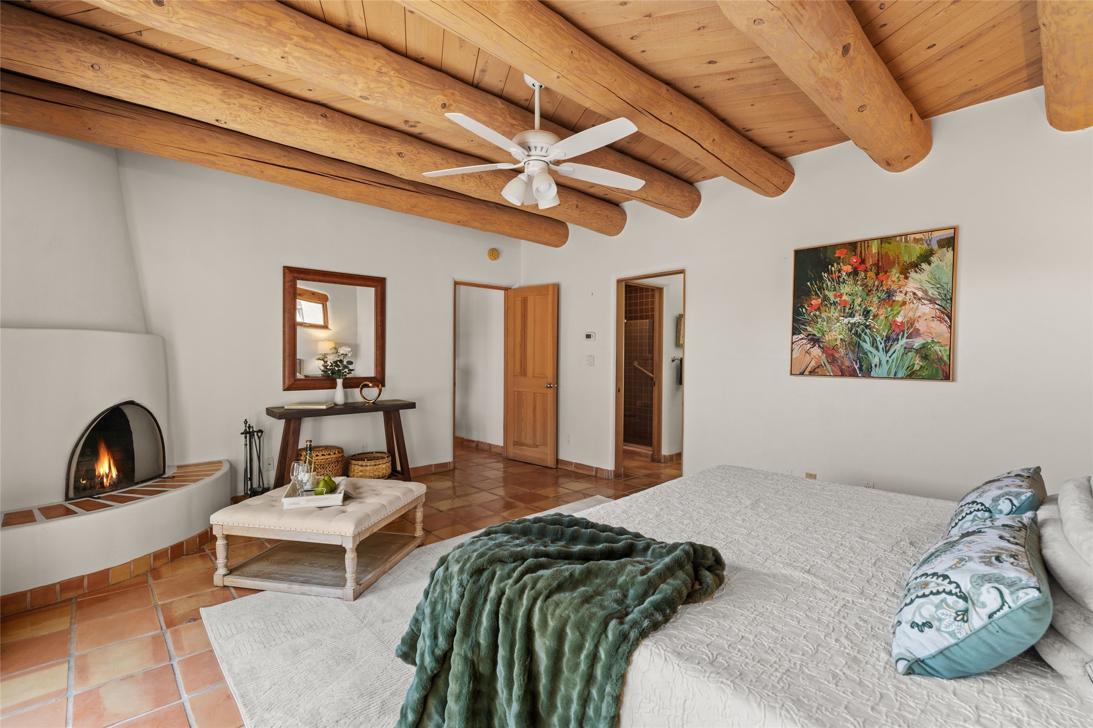 Classic Quail Run Pinon D floorplan featuring Santa Fe Style, great separation of bedrooms and timeless craftsmanship with ample sized rooms, a large kitchen and bright open living room. A serene and flowing space that allows for comfortable indoor living while showcasing spacious terraces that will beckon you outdoors. Tall portal with vigas offers views of the golf course, mountains and those famous Santa Fe skies. The gardens feature 30 specimen roses. This oversized outdoor space is ideal for entertaining. Upstairs there is a large sun flooded room that can be used as a bedroom or study. It includes an adjoining bathroom and outdoor deck with expansive scenery. Quintessential style that embodies Santa Fe beauty on the inside and out. If you are looking for a fabulous community with 24 hour hosted security and countless amenities as well as social clubs and gatherings, this is your next home! Ownership includes access to a state of the art gym, pool/spa, tennis/pickleball courts, golf, fitness classes and much more; come and see!