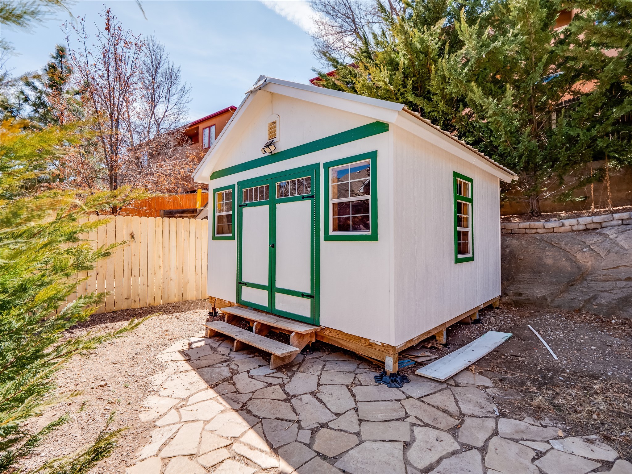 Beautiful two-story condo in the desirable N Community neighborhood. Offering both comfort and convenience, this home features a low-maintenance front yard with mature shrubs and trees. Step up into the entryway and head left to the open Great Room layout, where you'll find a cozy, carpeted living room with a gas fireplace serving as the focal point. A deep storage closet adds functionality to this space. Adjacent to the living room is the kitchen, featuring travertine tile flooring, an abundance of rich wood cabinetry adorned with granite counters, and a stylish tile backsplash in select areas. Stainless steel appliances enhance the kitchen's modern appeal, while the large center island, perfect for bar seating, overlooks the living room, making it ideal for both everyday living and entertaining. Off the kitchen, the dining space is bright and airy, with sliding glass doors that lead to the backyard, seamlessly blending indoor and outdoor living. This level also includes a convenient powder room and access to the attached two-car garage. Upstairs, plush carpeting extends throughout the three generously sized guest bedrooms, each equipped with individual mini-split heating and air conditioning units for personalized comfort. The guest bath with tile flooring, a double sink vanity, and a tiled shower/tub combination. The spacious primary en-suite boasts vaulted ceilings, double closets, and a spa-like bathroom with a double sink vanity, tile flooring, a deep soaking tub, and a tiled walk-in shower enclosed with glass doors. For added convenience, the laundry room is also located on this floor. Outside the fabulous fenced-in backyard has a turf lawn, a large patio perfect for outdoor gatherings, and beautiful landscaping that enhances the space. A storage shed has been thoughtfully transformed into a workshop. This wonderful home is ideally located near parks, schools, and Trails. Come see this place for yourself and experience all that it has to offer!