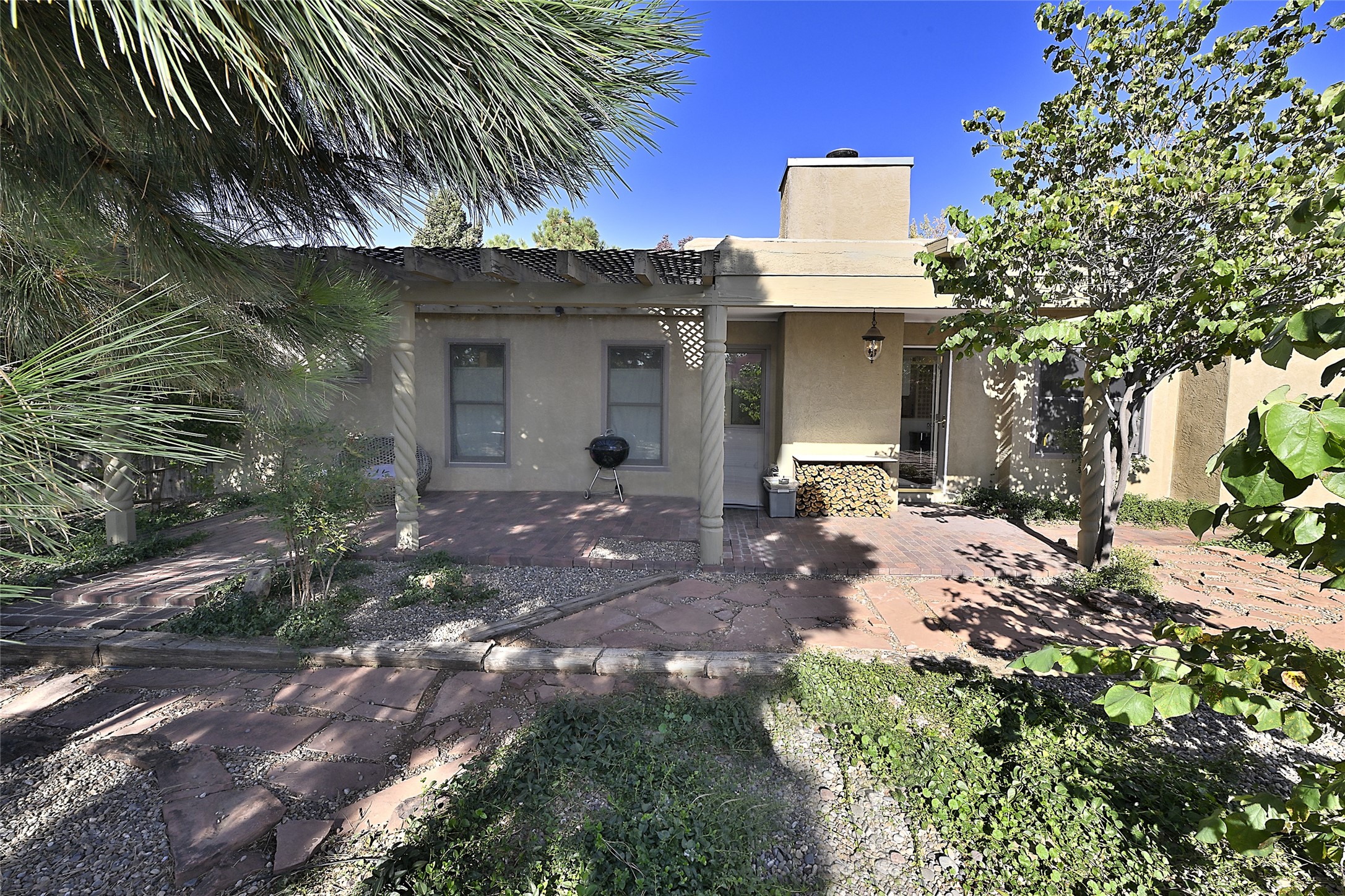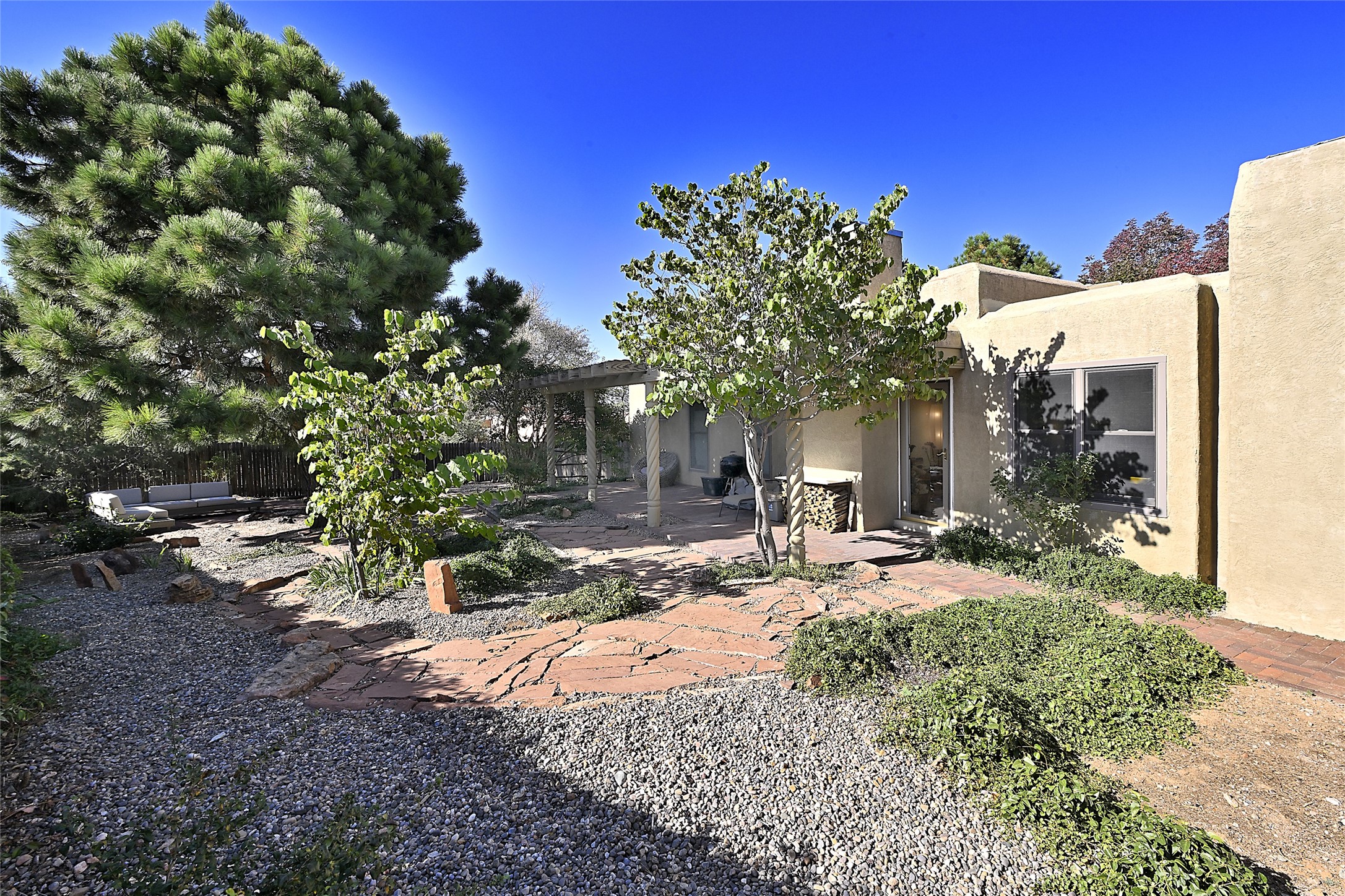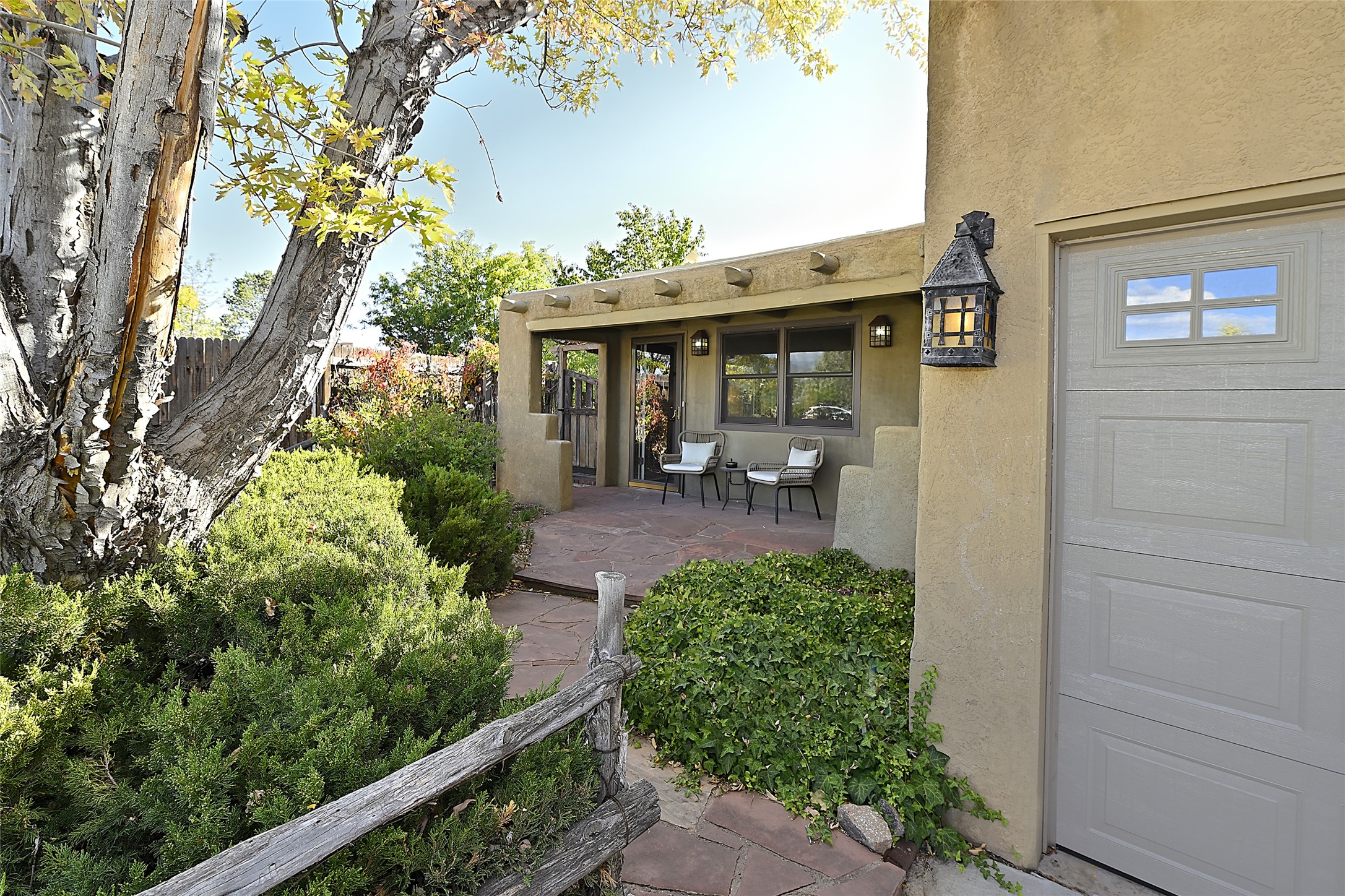 Live the Santa Fe lifestyle in this warm and inviting Southwestern retreat. Located near schools, shopping, the Rail Trail, and just a straight shot from the new Midtown development, this home offers both charm and convenience. Classic details include exposed viga and latilla ceilings, kiva fireplaces, and inviting living spaces that flow to a landscaped backyard with a pergola-covered patio perfect for entertaining or relaxing it also sets the stage for al fresco dining, morning coffee, or evening gatherings under the stars.The front patio captures beautiful mountain views, giving you a peaceful place to pause and take in the beauty of Santa Fe. Whether you're looking for a full-time residence or a getaway in the heart of Northern New Mexico, this home offers a perfect balance of location, comfort, and Santa Fe charm.