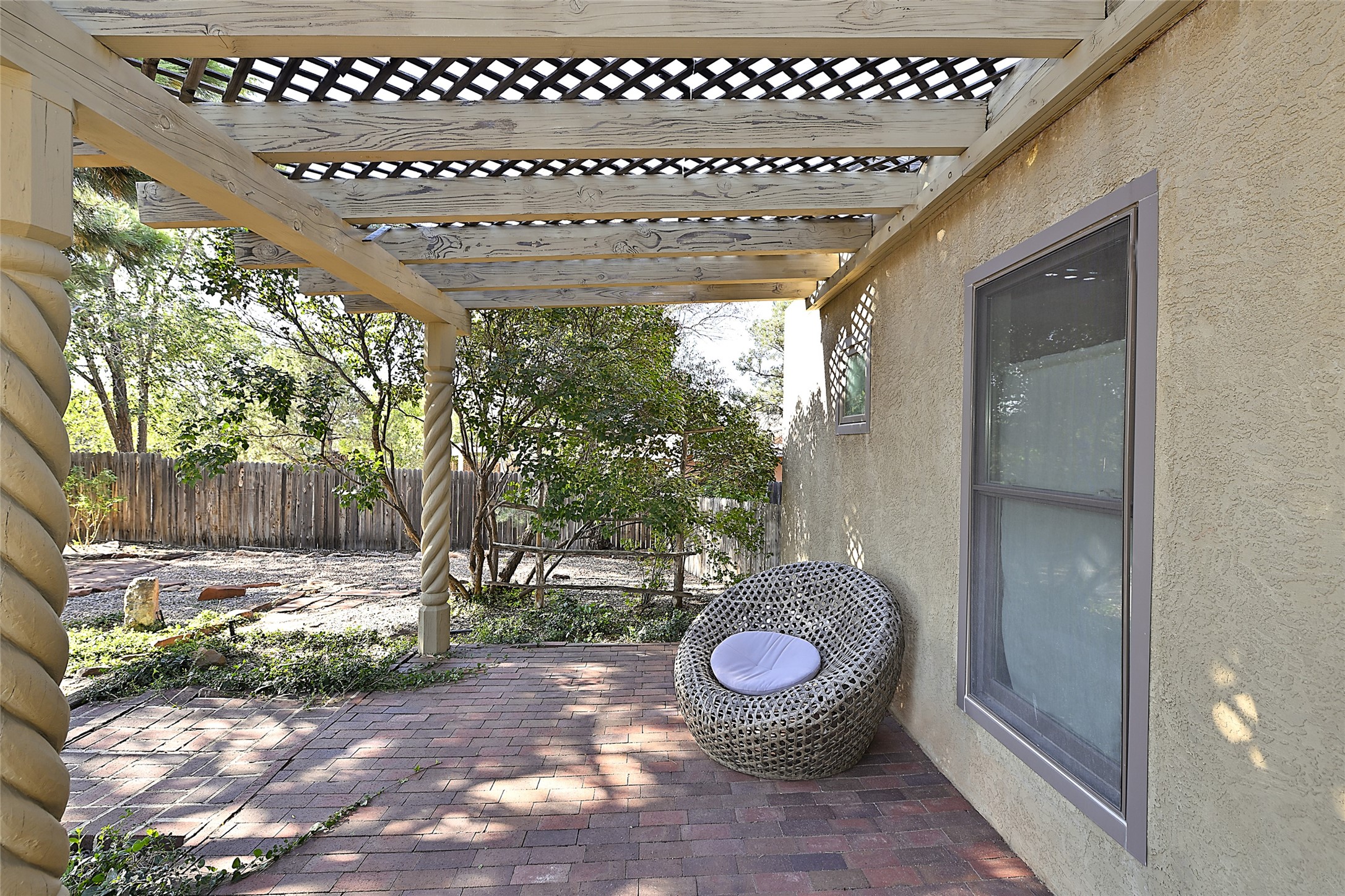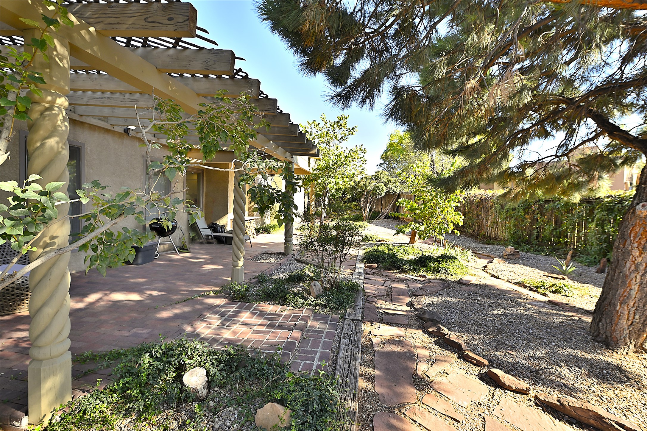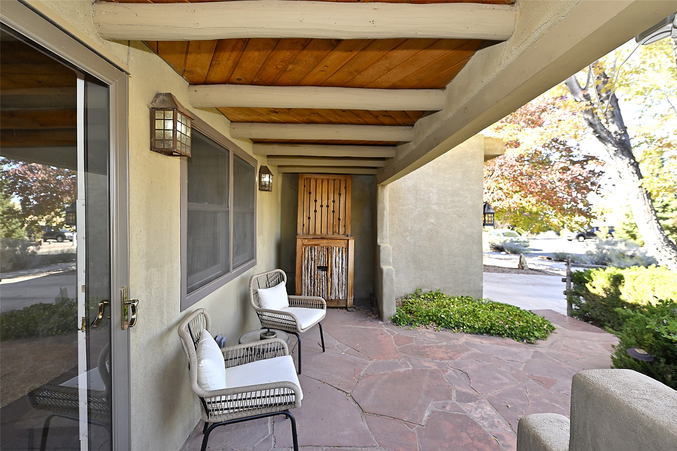Live the Santa Fe lifestyle in this warm and inviting Southwestern retreat. Located near schools, shopping, the Rail Trail, and just a straight shot from the new Midtown development, this home offers both charm and convenience. Classic details include exposed viga and latilla ceilings, kiva fireplaces, and inviting living spaces that flow to a landscaped backyard with a pergola-covered patio perfect for entertaining or relaxing it also sets the stage for al fresco dining, morning coffee, or evening gatherings under the stars.The front patio captures beautiful mountain views, giving you a peaceful place to pause and take in the beauty of Santa Fe. Whether you're looking for a full-time residence or a getaway in the heart of Northern New Mexico, this home offers a perfect balance of location, comfort, and Santa Fe charm.