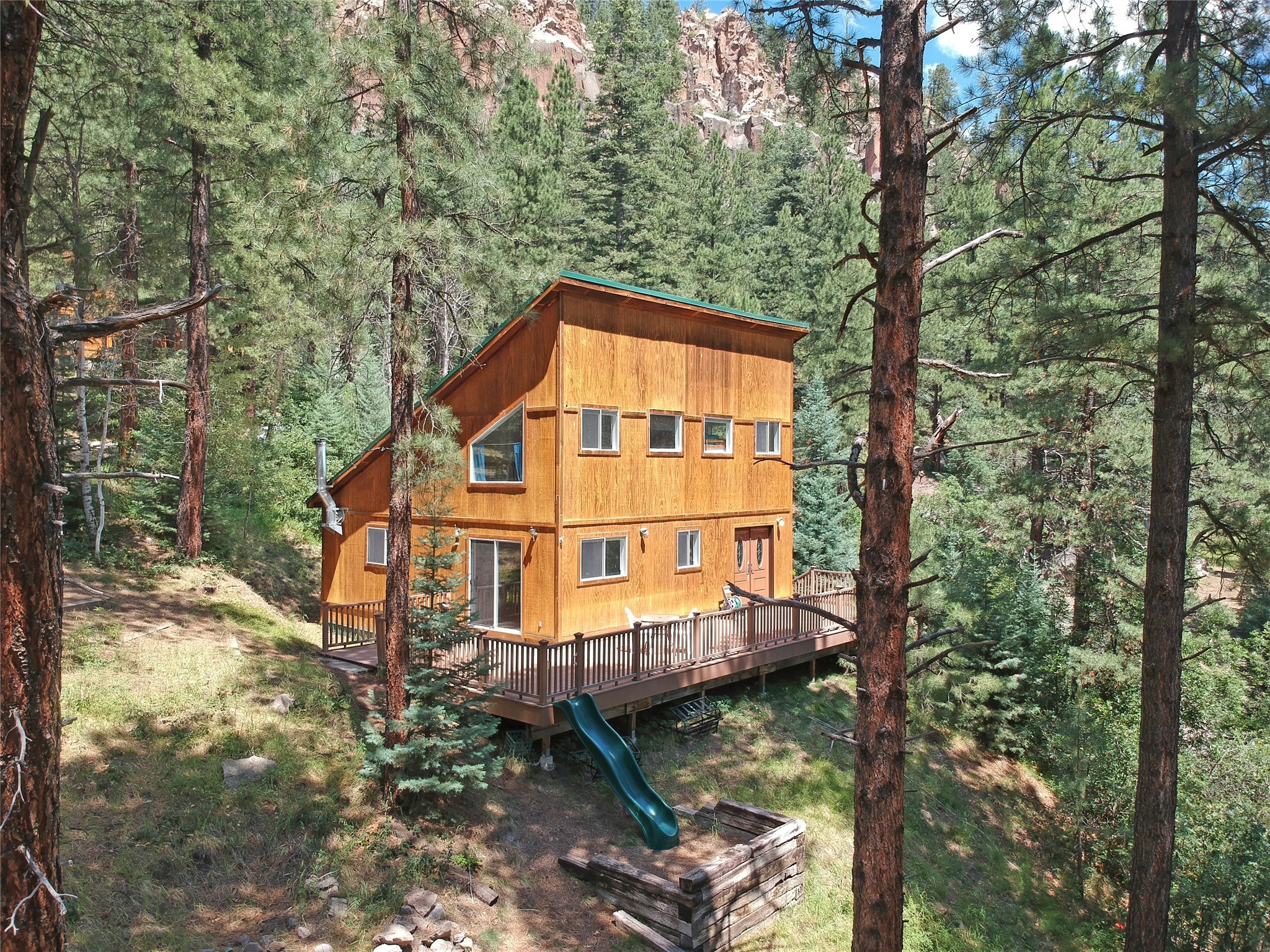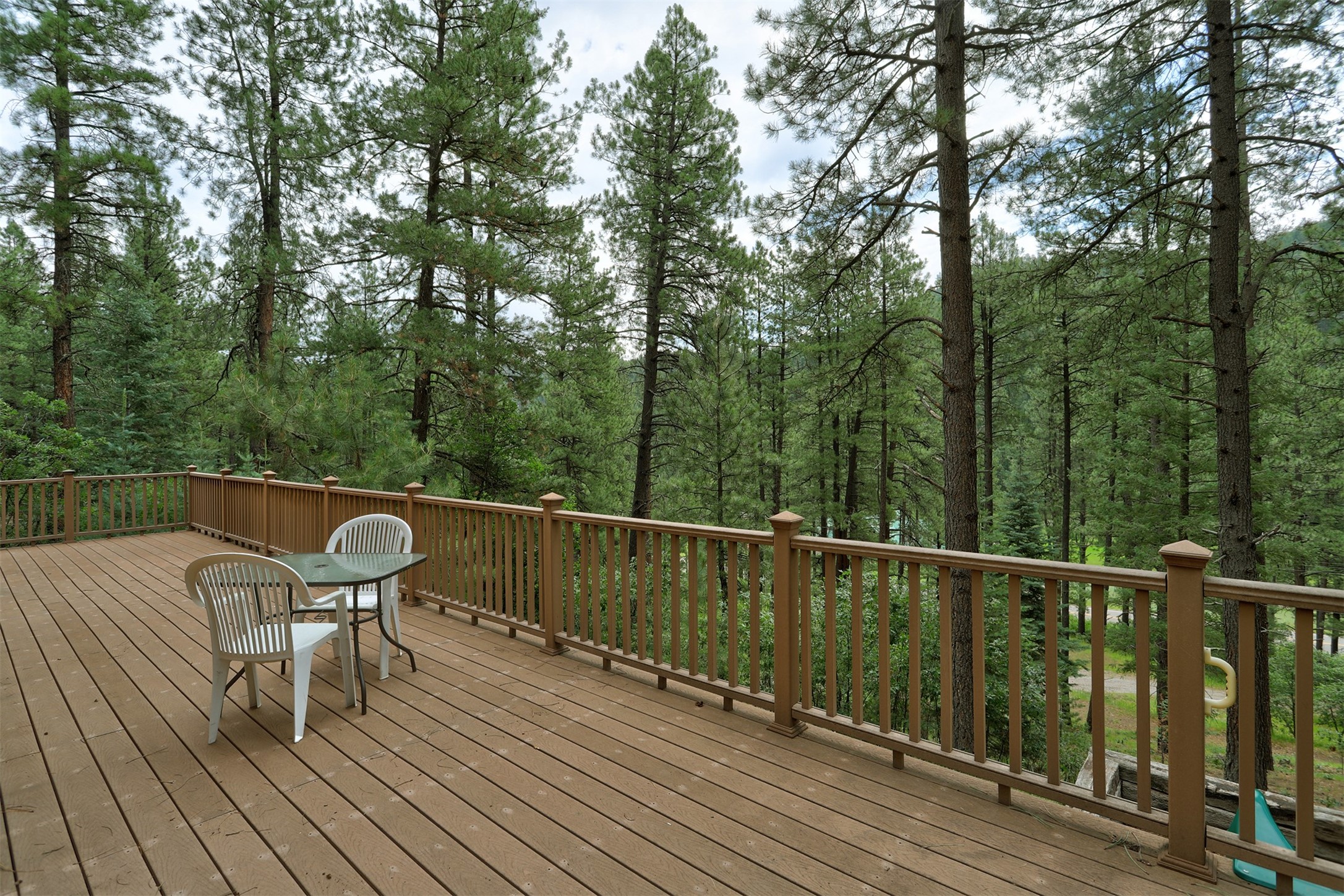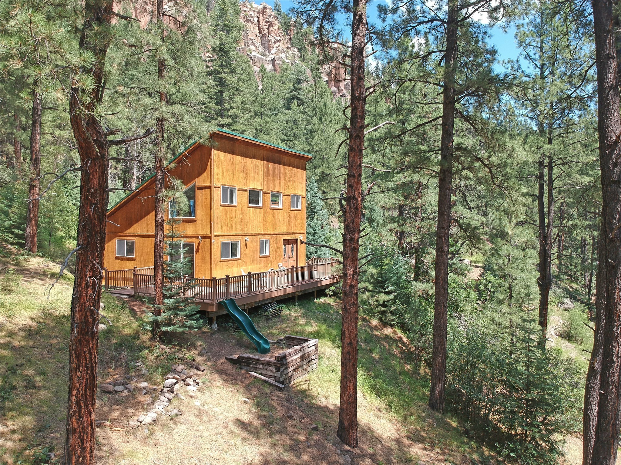 Head up to the HEAVENLY high country! This Seven Springs home is a gem through and through! Close enough to Albuquerque to go every weekend but SO FAR AWAY FROM IT ALL!!! Unpack some groceries, grab the fishing poles and hit Fenton Lake, which is minutes away. The 7 Springs Fish Hatchery is just minutes the other way! Two downstairs bedrooms and a spacious open-concept kitchen and living area. Create unforgettable memories in a cozy loft designed perfectly for the grandkids' sleepovers! Plenty of room for guests! Start your day with a delightful cup of coffee on a stunning Trex deck overlooking breathtaking mountain views and take playtime to new heights with a slide off the deck! All furnishings stay. This one is a real cutie!