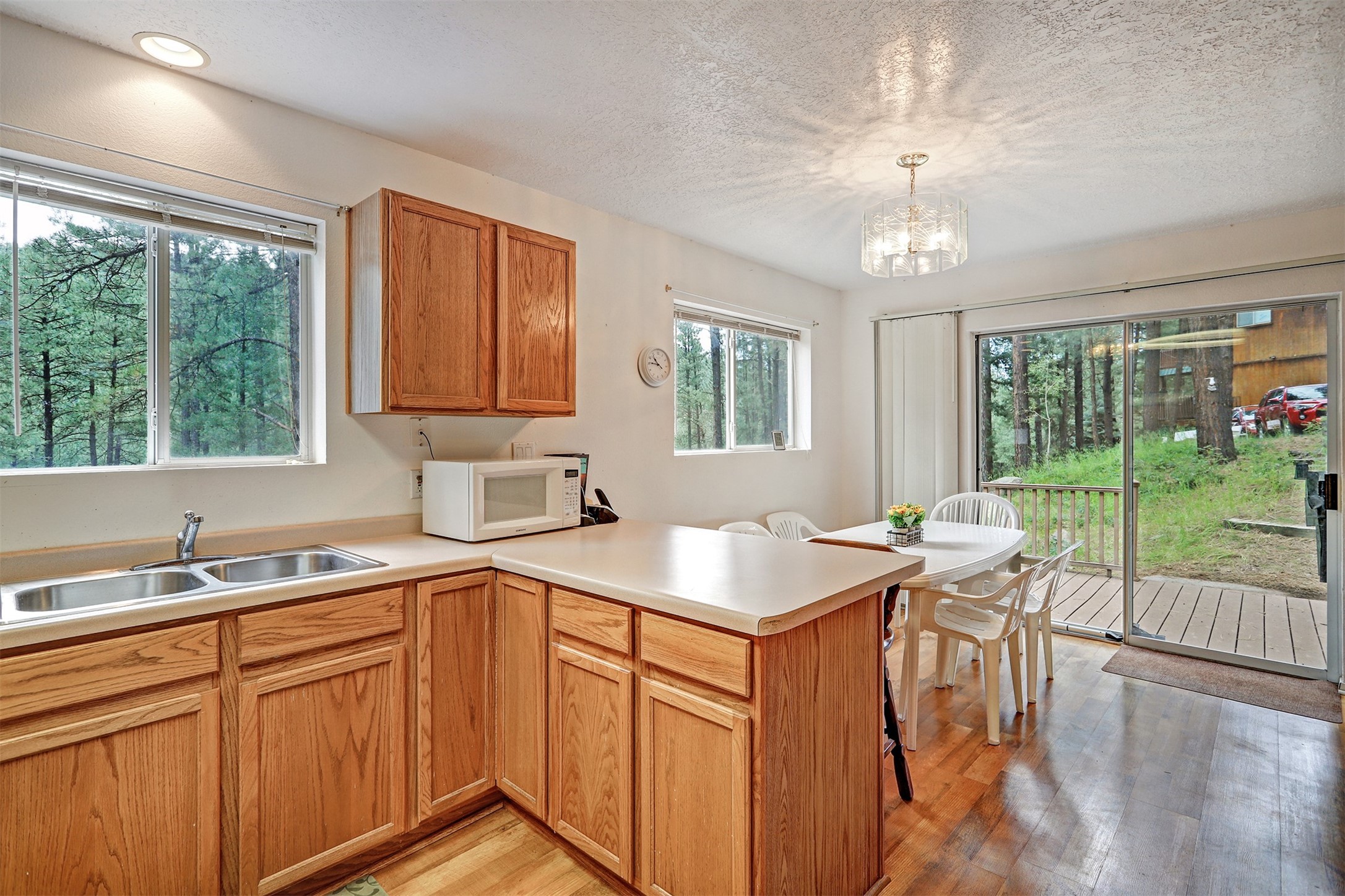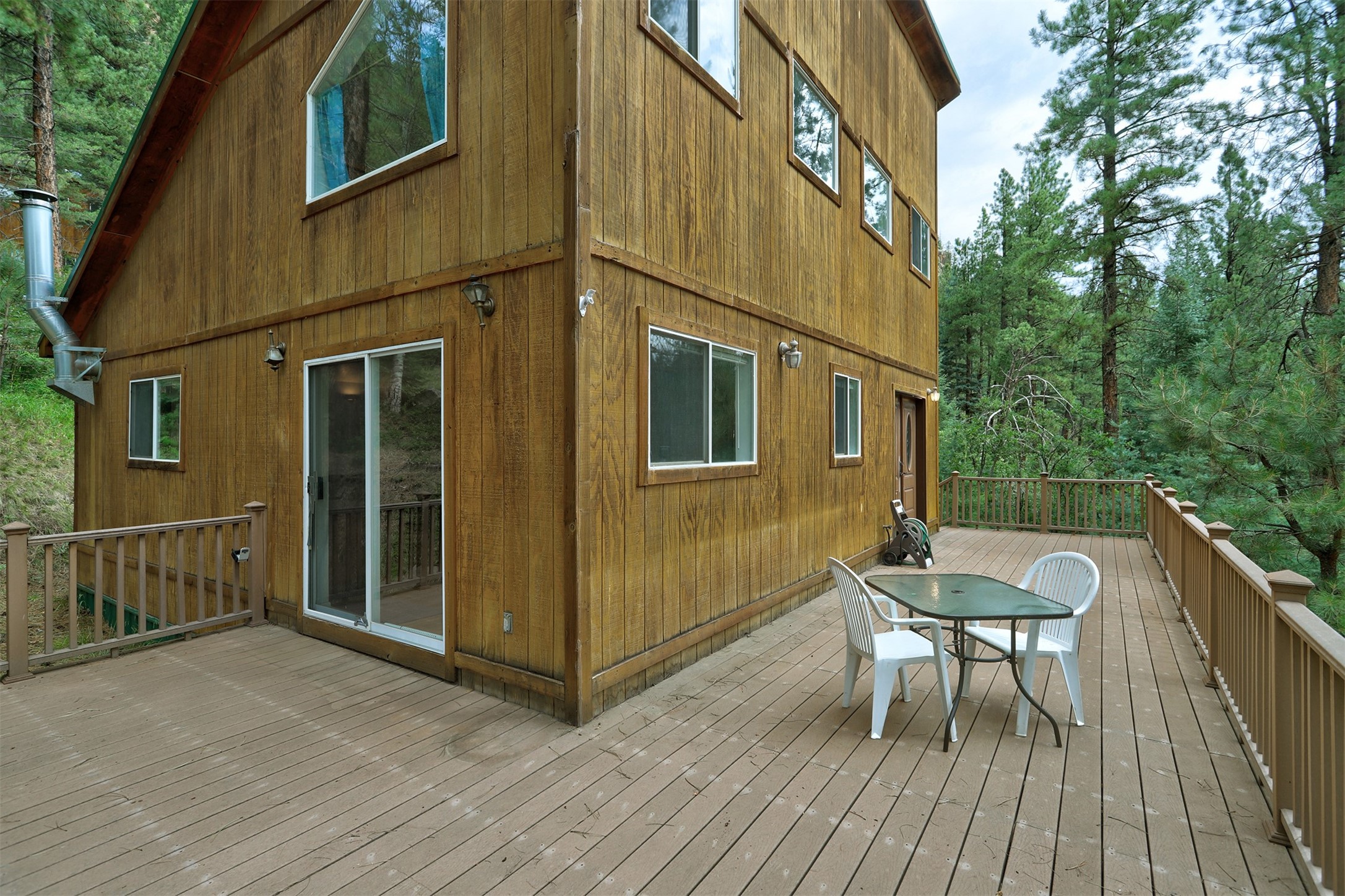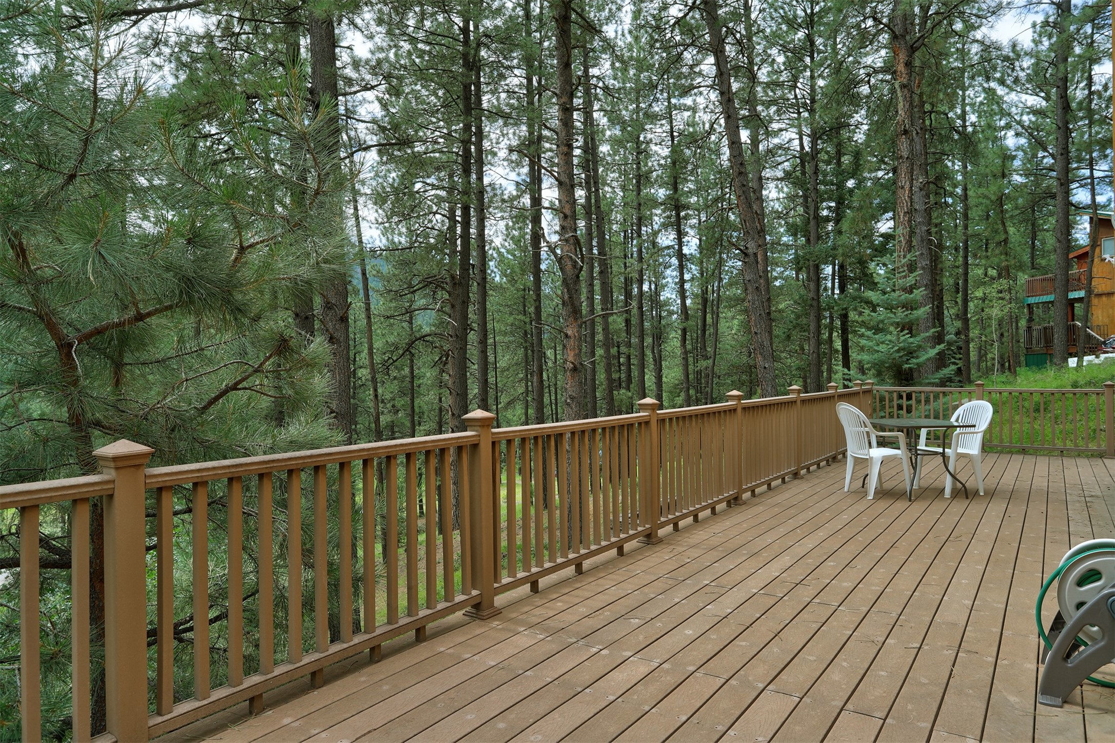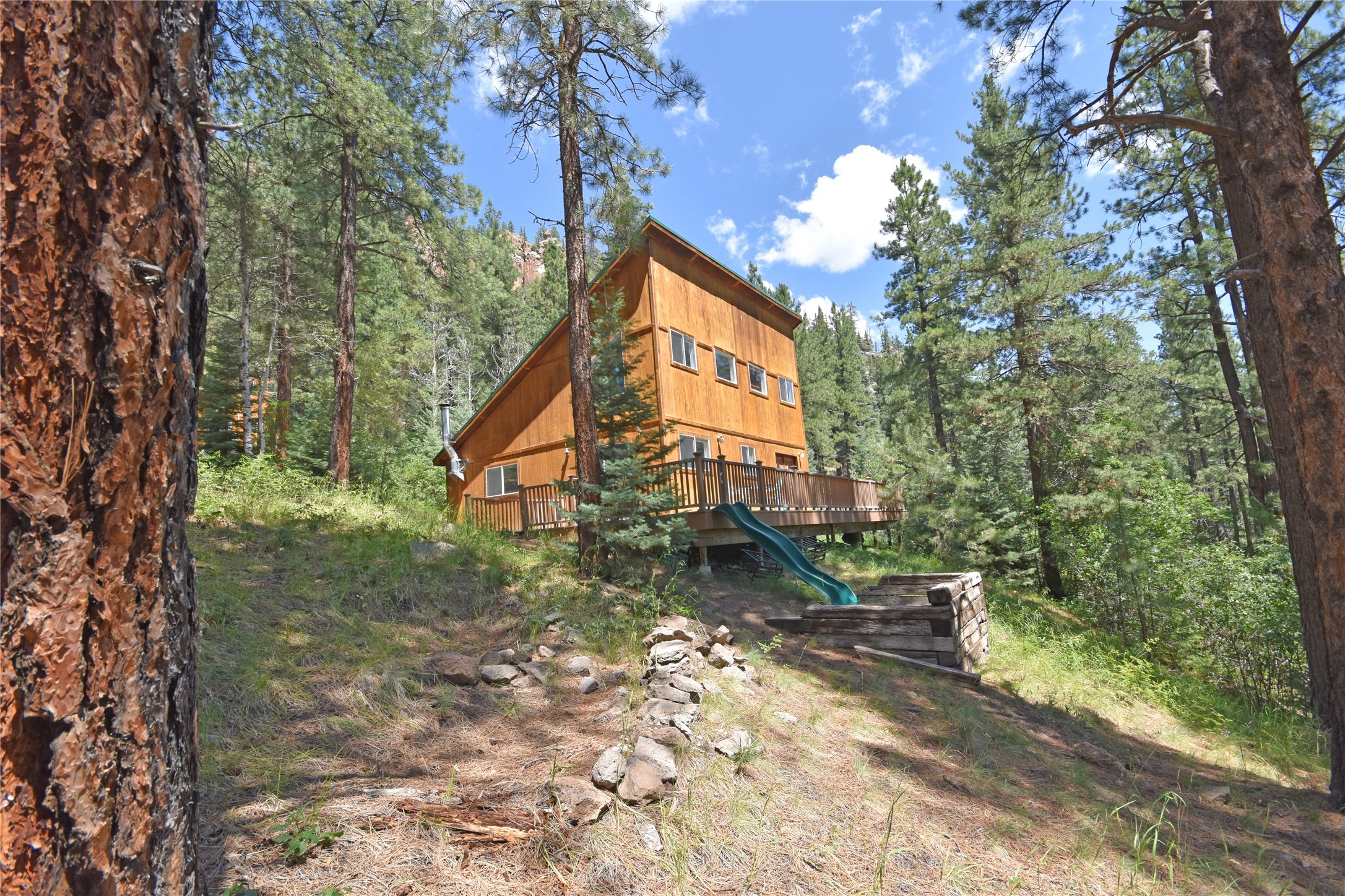 Head up to the HEAVENLY high country! This Seven Springs home is a gem through and through! Close enough to Albuquerque to go every weekend but SO FAR AWAY FROM IT ALL!!! Unpack some groceries, grab the fishing poles and hit Fenton Lake, which is minutes away. The 7 Springs Fish Hatchery is just minutes the other way! Two downstairs bedrooms and a spacious open-concept kitchen and living area. Create unforgettable memories in a cozy loft designed perfectly for the grandkids' sleepovers! Plenty of room for guests! Start your day with a delightful cup of coffee on a stunning Trex deck overlooking breathtaking mountain views and take playtime to new heights with a slide off the deck! All furnishings stay. This one is a real cutie!