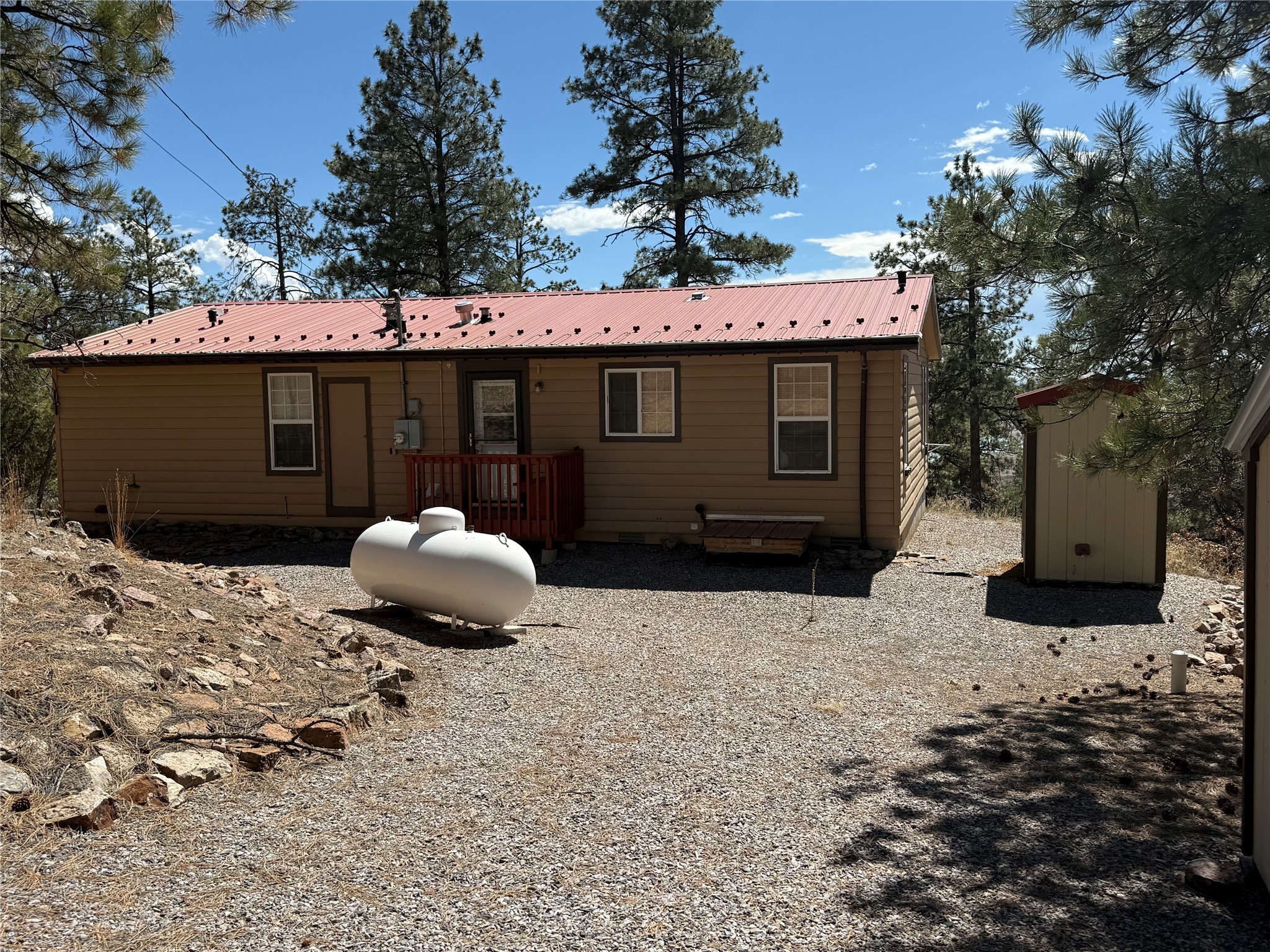 Beautifully maintained three bedroom, two full bathroom manufactured house overlooking Lake Heron sitting on 2.5 +/- Acres. This hidden gem is situated within the Laguna Vista Subdivision which is gated and has direct access to Lake Heron. Nestled on top of a mountain with stunning views of the Lake and almost fully equipped. Property comes furnished, private well, septic, water filtration system, and an outbuilding for your toys. Toys that are included are two paddleboards, and two kayaks. Plenty of parking and an incredible deck to sit back and catch the scenery. Wildlife make this property a visit on the regular meandering through to reach the Lake. Don't miss out on this Northern New Mexico beauty.