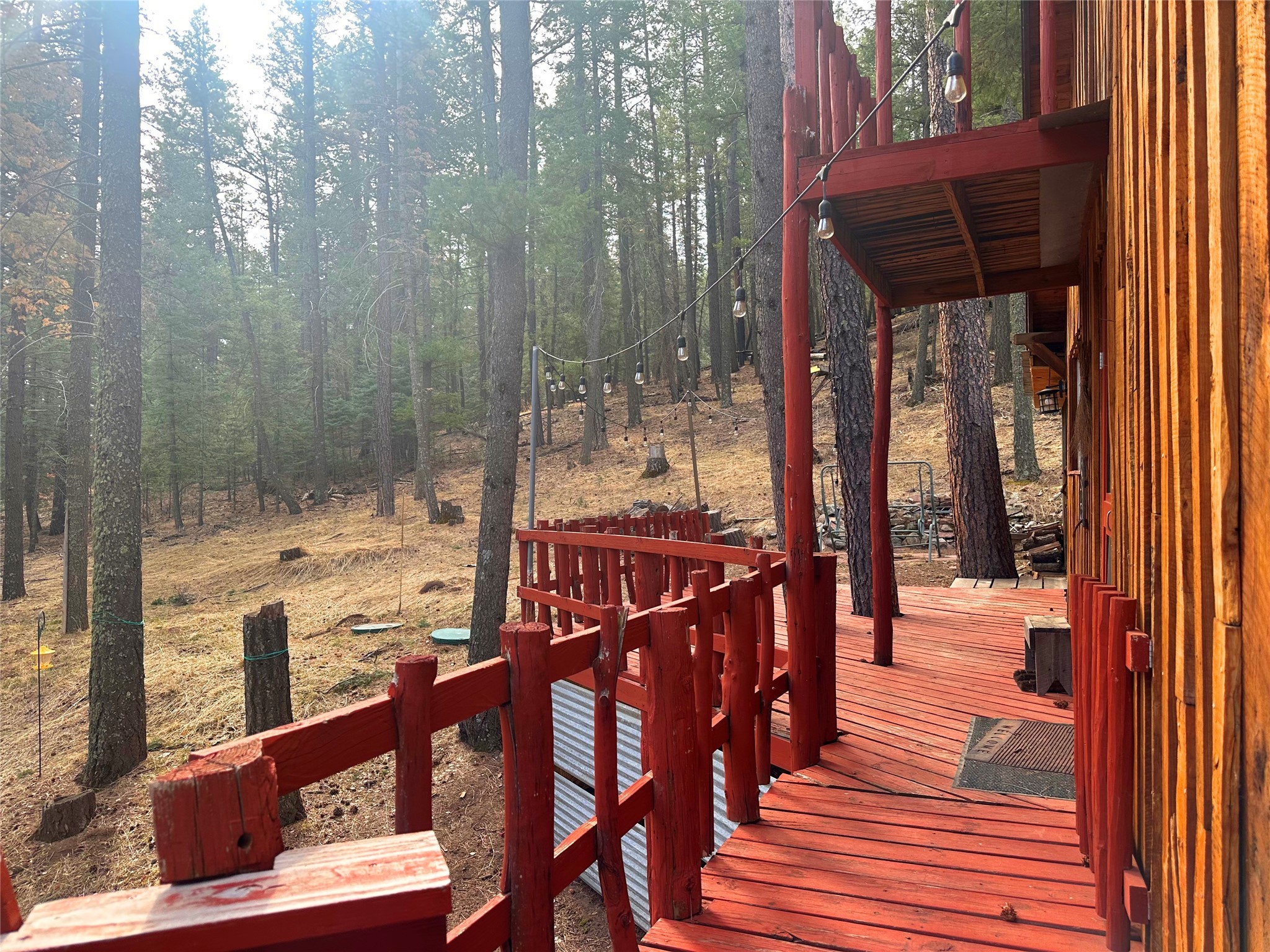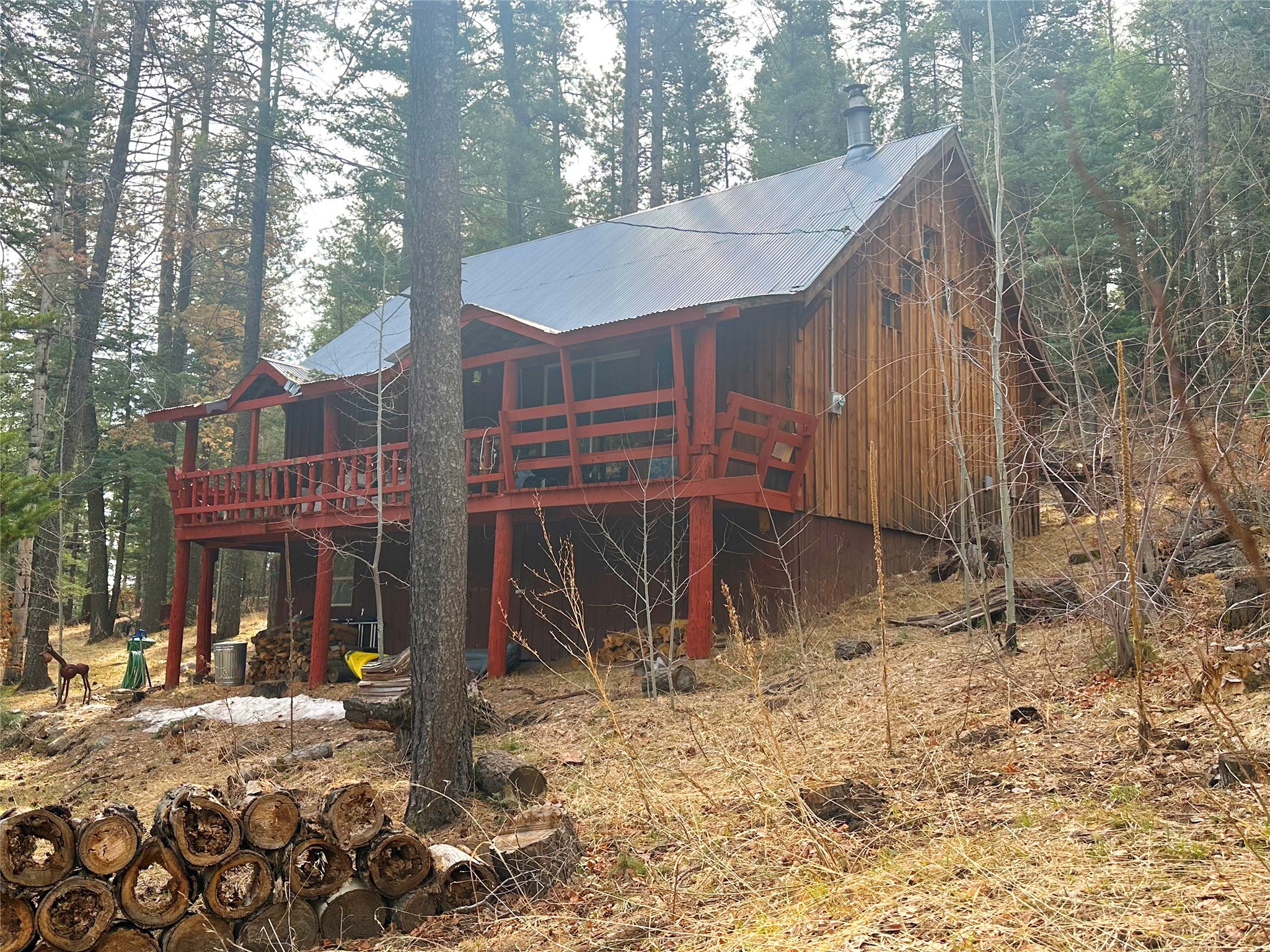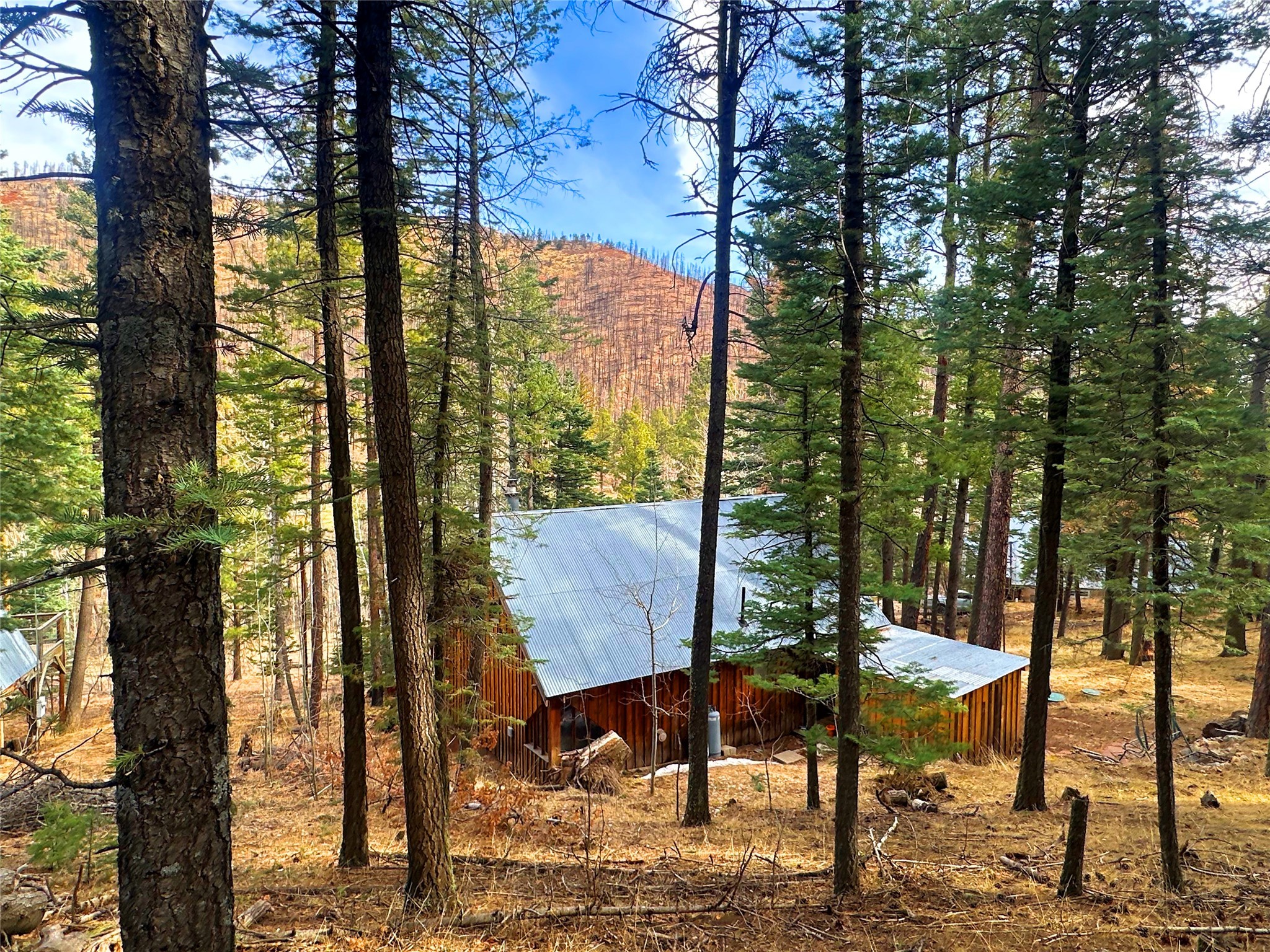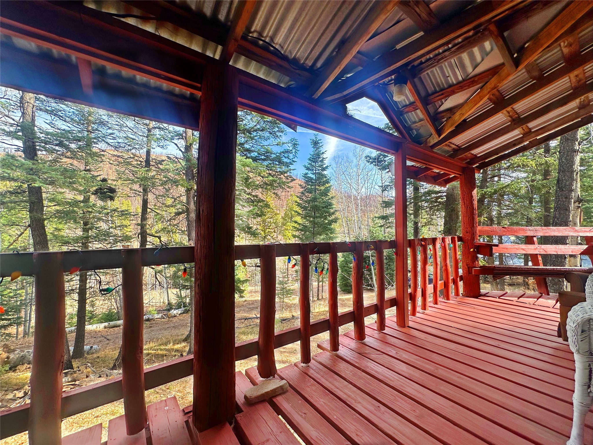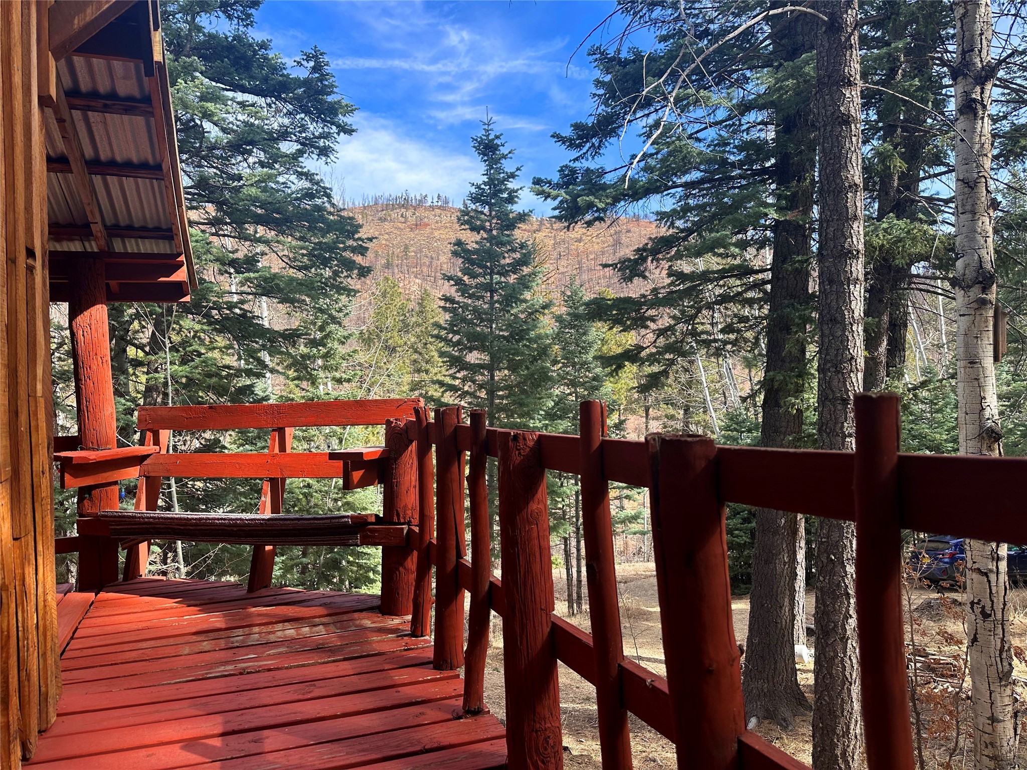 The quintessential cabin in the woods awaits! Tucked away in the trees within a welcoming recreational cabin community, this beautiful red cabin stands proud with its elevated wrap-around outlook deck, offering peaceful moments in Northern New Mexico's mountain air. Inside, this woodland retreat provides all the comforts of a home-away-from-home. The full kitchen features a classic reproduction electric stove, while the open-concept living area celebrates space with high ceilings. Natural light fills the interior through abundant windows. The main living space connects to a comfortable bedroom, while above, a roomy loft adds versatility with its own vanity sink and private balcony - an ideal spot for morning coffee in the mountain air. Practical updates ensure worry-free enjoyment, including a 2021 septic system and a sturdy new wood shed. The property's appeal extends beyond its immediate boundaries with 3 shares in the Rincon Land Co., providing limited enjoyment of 13.26 acres adjoining the cabin's backyard. The magnificent Sapello River and National Forest lie nearby, promising outdoor adventures. Adding to the community's charm, the fishing pond is currently undergoing restoration, promising future enjoyment for residents. With full transparency: the surrounding area, including views from this property, was impacted by the Calf Canyon/Hermit's Peak Wildfires. The landscape continues to demonstrate nature's remarkable recovery. All photos from March 2025 capture the current spirit of this mountain getaway.