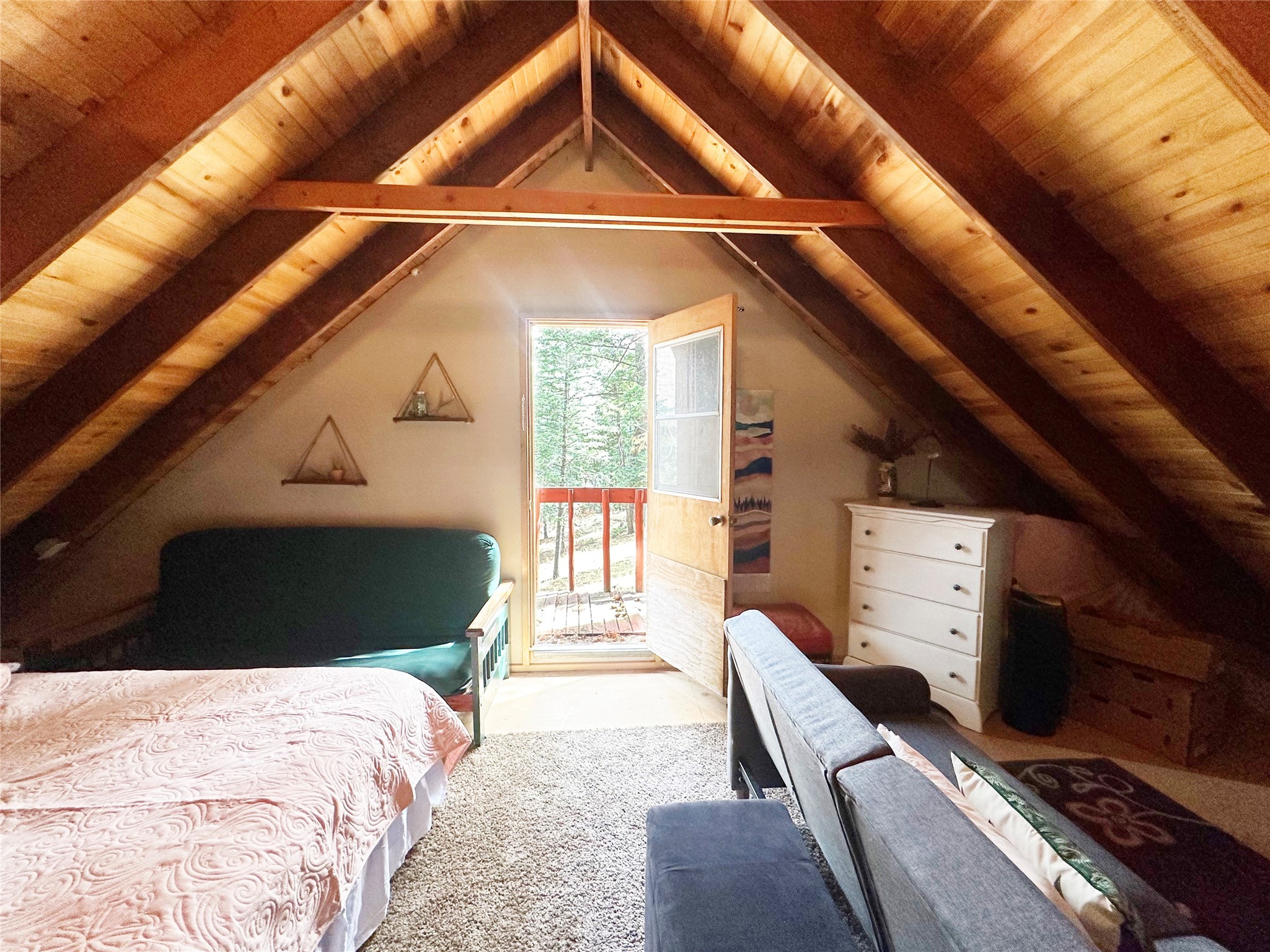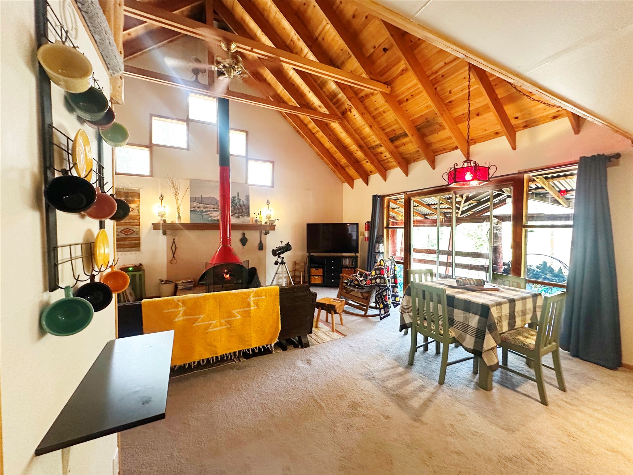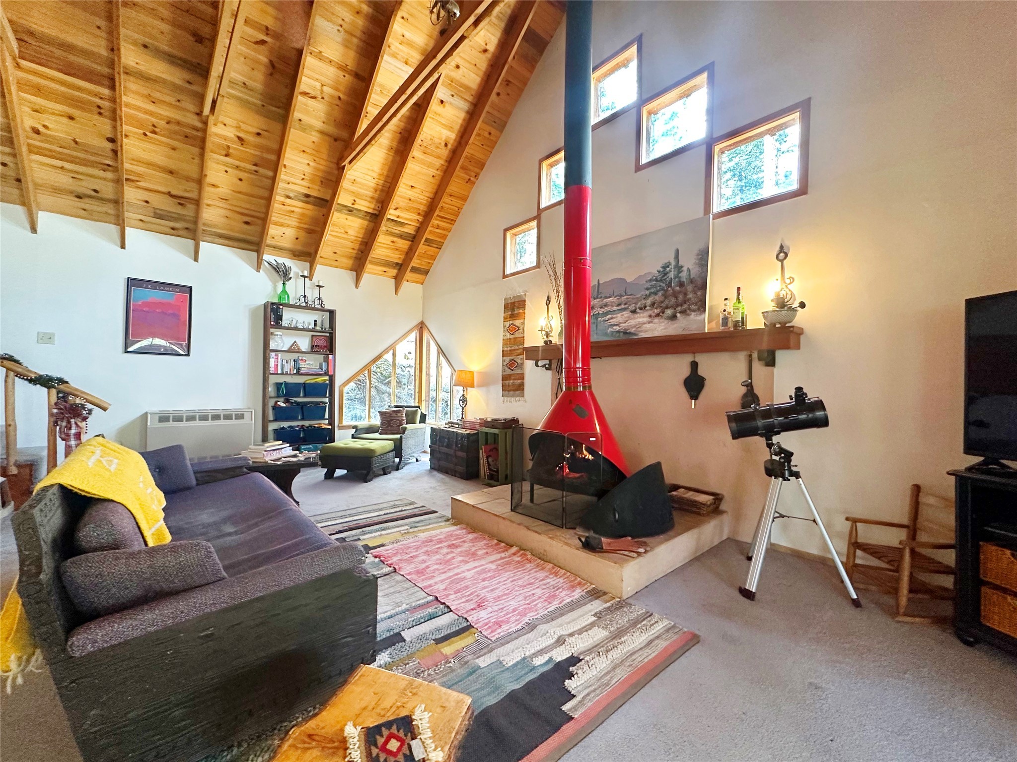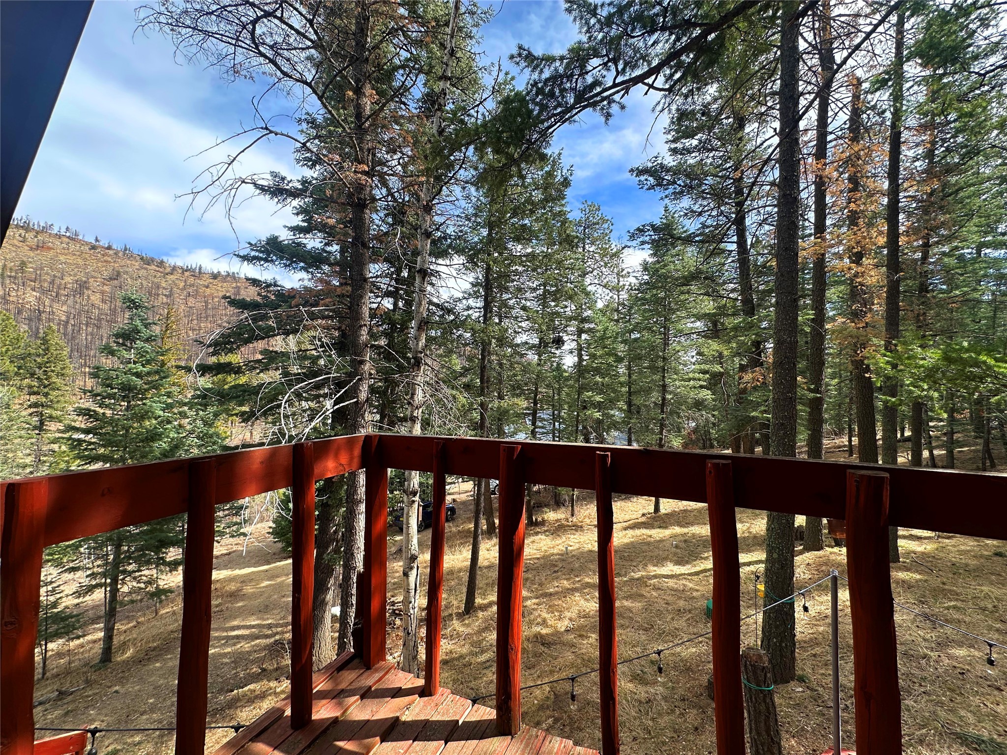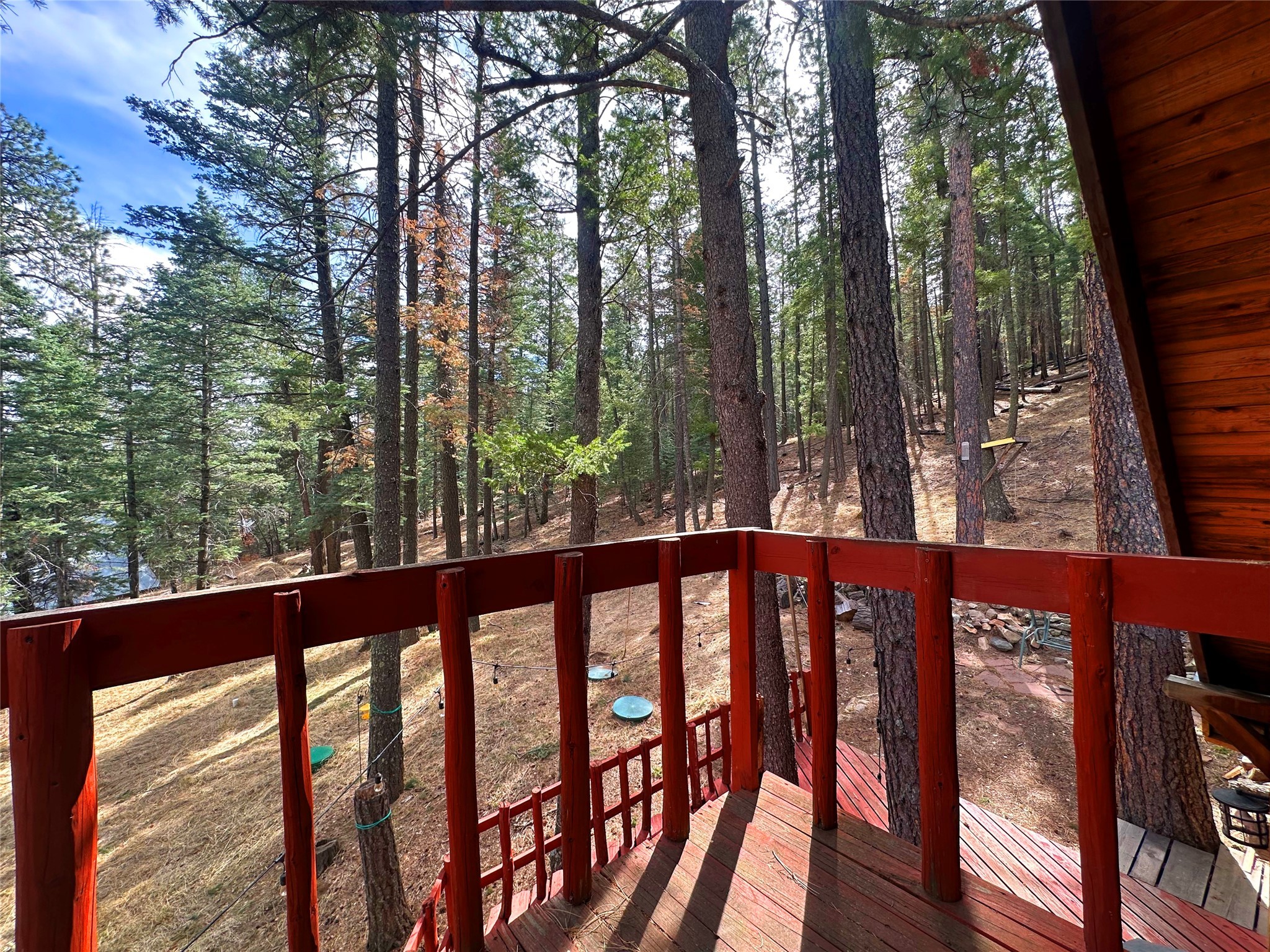 The quintessential cabin in the woods awaits! Tucked away in the trees within a welcoming recreational cabin community, this beautiful red cabin stands proud with its elevated wrap-around outlook deck, offering peaceful moments in Northern New Mexico's mountain air. Inside, this woodland retreat provides all the comforts of a home-away-from-home. The full kitchen features a classic reproduction electric stove, while the open-concept living area celebrates space with high ceilings. Natural light fills the interior through abundant windows. The main living space connects to a comfortable bedroom, while above, a roomy loft adds versatility with its own vanity sink and private balcony - an ideal spot for morning coffee in the mountain air. Practical updates ensure worry-free enjoyment, including a 2021 septic system and a sturdy new wood shed. The property's appeal extends beyond its immediate boundaries with 3 shares in the Rincon Land Co., providing limited enjoyment of 13.26 acres adjoining the cabin's backyard. The magnificent Sapello River and National Forest lie nearby, promising outdoor adventures. Adding to the community's charm, the fishing pond is currently undergoing restoration, promising future enjoyment for residents. With full transparency: the surrounding area, including views from this property, was impacted by the Calf Canyon/Hermit's Peak Wildfires. The landscape continues to demonstrate nature's remarkable recovery. All photos from March 2025 capture the current spirit of this mountain getaway.