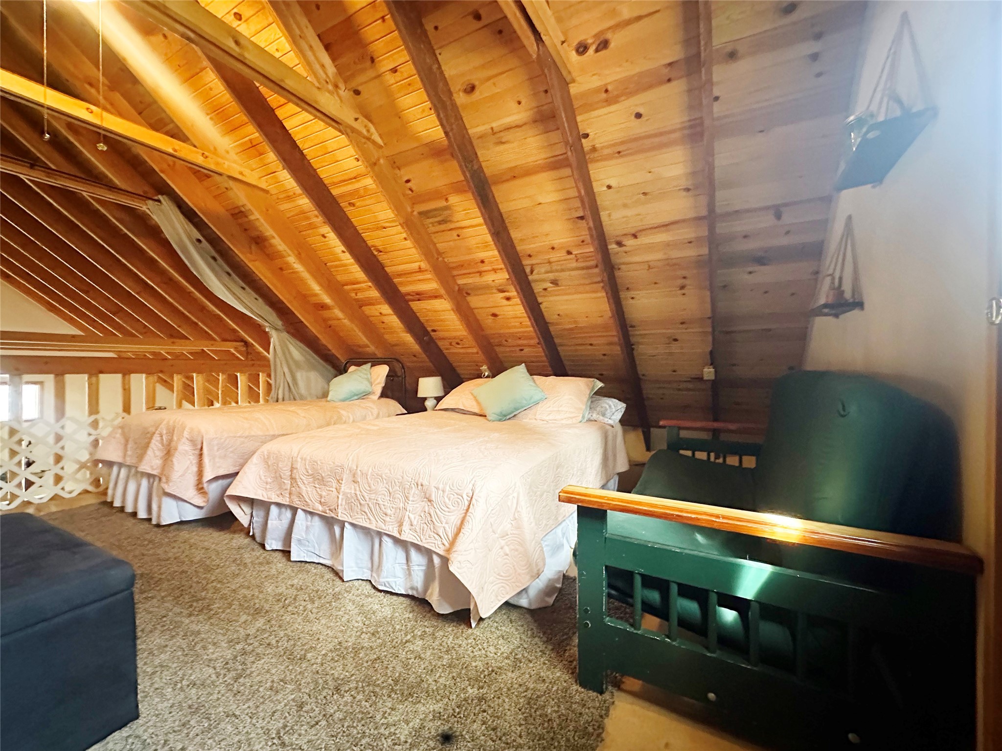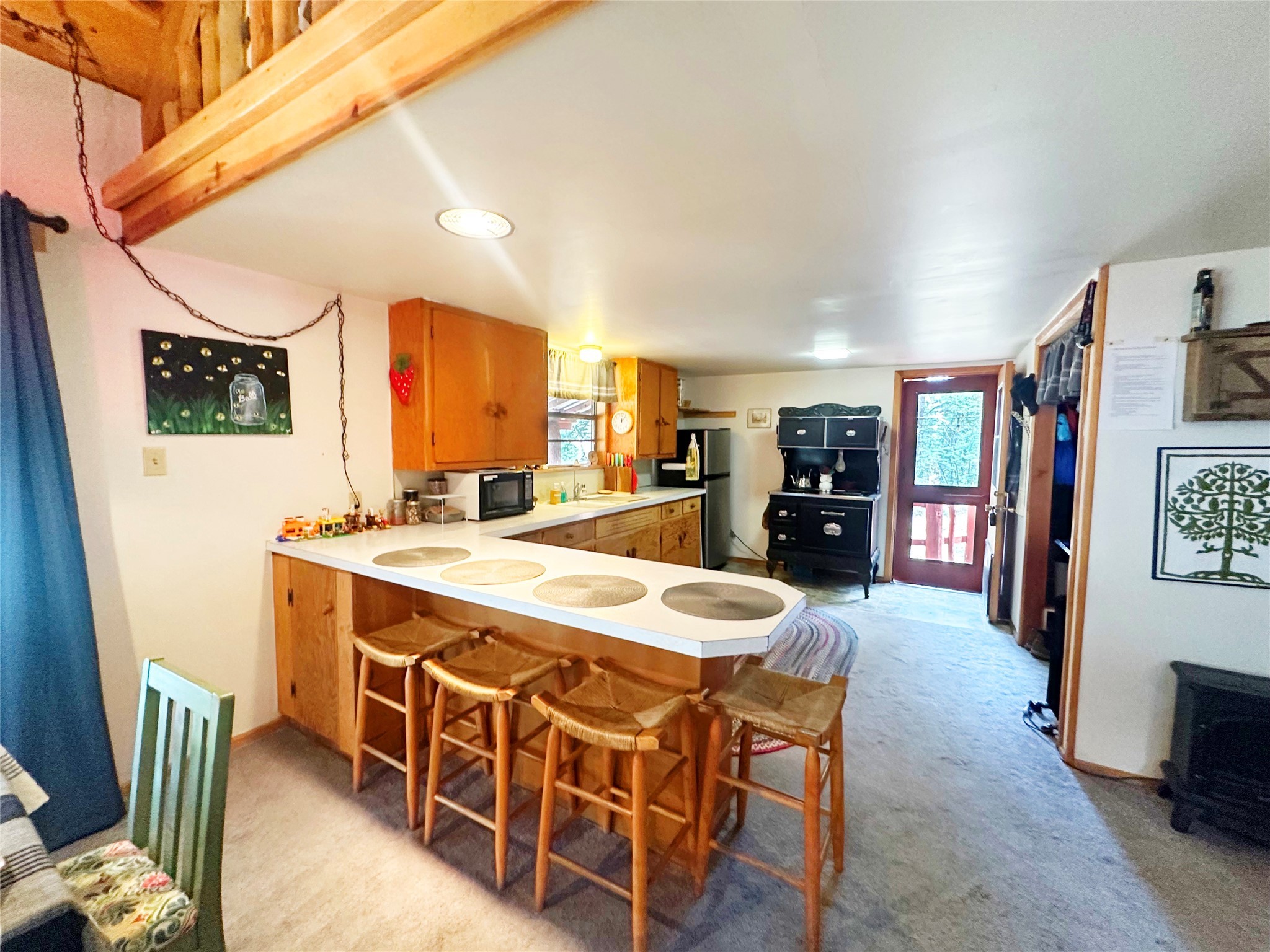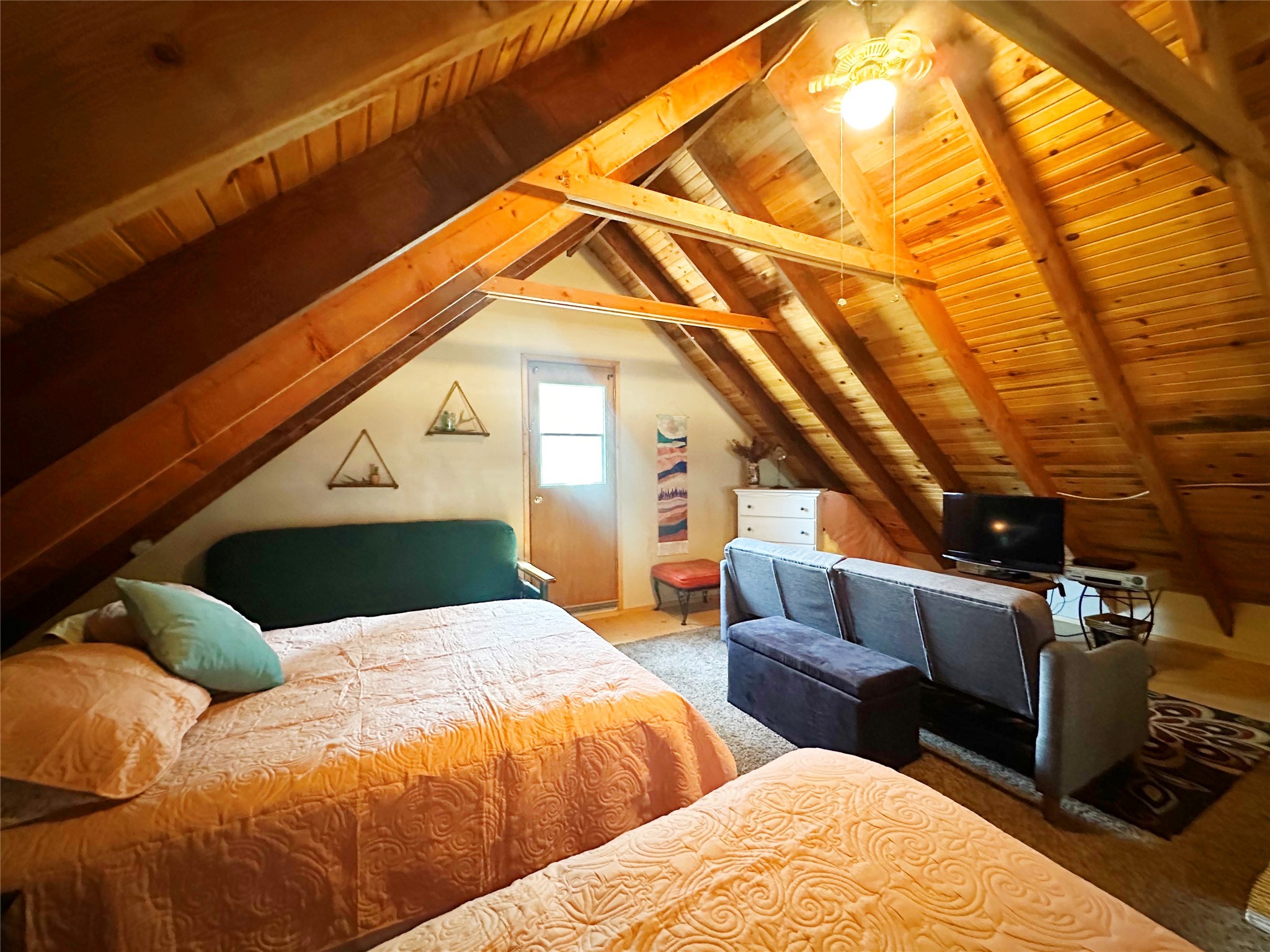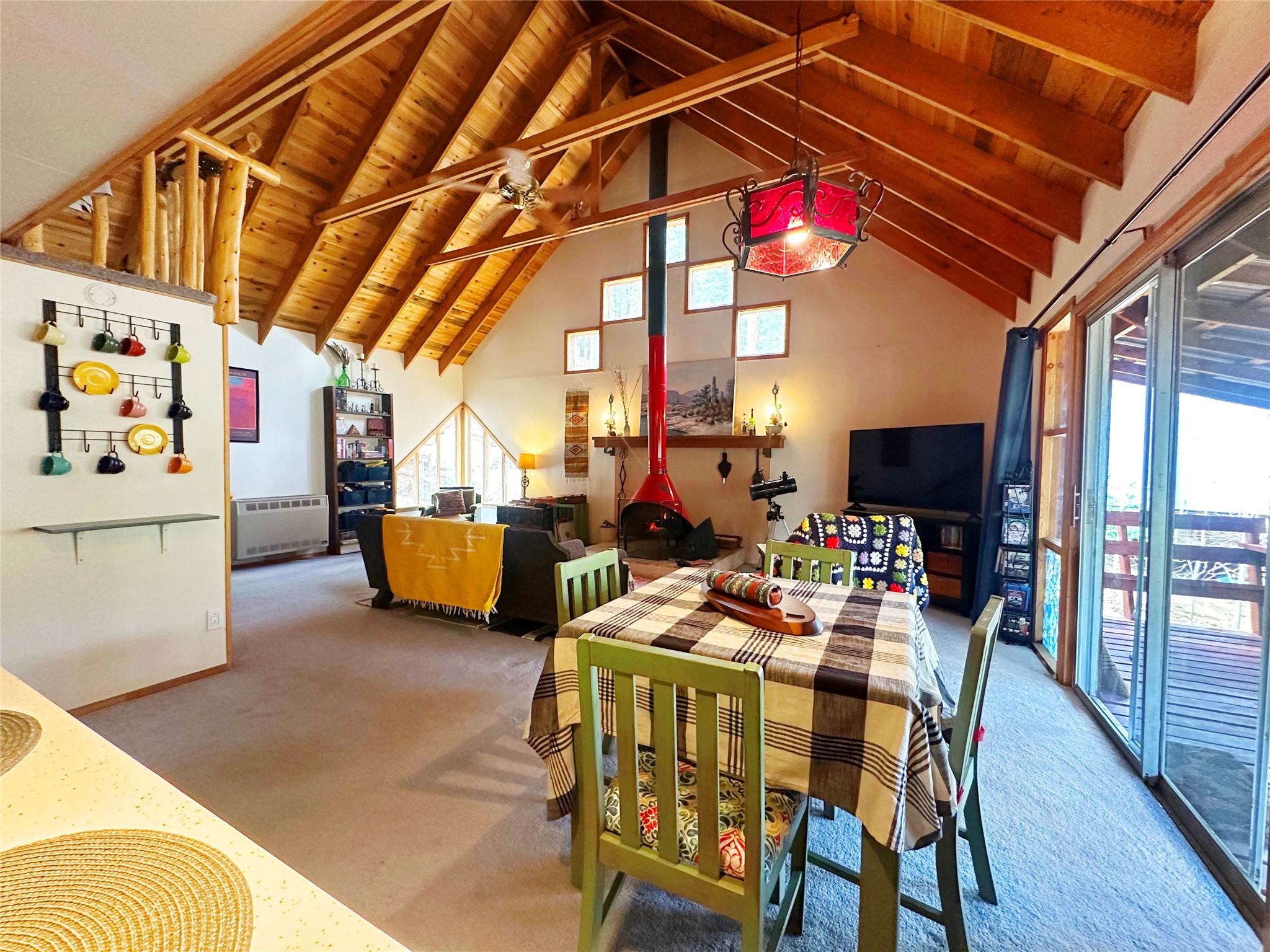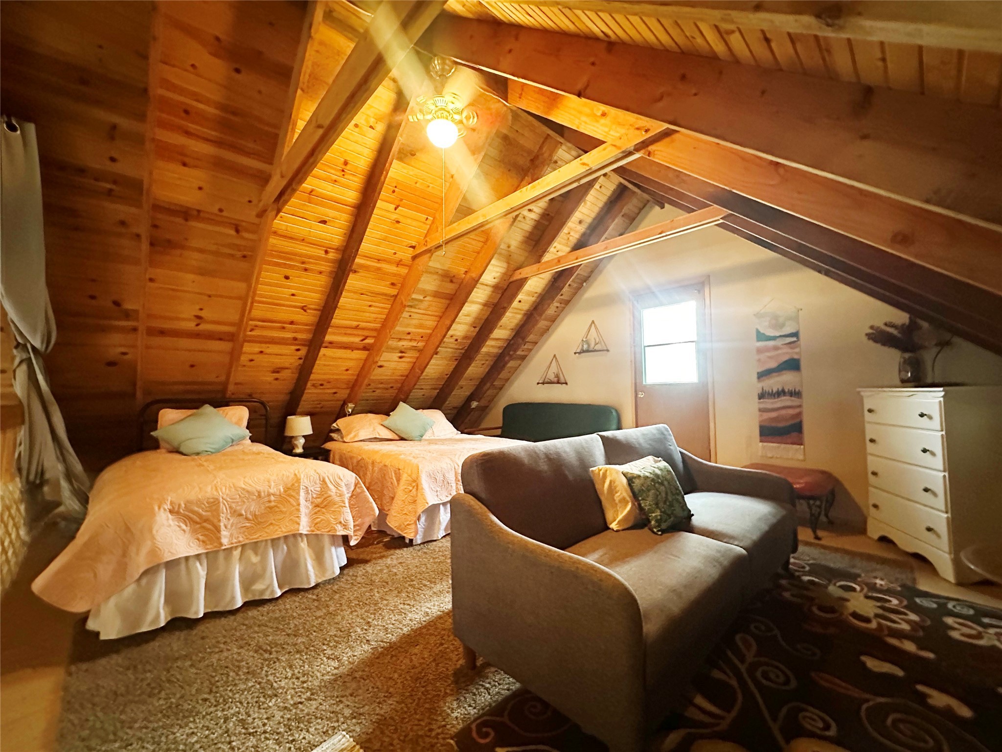 The quintessential cabin in the woods awaits! Tucked away in the trees within a welcoming recreational cabin community, this beautiful red cabin stands proud with its elevated wrap-around outlook deck, offering peaceful moments in Northern New Mexico's mountain air. Inside, this woodland retreat provides all the comforts of a home-away-from-home. The full kitchen features a classic reproduction electric stove, while the open-concept living area celebrates space with high ceilings. Natural light fills the interior through abundant windows. The main living space connects to a comfortable bedroom, while above, a roomy loft adds versatility with its own vanity sink and private balcony - an ideal spot for morning coffee in the mountain air. Practical updates ensure worry-free enjoyment, including a 2021 septic system and a sturdy new wood shed. The property's appeal extends beyond its immediate boundaries with 3 shares in the Rincon Land Co., providing limited enjoyment of 13.26 acres adjoining the cabin's backyard. The magnificent Sapello River and National Forest lie nearby, promising outdoor adventures. Adding to the community's charm, the fishing pond is currently undergoing restoration, promising future enjoyment for residents. With full transparency: the surrounding area, including views from this property, was impacted by the Calf Canyon/Hermit's Peak Wildfires. The landscape continues to demonstrate nature's remarkable recovery. All photos from March 2025 capture the current spirit of this mountain getaway.