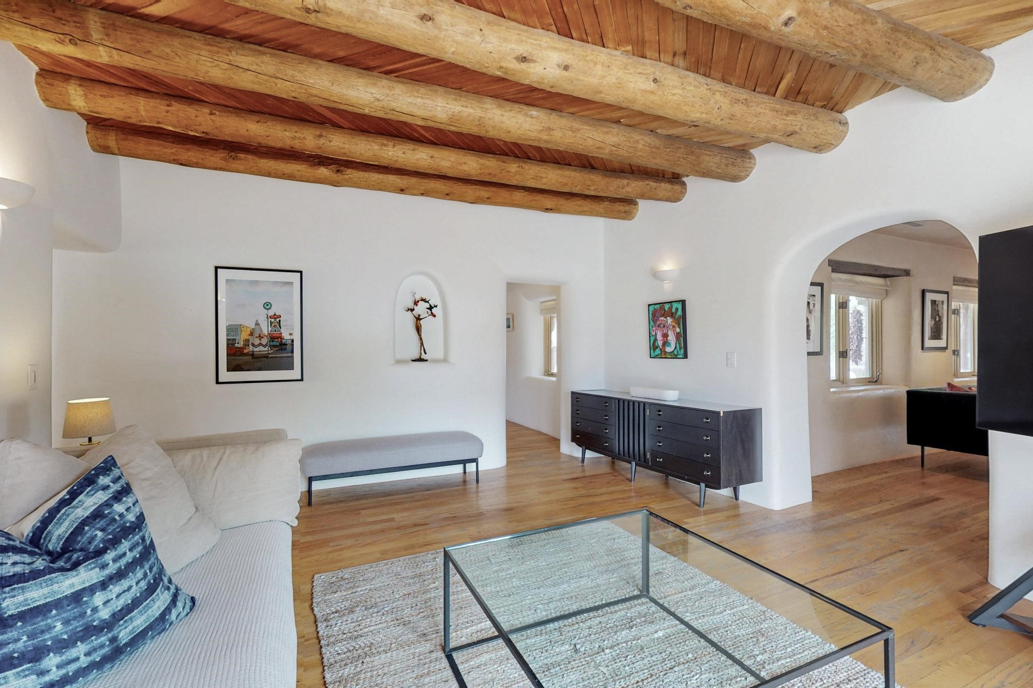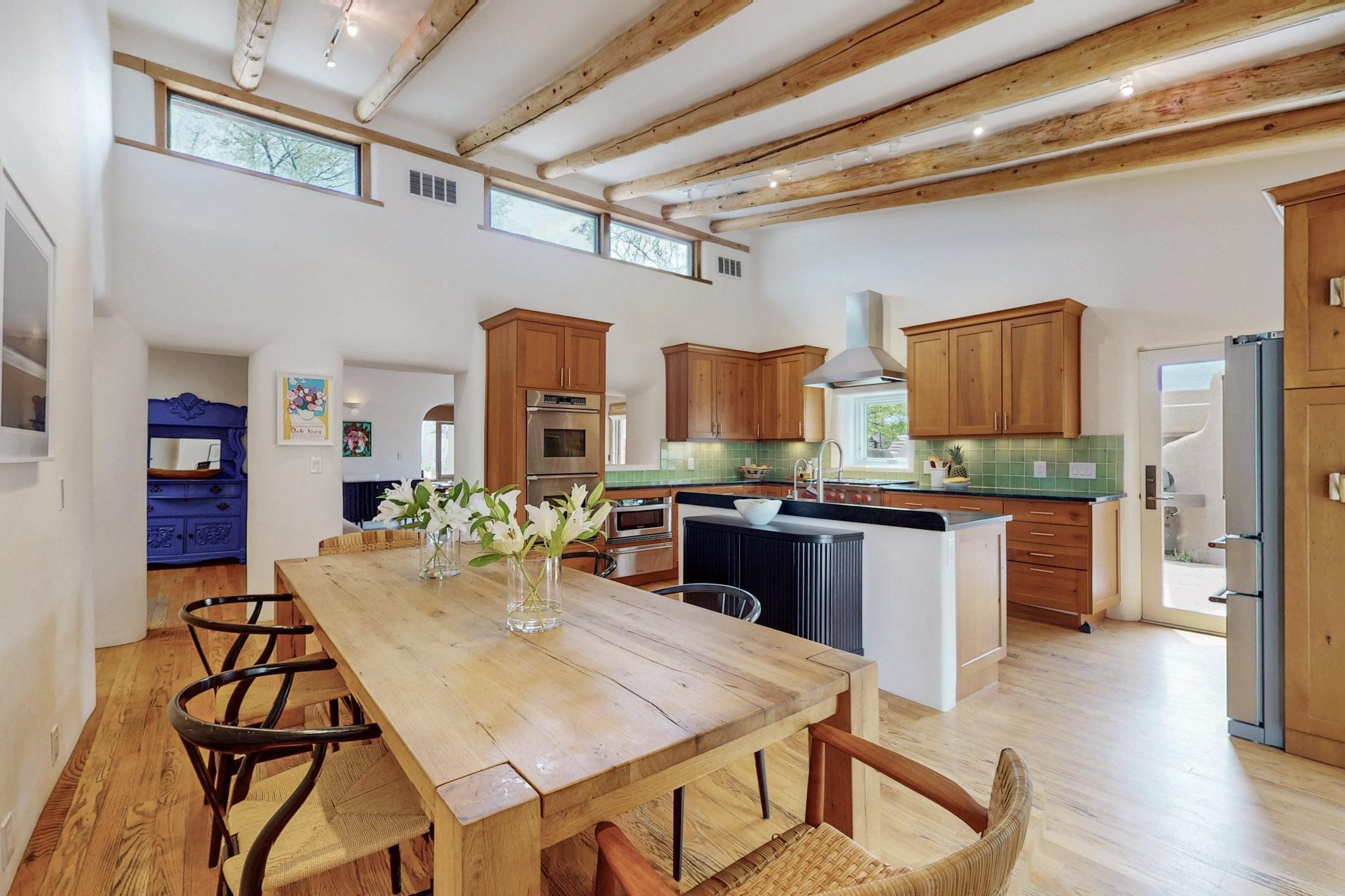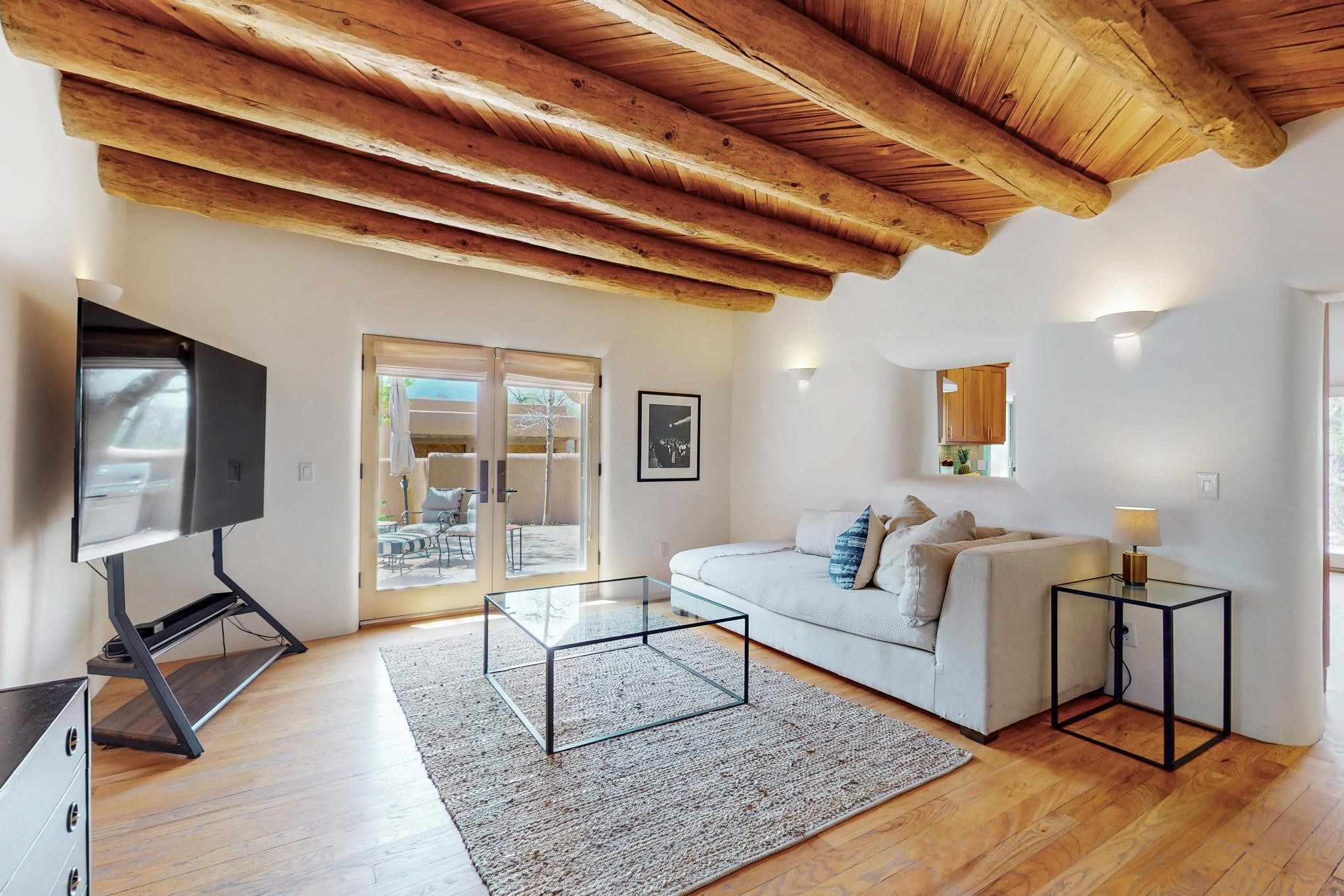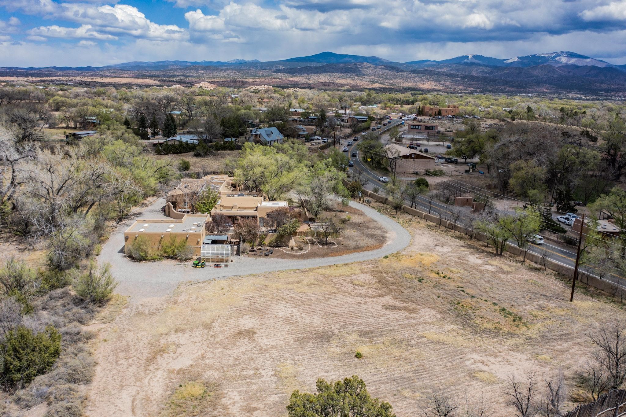 Situated on 2.05 fertile acres in the Nambe Valley lies Casa Alegria. With easy access to both Santa Fe and Los Alamos, this magnificent property boasts authentic Pueblo-style craftsmanship throughout. Surrounding the premiere home on this compound, you'll enjoy courtyards, portals, fireplaces, patios, and landscaped gardens, with mature trees. The interior of this expansive home offers a gourmet kitchen, hardwood and flagstone flooring, viga ceilings, and kiva fireplaces. In its expansive primary bedroom, you'll enjoy a spa bath, walk-in closet, and a spacious patio with its own swimming pool. Additionally, the one-bedroom guesthouse with equally impressive craftsmanship offers a dining area, bathroom, and kitchenette. Adjacent to the oversized 2-car garage is a bonus studio or office space, also with its own bath. Welcome to this spectacular northern New Mexico property.