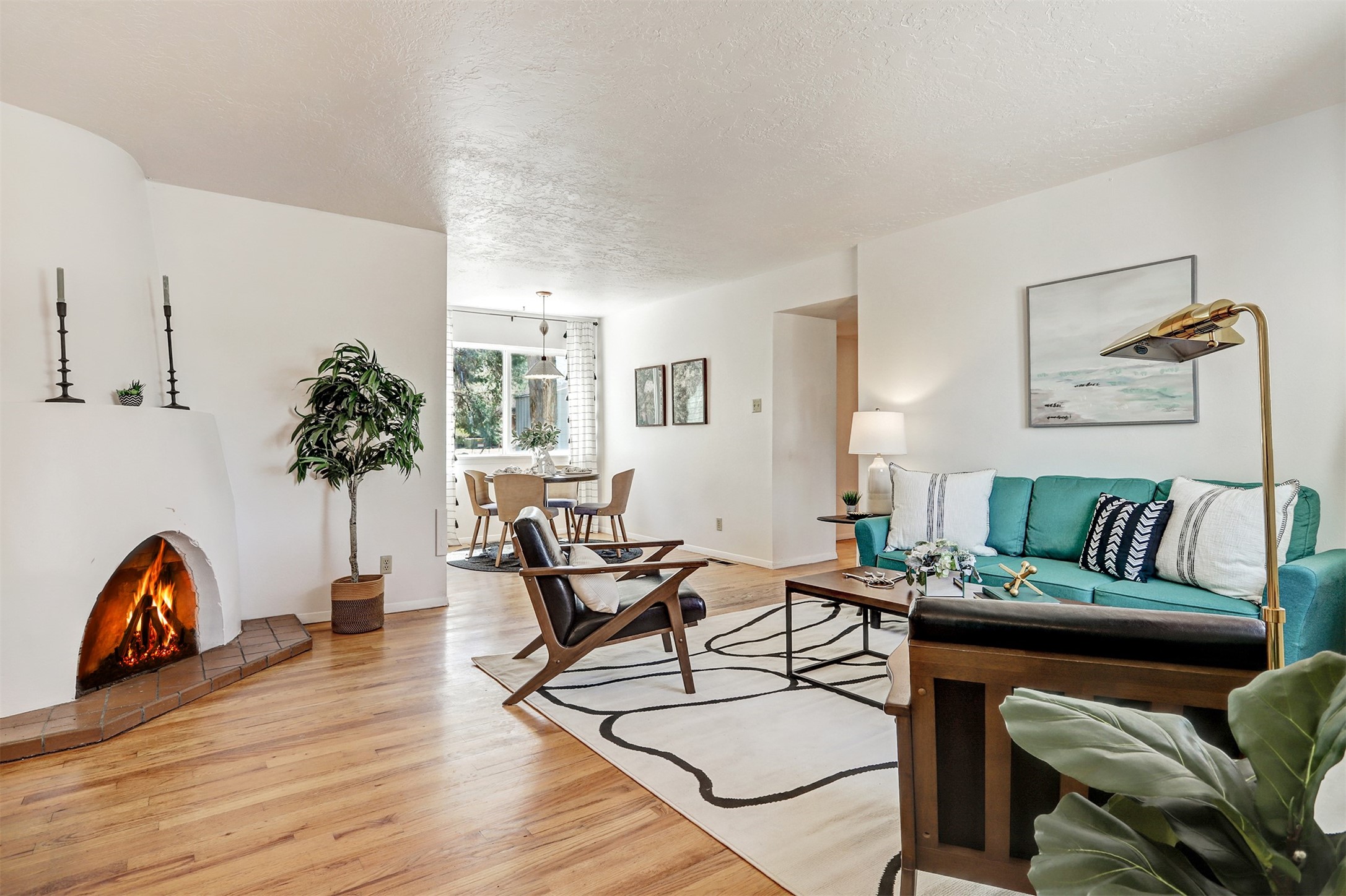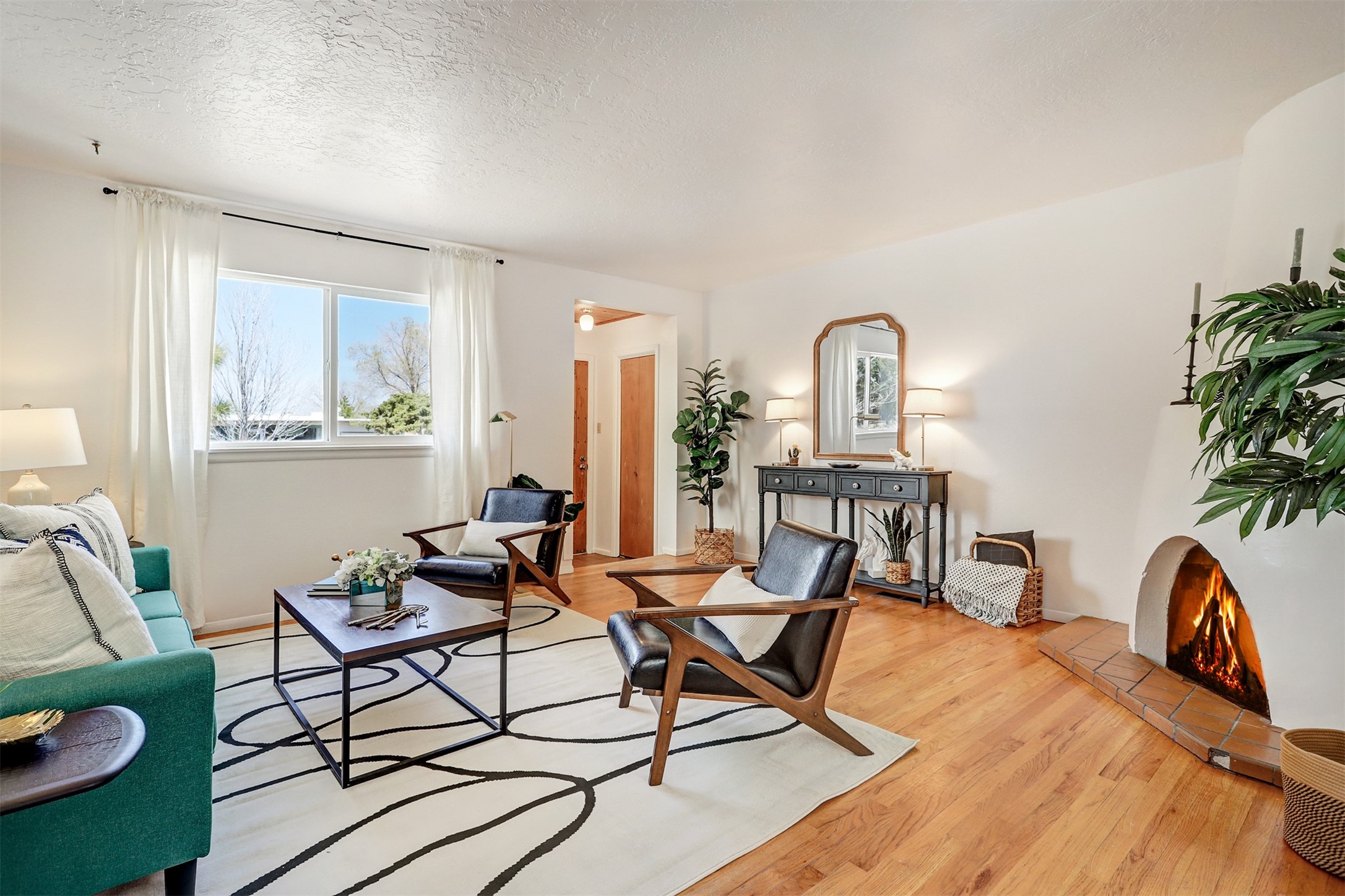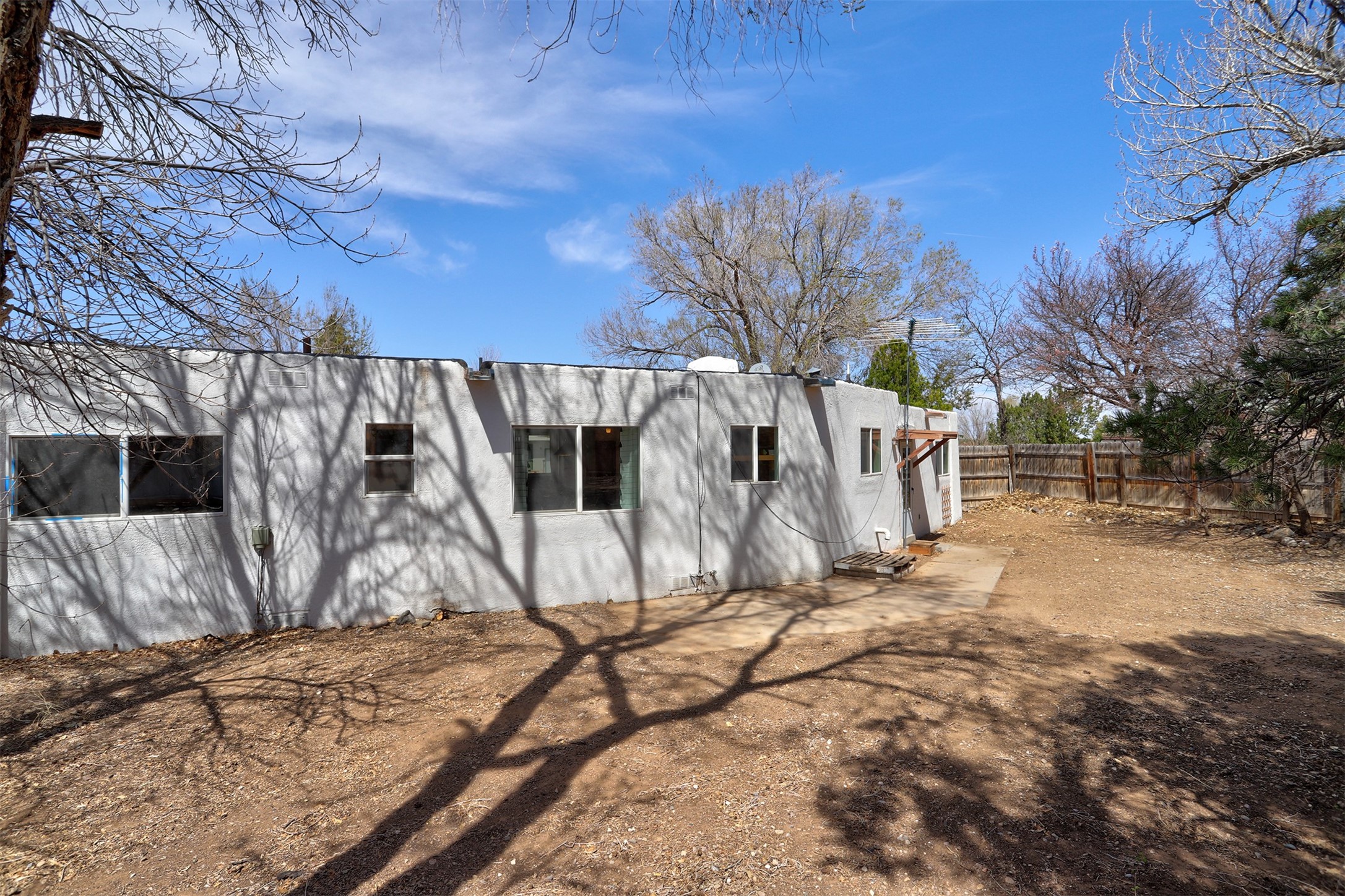 Located in White Rock, NM, this charming 1020-square-foot bungalow is full of character. Featuring hardwood floors and a traditional kiva fireplace, the home offers two bedrooms, two bathrooms, a cozy kitchen, dining area, and a small laundry room. Fresh paint on interior walls and ceilings. Parapets and windows have been sealed. This home is a wonderful opportunity to get in on the housing market. With its unique charm and ample potential, this property is a renovator's dream. The expansive lot truly sets it apart. The lot currently offers many trees, two sheds and a chicken coop but showcases endless possibilities for expanding the home out and/or up or the opportunity to design a truly special outdoor living space. This bungalow is a hidden gem just waiting to shine and be transformed into something truly special. Come see the potential for yourself! OPEN HOUSE: Sunday, April 6th from 12:30 to 2pm.