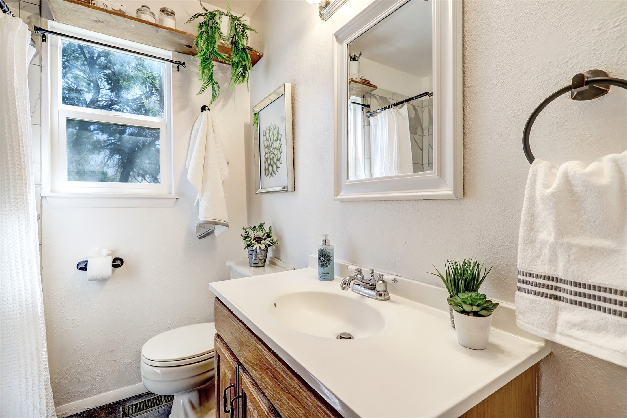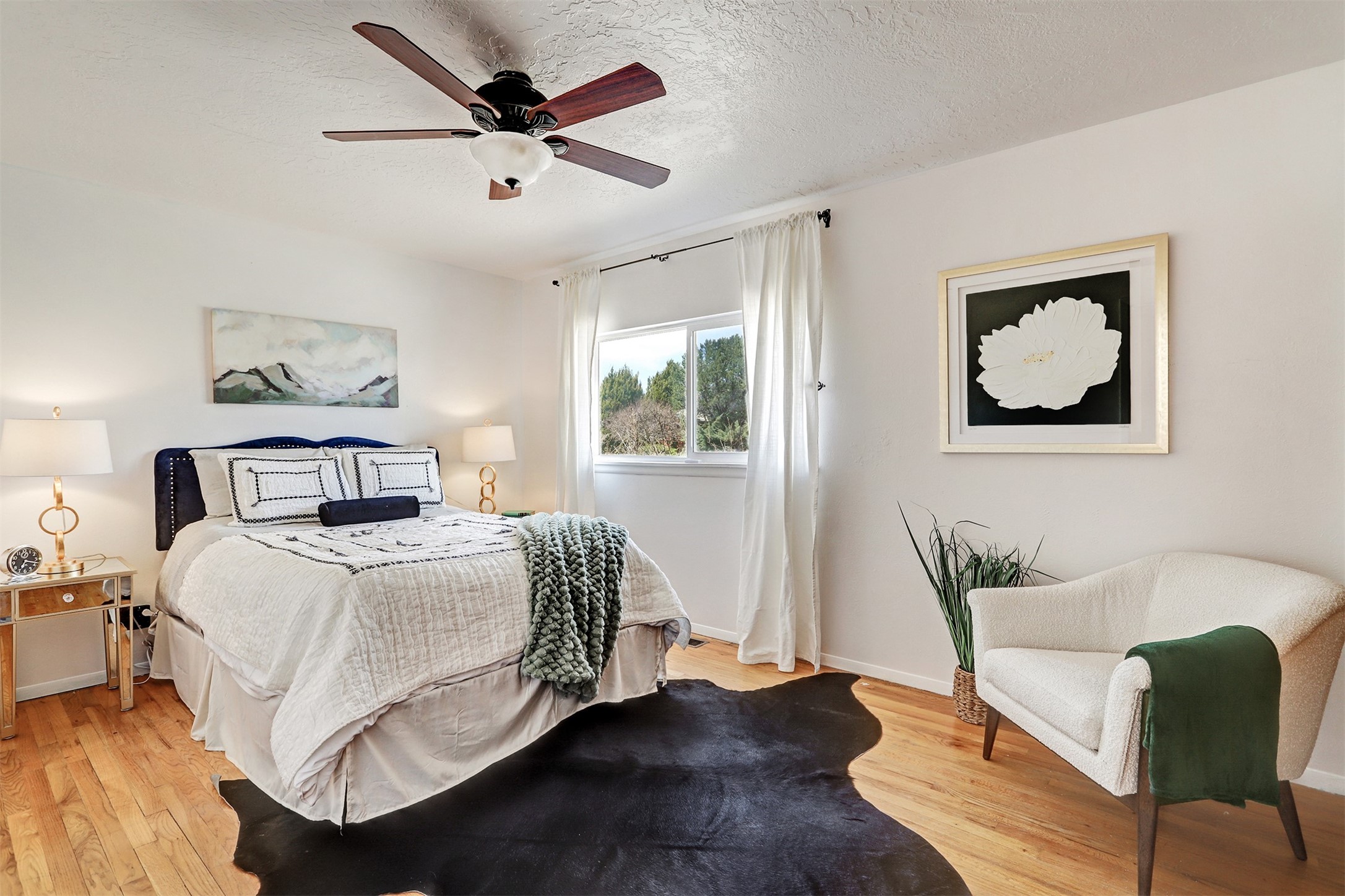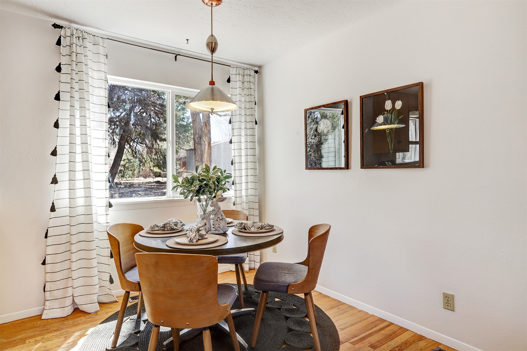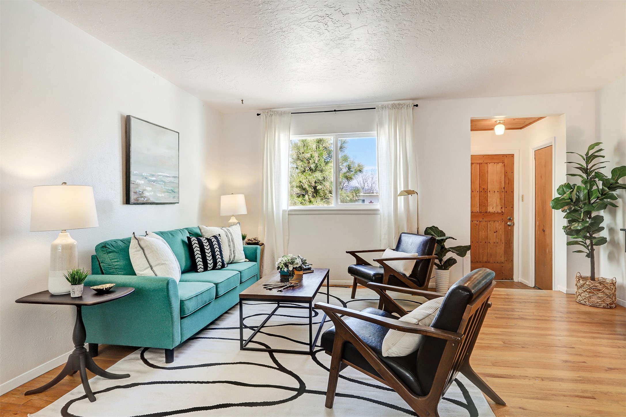 Located in White Rock, NM, this charming 1020-square-foot bungalow is full of character. Featuring hardwood floors and a traditional kiva fireplace, the home offers two bedrooms, two bathrooms, a cozy kitchen, dining area, and a small laundry room. Fresh paint on interior walls and ceilings. Parapets and windows have been sealed. This home is a wonderful opportunity to get in on the housing market. With its unique charm and ample potential, this property is a renovator's dream. The expansive lot truly sets it apart. The lot currently offers many trees, two sheds and a chicken coop but showcases endless possibilities for expanding the home out and/or up or the opportunity to design a truly special outdoor living space. This bungalow is a hidden gem just waiting to shine and be transformed into something truly special. Come see the potential for yourself! OPEN HOUSE: Sunday, April 6th from 12:30 to 2pm.