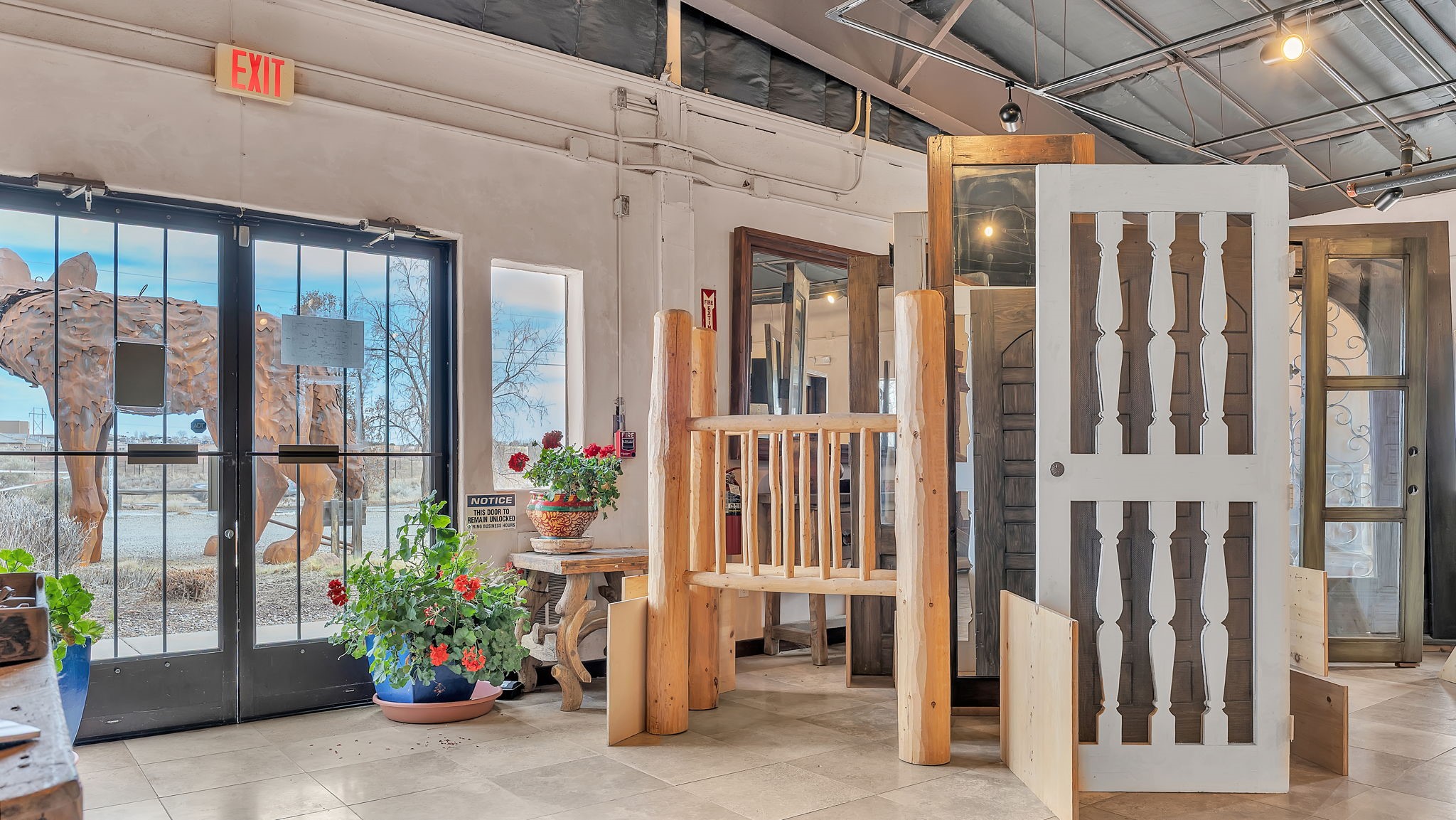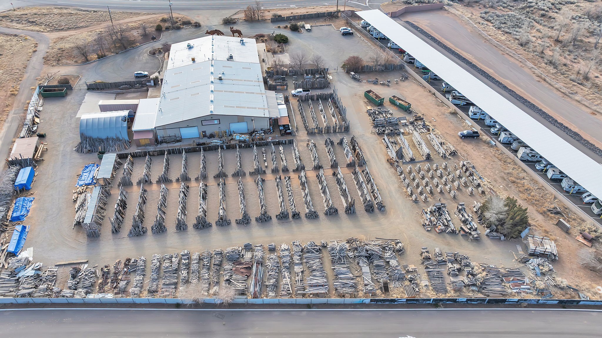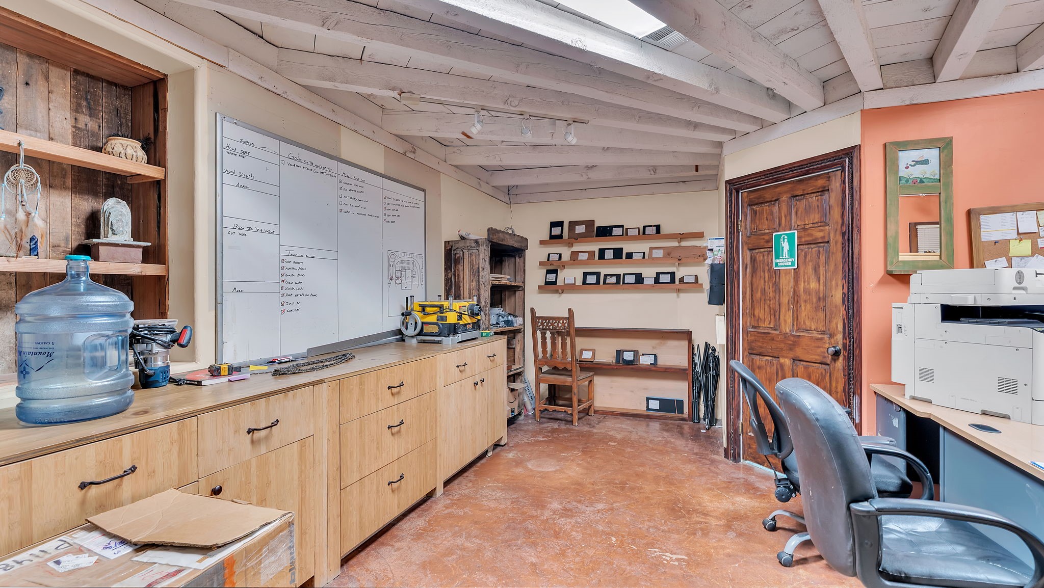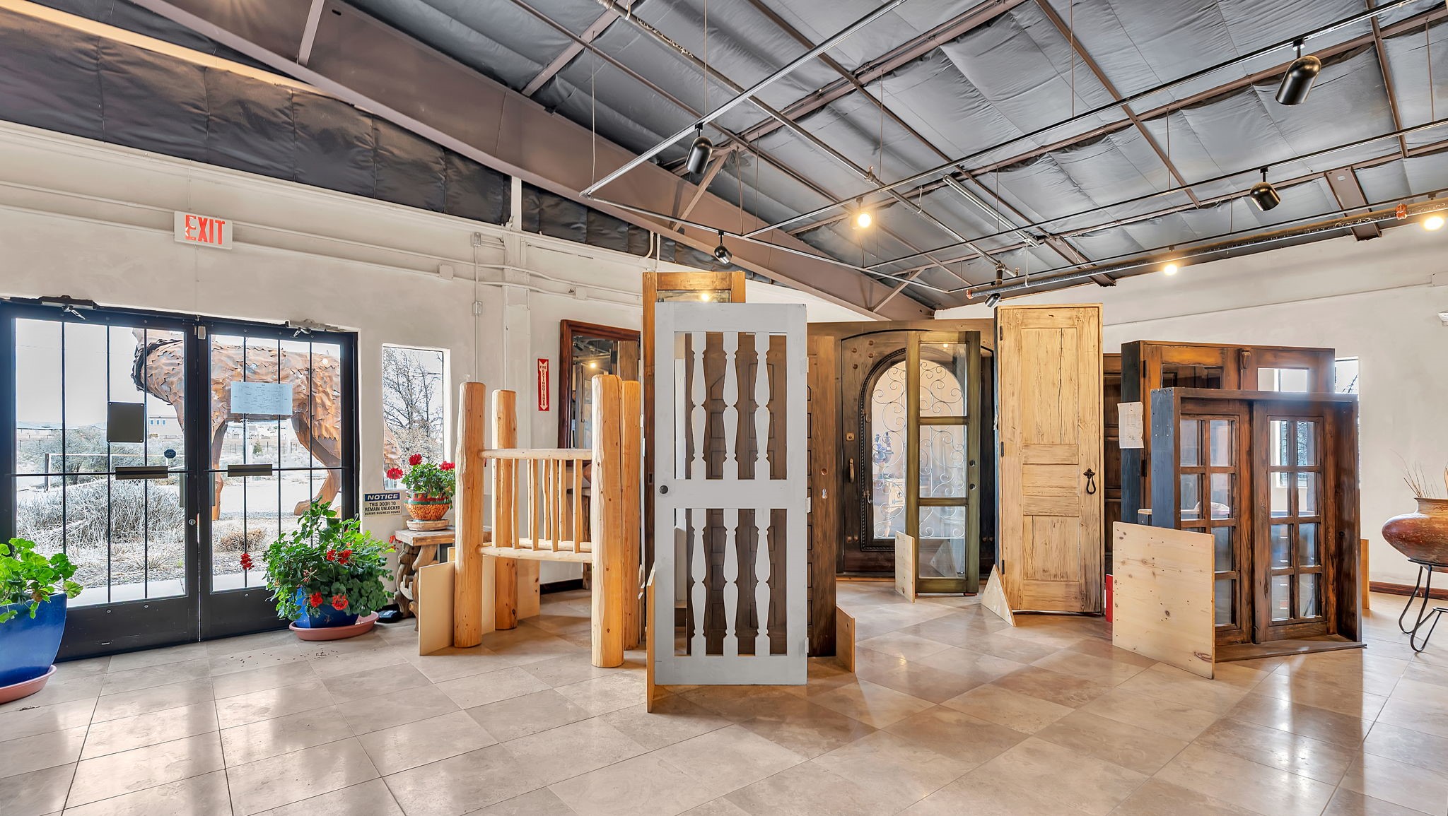 Unlock the Potential of This Prime 4.01-Acre Commercial Property! Situated just outside the Santa Fe city limits, this property delivers the flexibility, space, and strategic location to bring your vision to reality. With frontage directly on NM-14 and conveniently located less than a mile from I-25, this expansive 4.01-acre commercial property offers unbeatable visibility and accessibility. The impressive 19,140+/- square foot building features soaring ceilings (approximately 20 feet) and a versatile layout that accommodates a wide range of uses--from manufacturing and warehousing to dining, retail, art entertainment venues and more. Currently functioning as a woodworking and metalworking facility, the space includes:Showrooms: Ideal for displaying products or services.Private Office Spaces: Designed for efficiency and privacy.Loading Dock with Roll-Up Doors: Ensuring straightforward logistics and delivery.Restroom Facilities and Break Rooms: Providing convenience for staff and visitors.Storage Areas: Perfect for inventory and equipment.The entire property is easily accessible, complete with a fenced storage yard at the rear of the building offering additional utility. With ample parking space, this location can accommodate a significant number of vehicles. Strategically situated just 5 miles from the Santa Fe Regional Airport, this property provides excellent opportunities for business expansion, logistics, and connectivity to wider markets. Located within a Planned Development District -- a vibrant community of thriving establishments, including the Santa Fe Brewing Company, Rancho Viejo, Colibri, Turquoise Trail, and Valle Vista residential subdivisions, as well as the Bisbee Court Industrial Park. OWNER FINANCING AVAILABLE. Contact us today for more information or to schedule a visit.