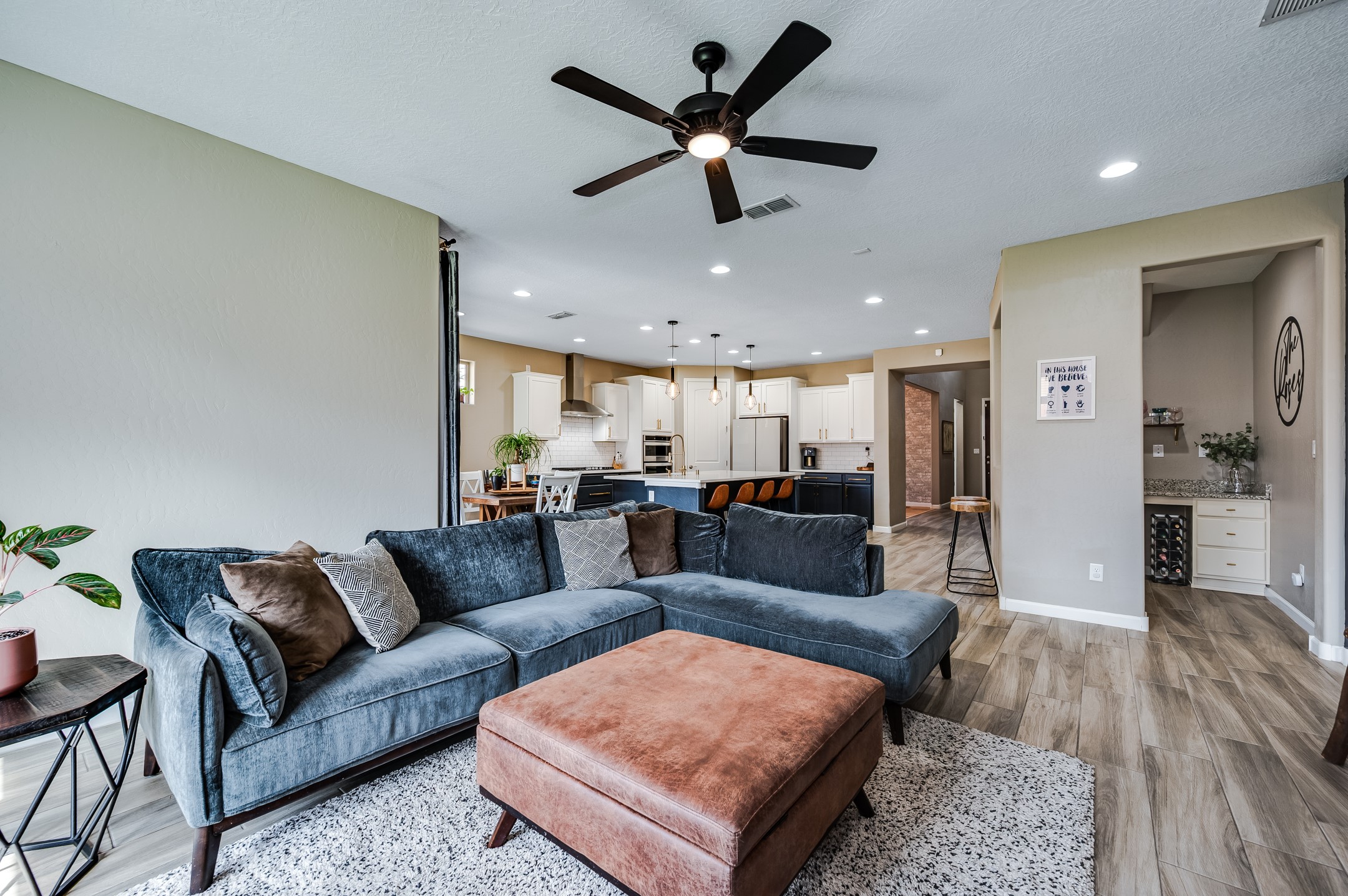 Discover stylish living in this newly listed Vistas de Las Soleras home. The skillfully designed Carissa floor plan caters to both everyday comforts and high-end entertaining. This stunning residence - in mint condition, features an open concept living area with bar, office, laundry, mud room, guest bed & bath AND a luxurious owners' suite...ALL on the main level. The heart of the home is anchored with a cozy fireplace, enhanced by the natural light streaming in from large windows. A recently renovated kitchen is equipped with top-tier appliances, large island with bar seating, and quartz countertops. Step outside to enjoy a charming back portal with its own fireplace, perfect for alfresco dining and entertaining. Established landscaping with irrigation, an attached garage that can accommodate 2-3 cars (or 2 + workshop), high ceilings, central A/C, and an upstairs den with guest suite for additional relaxation space or hosting visitors, all add to the appeal of this virtually new home. Proximity to essential amenities is a real plus - with Santa Fe Regional Airport, Santa Fe Place Mall, and Presbyterian Santa Fe Medical Center all within easy reach. Experience comfort and convenience in this beautifully crafted, move-in ready home. **See additional information in Broker Remarks. Details as provided by Sellers.**