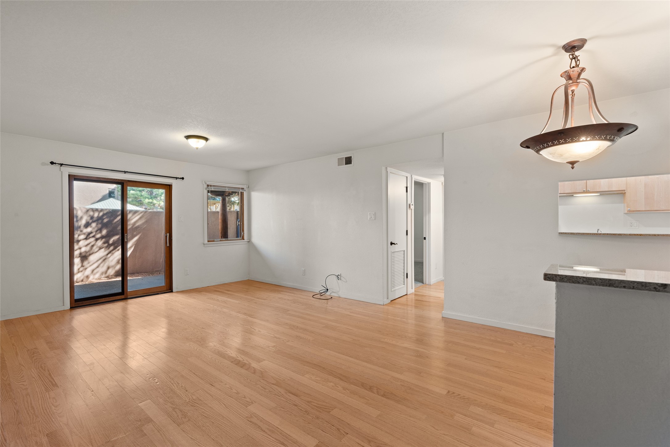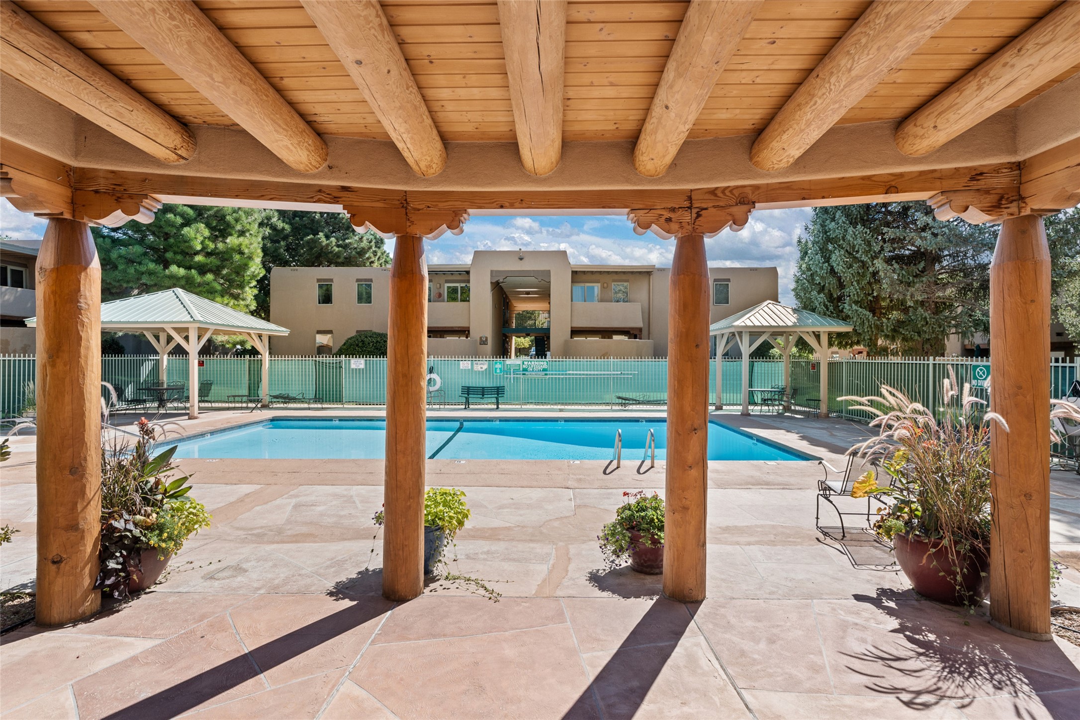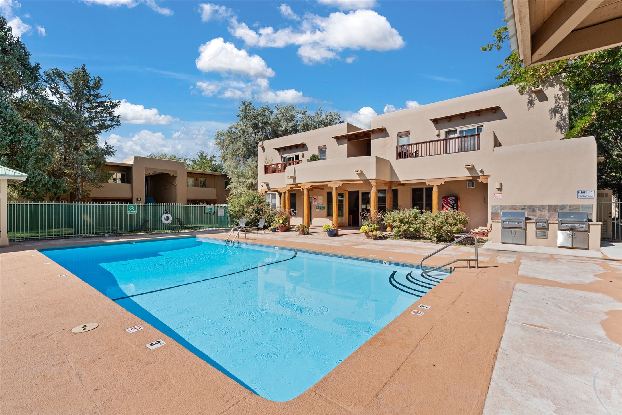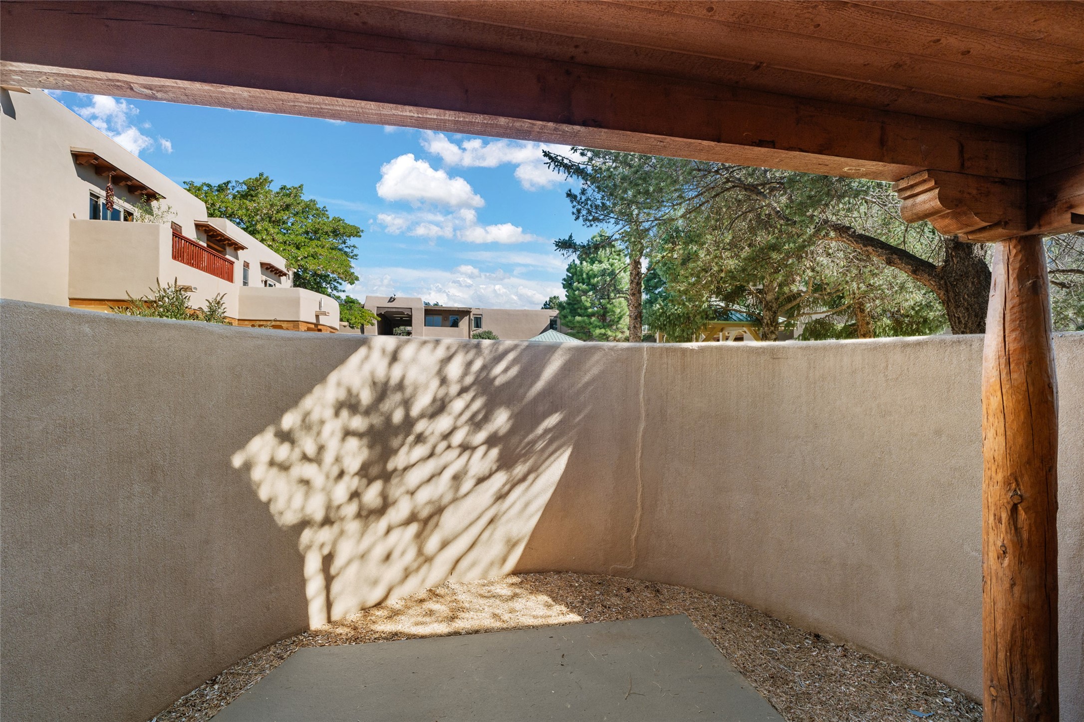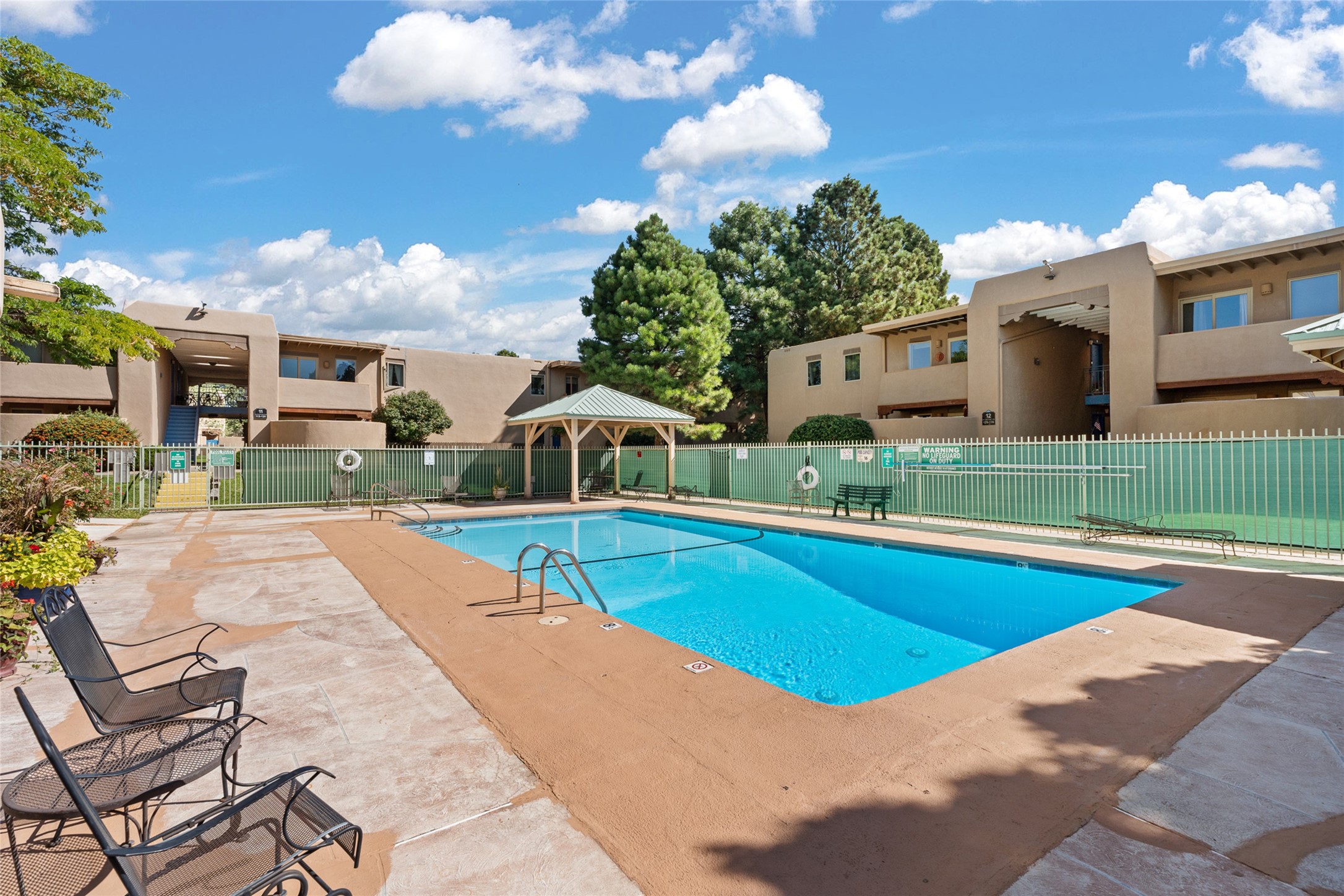 The San Mateo Condos are centrally located, close to shopping, the Santa Fe Plaza, the Rail yard with a farmers' market, restaurants, and hospitals. The grounds are beautiful, featuring a community pool. The community is gated and offers a convenient location to the Santa Fe and Albuquerque airports. This Condo is a one-bedroom, one-bath unit on the ground floor. It features engineered wood flooring, granite countertops, stainless steel appliances, air conditioning, and an outdoor patio off the large open living room and dining room. San Mateo Condos is a beautiful, serene oasis in the heart of Santa Fe. Look at this Condo; it might be right for you!