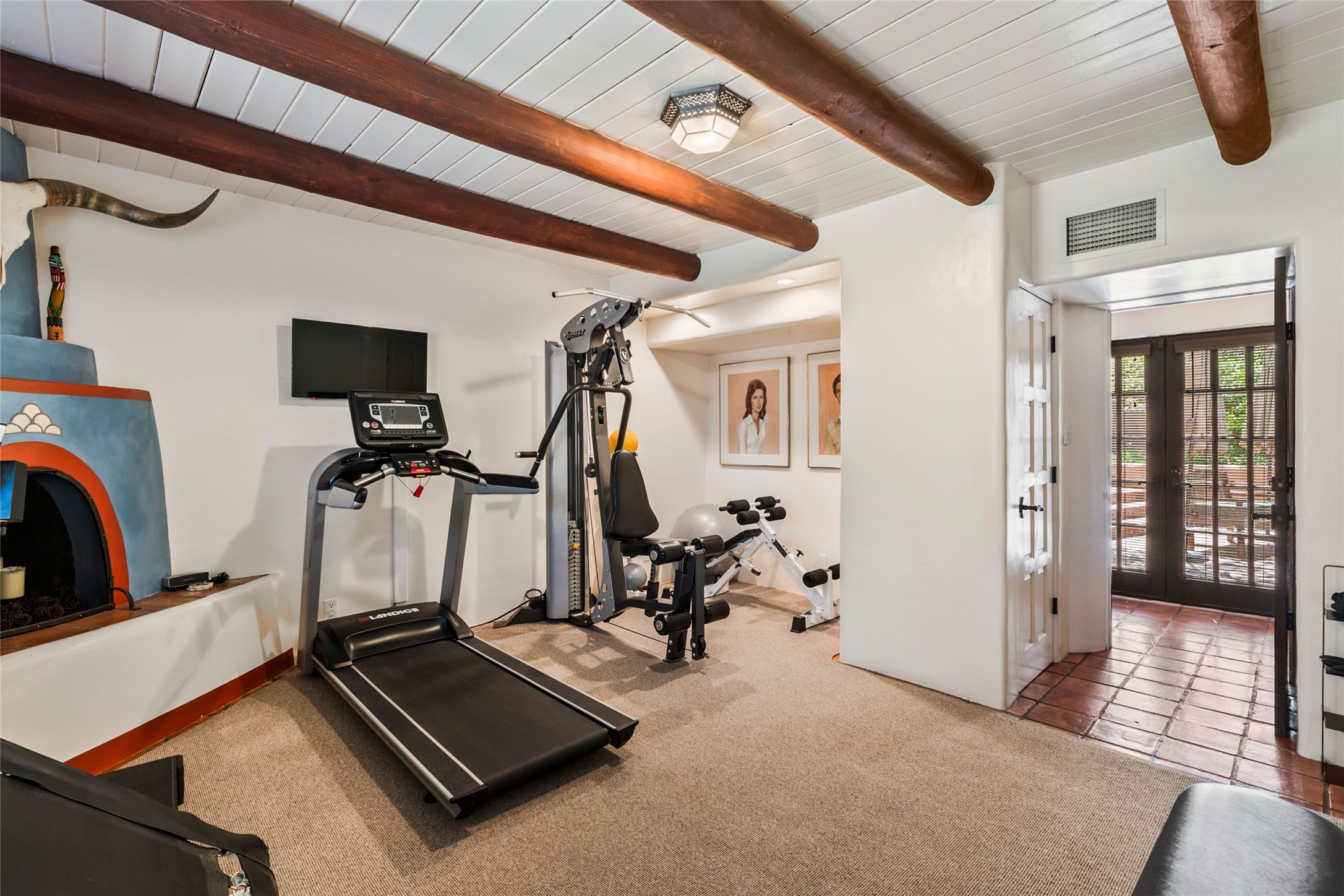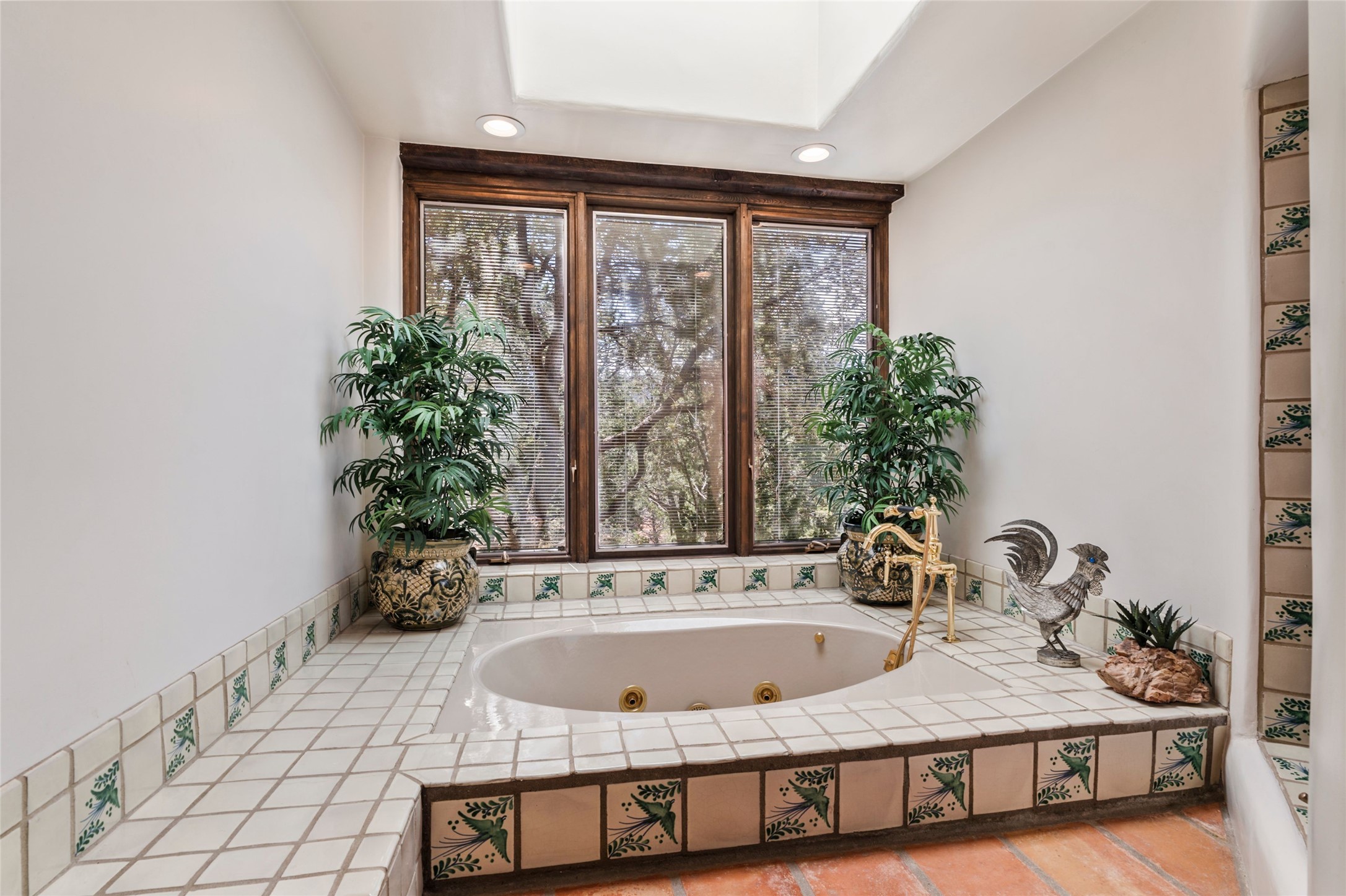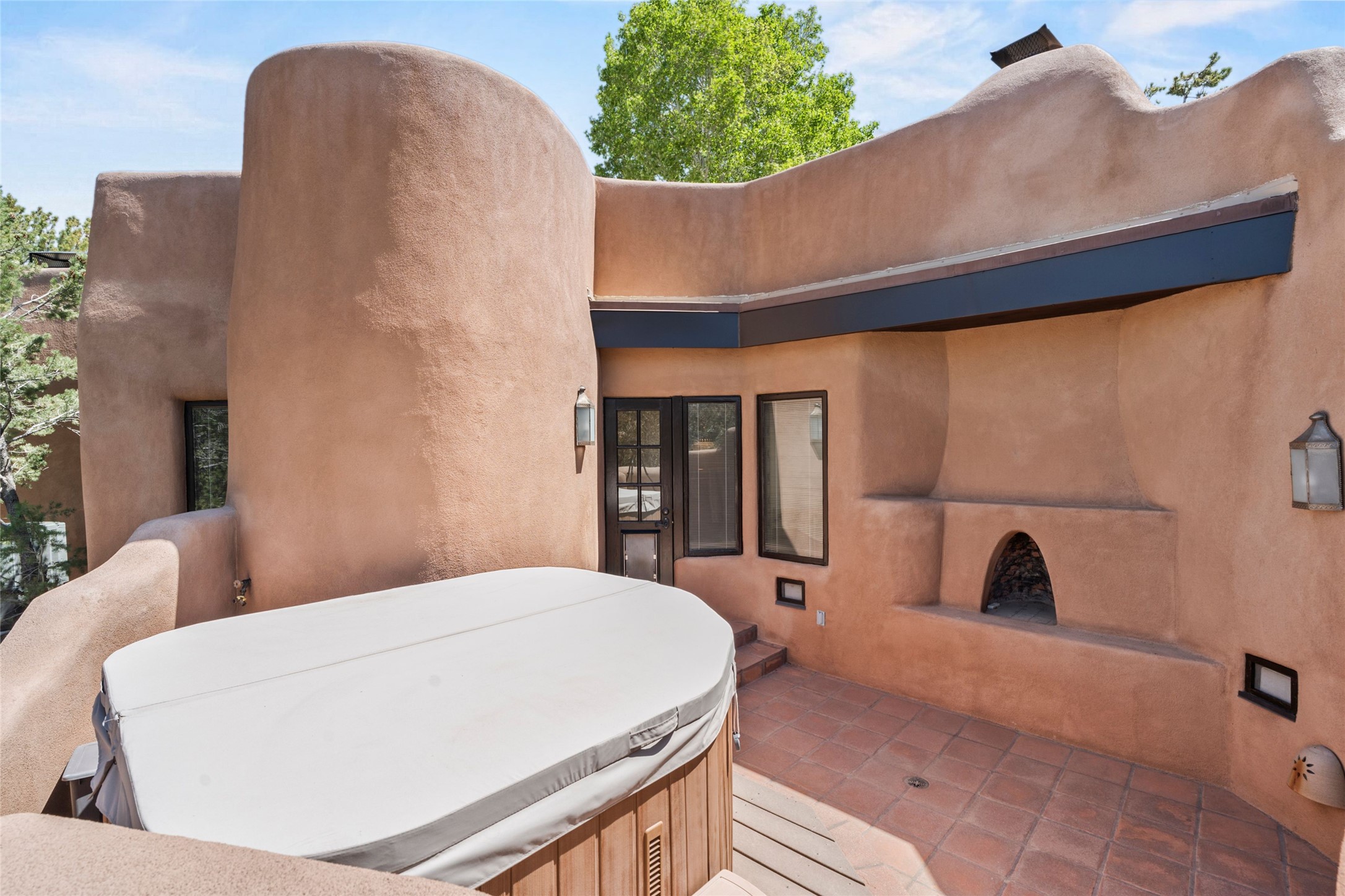 The elegant entry courtyard and portal set an appropriate tone for this impressive property. Privately hidden behind a gated wall is an impeccably maintained home, surrounded by mature trees and multiple courtyards. In addition to the main residence is a 1 bedroom casita. The main house is spacious , gracious and full of authentic Southwest details: vintage Saltillo floors, French doors, vigas, hand-carved and painted beams and woodwork, nichos, bancos and fireplaces. The primary bedroom is expansive and private, and opens to its own patio with hot tub, fireplace, and views.There are 2 additional bedrooms in the main house, plus many extras, including: a large office, a wet bar, a media/library room, a roof top deck and a generator that services the entire house. Plus ample parking (for up to 10 cars) and a 2 car garage are amenities not often found in this coveted Eastside neighborhood. And finally, the LOCATION - not to be missed!!!