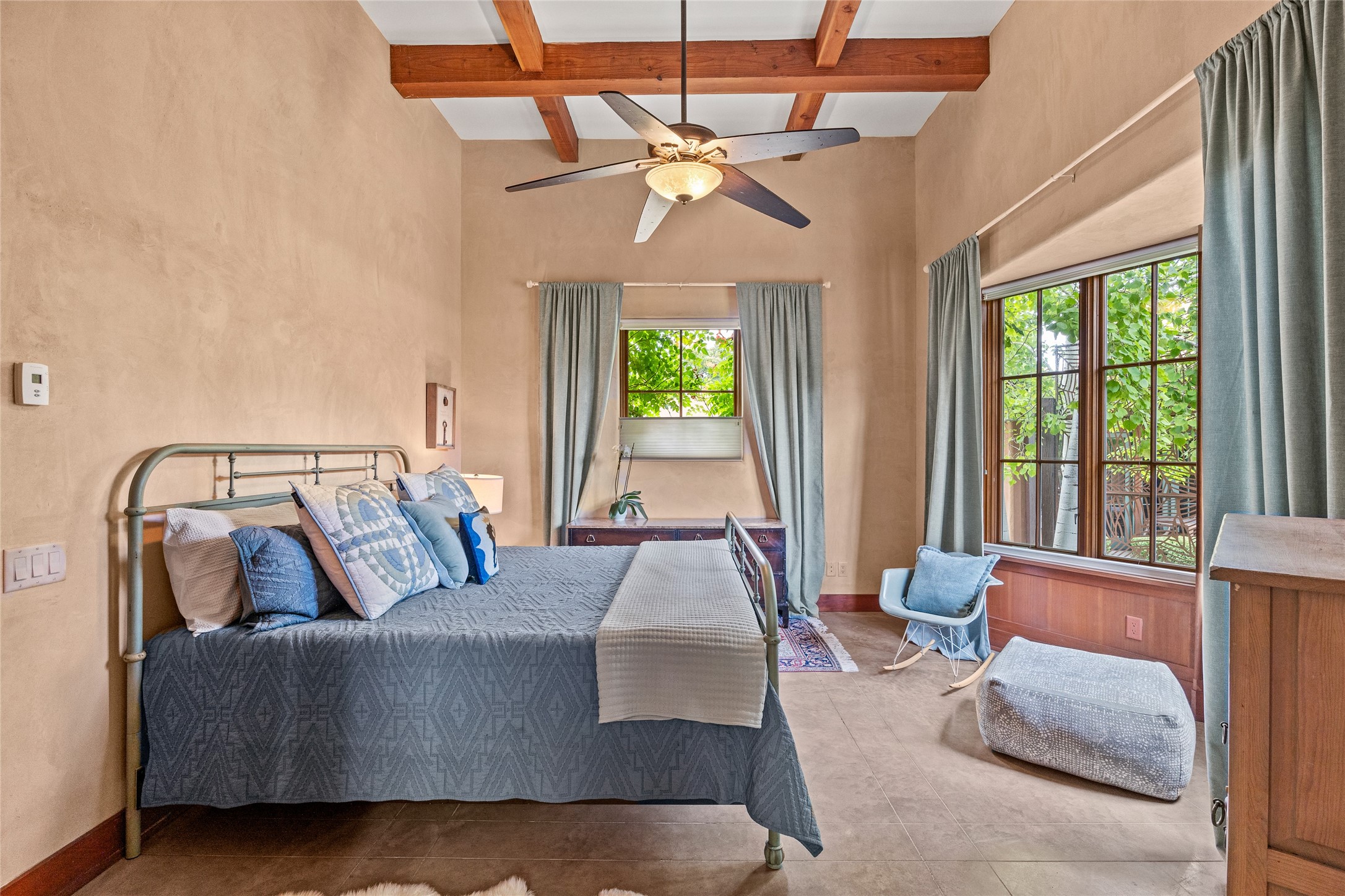 A Versatile Live/Work Opportunity in Prime Location.A rare find in the heart of Santa Fe's Eastside, this architect-designed property blends commercial versatility with residential charm. Zoned RAC (Residential Arts and Crafts), the home allows for office use, a live/work configuration, or an exceptional income-producing rental--perfect for a 3-bedroom Airbnb, a stylish 2-bedroom home with office, or your dream creative studio. Inside, you'll find soaring 12-foot ceilings, expansive windows that bathe the space in natural light, American Clay plaster finishes, polished granite countertops, and radiant in-floor concrete floors with mini split A/C systems. The flexible layout has functioned as an architect's studio, a short-term and long-term rental, and a personal residence.The contemporary kitchen features a long central island and seamlessly serves the open-concept living area. Two spacious ensuite bedrooms with baths offer private comfort, and the overall design supports many configurations.Additional highlights include two designated parking spaces, separate utility metering, and an outstanding location just minutes from the historic Plaza.Currently part of a family compound with 992 Old Pecos Trail, this home is available for individual sale, or it can be purchased in tandem with 992 to create an extraordinary multi-residence estate in the heart of Santa Fe. (See listing #202501407.)