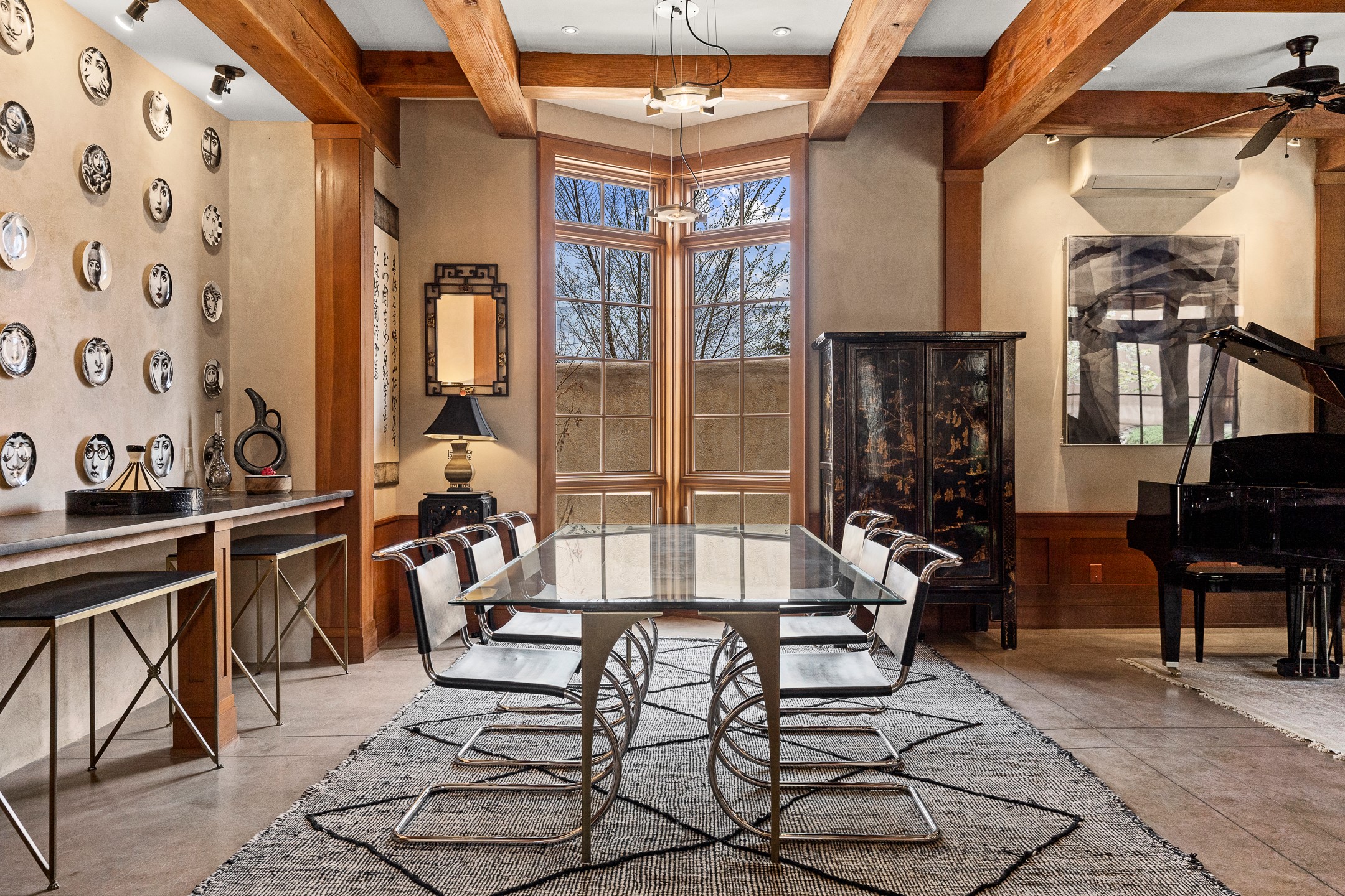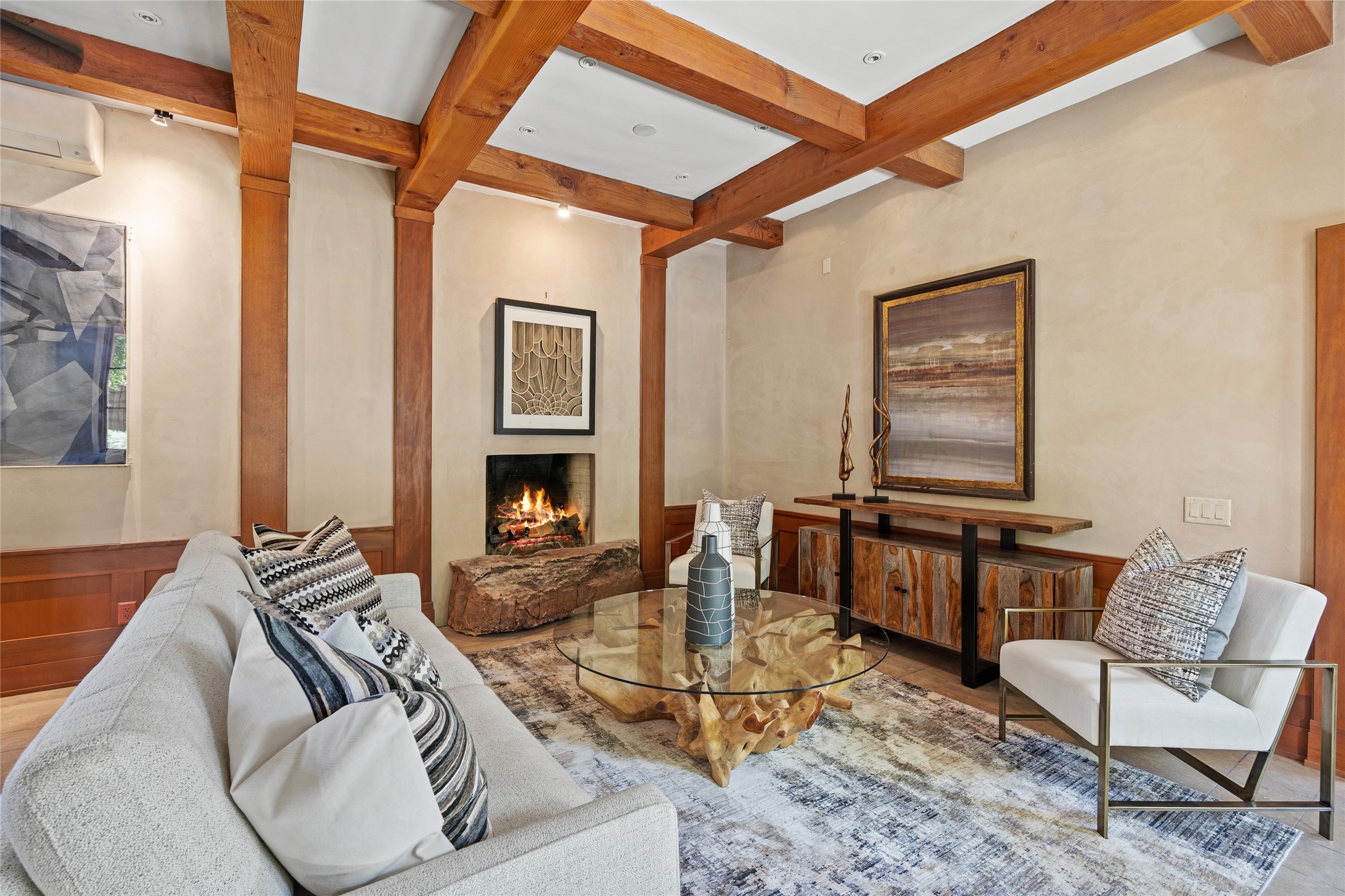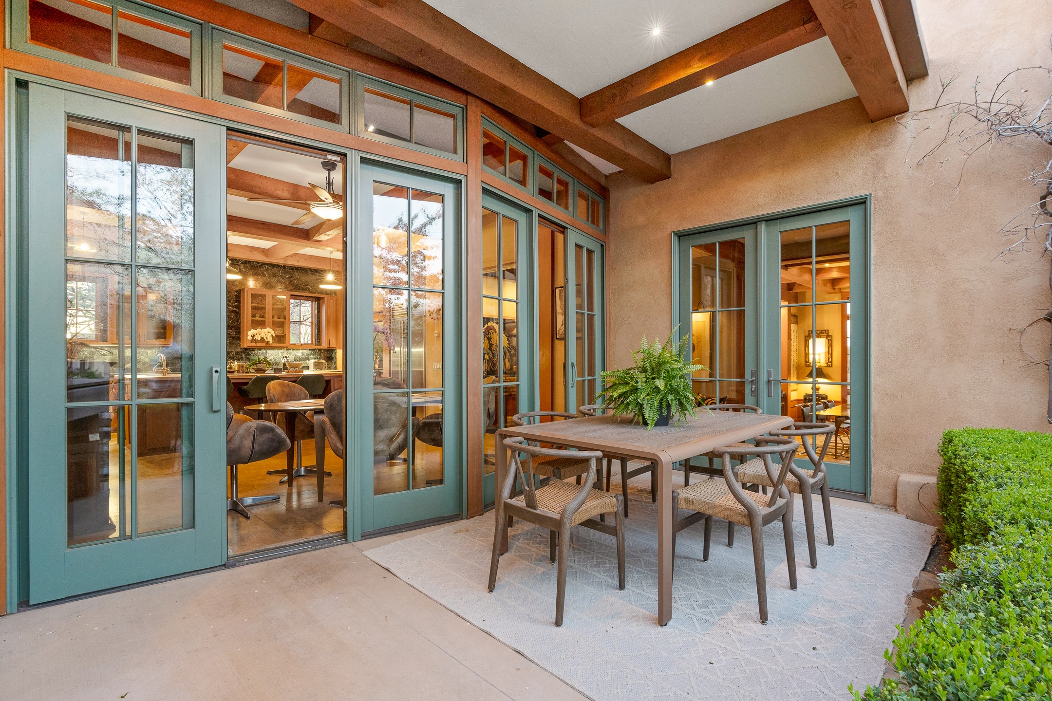 An Architectural & Design Masterpiece.A brilliant collaboration between renowned architect and designer has produced a serene, sophisticated sanctuary in one of Santa Fe's most desirable neighborhoods. This private, gated, 4-bedroom, 4-bath compound is located in the coveted Eastside along the Old Santa Fe trail just moments from the Plaza, Canyon Road, museums, shopping, and world-class dining. Recently elevated with extensive high-end upgrades, the property seamlessly blends quality craftsmanship with timeless elegance. Architectural highlights include soaring ceilings, natural American Clay plaster walls, Douglas Fir coffered wood beam ceilings, and dramatic floor-to-ceiling transom windows. Expertly curated lighting creates a warm and refined ambiance throughout. At the heart of the home is a stunning chef's kitchen--outfitted with a Subzero refrigerator and new Viking appliances--overlooking a beautifully landscaped central courtyard designed for effortless indoor/outdoor living. Each room opens to this verdant garden oasis featuring a tranquil waterfall fountain, lush greenery, alfresco dining, and multiple verandas for entertaining. The grand living and dining rooms are anchored by a natural stone fireplace and expansive glass doors that frame a courtyard garden with mature Wisteria, Aspen, and a stately Cherry tree. Upstairs, the luxurious primary suite offers breathtaking views of Picacho Peak and includes a spa-like bath with Jacuzzi tub, steam shower, dual vanities, and walk-in closet. The crown jewel: a private rooftop terrace with fireplace, cedar hot tub, sauna, and wrap-around deck--perfect for starry Santa Fe nights. Additional amenities include a 2.5-car garage, new mini splits, recessed lighting, designer tile work, and custom draperies. This property is currently part of a rare compound opportunity with 994 Old Pecos Trail next door. While both homes are offered individually, a buyer also has the unique opportunity to purchase them together and create an extraordinary multi-residence estate. (See listing #202501401.)