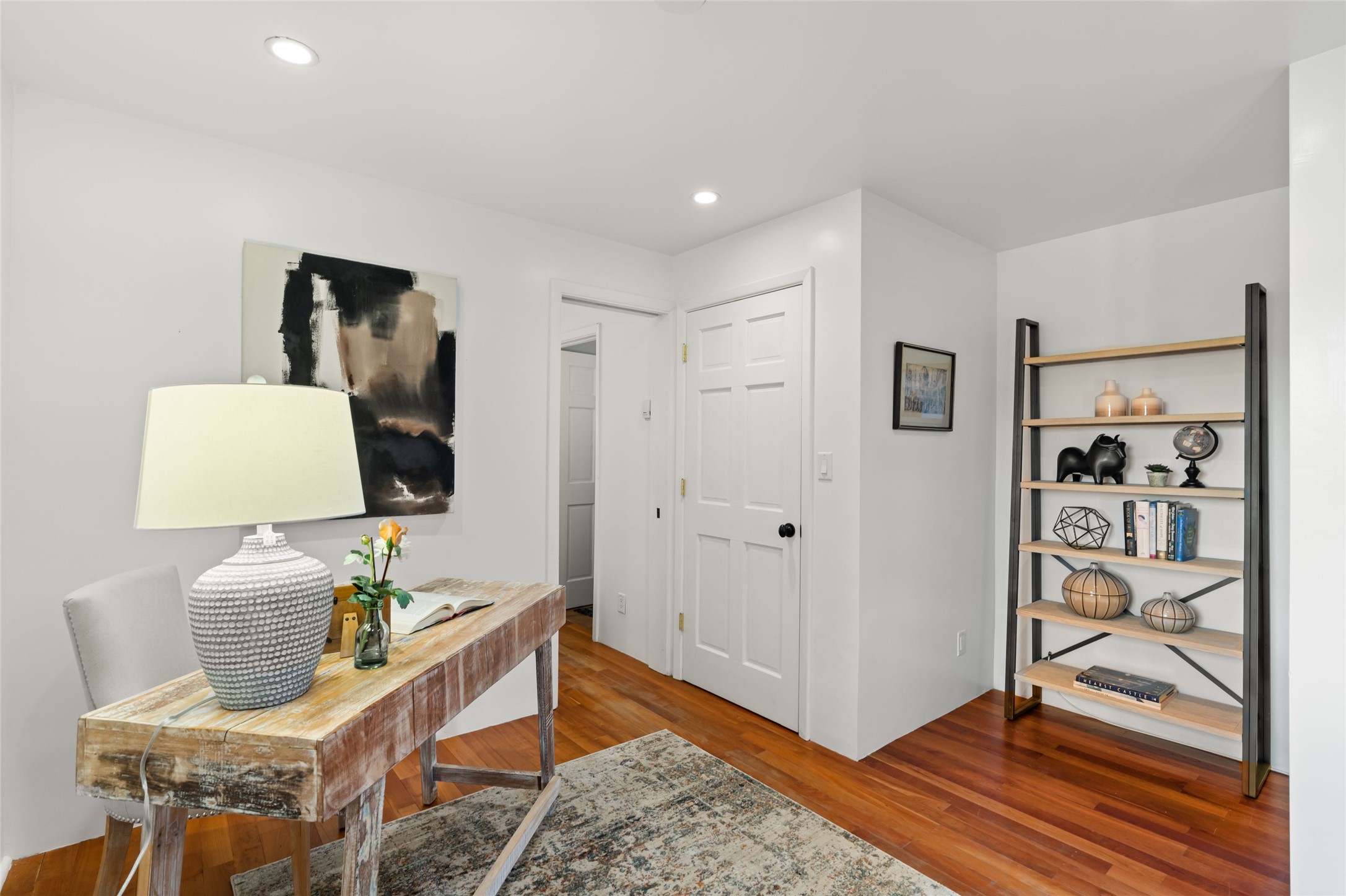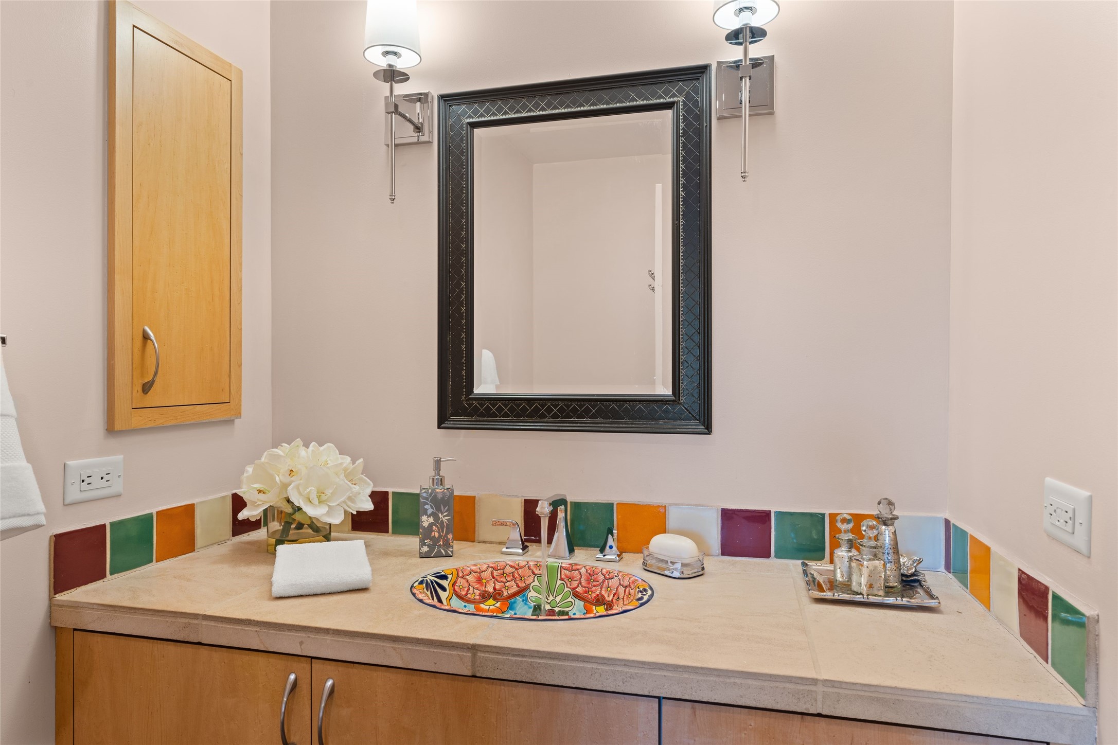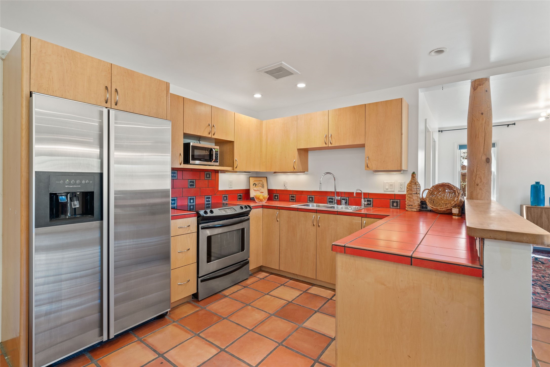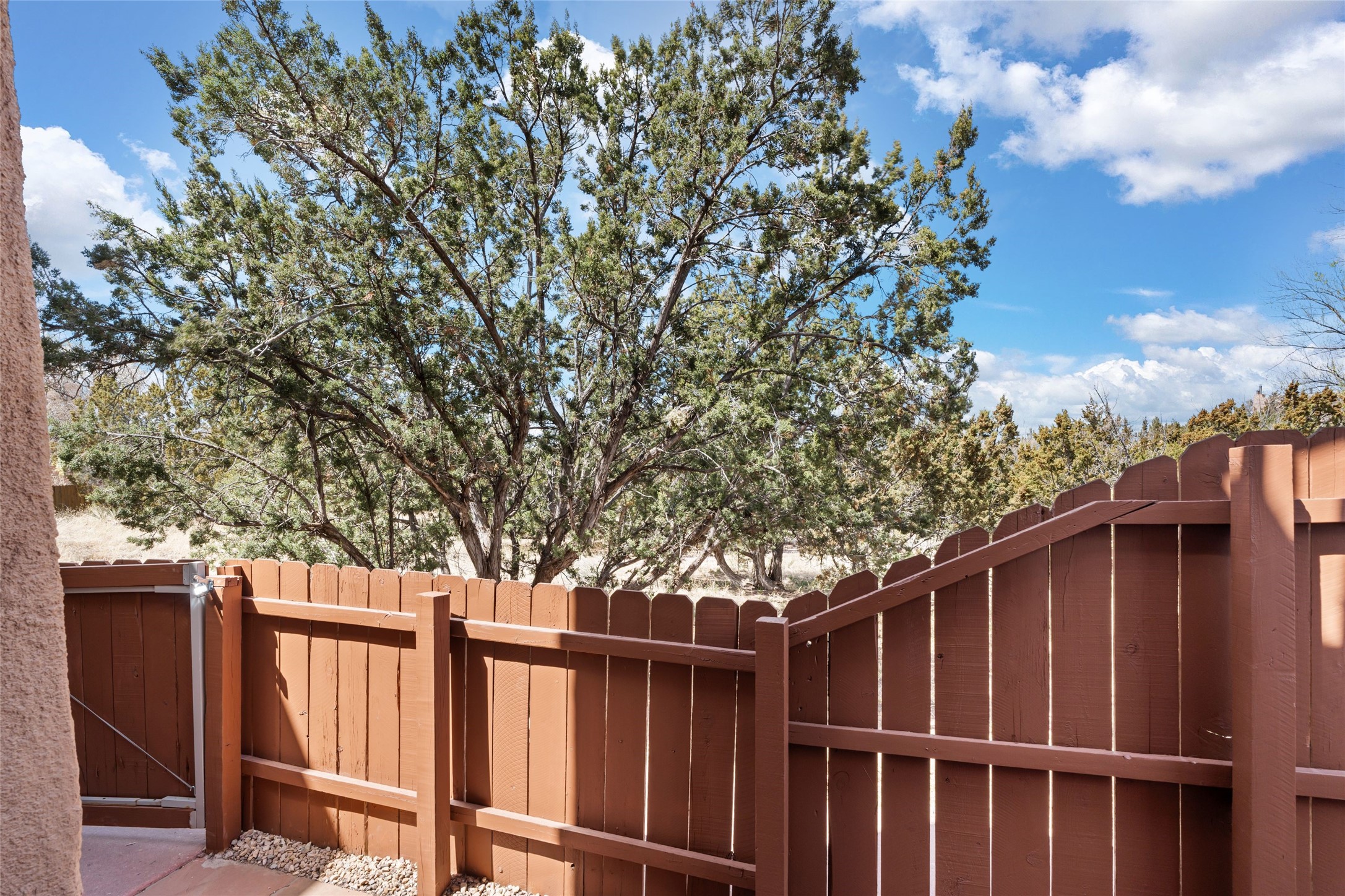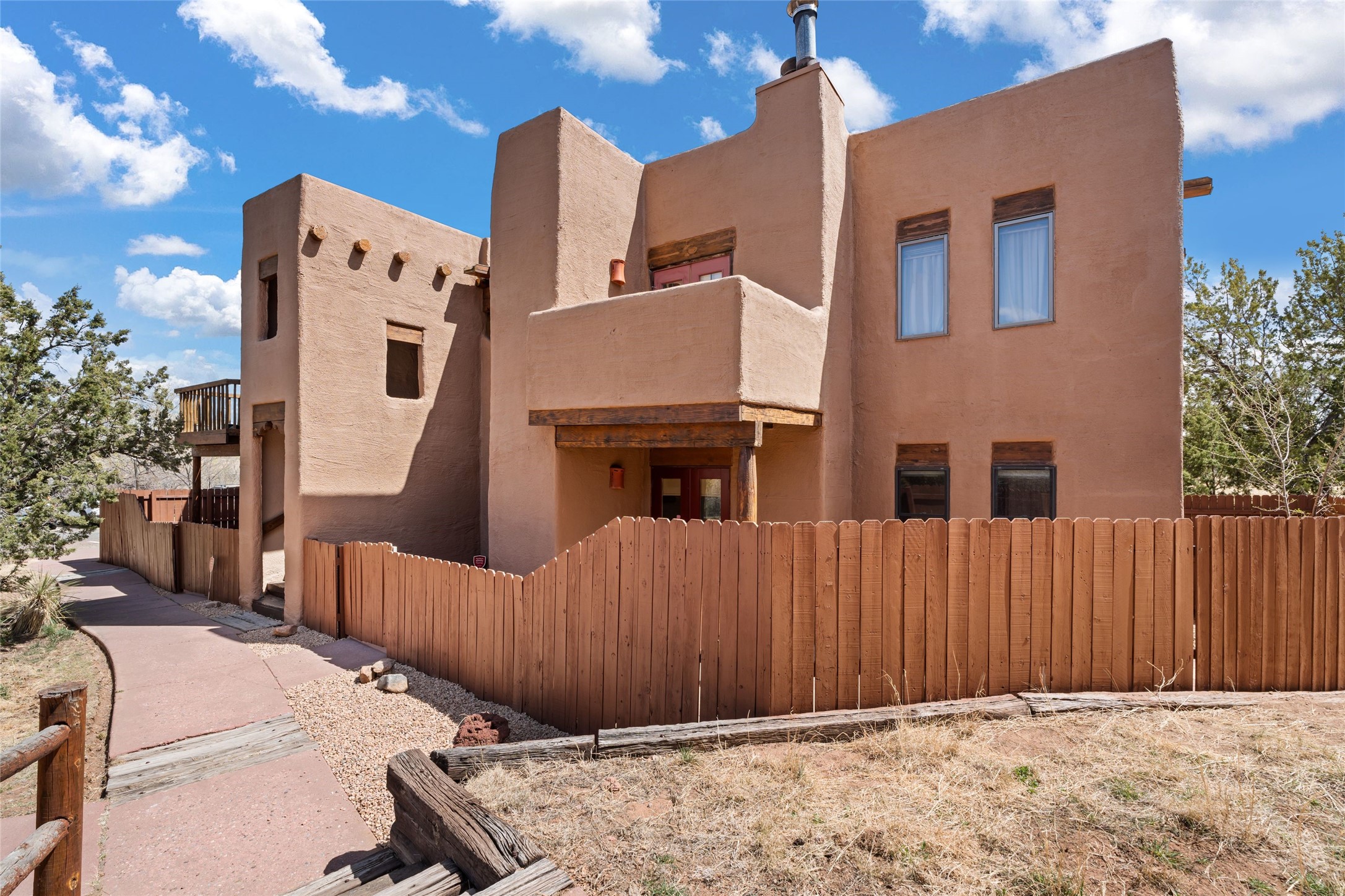 BRAND NEW PRICE!!! Tucked away down a private lane, this single level condo has exceptional CHARM! Beautifully updated and tastefully remodeled this light filled condo offers 1432 sf of living space in a flexible floor plan. It is pristine and was architecturally re-designed combining two units to create a one clever floor plan now offering a 3 bedroom, 3 bathroom condo. In addition it offers 2 spacious fenced courtyards and is an end unit situated on a gated 13.5 ac property. The community property offers a pool with ramada & BBQ, walking trails with foot bridges, vast Pinon groves, plus 2 large ponds filled with KOI and fountains. This is a MUST SEE condo!!The main living area offers dining room ensconced with a crystal chandelier and wood burning Kiva flowing into the living room. The kitchen appointed with custom cabinets, designer tile, stainless appliances, & the sink outfitted with a Hans Grohe faucet. Entire space opens to a west facing dining patio through charming French doors ....The large owner's suite is a retreat featuring wood floors, wood burning Kiva, walk-in closet, a beautifully appointed en-suite with Talavera sink, luxury jetted soaking tub, & separate shower with river rock floor. More French doors lead to 2nd fenced courtyard overlooking Pinion groves. The 2nd bed also includes en-suite, and the 3rd bed could also be perfect for office or den.The designated laundry area with washer/dryer has custom wood cabinets and counters for folding convenience. The Saltillo tiles & wood floors throughout offer radiant heat and efficient duct refrigerated air for the warmer seasons. If closet and storage space is a priority, well then this condo is for you! Aside from the 2 walk-in closets there are another 2 semi walk-in closets for storage. This is a rarity among condos!This is a one of a kind end unit that lives like a home with windows on all three sides, plus 4 designated parking spaces right next to the unit for your convenience, and excellent proximity to shopping centers and Ragle Park across the street.* Seller willing to pay 6 months of HOA dues.*Excellent opportunity to own large turn key condo that is priced to sell!