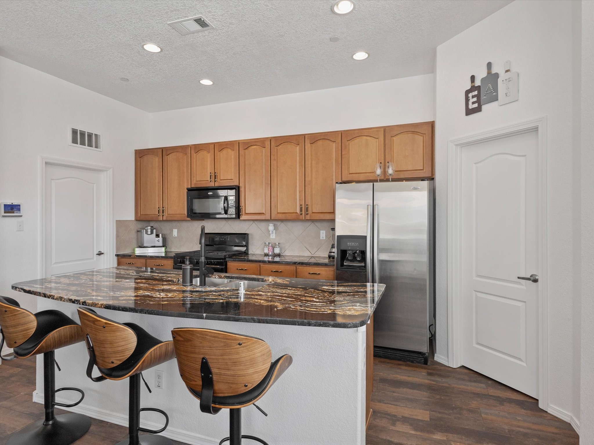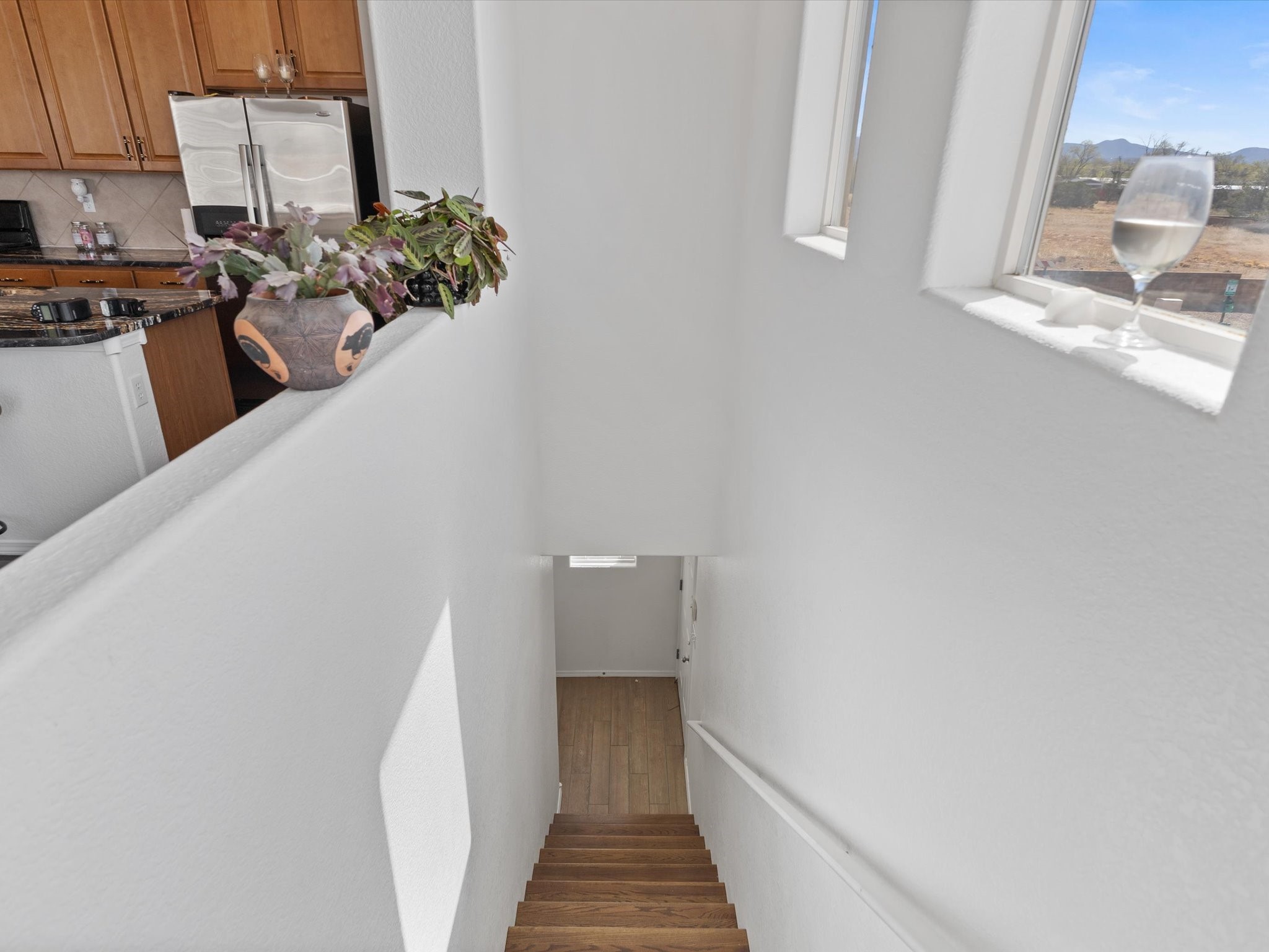 Modern Living in the Heart of Santa Fe - Ranchos Santos Condos.Elevate your lifestyle in this beautifully remodeled condo, a true contemporary gem nestled in the highly sought-after Ranchos Santos Condos. Featuring 2 bedrooms and 2 bathrooms, this stylish unit offers a seamless blend of comfort and functionality.Step inside to discover a bright and airy interior filled with natural light from large windows throughout the space. The open layout is enhanced by modern finishes, forced air heating, and air conditioning--ensuring year-round comfort.The kitchen is equipped with stainless steel appliances, a convenient breakfast counter, and a spacious pantry to help keep everything organized and clutter-free. The primary bedroom features an en-suite bathroom and a generous walk-in closet for all your storage needs.With an attached one-car garage, this condo offers added convenience and security. Enjoy being centrally located near shopping centers, gyms, restaurants, scenic trails, and more--everything you need is just minutes away.Whether you're a first-time homebuyer or looking to downsize in style, this upgraded condo is the perfect place to call home in Santa Fe.