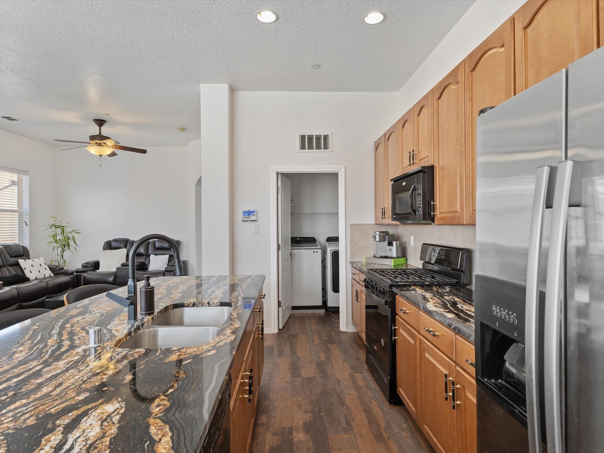 - AppliancesDryer, Dishwasher, Electric Cooktop, Disposal, Gas Water Heater, Microwave, Oven, Range, Refrigerator, Water Heater, Washer