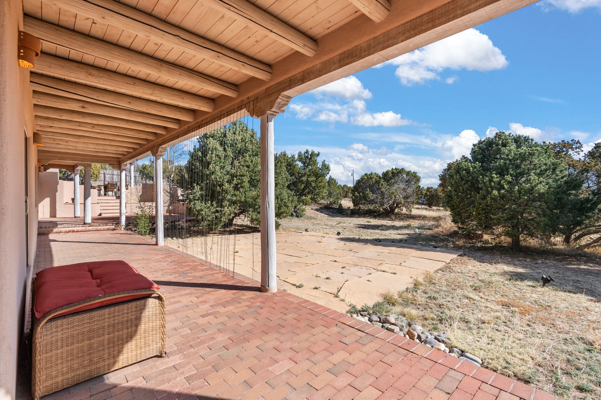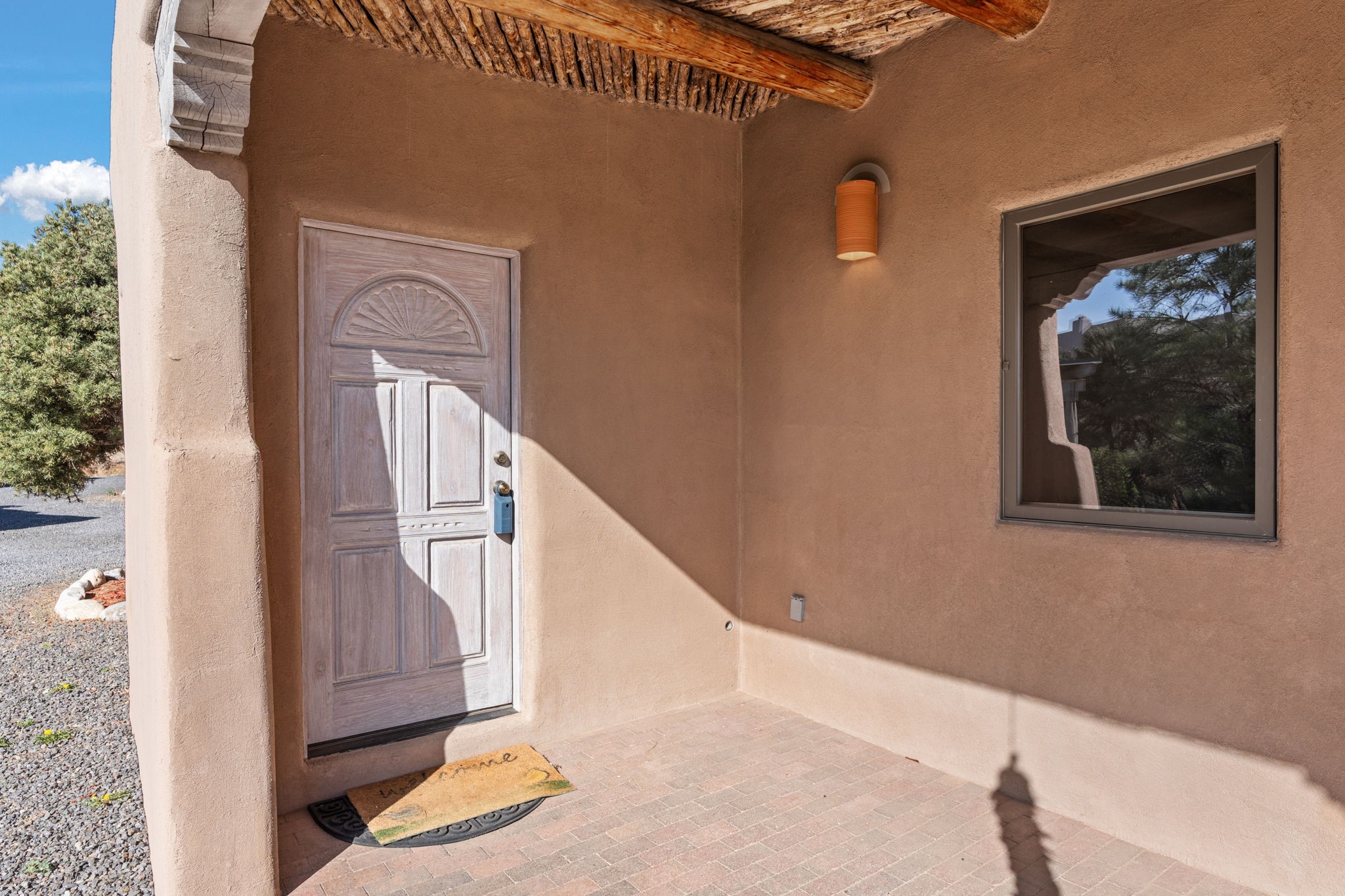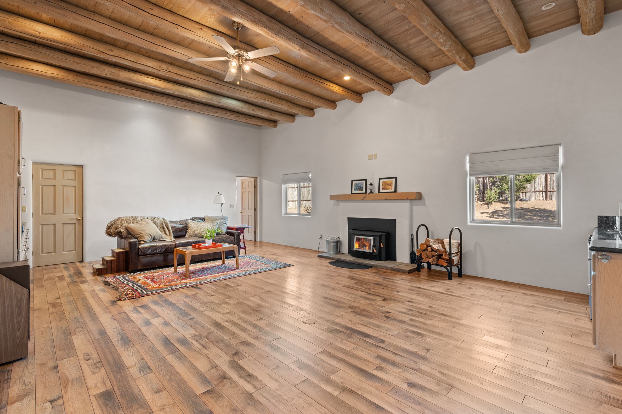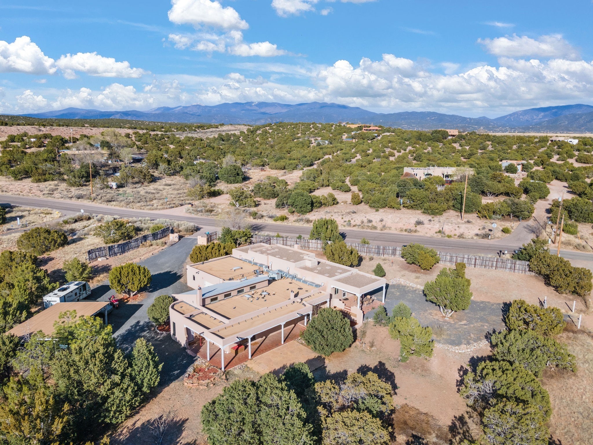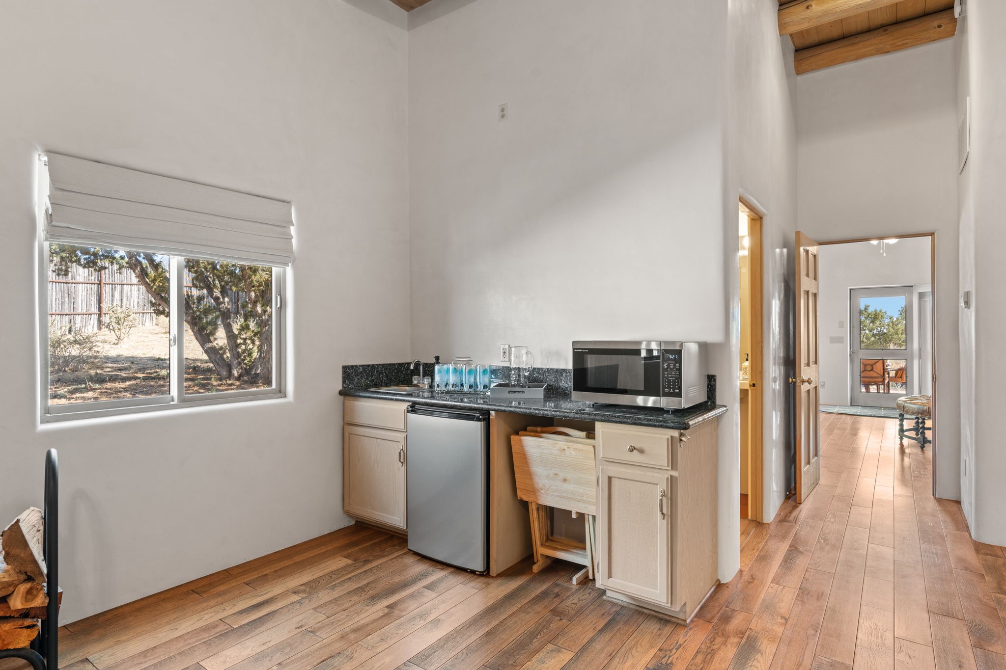 Welcome to your dream retreat: a 3,956-square-foot haven where classic Southwestern charm meets modern comfort. Located just minutes from downtown, this thoughtfully designed 3-bedroom, 3-bath home sits on 1.08 private acres with no HOA.Inside, you'll find Saltillo tile floors, hand-troweled plaster walls, and a generous living room with coved ceilings and abundant natural light. Clerestory windows and skylights fill the home with sunshine, and a sliding door opens to a stunning wraparound portal--perfect for year-round entertaining or quiet evenings under the stars.The kitchen is a chef's delight with newer appliances, ample cabinetry, and a spacious walk-in pantry. A charming office features traditional vigas and a latilla ceiling, ideal as a serene workspace or studio.The primary suite offers a corner kiva fireplace, two walk-in closets, and a private portal entrance. The updated en-suite bath includes a deep jetted tub and custom tile. The guest bath features a colorful Mexican tile arch over the tub for added charm.A lovely newer addition expands the living space with hickory wood floors, two bright bedrooms, a stylish bath with sun shower, and a large den with a fireplace, wood stove insert, built-ins, kitchenette, and wet bar. One bedroom has its own portal entrance for added privacy.Modern comforts include forced air heat, refrigerated air, and in-floor radiant heat in the newer section. Outside, you'll find a one-car garage, two-car carport, and a versatile studio once used for pottery--now a great workout space or creative workshop.This special home blends timeless Santa Fe architecture with thoughtful updates and artistic flair. More than a home--it's a lifestyle.