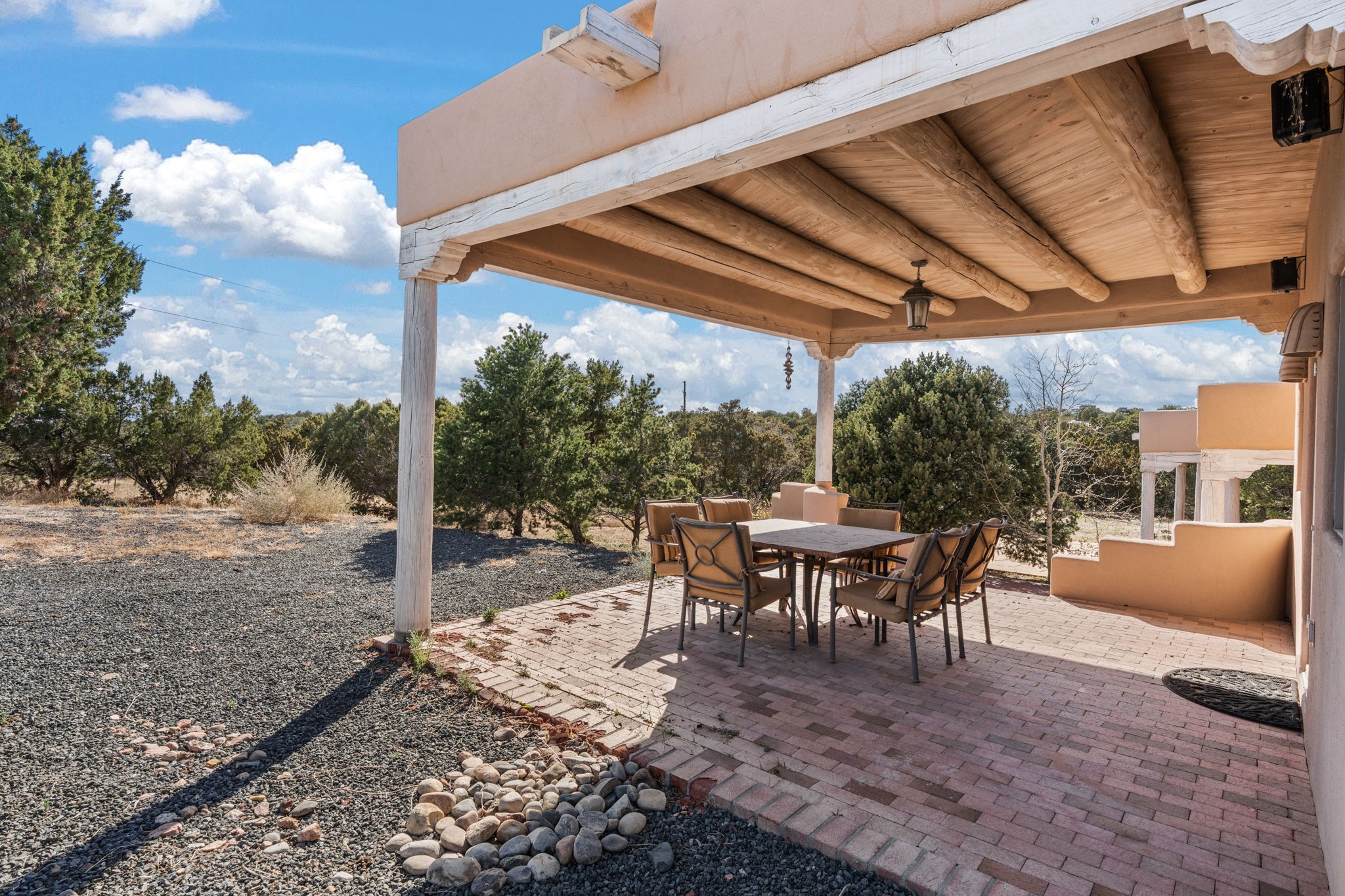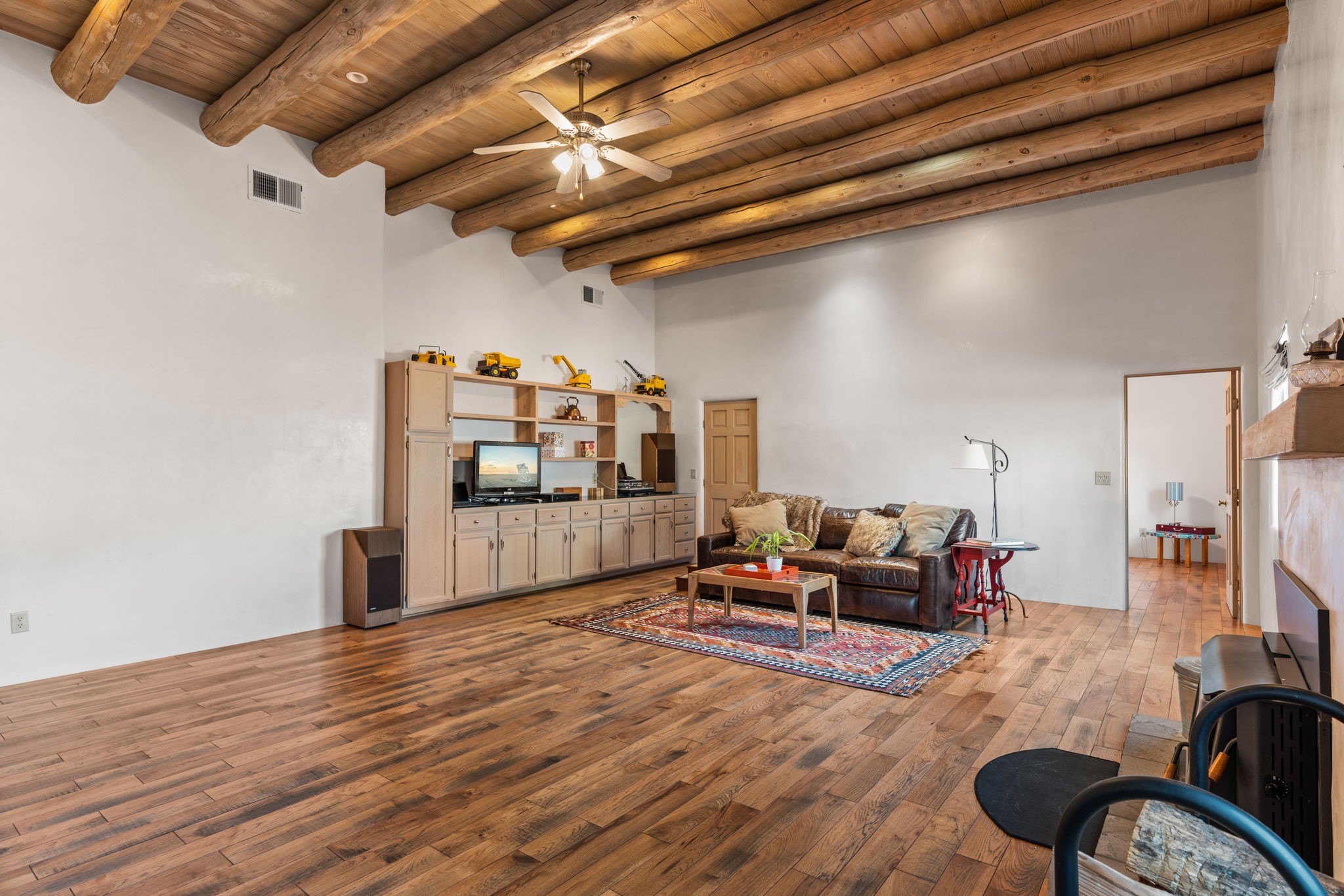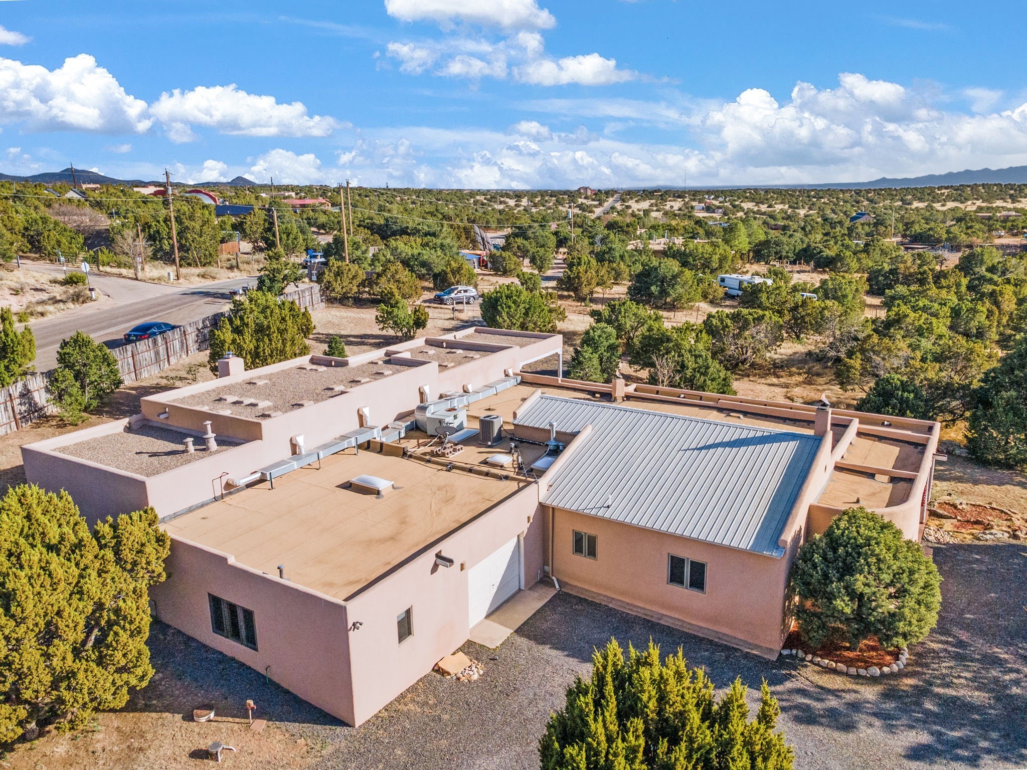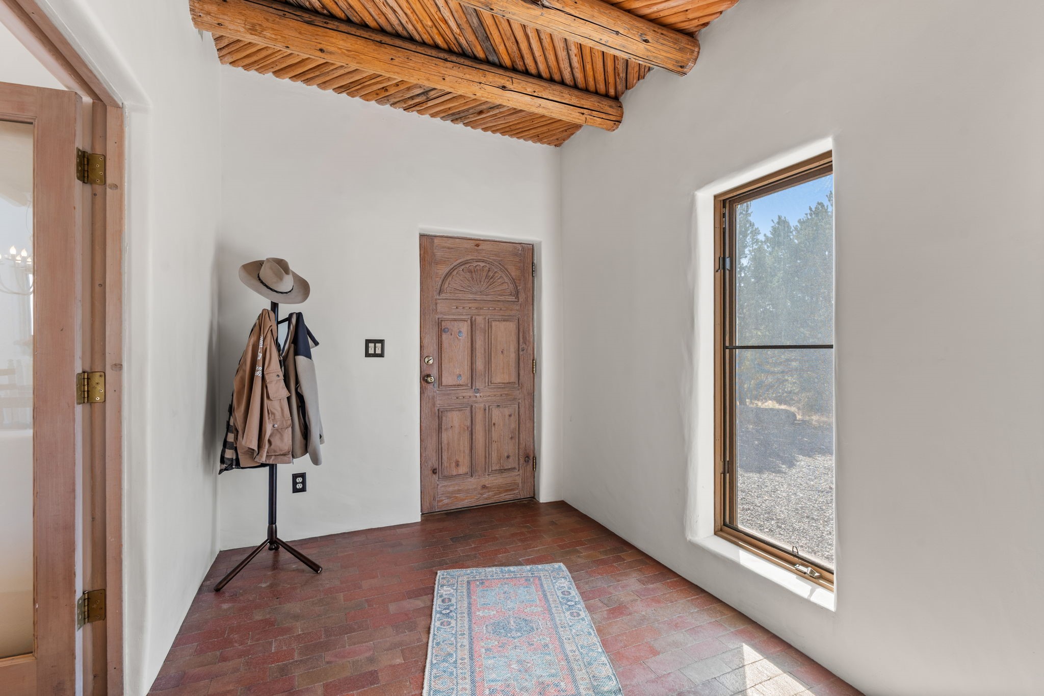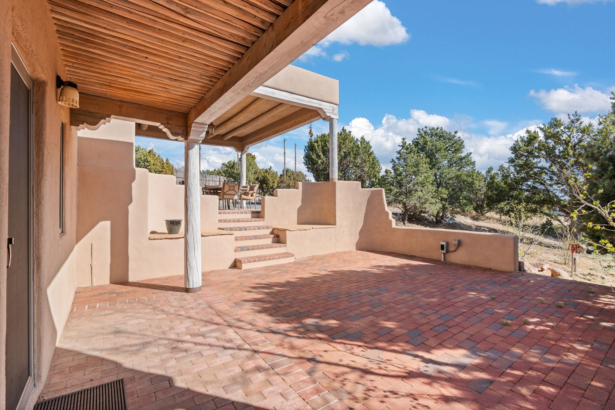 Welcome to your dream retreat: a 3,956-square-foot haven where classic Southwestern charm meets modern comfort. Located just minutes from downtown, this thoughtfully designed 3-bedroom, 3-bath home sits on 1.08 private acres with no HOA.Inside, you'll find Saltillo tile floors, hand-troweled plaster walls, and a generous living room with coved ceilings and abundant natural light. Clerestory windows and skylights fill the home with sunshine, and a sliding door opens to a stunning wraparound portal--perfect for year-round entertaining or quiet evenings under the stars.The kitchen is a chef's delight with newer appliances, ample cabinetry, and a spacious walk-in pantry. A charming office features traditional vigas and a latilla ceiling, ideal as a serene workspace or studio.The primary suite offers a corner kiva fireplace, two walk-in closets, and a private portal entrance. The updated en-suite bath includes a deep jetted tub and custom tile. The guest bath features a colorful Mexican tile arch over the tub for added charm.A lovely newer addition expands the living space with hickory wood floors, two bright bedrooms, a stylish bath with sun shower, and a large den with a fireplace, wood stove insert, built-ins, kitchenette, and wet bar. One bedroom has its own portal entrance for added privacy.Modern comforts include forced air heat, refrigerated air, and in-floor radiant heat in the newer section. Outside, you'll find a one-car garage, two-car carport, and a versatile studio once used for pottery--now a great workout space or creative workshop.This special home blends timeless Santa Fe architecture with thoughtful updates and artistic flair. More than a home--it's a lifestyle.