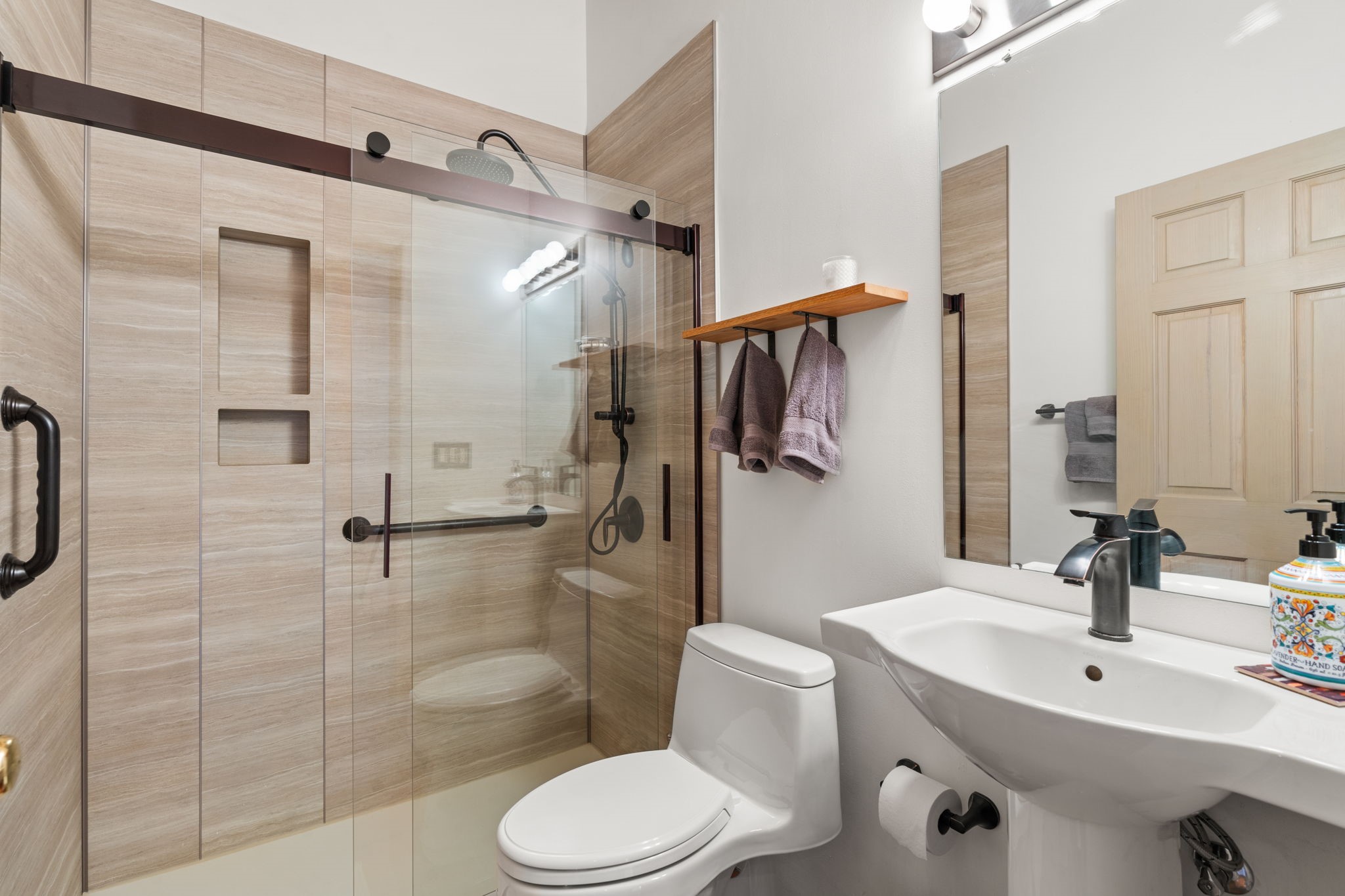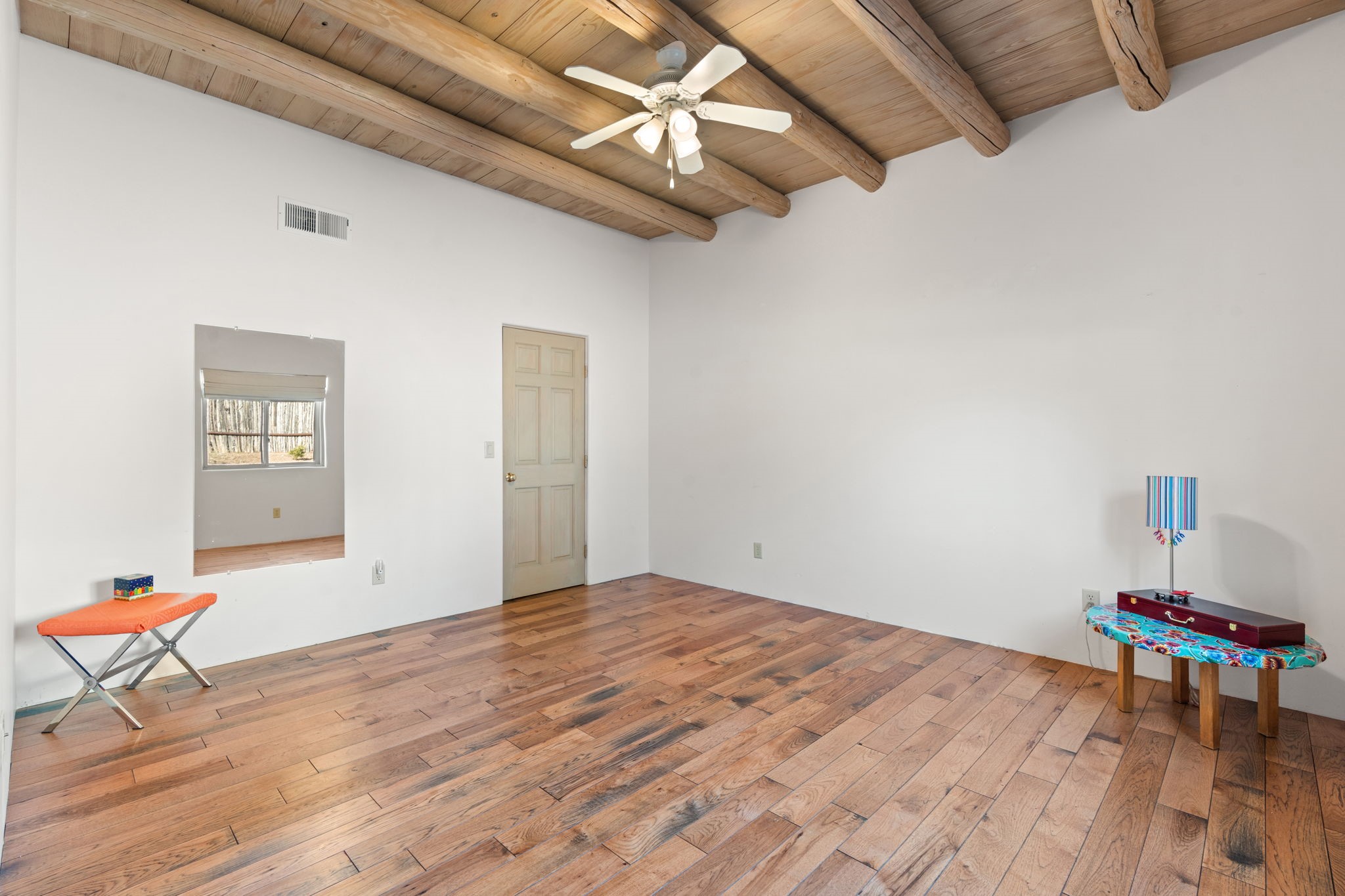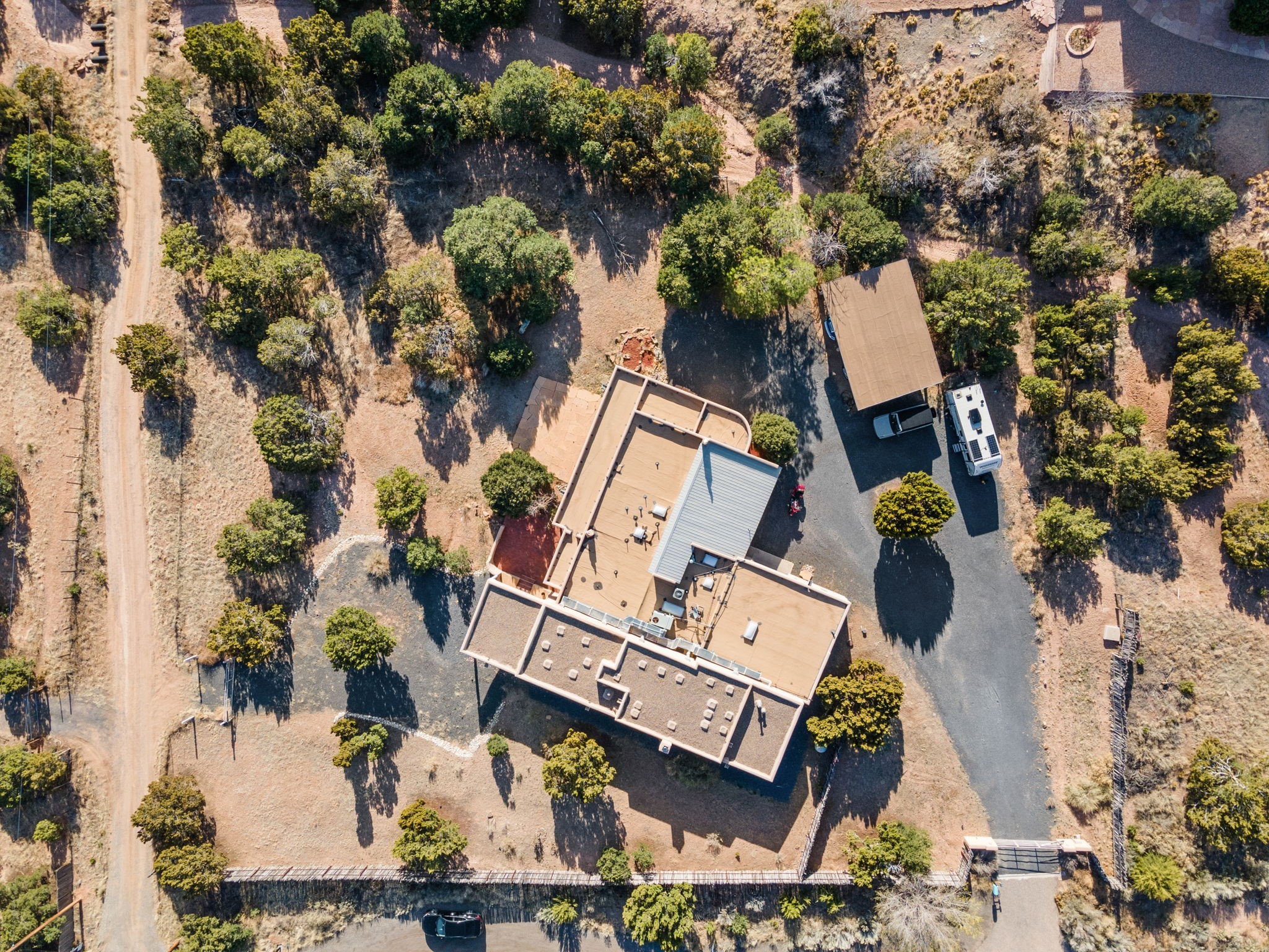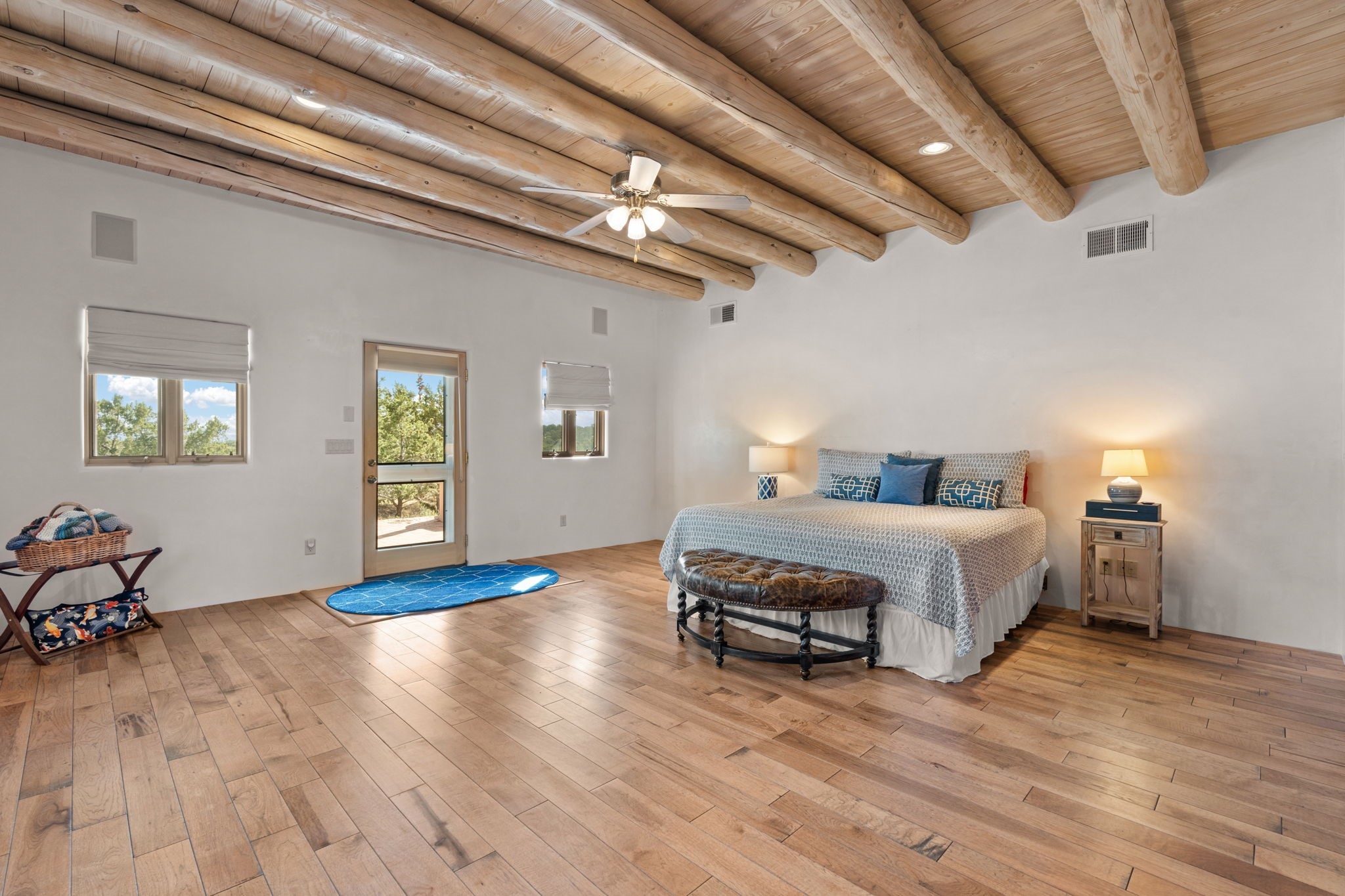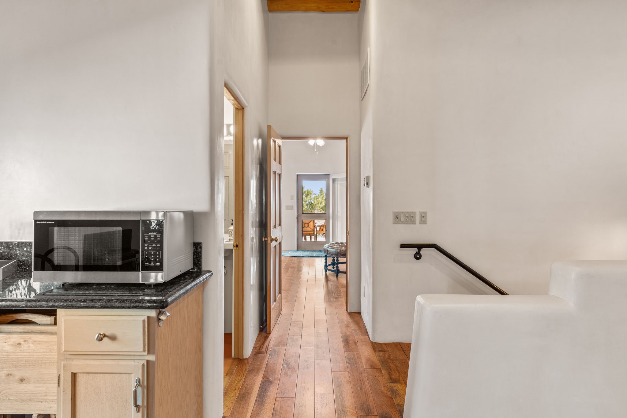 Welcome to your dream retreat: a 3,956-square-foot haven where classic Southwestern charm meets modern comfort. Located just minutes from downtown, this thoughtfully designed 3-bedroom, 3-bath home sits on 1.08 private acres with no HOA.Inside, you'll find Saltillo tile floors, hand-troweled plaster walls, and a generous living room with coved ceilings and abundant natural light. Clerestory windows and skylights fill the home with sunshine, and a sliding door opens to a stunning wraparound portal--perfect for year-round entertaining or quiet evenings under the stars.The kitchen is a chef's delight with newer appliances, ample cabinetry, and a spacious walk-in pantry. A charming office features traditional vigas and a latilla ceiling, ideal as a serene workspace or studio.The primary suite offers a corner kiva fireplace, two walk-in closets, and a private portal entrance. The updated en-suite bath includes a deep jetted tub and custom tile. The guest bath features a colorful Mexican tile arch over the tub for added charm.A lovely newer addition expands the living space with hickory wood floors, two bright bedrooms, a stylish bath with sun shower, and a large den with a fireplace, wood stove insert, built-ins, kitchenette, and wet bar. One bedroom has its own portal entrance for added privacy.Modern comforts include forced air heat, refrigerated air, and in-floor radiant heat in the newer section. Outside, you'll find a one-car garage, two-car carport, and a versatile studio once used for pottery--now a great workout space or creative workshop.This special home blends timeless Santa Fe architecture with thoughtful updates and artistic flair. More than a home--it's a lifestyle.