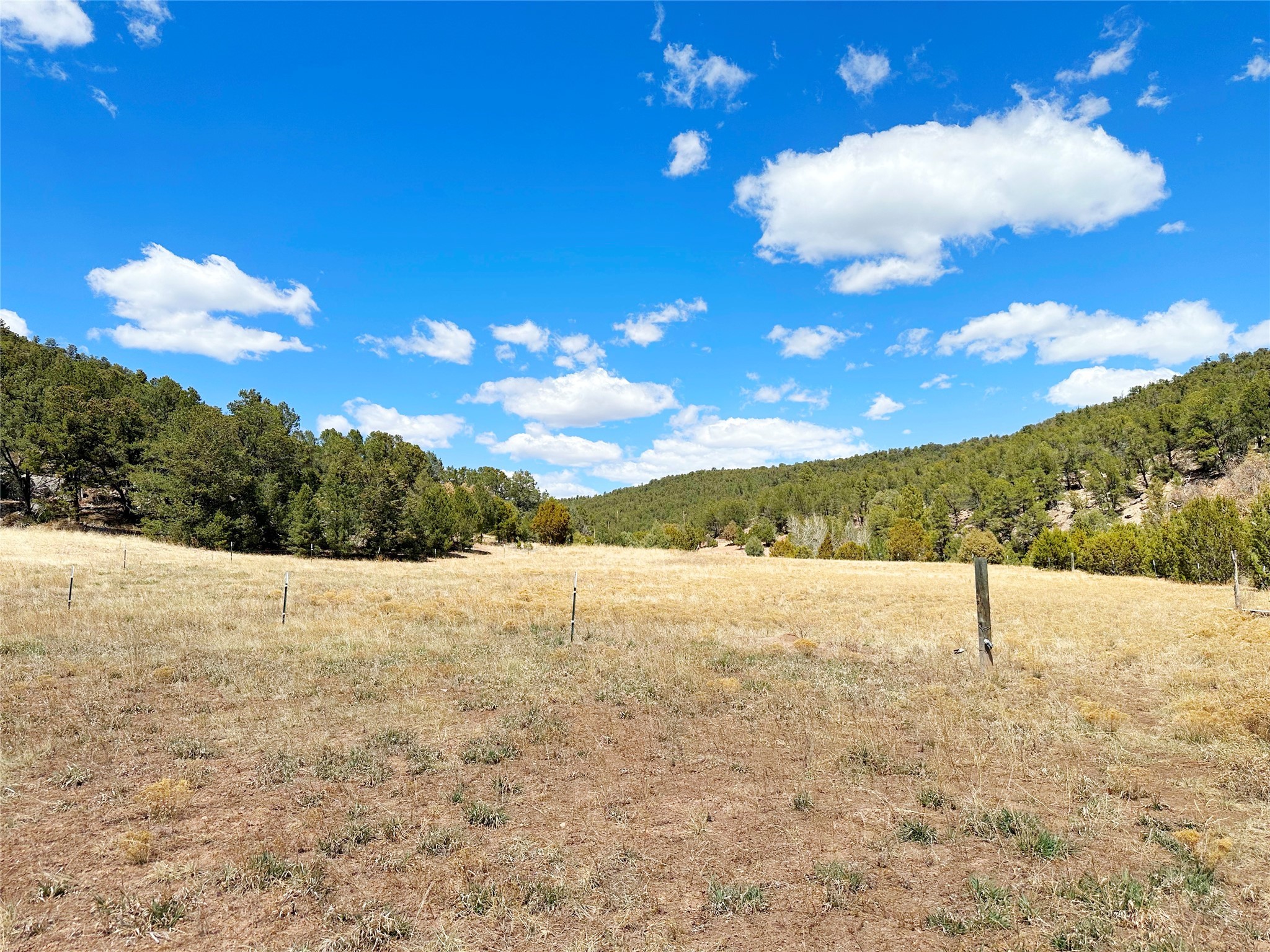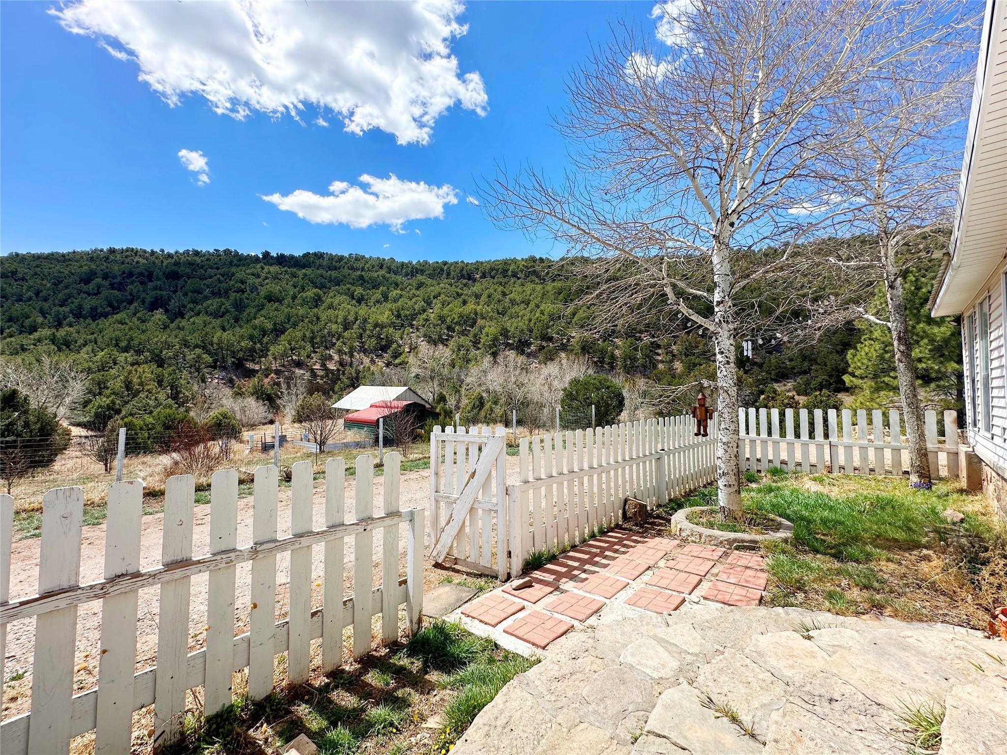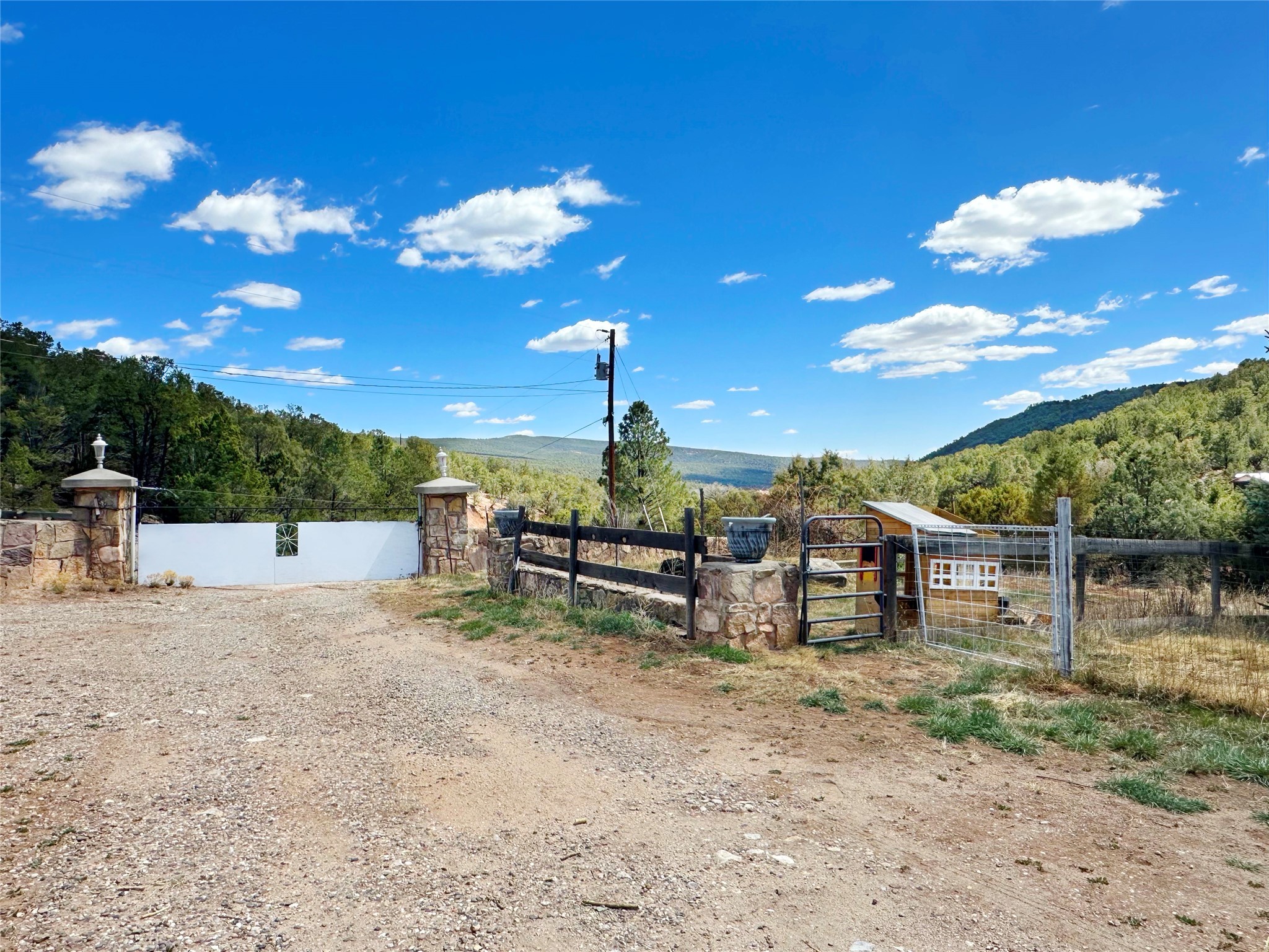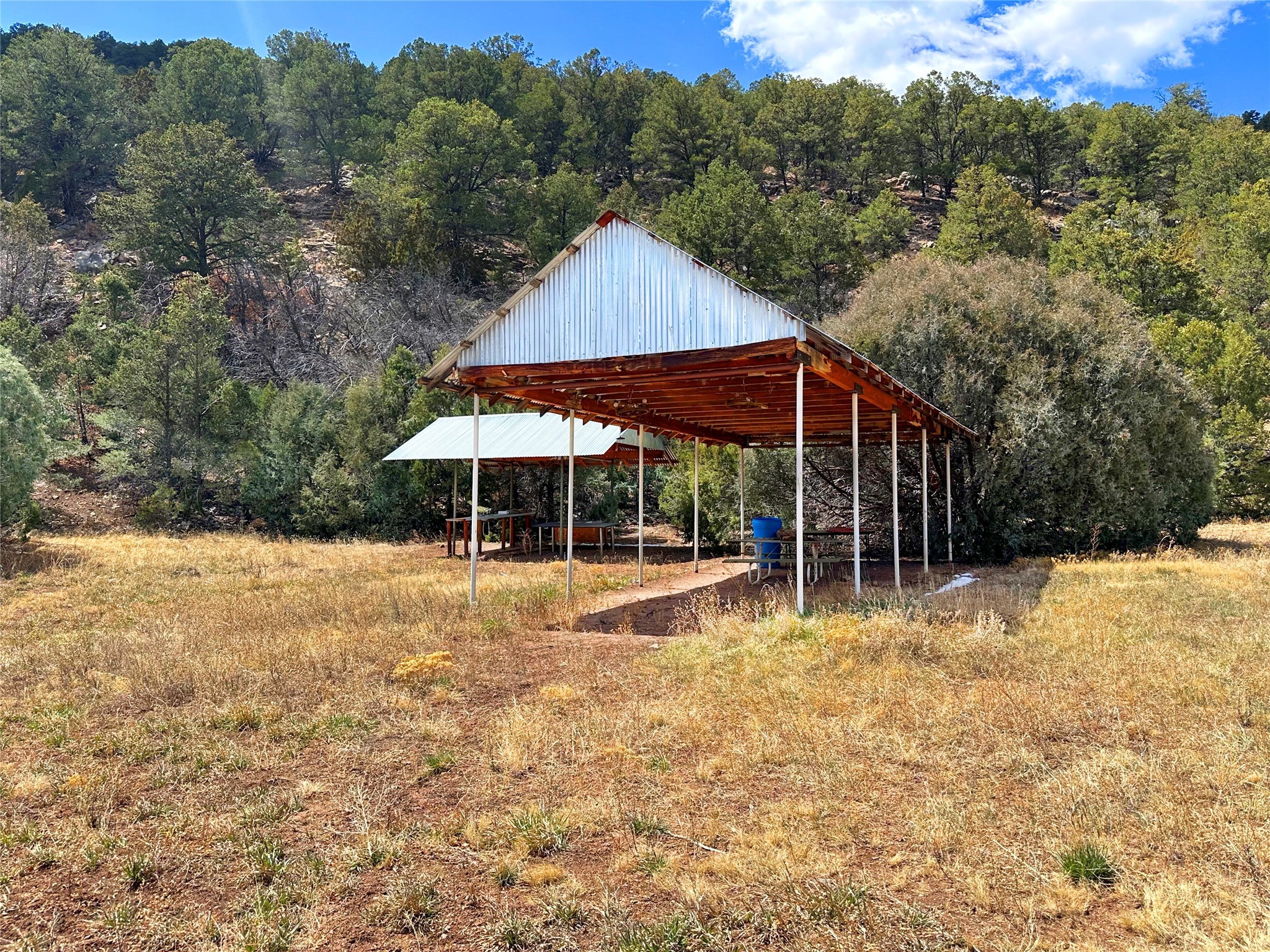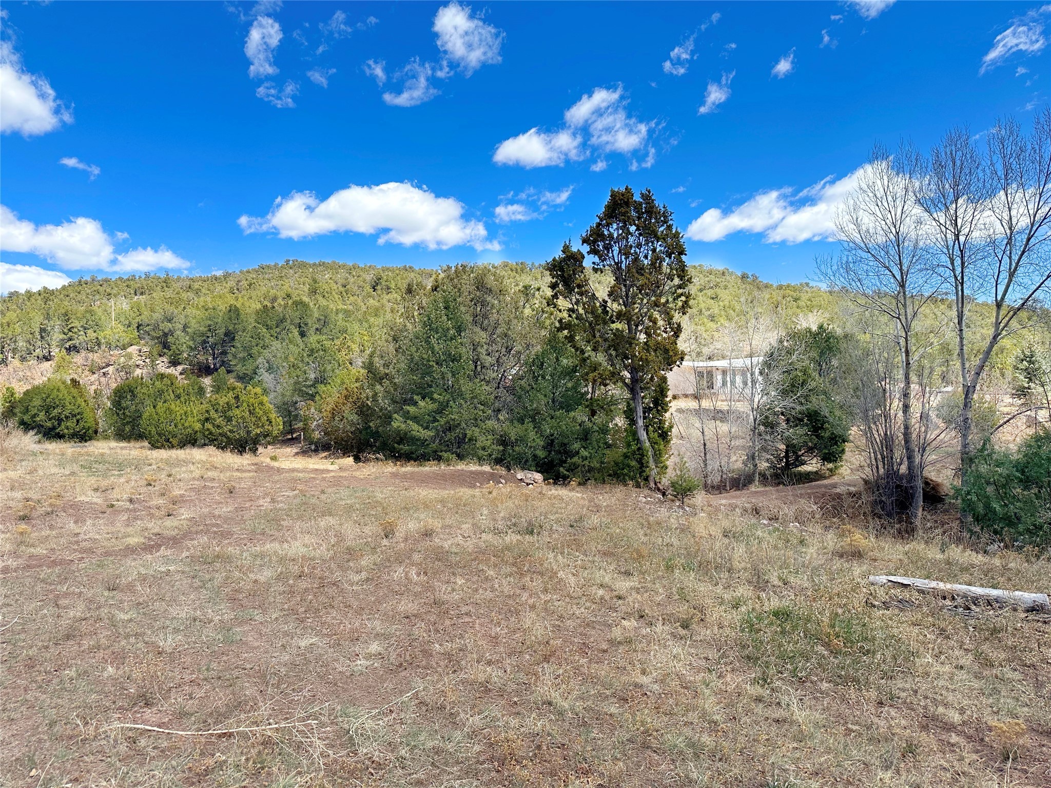 This 27+ acre northern New Mexico homestead features a 3-bed, 2-bath manufactured home, ready for your updates. Recent infrastructure upgrades include a new well pump and updated septic system. Natural water flow is guided by erosion control efforts and engineered drainage that feeds into a small seasonal pond. The property has been lovingly used as a small livestock farm with pens for pigs, goats, and chickens, plus corrals that can accommodate horses. The fenced pasture allows for some rotational grazing (electric fencing may need regular maintenance). A mature grapevine and a young orchard of apple and pear trees near the home offer food production potential, with space for expanded gardening. A large workshop/garage provides excellent storage for vehicles, tools, and ATVs, and includes an electric RV hookup. The acreage rises into a well-maintained pion forest, which has been selectively thinned to provide both grazing and usable timber. The topography is steep in places but accessible from the northern boundary, where a natural shelf offers a potential wooded build site. The property shares a boundary with National Forest and is located near Bull Creek, offering both privacy and direct access to public land. Just 50 minutes from Santa Fe via well-maintained roads, this versatile property is ready for homesteading, recreation, or peaceful rural living with existing agricultural infrastructure and stunning natural surroundings.