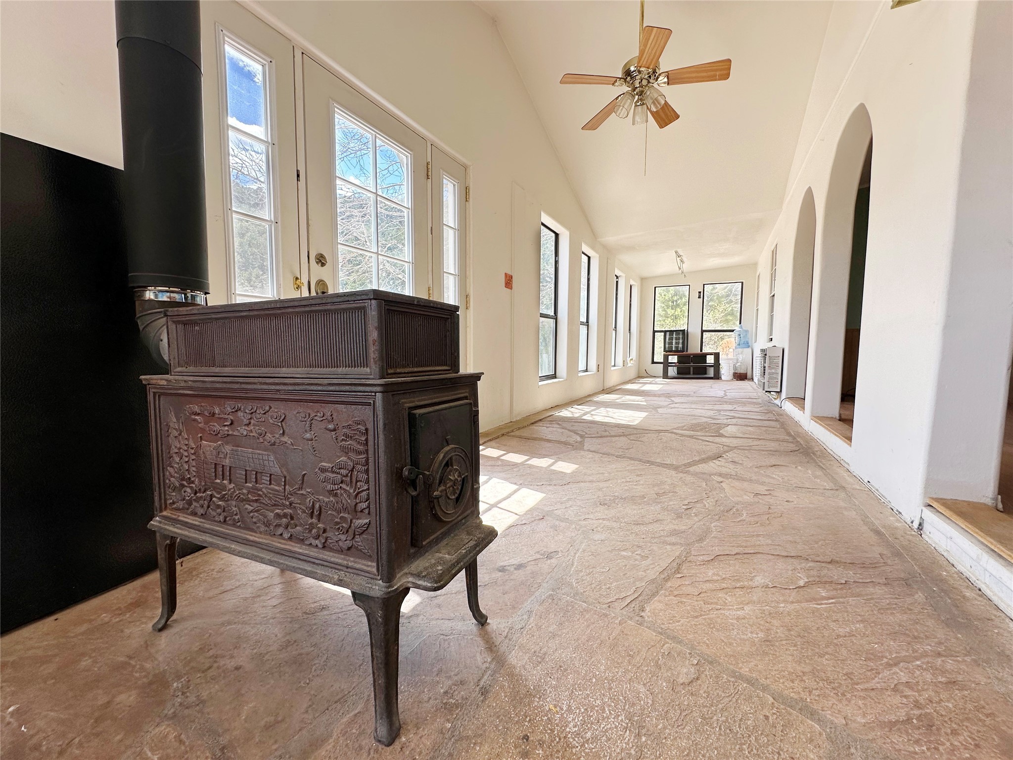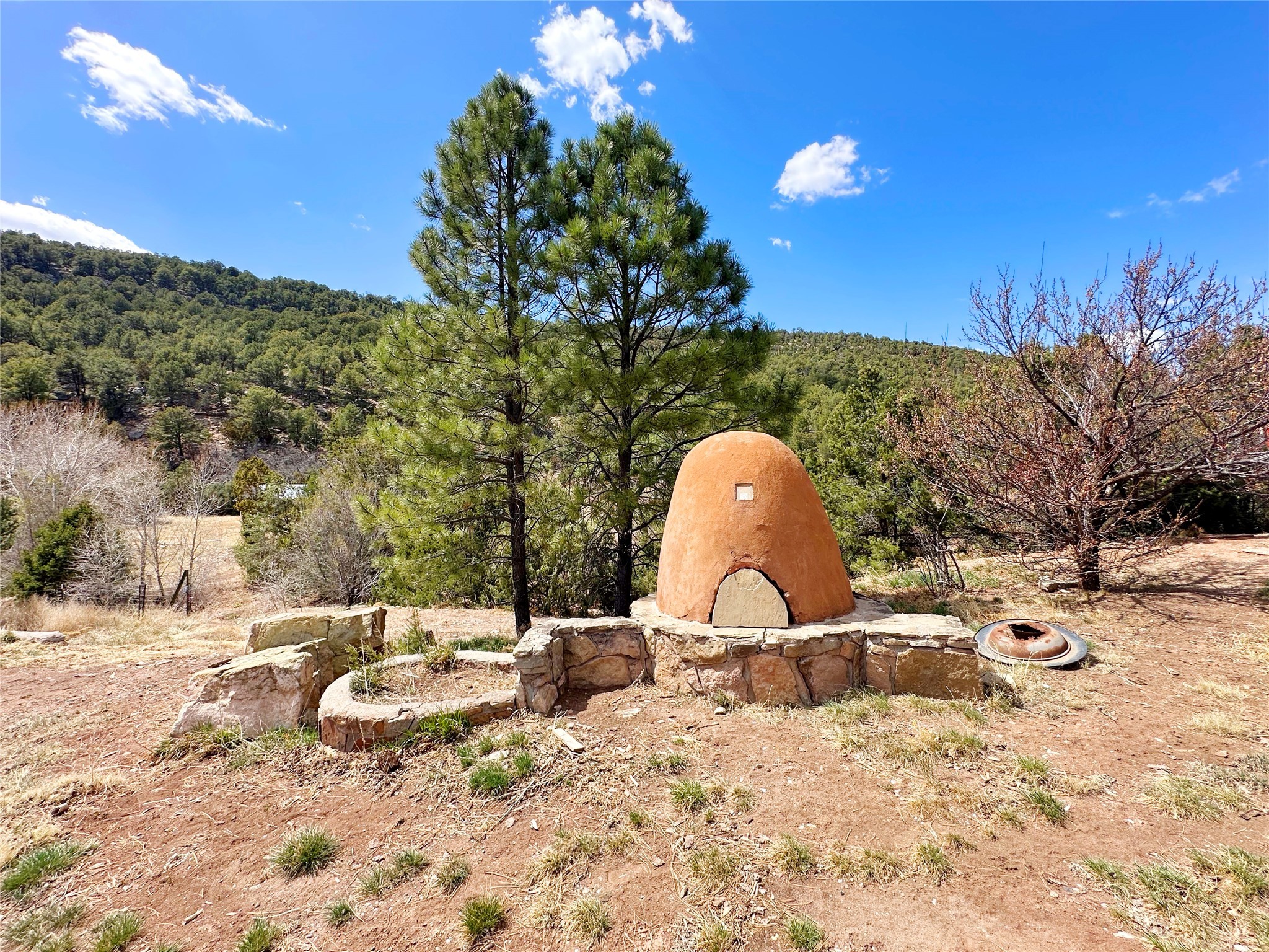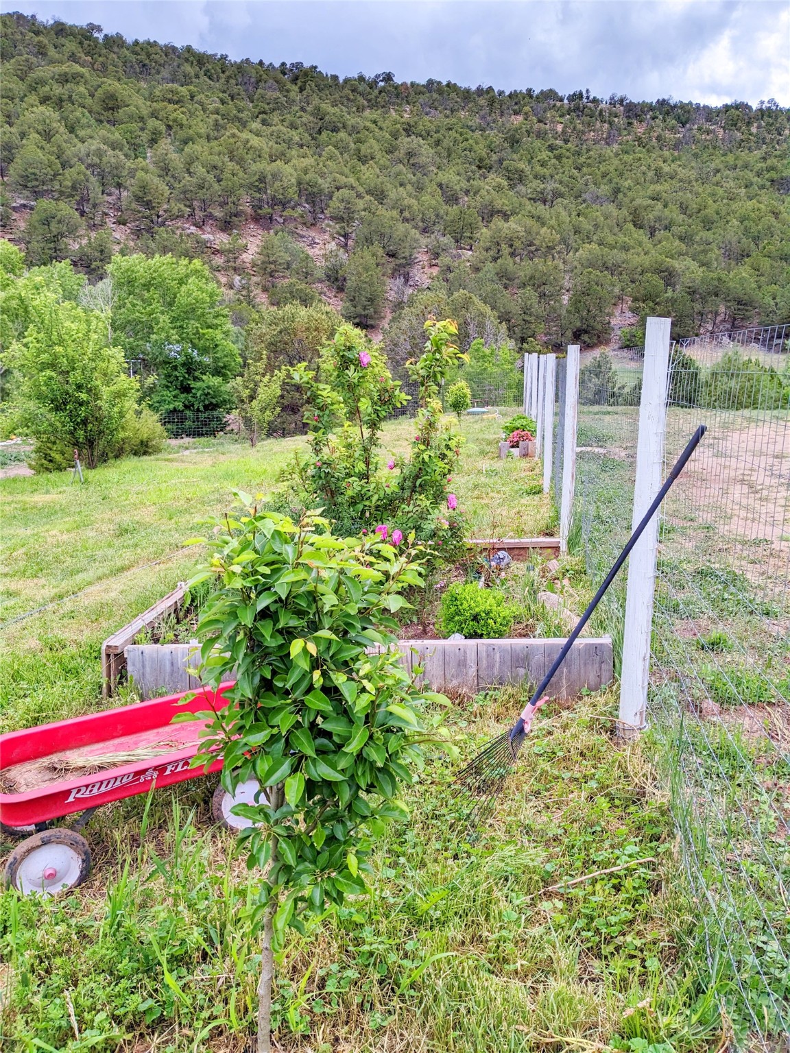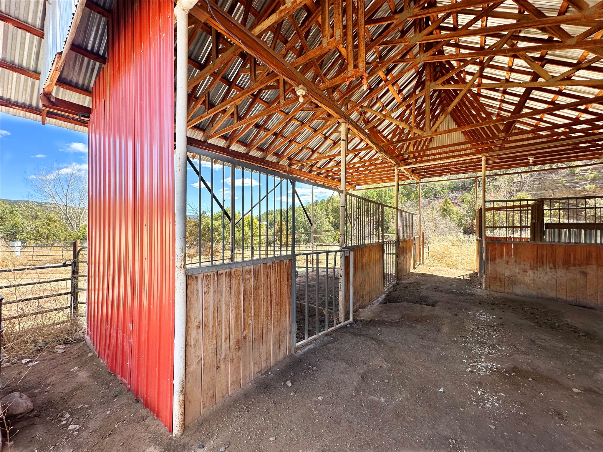 This 27+ acre northern New Mexico homestead features a 3-bed, 2-bath manufactured home, ready for your updates. Recent infrastructure upgrades include a new well pump and updated septic system. Natural water flow is guided by erosion control efforts and engineered drainage that feeds into a small seasonal pond. The property has been lovingly used as a small livestock farm with pens for pigs, goats, and chickens, plus corrals that can accommodate horses. The fenced pasture allows for some rotational grazing (electric fencing may need regular maintenance). A mature grapevine and a young orchard of apple and pear trees near the home offer food production potential, with space for expanded gardening. A large workshop/garage provides excellent storage for vehicles, tools, and ATVs, and includes an electric RV hookup. The acreage rises into a well-maintained pion forest, which has been selectively thinned to provide both grazing and usable timber. The topography is steep in places but accessible from the northern boundary, where a natural shelf offers a potential wooded build site. The property shares a boundary with National Forest and is located near Bull Creek, offering both privacy and direct access to public land. Just 50 minutes from Santa Fe via well-maintained roads, this versatile property is ready for homesteading, recreation, or peaceful rural living with existing agricultural infrastructure and stunning natural surroundings.