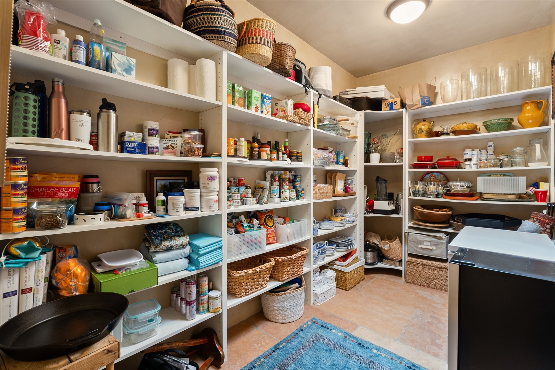 This gated 5.2-acre estate in the Sangre de Cristo foothills is only 18 minutes from the Santa Fe Plaza and offers panoramic views of the Sangres, Jemez Mountains, and Badlands. 4,752 sf living, 802 sf 2-car garage, 5 portals totaling 1,820 sf. of outdoor living space! 880 sf portal wraps the central, Aspen shaded courtyard with large stone fountain. Beds and gardens are filled with a vibrant array of flowers, grasses, and trees. West facing portal offers dramatic sunsets with lovely outdoor eating area. A private walled garden off the primary suite includes a smaller portal and outdoor fireplace. Interiors are warm, and light filled with a wide choice of cozy private and formal entertainment spaces. Rich interior finishes focus on traditional and timeless New Mexican details, beamed and wood plank ceilings, meticulously cut flagstone floors, Diamond plaster walls, 4 interior fireplaces, custom cabinetry, granite, sandstone counters and 10 skylights. Constructed with 2' to 4' thick Pumice-Crete walls, a labor-intensive, fireproof building method that beautifully replicates the look and feel of traditional triple-stacked adobe and is noted for its beauty, stability, noise reduction, and energy efficient qualities. Radiant floor heating, recently installed high efficiency AC condenser system save energy by preheating water for the propane fired boiler and converts to a chilled floor cooling system during summer months! Low profile solar panel system produces more power than the residence uses yielding monthly electric bills less than $12.00/month! A cozy family room, formal dining, kitchen, and spacious great room, all access the courtyard for spectacular entertaining or intimate gatherings. Two separated primarysuites plus office with tasteful built-ins. New improvements include stone planters and driveway borders, native trees, grasses, shrubs and flowers, new landscape irrigation system, new roof with extended warranty,new skylights, refreshed exterior stucco.