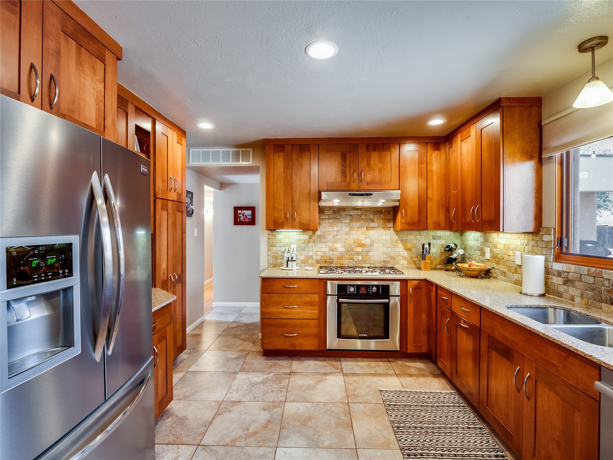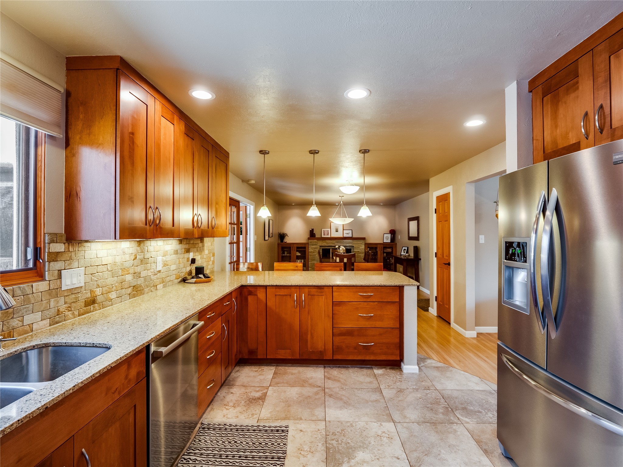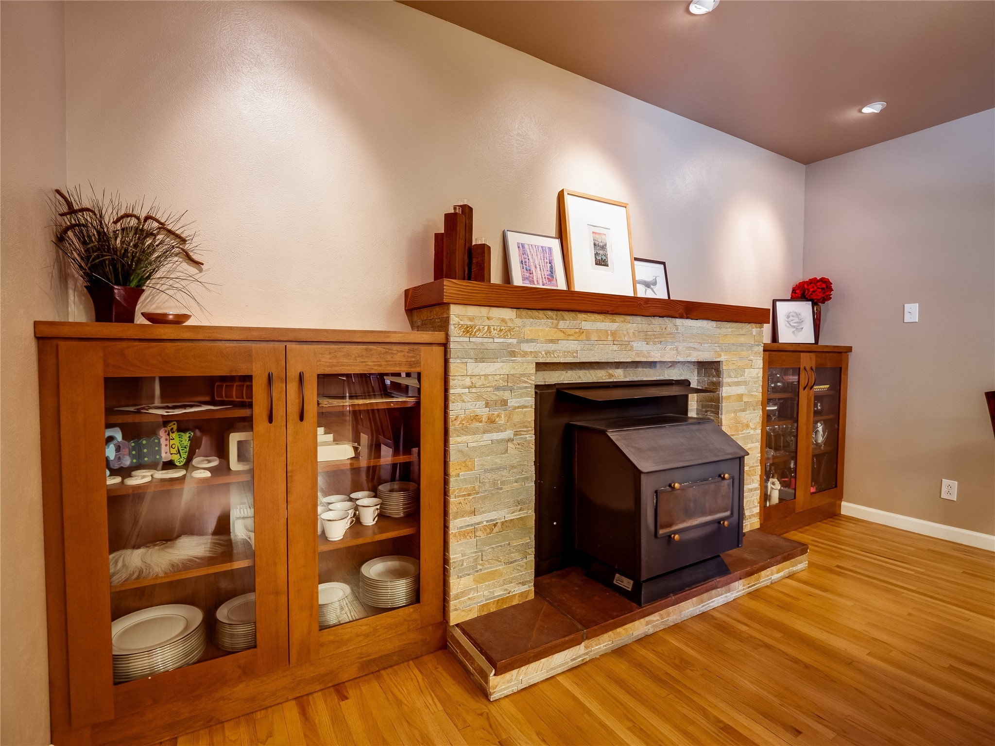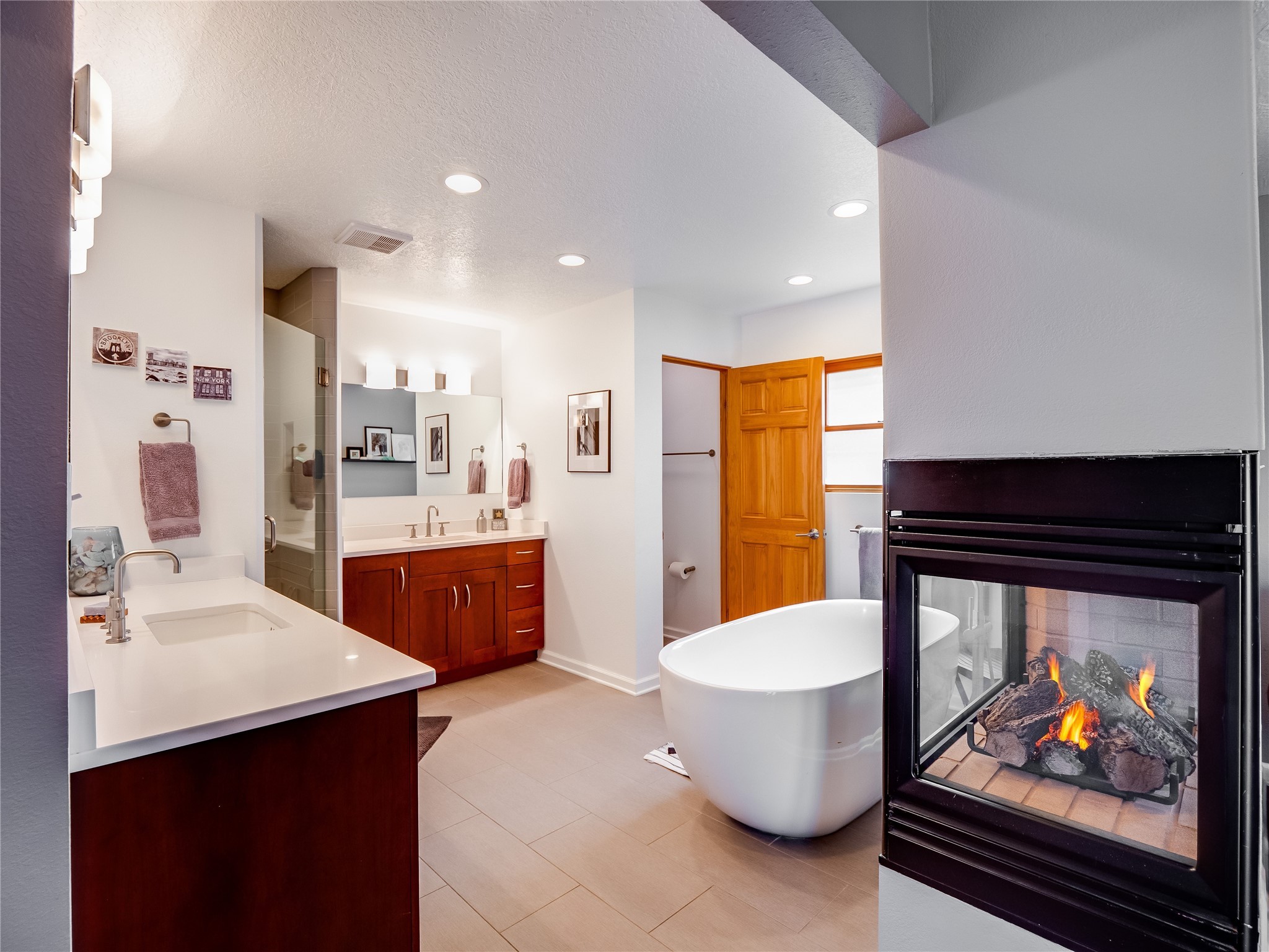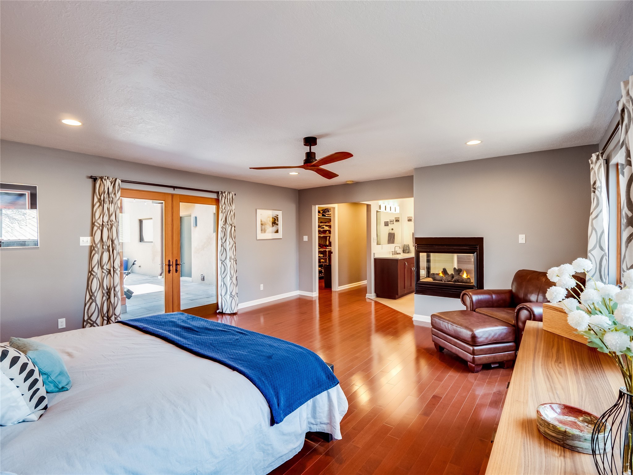 Stunning Single-Story home in Barranca Mesa! Elevated from the street and tucked away behind mature shrubs and trees, this home offers the perfect blend of privacy, charm, and luxury. Step into the foyer and head to the right and youre welcomed into the inviting living room bathed in natural light, featuring wood floors and a large front-facing window. Flowing seamlessly from the living space is a gourmet kitchen, a true chef's delight with warm wood cabinetry, a stylish stone tile backsplash, granite counters, and tile flooring. Sleek stainless steel appliances, and a peninsula island with bar seating opens to the spacious dining room. The dining room is designed for both everyday living and entertaining, offering direct access to the two-car garage and featuring a wood-burning stove flanked by custom built-in cabinetry. French doors lead to the bright and airy family room, where a full wall of built-in cabinets providing ample storage. From here, step out onto the back patio and into the expansive backyard. Down the main hallway are two generously sized guest bedrooms, a full guest bathroom, and a laundry room with cabinetry and convenient access to the backyard. The showstopper of this home is the luxurious primary en-suite. Open and elegant, it boasts a large walk-in closet, direct access to the back patio, and a stunning three-sided fireplace that brings warmth and ambiance to both the bedroom and the spa-inspired bathroom. Indulge in the tiled walk-in shower, enjoy the dual single-sink vanities, or soak in the freestanding tub beside the flickering fire--this space is truly a retreat. The huge backyard is an entertainer's dream, complete with a spacious patio, mature fruit trees, planters, and a large storage shed. Whether you're relaxing under the stars or hosting a summer gathering, this outdoor space delivers. Located near trails and schools, this gem offers comfort, style, and convenience all in one. Don't miss out--schedule your private tour today!
