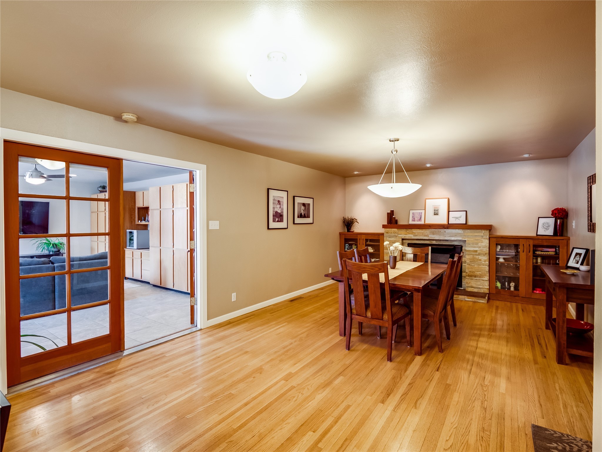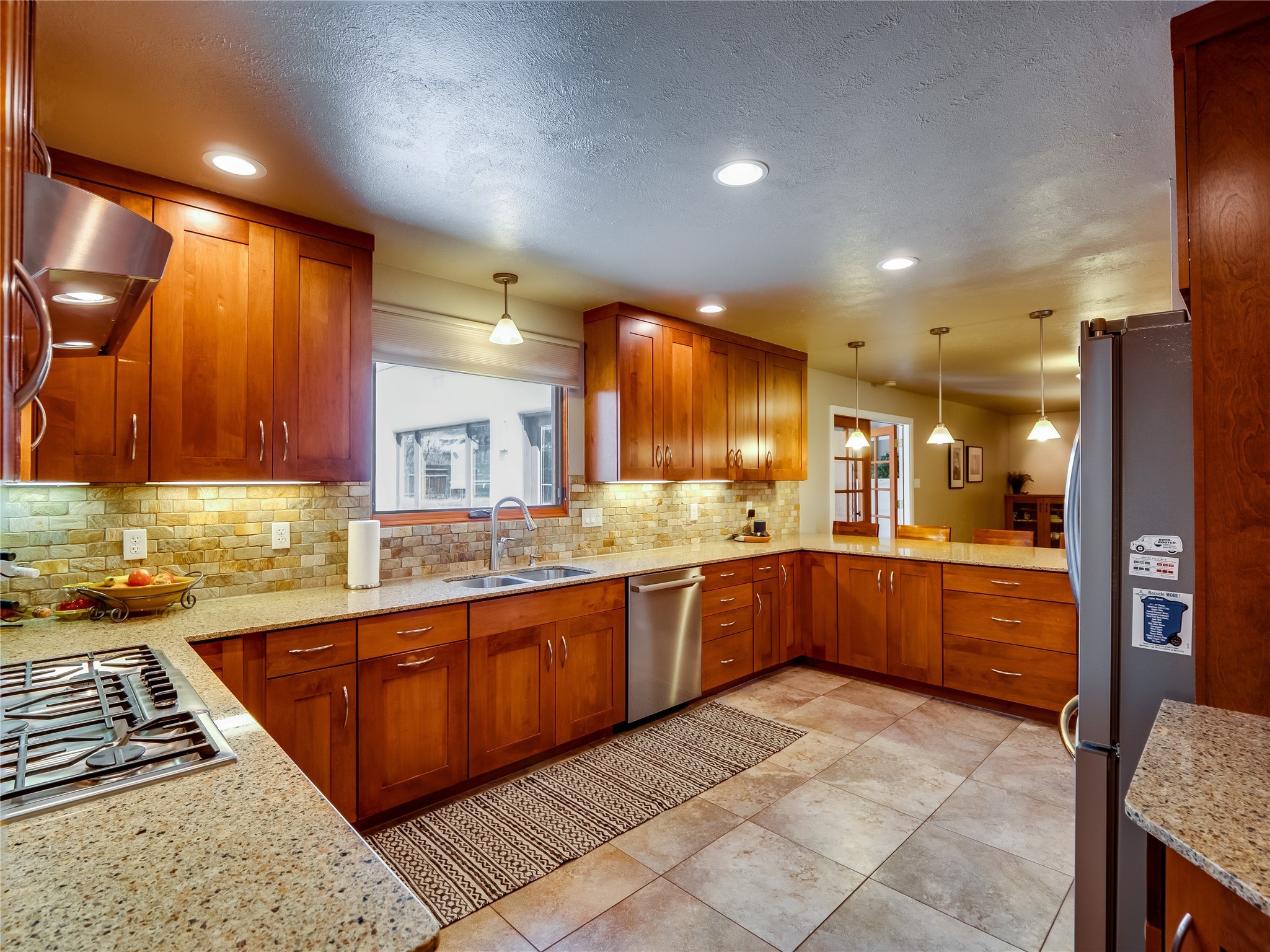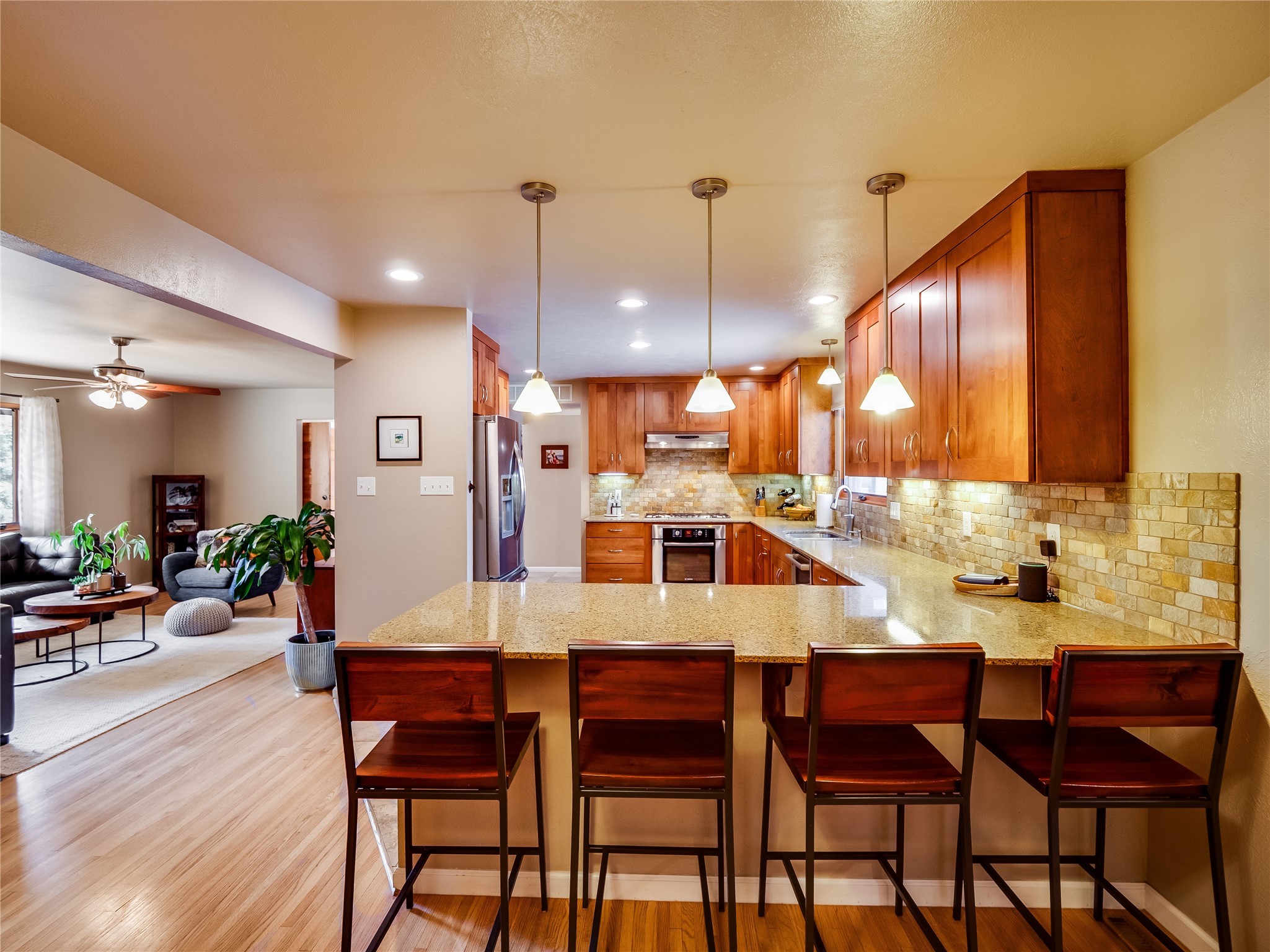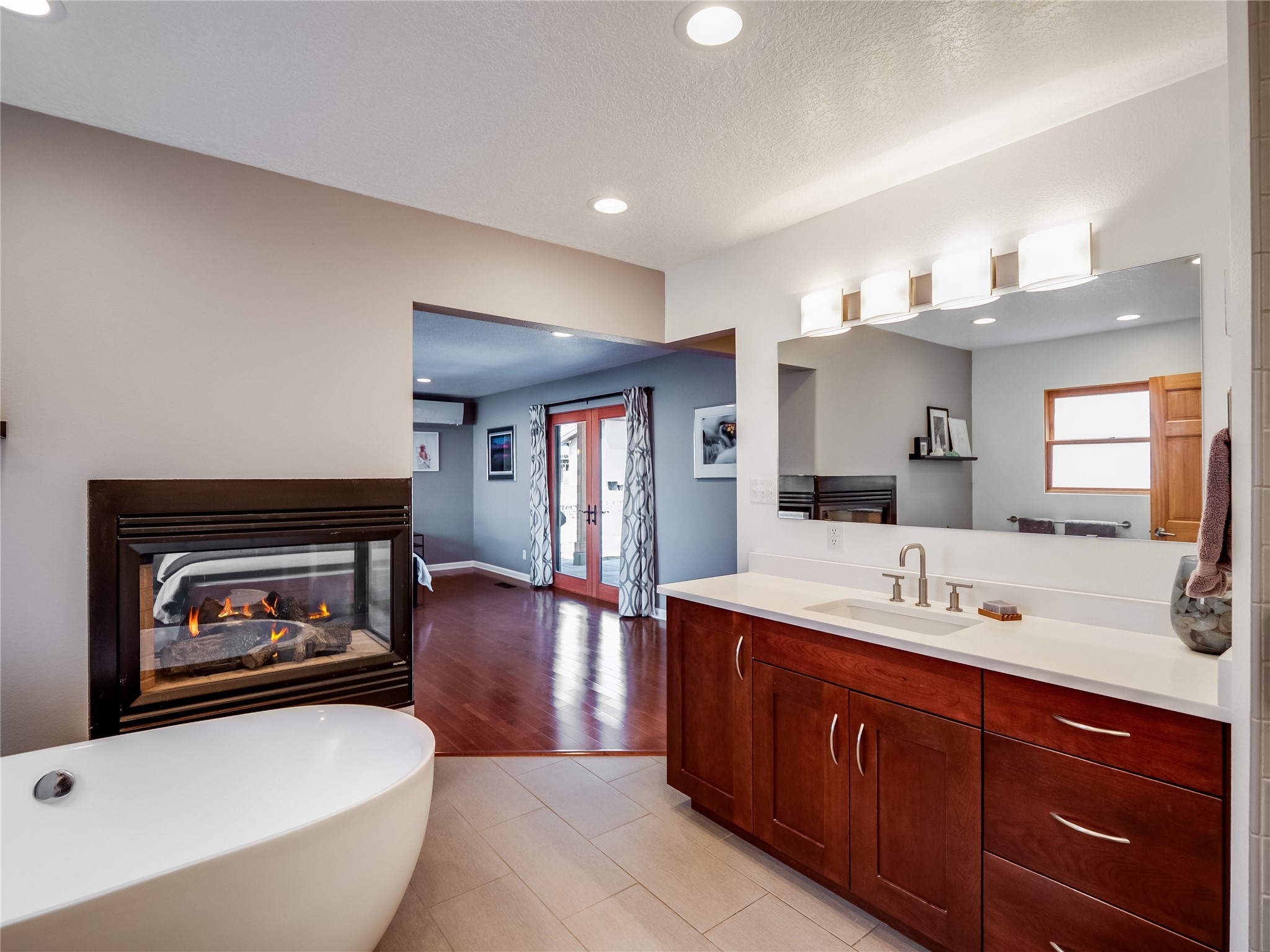 Stunning Single-Story home in Barranca Mesa! Elevated from the street and tucked away behind mature shrubs and trees, this home offers the perfect blend of privacy, charm, and luxury. Step into the foyer and head to the right and youre welcomed into the inviting living room bathed in natural light, featuring wood floors and a large front-facing window. Flowing seamlessly from the living space is a gourmet kitchen, a true chef's delight with warm wood cabinetry, a stylish stone tile backsplash, granite counters, and tile flooring. Sleek stainless steel appliances, and a peninsula island with bar seating opens to the spacious dining room. The dining room is designed for both everyday living and entertaining, offering direct access to the two-car garage and featuring a wood-burning stove flanked by custom built-in cabinetry. French doors lead to the bright and airy family room, where a full wall of built-in cabinets providing ample storage. From here, step out onto the back patio and into the expansive backyard. Down the main hallway are two generously sized guest bedrooms, a full guest bathroom, and a laundry room with cabinetry and convenient access to the backyard. The showstopper of this home is the luxurious primary en-suite. Open and elegant, it boasts a large walk-in closet, direct access to the back patio, and a stunning three-sided fireplace that brings warmth and ambiance to both the bedroom and the spa-inspired bathroom. Indulge in the tiled walk-in shower, enjoy the dual single-sink vanities, or soak in the freestanding tub beside the flickering fire--this space is truly a retreat. The huge backyard is an entertainer's dream, complete with a spacious patio, mature fruit trees, planters, and a large storage shed. Whether you're relaxing under the stars or hosting a summer gathering, this outdoor space delivers. Located near trails and schools, this gem offers comfort, style, and convenience all in one. Don't miss out--schedule your private tour today!