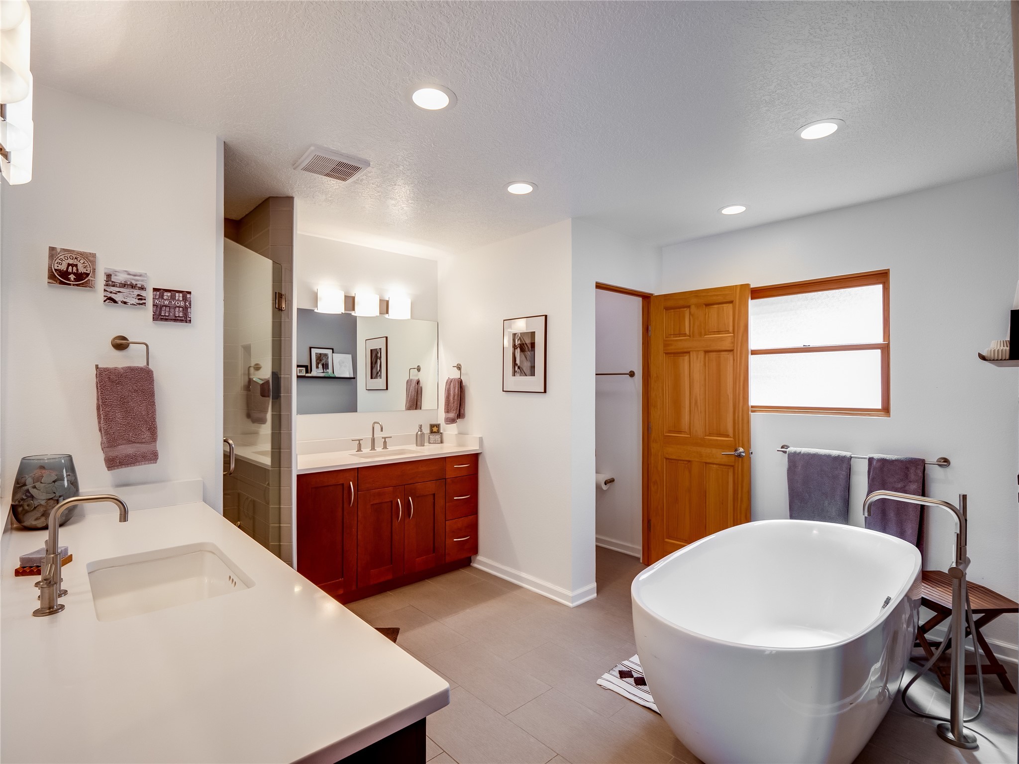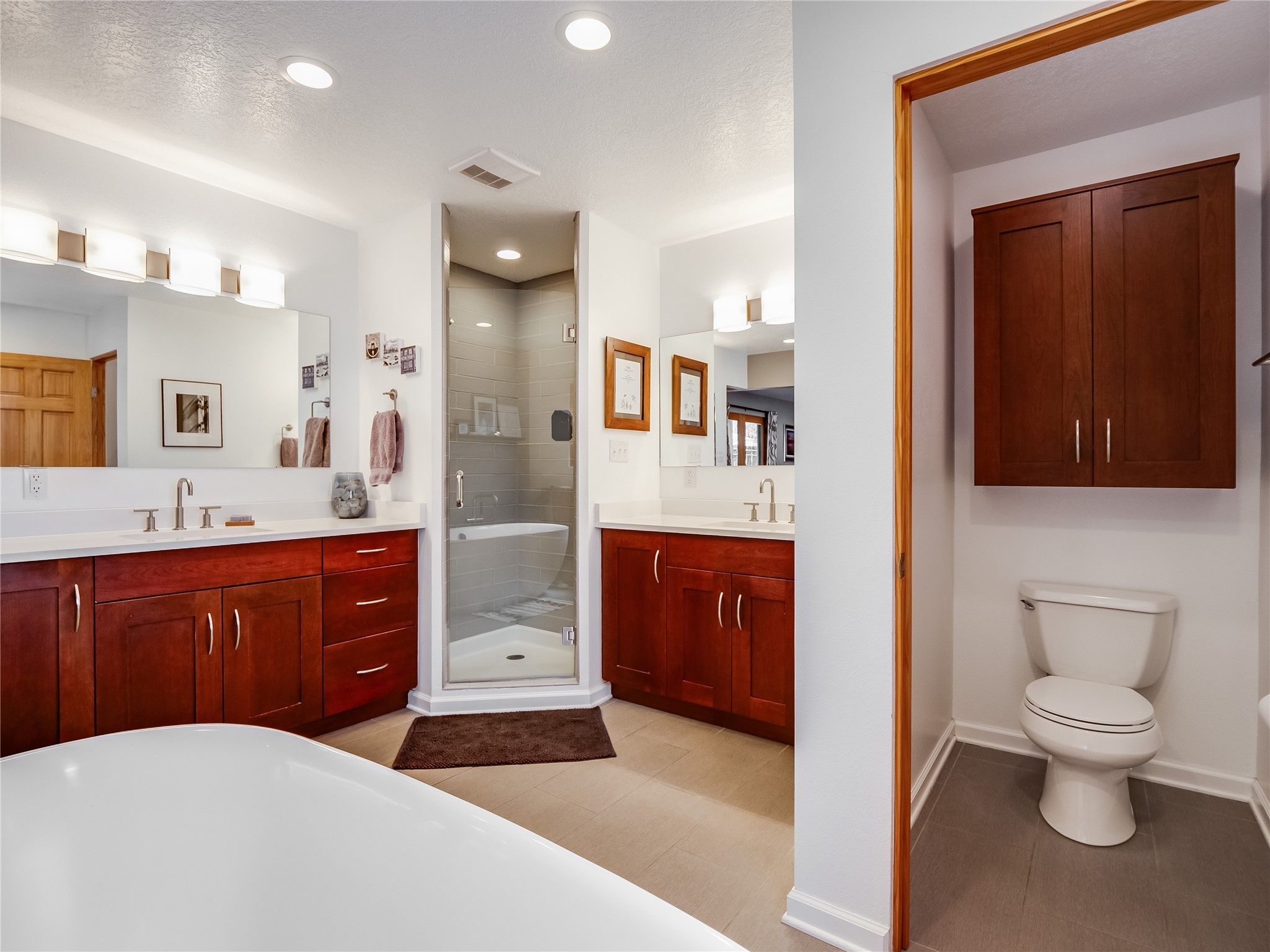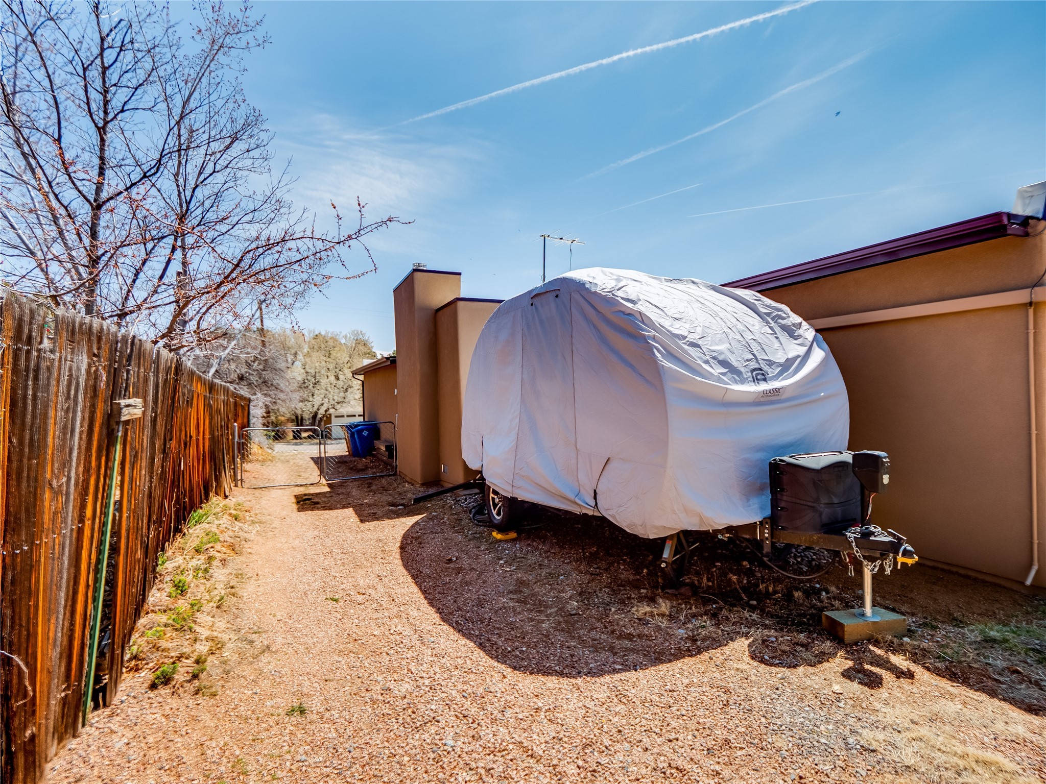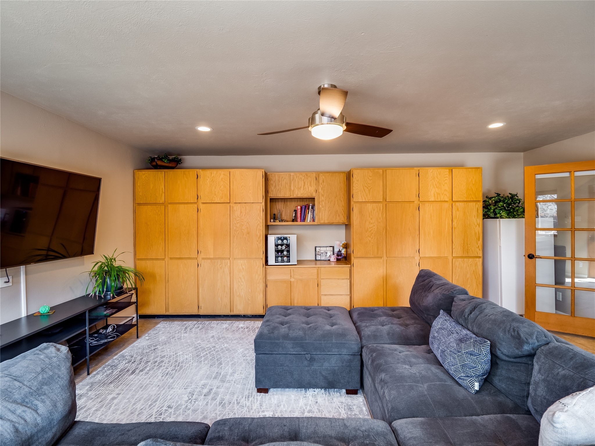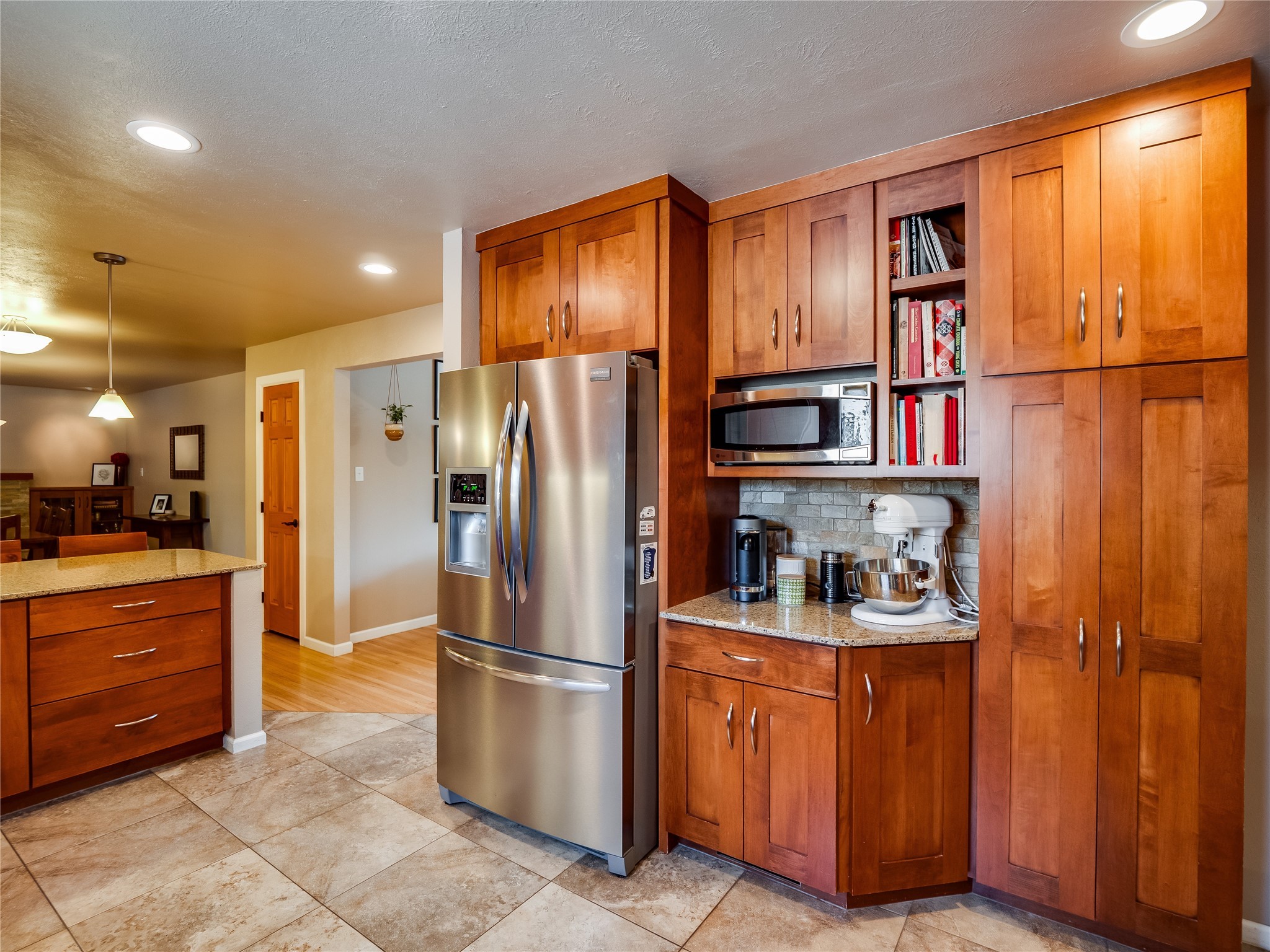 Stunning Single-Story home in Barranca Mesa! Elevated from the street and tucked away behind mature shrubs and trees, this home offers the perfect blend of privacy, charm, and luxury. Step into the foyer and head to the right and youre welcomed into the inviting living room bathed in natural light, featuring wood floors and a large front-facing window. Flowing seamlessly from the living space is a gourmet kitchen, a true chef's delight with warm wood cabinetry, a stylish stone tile backsplash, granite counters, and tile flooring. Sleek stainless steel appliances, and a peninsula island with bar seating opens to the spacious dining room. The dining room is designed for both everyday living and entertaining, offering direct access to the two-car garage and featuring a wood-burning stove flanked by custom built-in cabinetry. French doors lead to the bright and airy family room, where a full wall of built-in cabinets providing ample storage. From here, step out onto the back patio and into the expansive backyard. Down the main hallway are two generously sized guest bedrooms, a full guest bathroom, and a laundry room with cabinetry and convenient access to the backyard. The showstopper of this home is the luxurious primary en-suite. Open and elegant, it boasts a large walk-in closet, direct access to the back patio, and a stunning three-sided fireplace that brings warmth and ambiance to both the bedroom and the spa-inspired bathroom. Indulge in the tiled walk-in shower, enjoy the dual single-sink vanities, or soak in the freestanding tub beside the flickering fire--this space is truly a retreat. The huge backyard is an entertainer's dream, complete with a spacious patio, mature fruit trees, planters, and a large storage shed. Whether you're relaxing under the stars or hosting a summer gathering, this outdoor space delivers. Located near trails and schools, this gem offers comfort, style, and convenience all in one. Don't miss out--schedule your private tour today!
