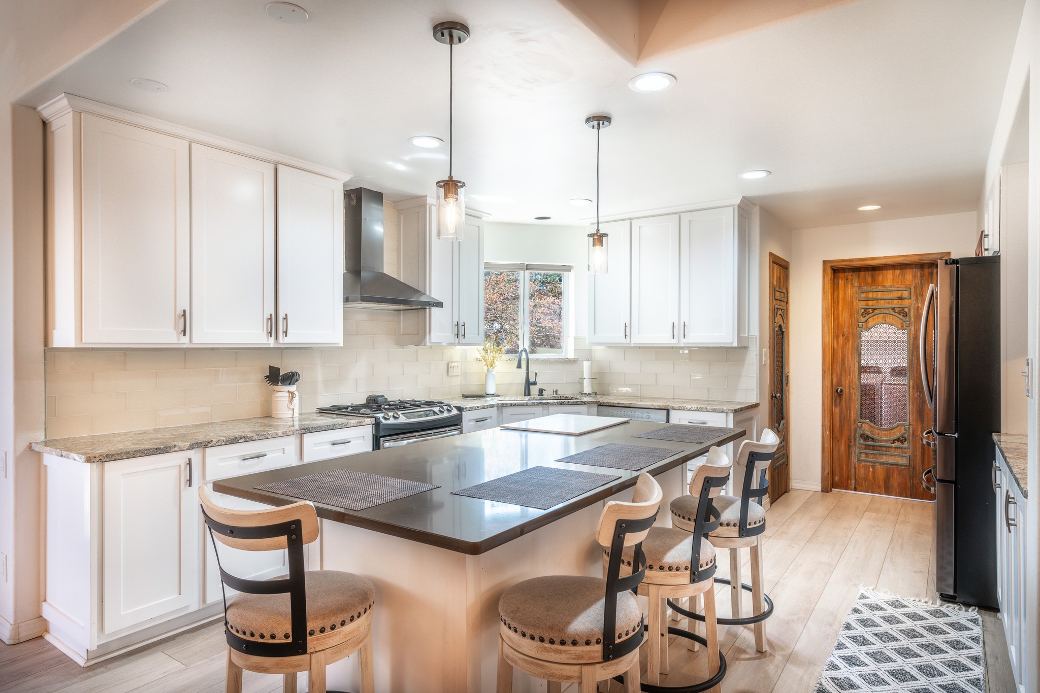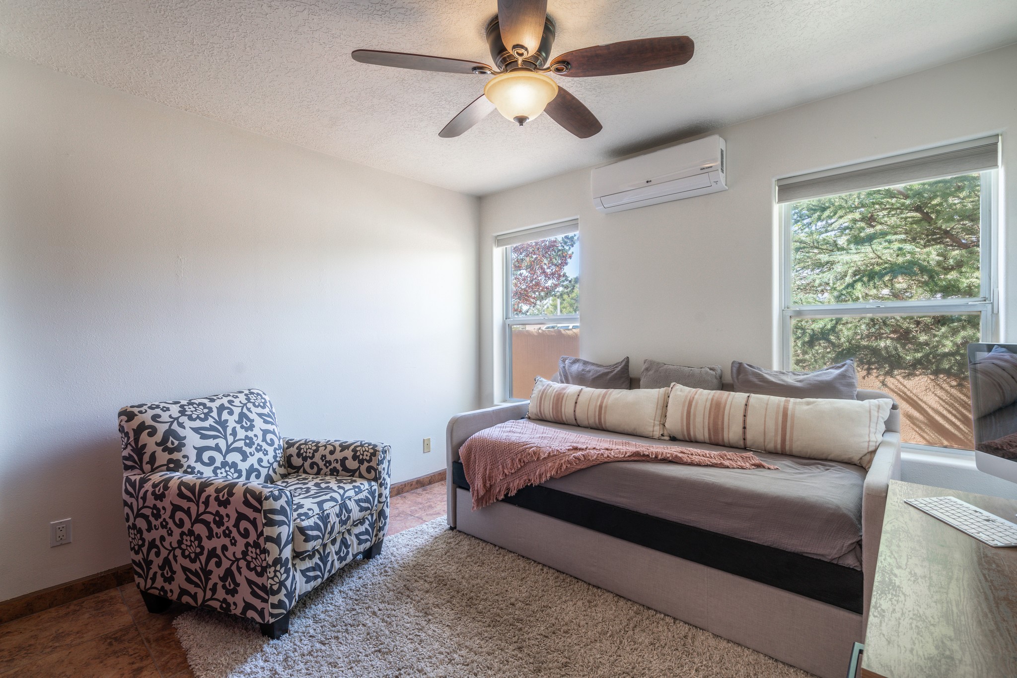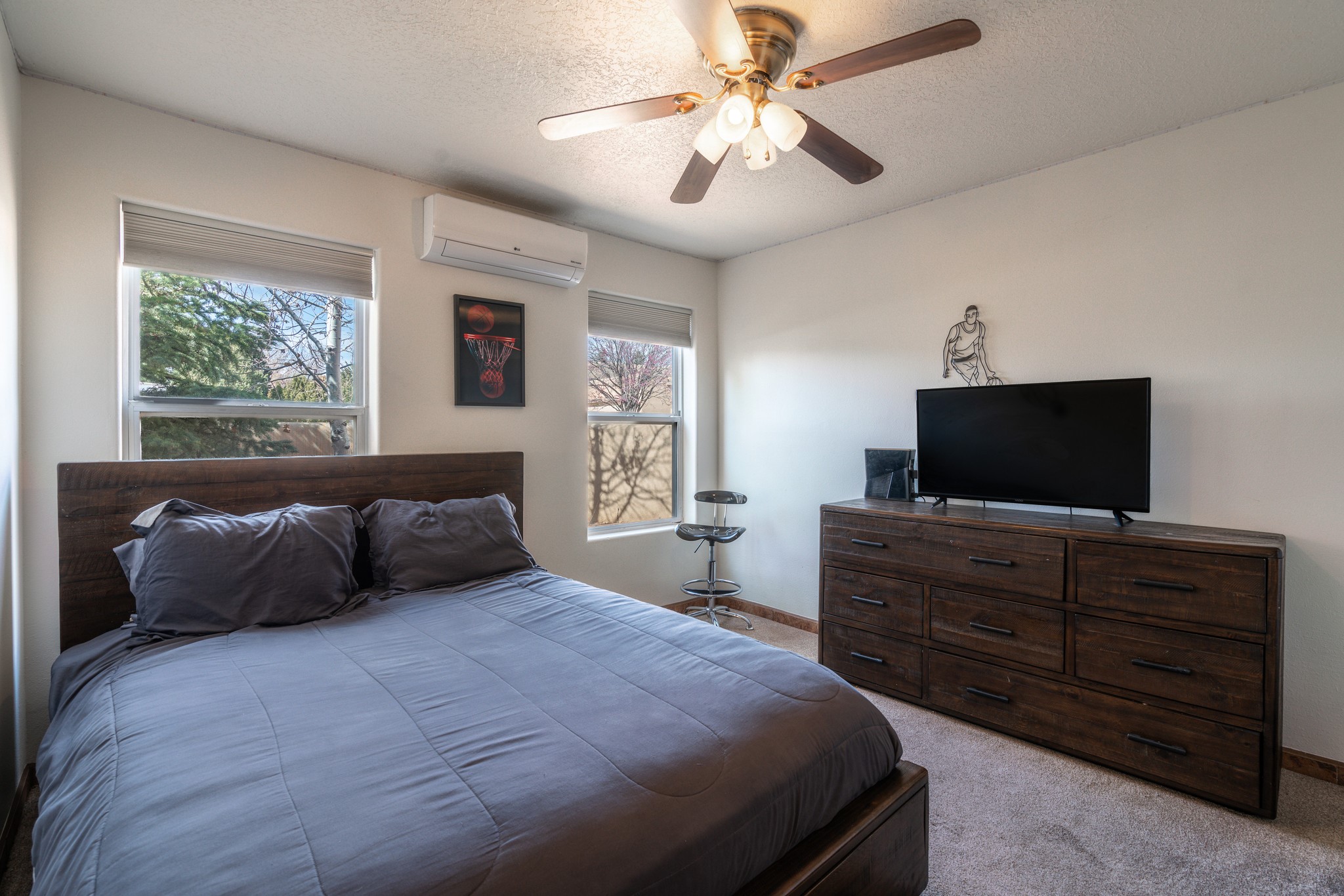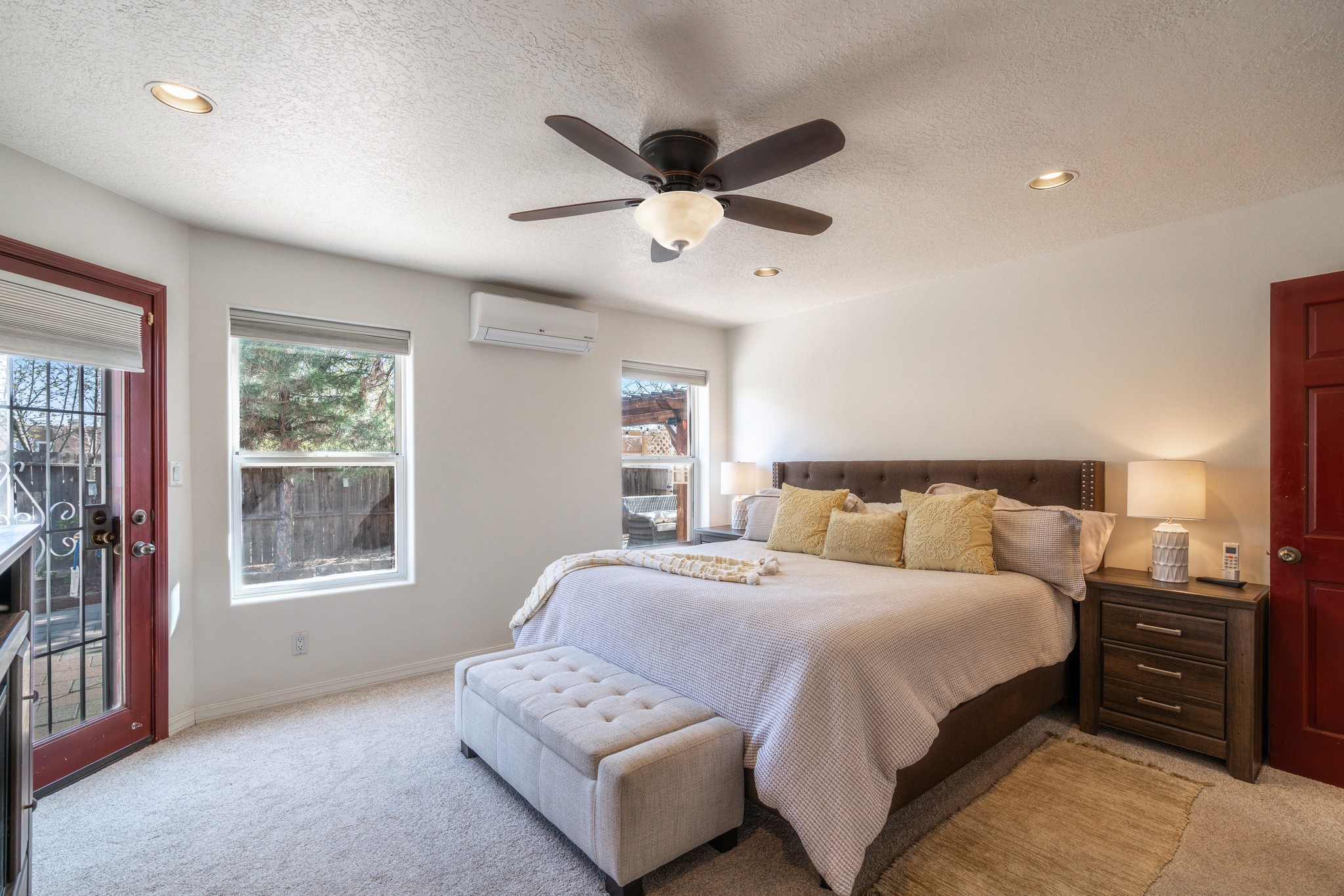 Step into comfort and style with this northern New Mexico gem, tucked away in a quiet cul-de-sac. Enjoy a brand-new kitchen, fresh paint throughout, new flooring, and radiant floor heating for cozy living year-round. Charming vigas accent the ceilings, adding a warm, rustic touch. Every room features new mini splits and dimmable recessed lighting. The main roof was replaced in 2020, and the exterior shines with updated stucco. Bonus: multiple peach and apple trees in the yard add a sweet touch of nature!