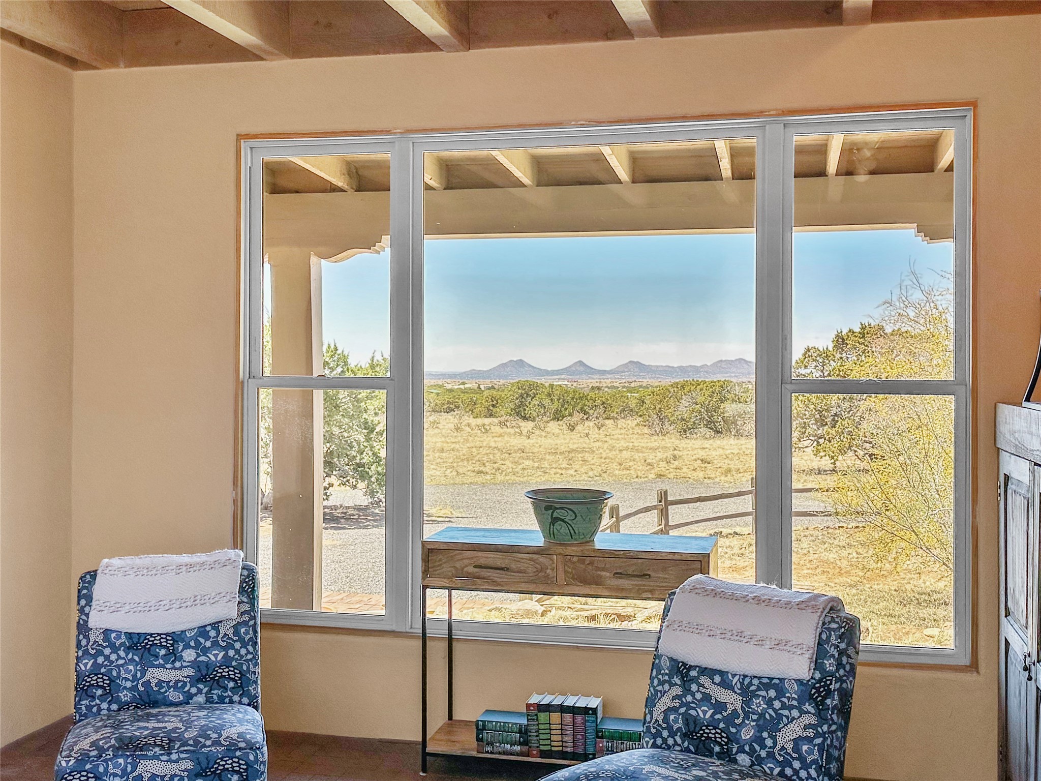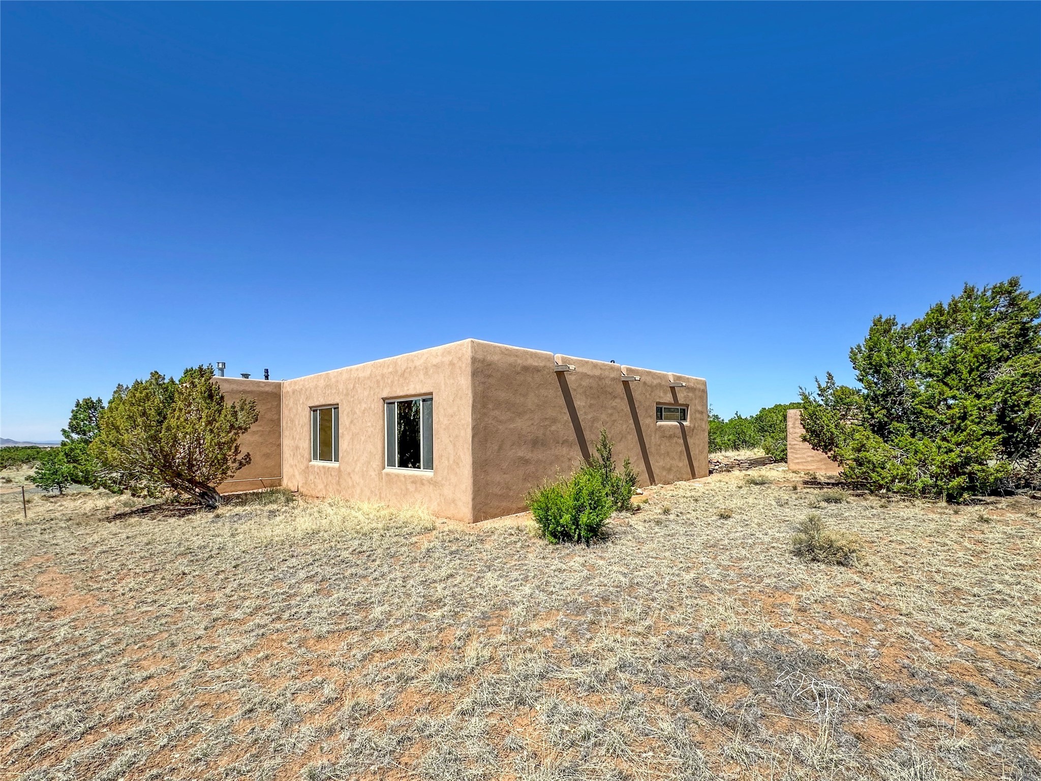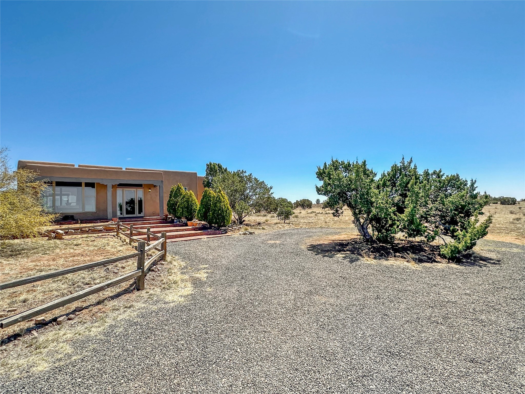 Welcome to your serene oasis! This stunning 3-bedroom, 2-bath home sits on 5 acres with breathtaking views, offering plenty of privacy. Inside, you'll be greeted by abundant natural light from multiple skylights that create a warm and inviting atmosphere. Eldorado is a nature lover's paradise with miles of hiking and biking trails, a beautiful wilderness area, dog Park for summertime fun. Enjoy the shopping, and dining options, all while experiencing dark night skies so clear, you can see the Milky Way! Best of all, you'll be just 20 minutes from the vibrant Santa Fe Plaza, making this property the perfect blend of tranquility and convenience. Don't miss your opportunity to own this slice of paradise!