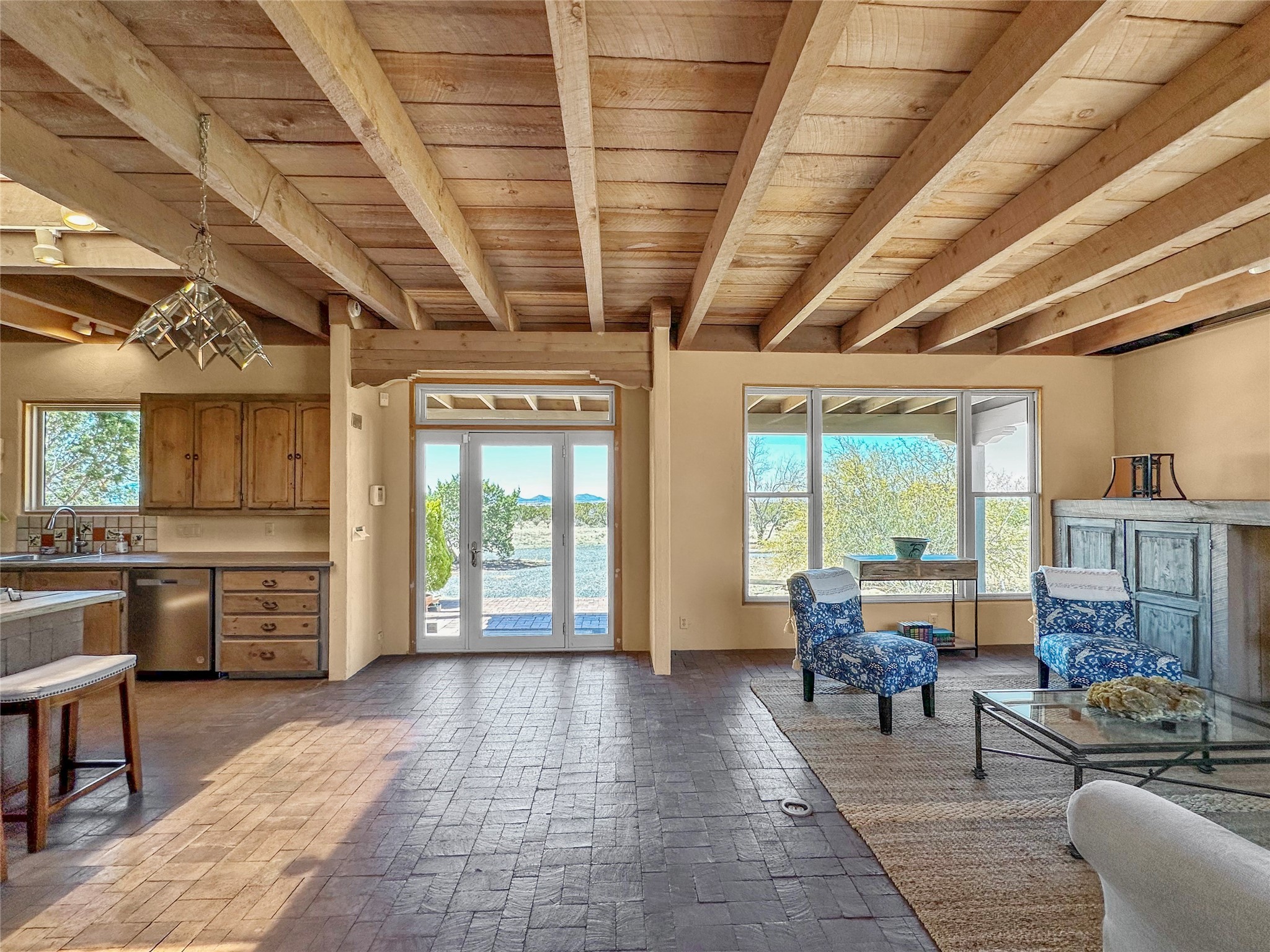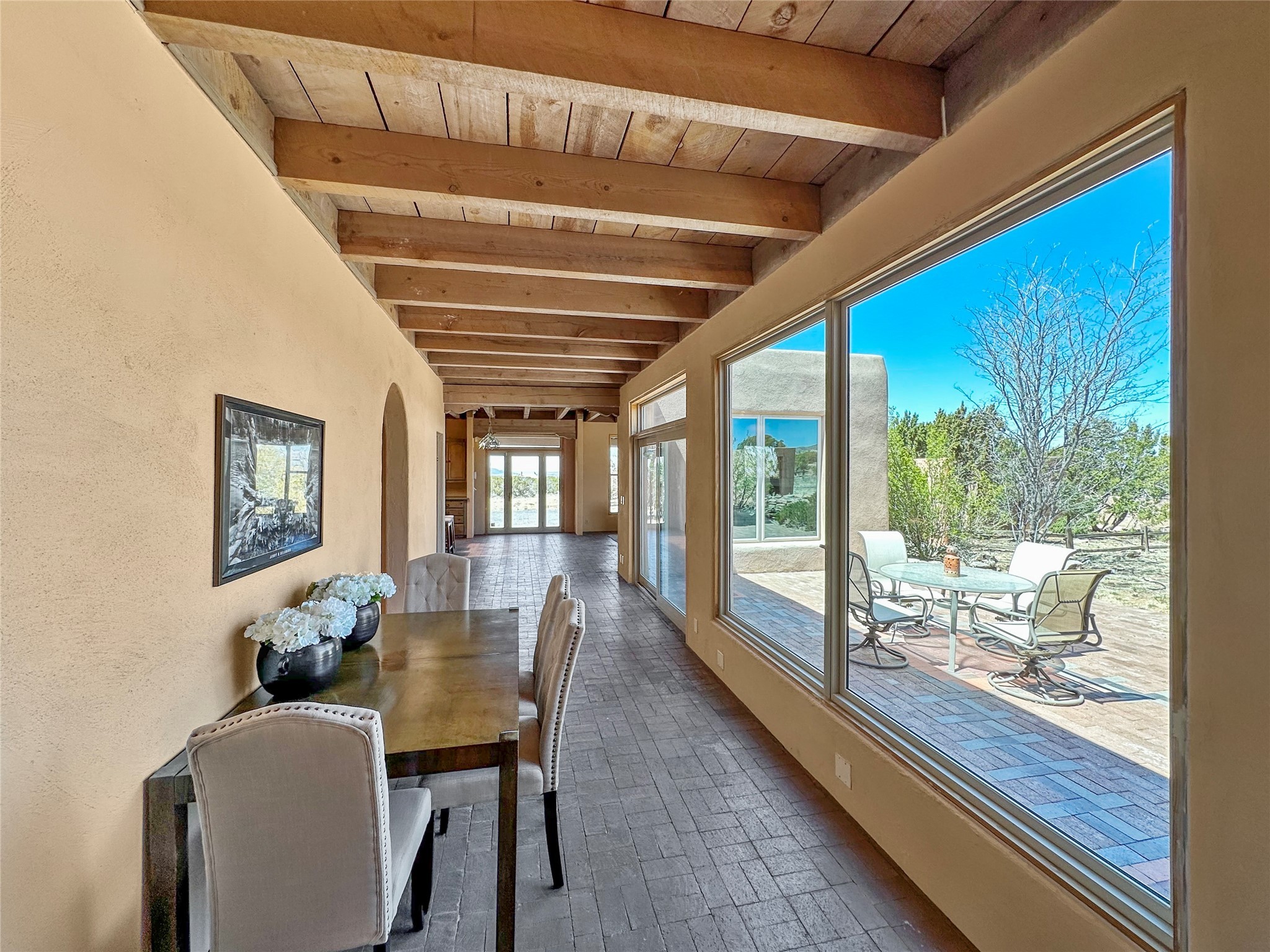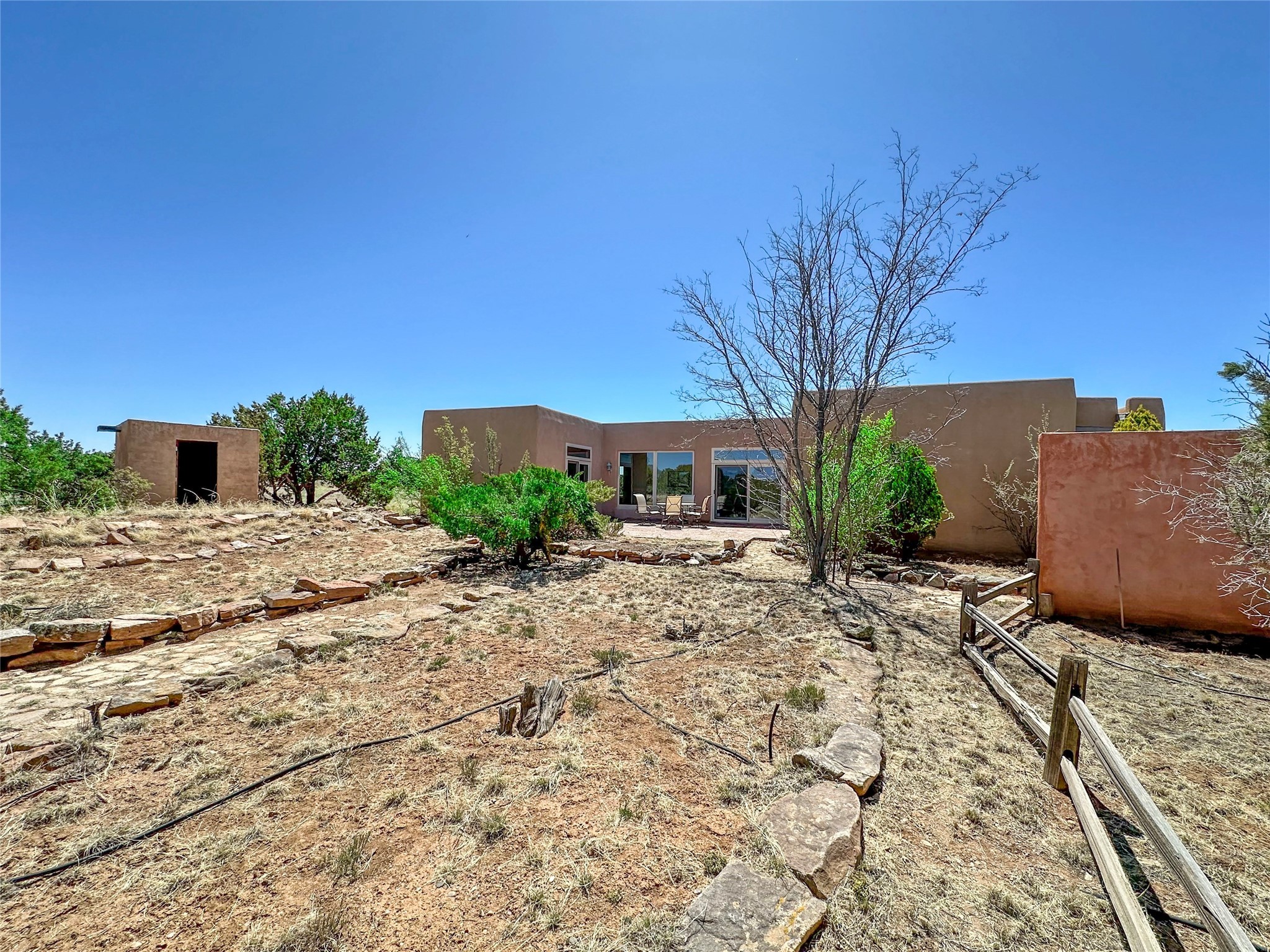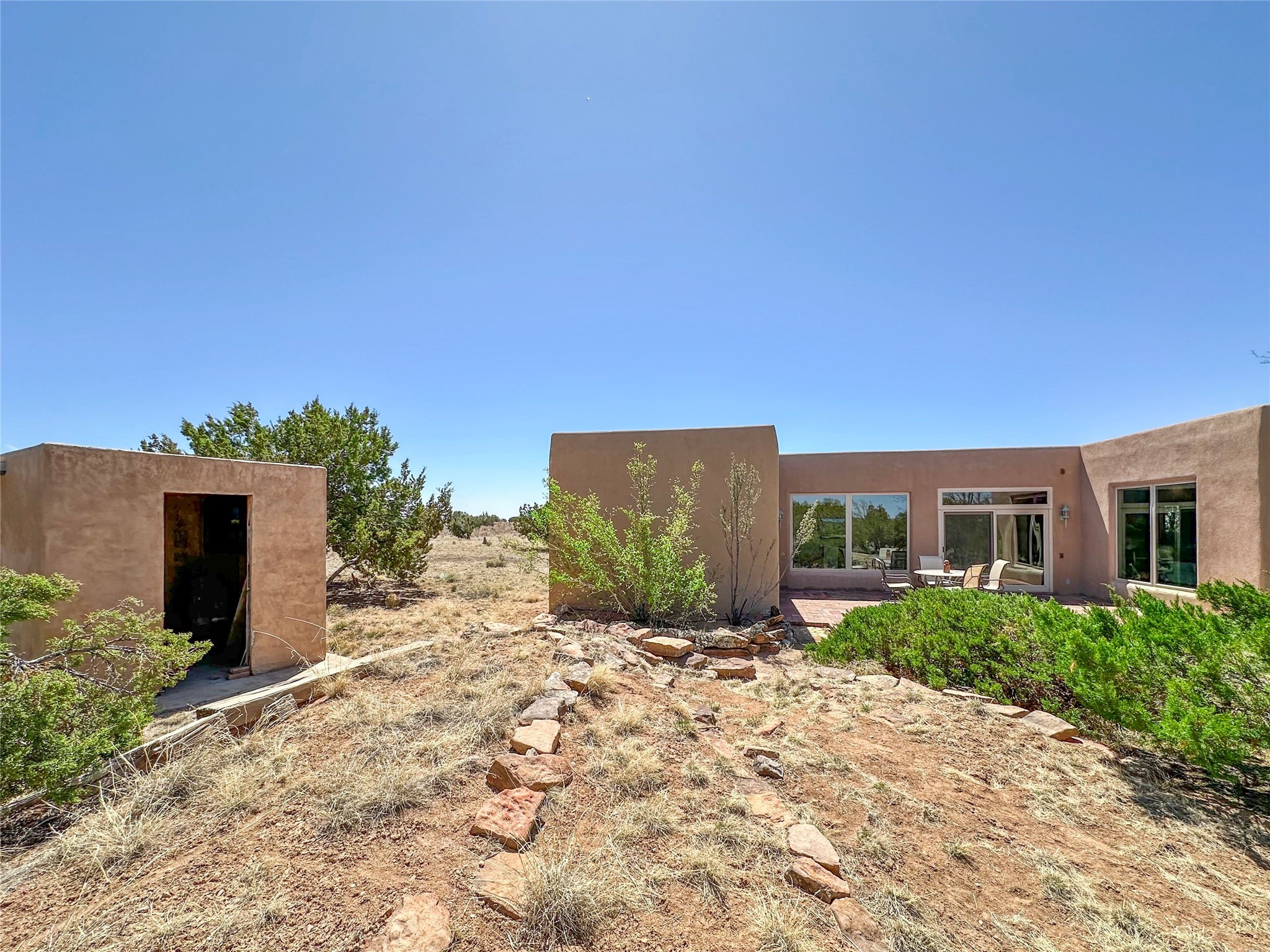 Welcome to your serene oasis! This stunning 3-bedroom, 2-bath home sits on 5 acres with breathtaking views, offering plenty of privacy. Inside, you'll be greeted by abundant natural light from multiple skylights that create a warm and inviting atmosphere. Eldorado is a nature lover's paradise with miles of hiking and biking trails, a beautiful wilderness area, dog Park for summertime fun. Enjoy the shopping, and dining options, all while experiencing dark night skies so clear, you can see the Milky Way! Best of all, you'll be just 20 minutes from the vibrant Santa Fe Plaza, making this property the perfect blend of tranquility and convenience. Don't miss your opportunity to own this slice of paradise!