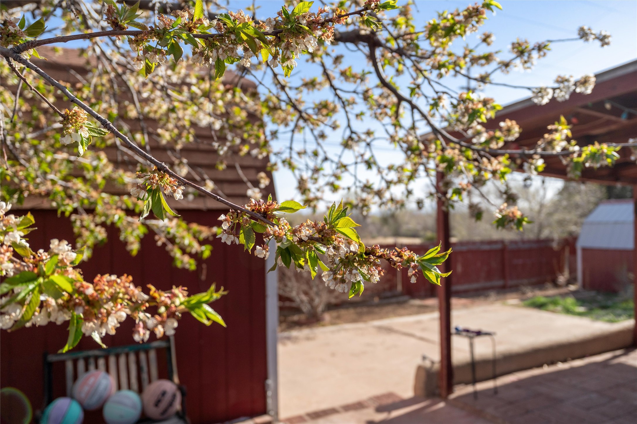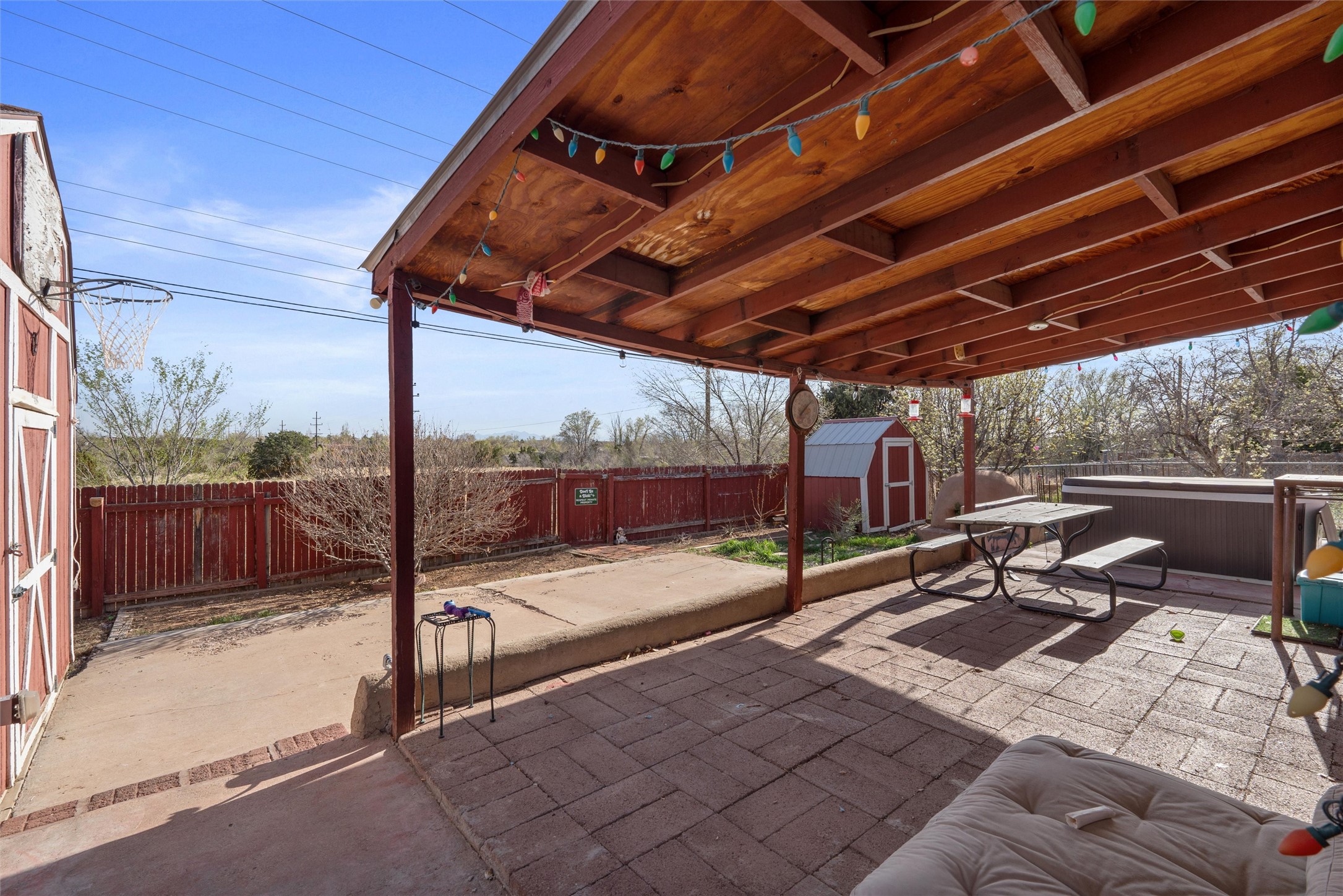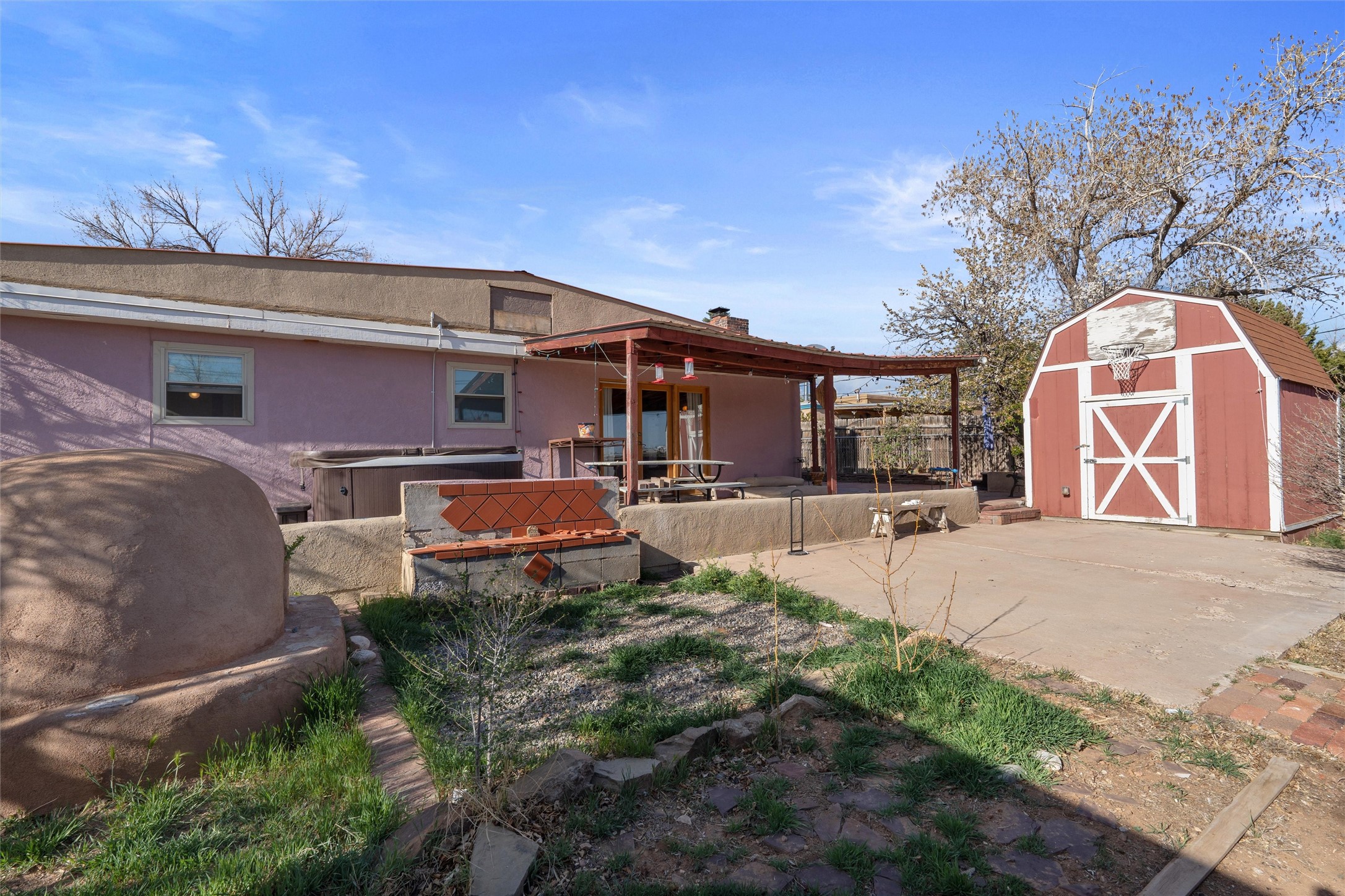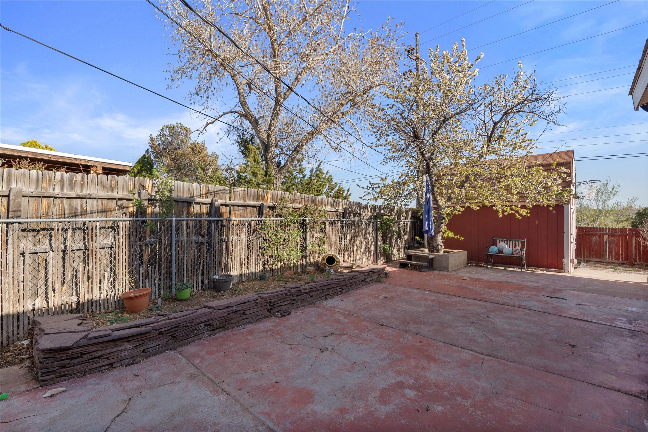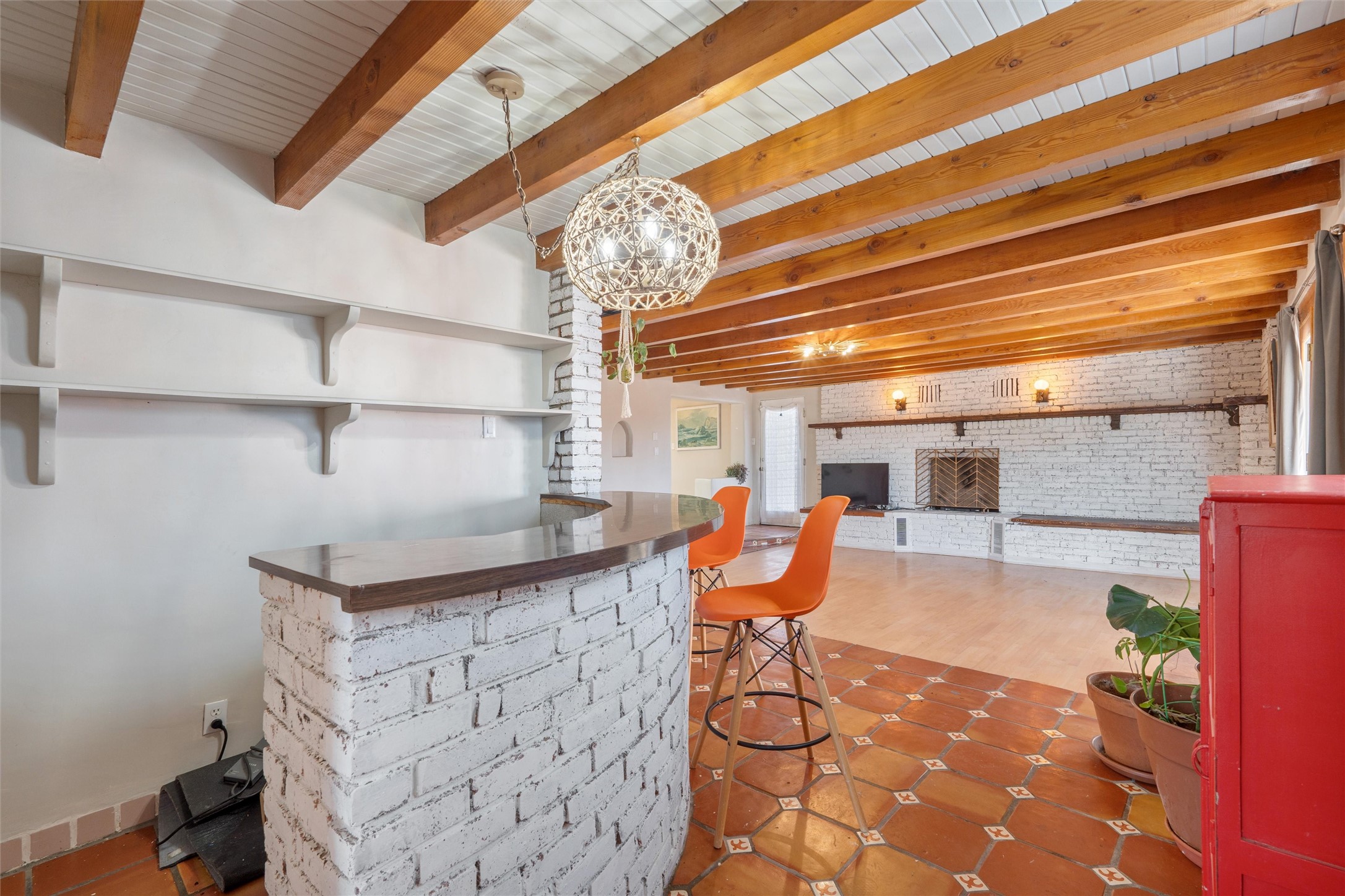 This warm and inviting 4-bedroom, 2-bathroom home offers just under 2000 square feet of flexible living space, perfectly positioned with no backyard neighbors--just open space and scenic walking trails right behind the property.Enjoy two distinct living areas, one featuring a cozy wood-burning fireplace, a built-in bar, and beautiful exposed wood beams with tongue-and-groove ceilings. Flooring includes classic Saltillo tile in select areas and hard surface flooring throughout--no carpet anywhere.The kitchen features granite countertops and a functional layout, offering a great opportunity for your own style and updates. Out back, you'll find a spacious yard with a barn-style shed and room to garden, entertain, or relax in privacy.With timeless Southwestern character and a prime location, this home is full of potential and ready for your personal touch.