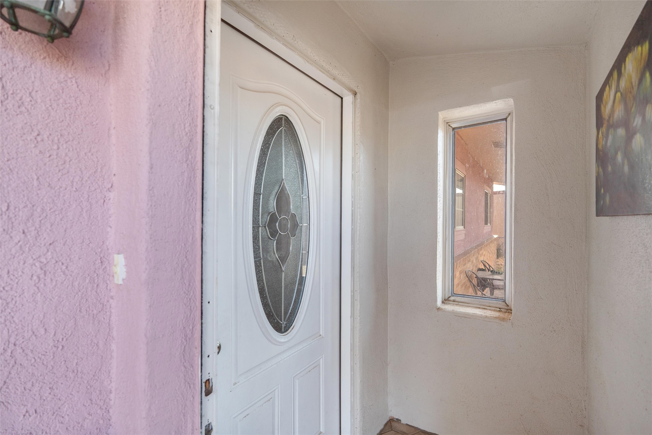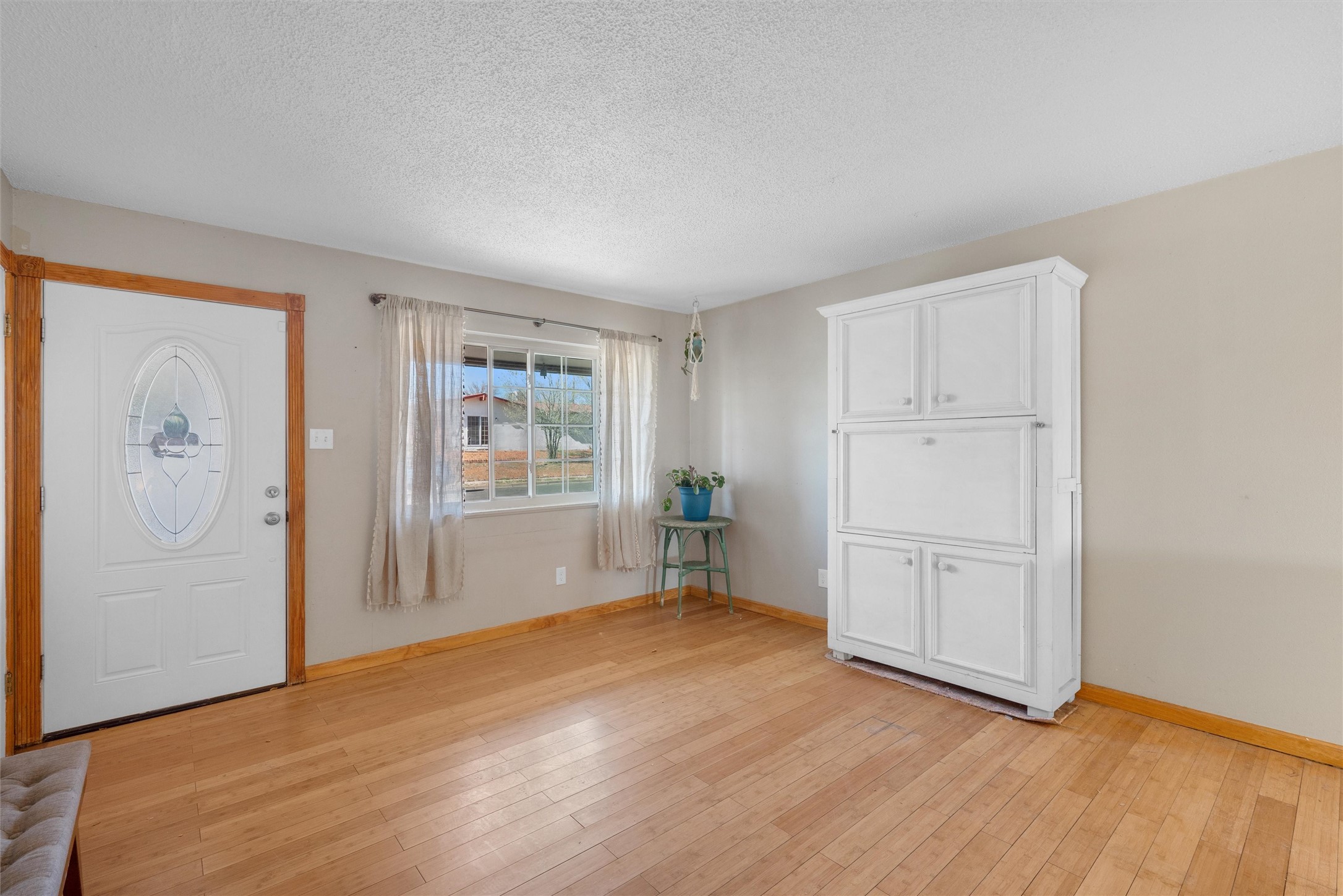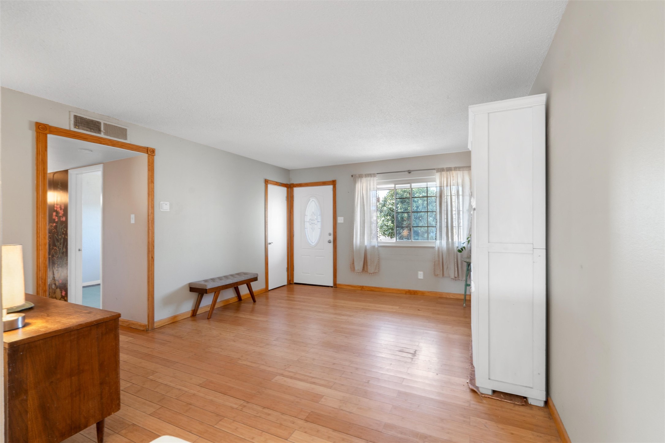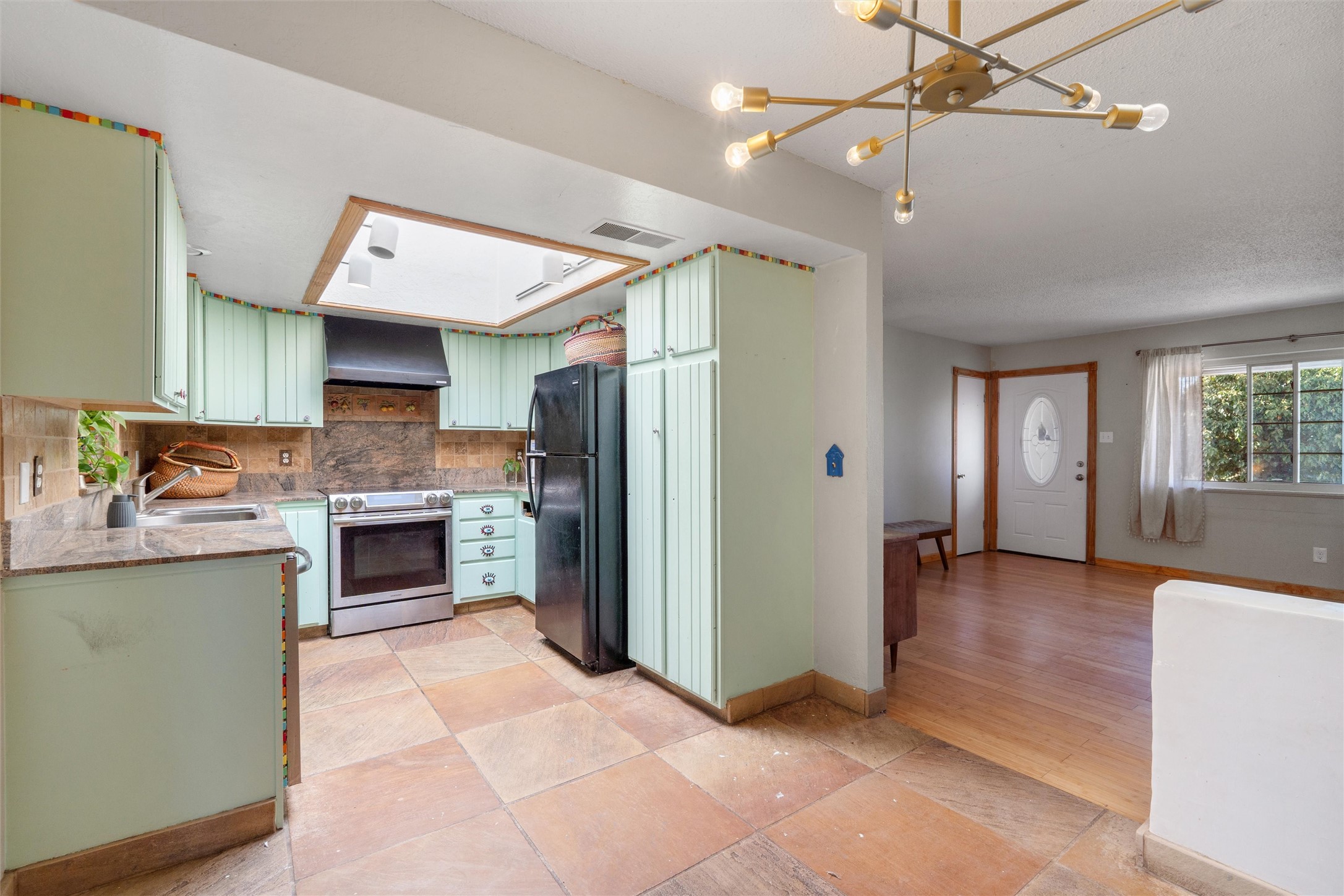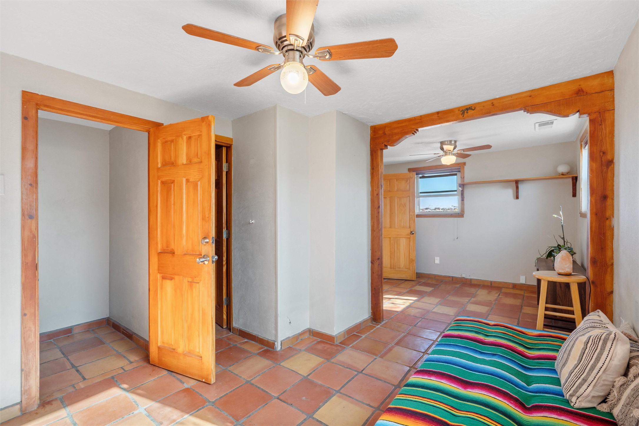 This warm and inviting 4-bedroom, 2-bathroom home offers just under 2000 square feet of flexible living space, perfectly positioned with no backyard neighbors--just open space and scenic walking trails right behind the property.Enjoy two distinct living areas, one featuring a cozy wood-burning fireplace, a built-in bar, and beautiful exposed wood beams with tongue-and-groove ceilings. Flooring includes classic Saltillo tile in select areas and hard surface flooring throughout--no carpet anywhere.The kitchen features granite countertops and a functional layout, offering a great opportunity for your own style and updates. Out back, you'll find a spacious yard with a barn-style shed and room to garden, entertain, or relax in privacy.With timeless Southwestern character and a prime location, this home is full of potential and ready for your personal touch.