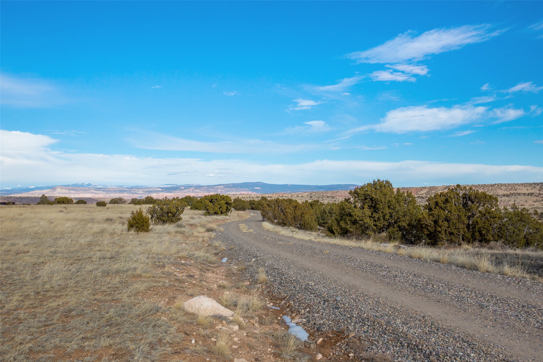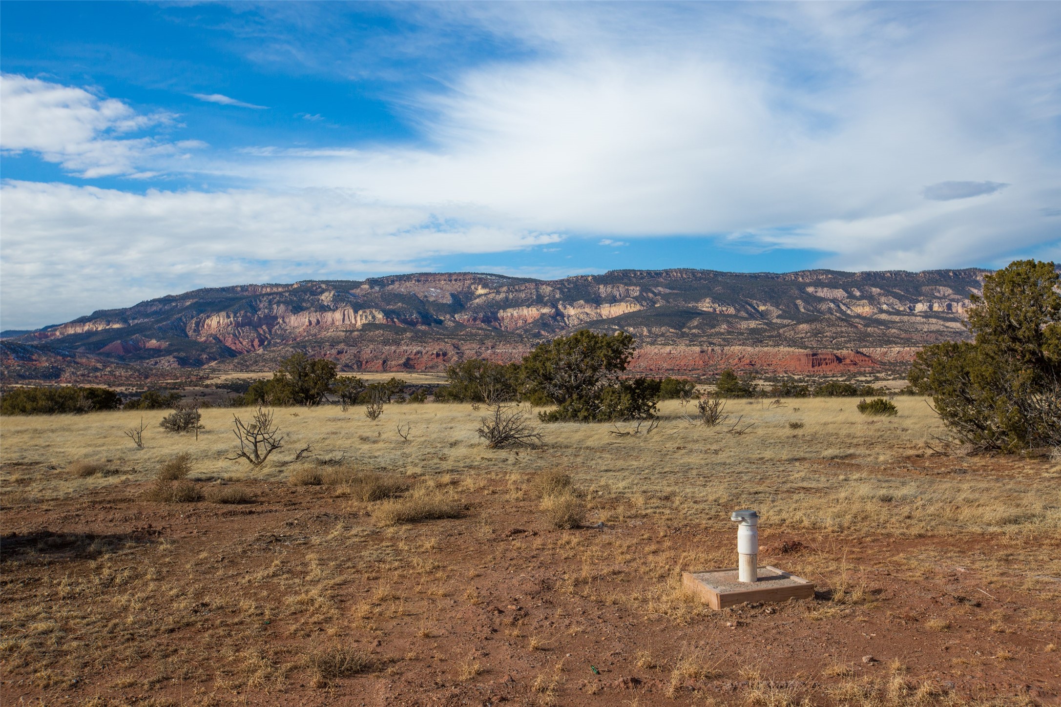 Tucked away in the tranquil landscape of Abiquiu, New Mexico, this extraordinary 67-acre property offers a harmonious blend of natural beauty and modern possibilities. From the moment you pass through the gated entrance, a sense of calm and seclusion surrounds you--welcome to your own private sanctuary. The land unfolds in all directions, showcasing stunning 360-degree vistas that stretch as far as the eye can see.A newly drilled well provides a dependable water source, while the land itself is framed by awe-inspiring landmarks. The Jemez Mountains rise dramatically to the west, their rugged peaks glowing in shades of gold, amber, and crimson under the setting sun. To the east, the iconic silhouette of Pedernal Mountain commands the skyline. Nature lovers and outdoor enthusiasts will find endless adventure just minutes away. Abiquiu Lake offers boating, fishing, and water sports, while the nearby Ghost Ranch invites exploration among its storied red rock canyons and cultural landmarks. Scenic hiking trails thread through the surrounding wilderness, offering quiet solitude and inspiring vistas.This remarkable property also includes a full set of architectural plans by the renowned Craig Hoopes, offering a vision for your ideal home or retreat. Whether your dream is a sleek modern dwelling or a cozy, rustic hideaway, the level mesa provides multiple building sites, each with its own breathtaking view.Though the property feels like a world away, it is part of a well-maintained community, protected by HOA guidelines and covenants that preserve its untouched beauty. Here, the land doesn't just offer space--it offers inspiration. A rare opportunity to shape your future in one of New Mexico's most enchanting settings, this is more than land, it's a canvas upon which to paint the life you've always imagined.