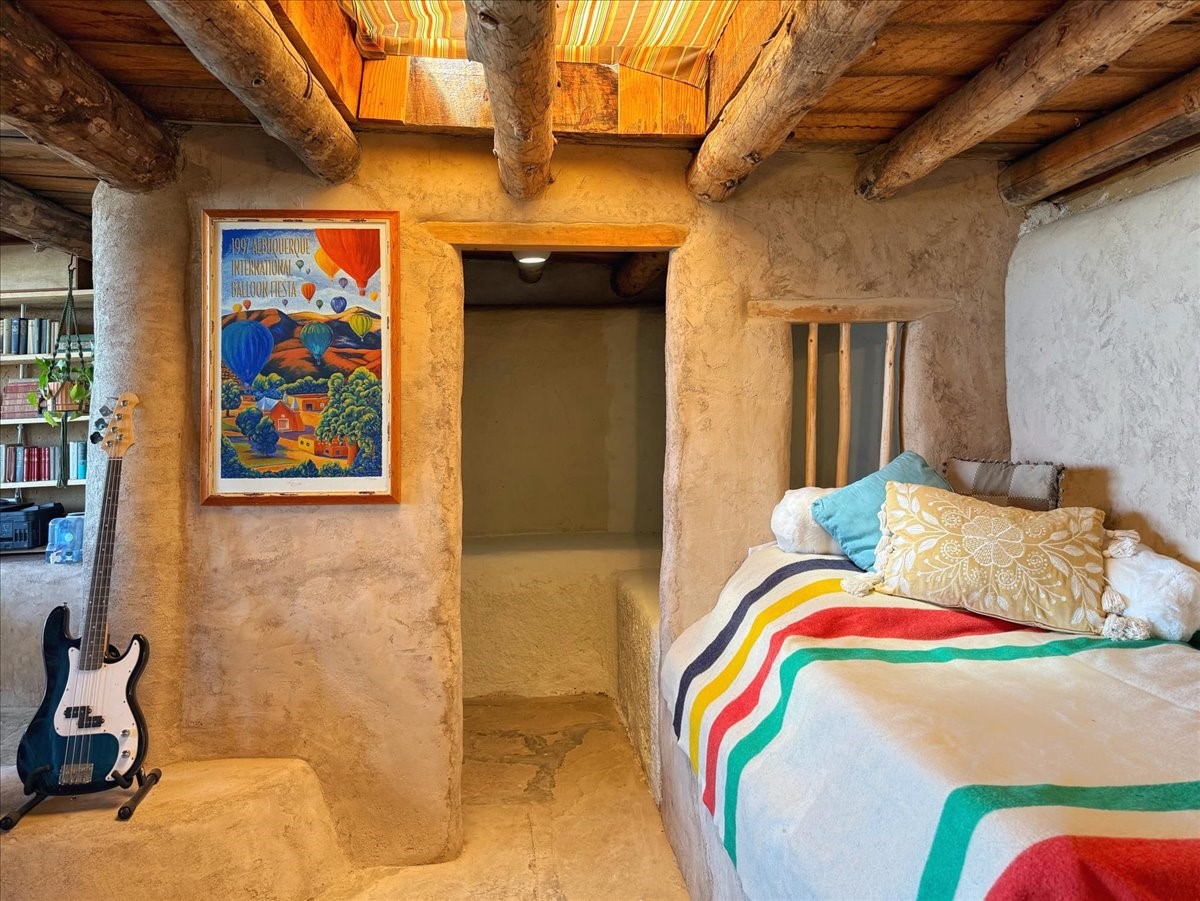 Escape to serenity in this sunny one bedroom one bath 1980s Adobe Revival home nestled in our stunning New Mexico mountains! The open concept living space flows effortlessly into a well appointed kitchen, while the spacious but cozy bedroom offers a restful night's sleep with tranquil views of the San Pedro mountain range in the Santa Fe National Forest right in the backyard. This 1.4 acre property boasts shipping container outbuildings, as well as RV parking and hook up, all fully fenced and includes a Michael Reynolds designed Earthship as a bonus separate/building with the potential of being a really sweet art studio with it's own wood burning stove! This peaceful location is graced by an abundance of wildlife while still conveniently located between Bernalillo and Los Alamos all while you can enjoy the sweet town of Cuba and the delicious Northern New Mexican food! If you are looking for something really cool and down to earth, this is it! Schedule your showing today! Owner financing possible with favorable terms. Call the listing broker for more information or to schedule your showing! Don't miss out on this fantastic opportunity to own such a special, very well maintained home (and bonus Earthship!) in the Land of Enchantment!
