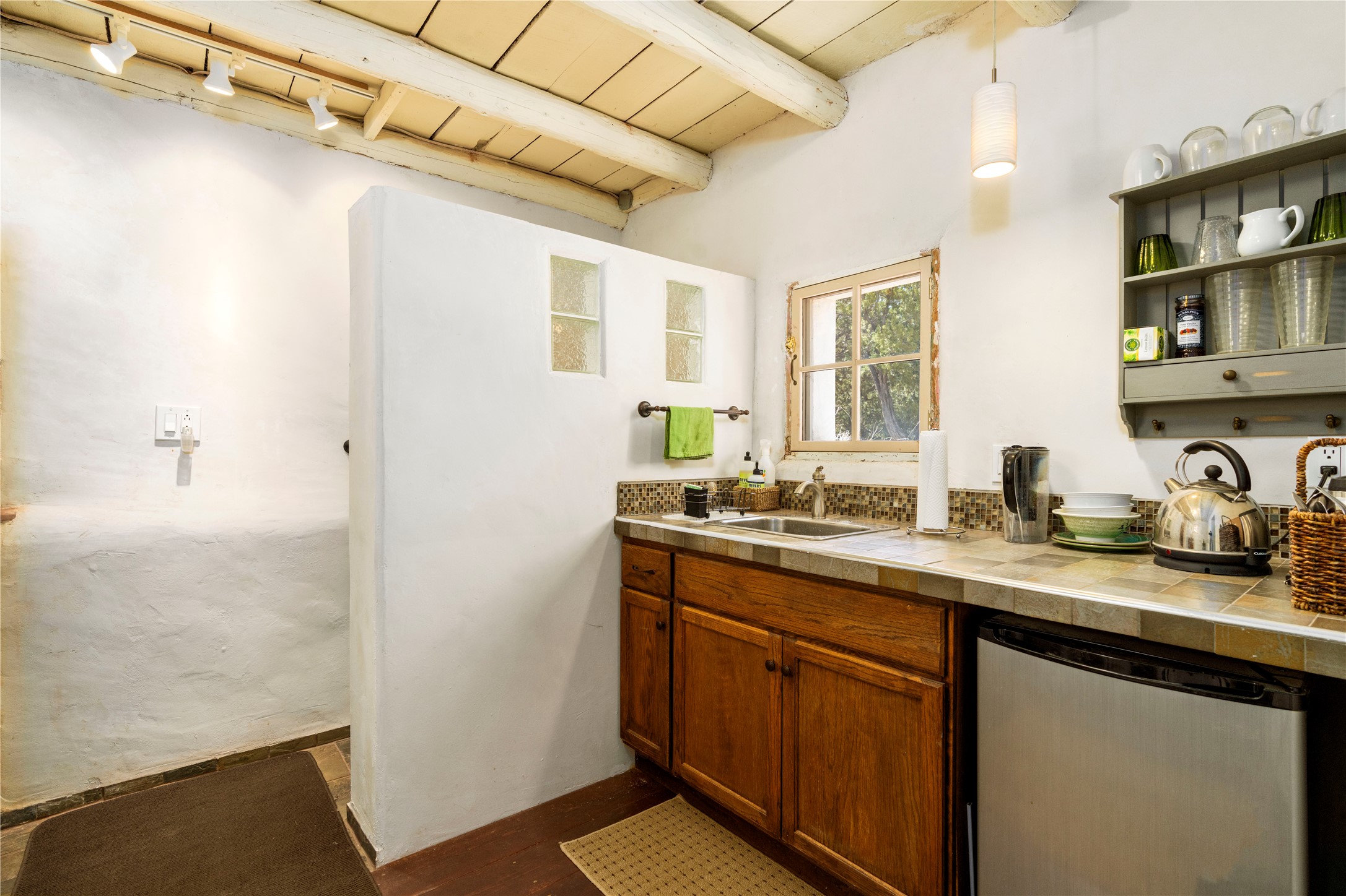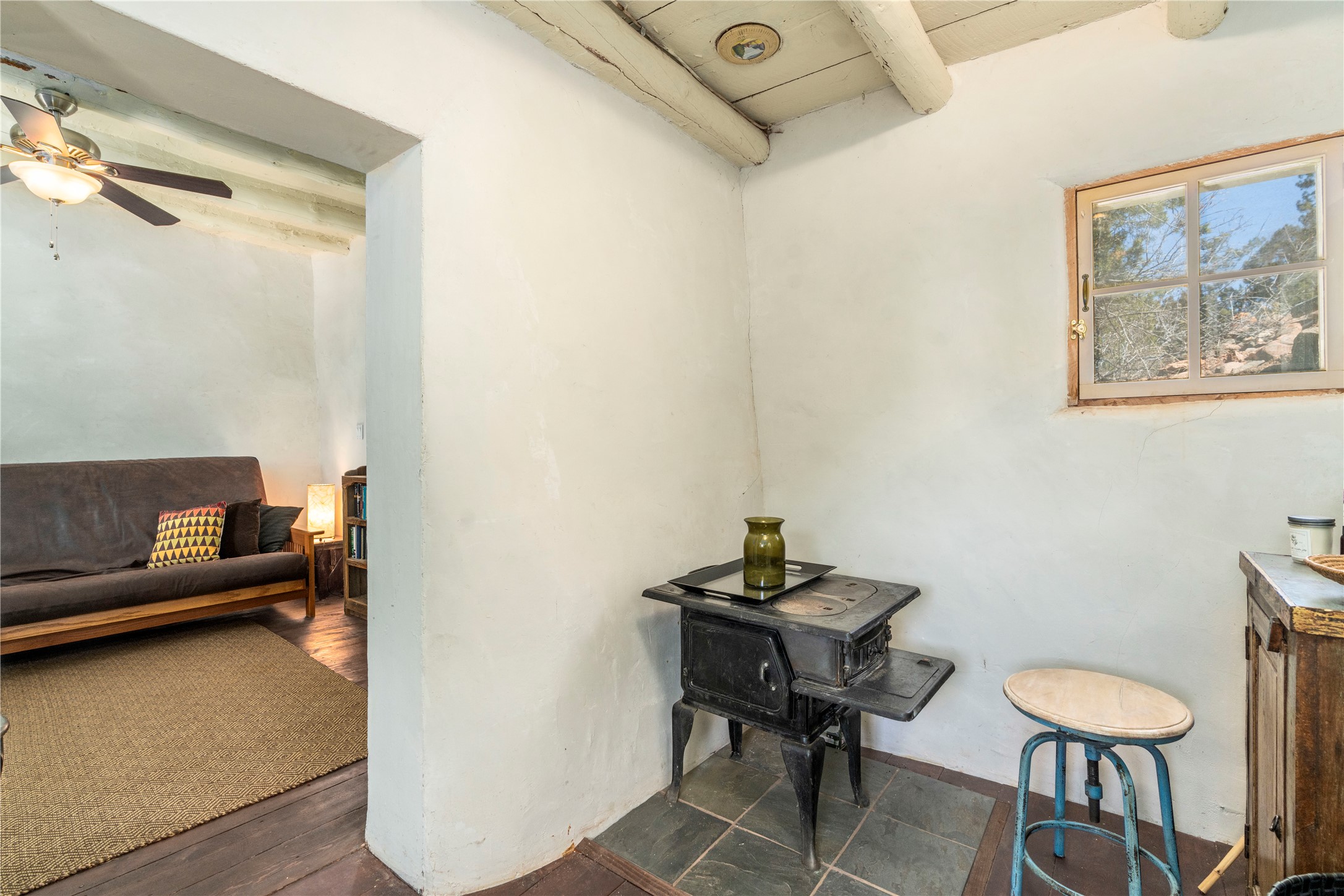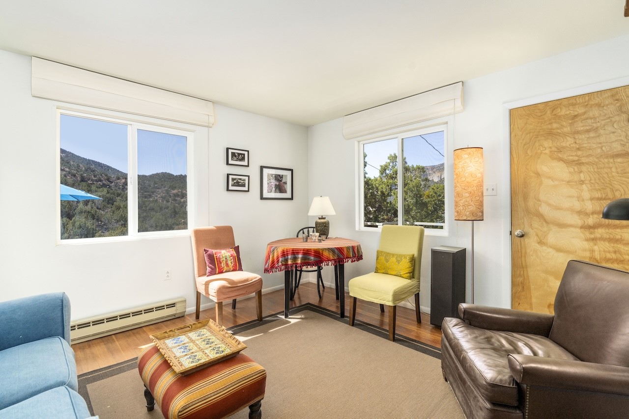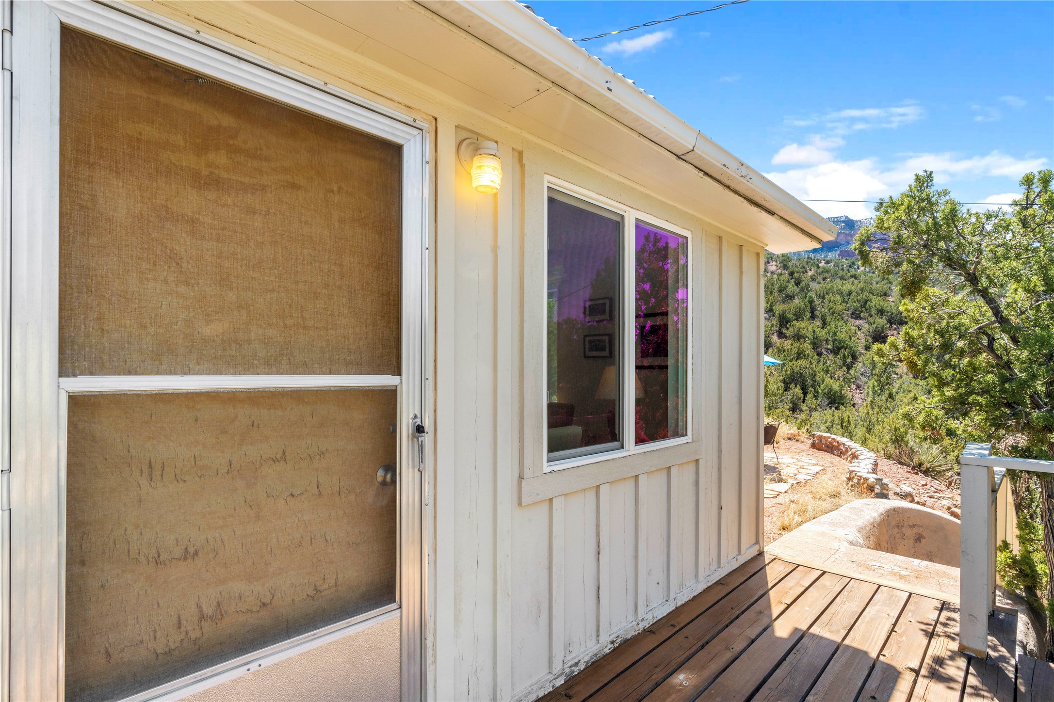Seriously...FABULOUS home with casita perched right on the GORGEOUS mesas within the Village of Jemez Springs! The 804 square foot home has a small, artistic kitchen and cozy living area, a full bath, two bedrooms, and a laundry room- all with updated Pella windows and plenty of charm! The master bedroom has cathedral ceilings and large windows to enjoy those remarkable San Diego Canyon views that can only be found in the Jemez! Basement and workshop down below. The 394 square foot rock house, dating back to the mid-1800's and visible in historical photos of Jemez Springs, has been lovingly remodeled, perfect for housing friends and family! Super convenient location... just a hop, skip and a jump to restaurants, library, hot springs, & river. Community water and sewer. You know you want to come look RIGHT NOW!!