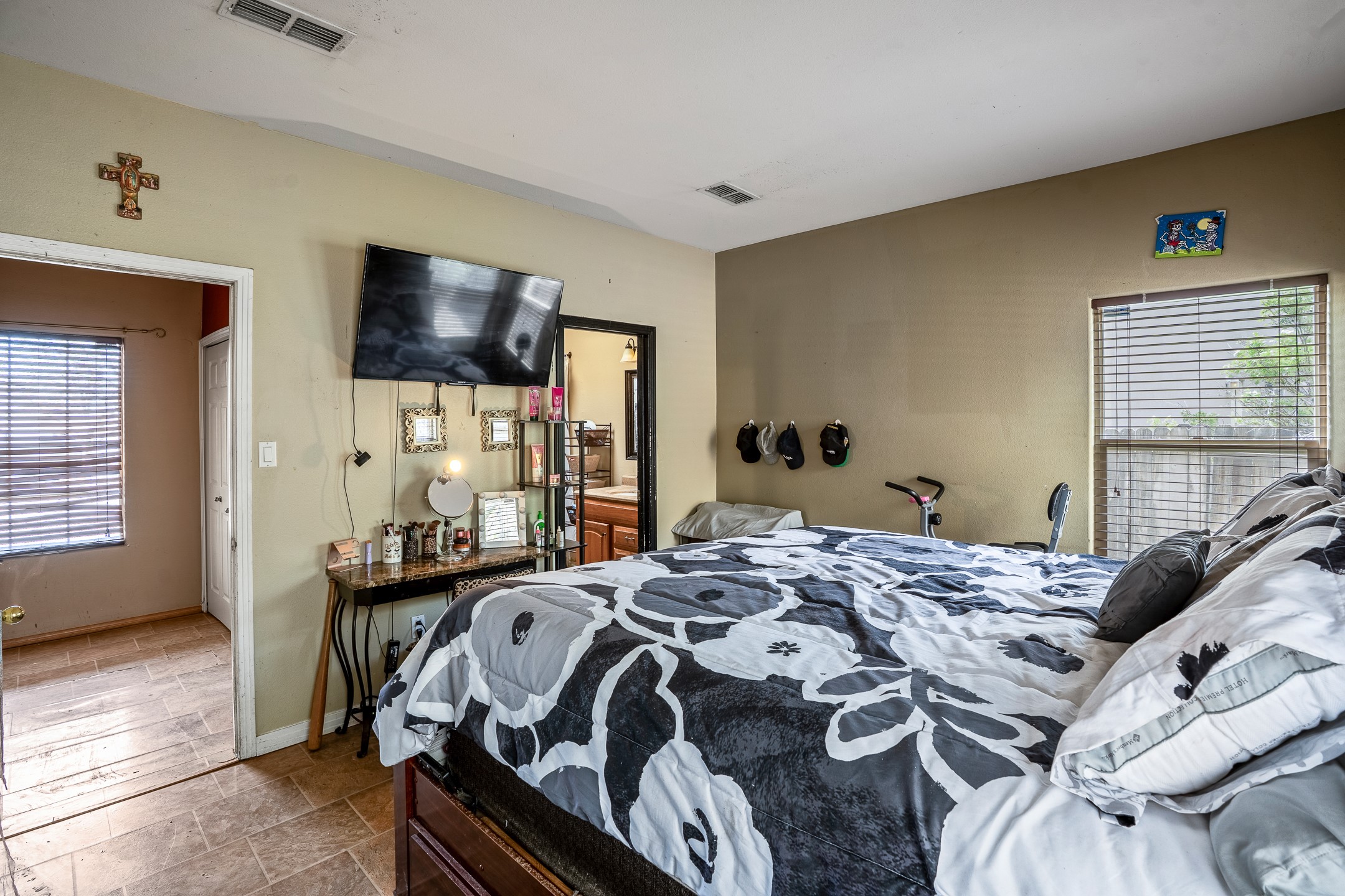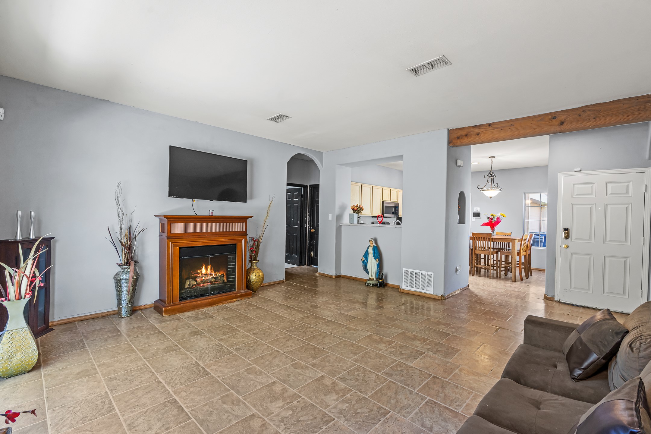 ****Seller is offering a $10,00 paint/flooring credit at closing!****Charming 3-Bedroom, 2-Bath Home with Energy Efficiency. This 3-bedroom, 2-bath home features excellent bedroom separation for added privacy and comfort. The open floor plan is perfect for both relaxing and entertaining, complemented by refrigerated air for added comfort. Enjoy the convenience of an attached 2-car garage plus additional parking for up to six vehicles--great for guests or multi-vehicle households. Energy efficiency is a key highlight with PV solar panels already installed, helping to keep utility costs low. Ask about the flooring and paint allowance--an excellent opportunity to add your personal touch! Located with easy access to both Hwy 599 and I-25, you're just minutes from the public library, shops, schools, and Presbyterian Hospital. Don't miss the chance to make this conveniently located, energy-smart home yours.