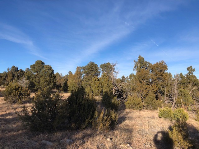 This is one of three five-acre lots for sale in a quiet, secluded six-lot subdivision, located just west of Romeroville and about 3 miles from the Ojitos Frios subdivision. San Miguel County road A20, partly paved and partly gravel, provides access to the short driveway up to the subdivision. Fully forested with pinon & juniper tree cover, and lots of flat areas which could be cleared for your site-built home, or a manufactured or modular home. The subdivision is fenced around the perimeter but not between lots. This is one of three contiguous lots for sale. Electricity in the area; needs well and septic. Seller will consider owner financing.