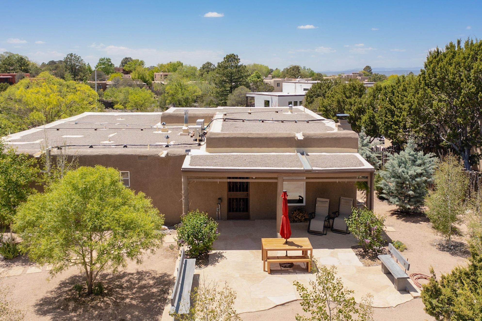 Discover this beautifully updated, move-in-ready single-level custom pueblo-style home in the desirable Villa Caballero subdivision. Ideally located less than 15 minutes from the Historic Santa Fe Plaza and close to parks, trails, and local amenities, this 3-bedroom, 2-bathroom residence offers 2,072 sq ft of comfortable living space on a spacious and gorgeous 0.28-acre lot. Tucked away in a quiet cul- de-sac, the home blends comfort, convenience, and tranquility. Step inside to soaring 11-foot ceilings that enhance the airy, open feel of the main living areas. The great room features a chef's kitchen with custom Alderwood cabinetry, under-cabinet lighting, soft-close drawers and doors, quartz countertops, a glass tile backsplash, and a custom island. Luxurious stainless steel appliances include a Wolf range with Zephyr hood and a counter-depth Jenn Air refrigerator. Oversized dual-pane windows with window treatments in the great room and primary bedroom allow for abundant natural light and improved energy efficiency. Arizona Porcelain tile flooring extends through the living areas, with plush new carpeting in the bedrooms. Both bathrooms are tastefully updated with modern finishes. The spacious primary suite includes a walk-in closet and a renovated en-suite bath. The private, fully enclosed backyard is perfect for entertaining with a rear patio, flagstone pathways, mature juniper and aspen trees, and a wooden garden shed for extra storage. Additional highlights include new Jeld-Wen dual pane windows in the great room and primary bedroom, baseboard heating, ductless mini-splits A/C, a cozy kiva fireplace, a finished two-car garage with built-in cabinetry, RV/boat parking, and recent roof maintenance with a three-year warranty, extendable to five years. This thoughtfully updated home offers the perfect combination of style, comfort, and location--schedule your private showing today!