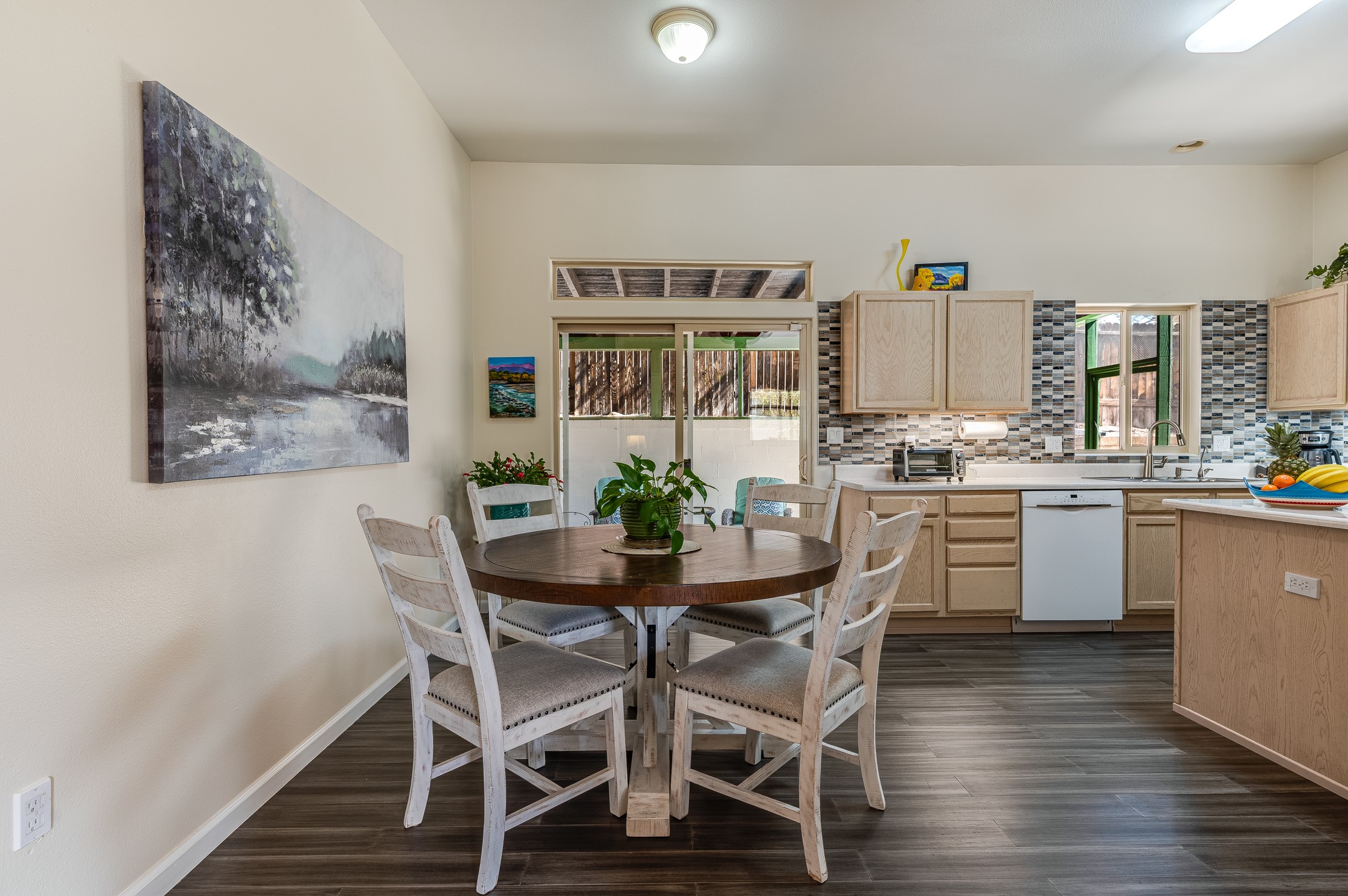 Comfort meets convenience in this inviting and well-maintained single-level home nestled next to the Santa Fe Country Club and surrounded by picturesque walking trails. The open eat-in kitchen features an island for meal preparation and an area for casual dining, making it a welcoming space for gatherings. The large screened back porch just outside the kitchen provides an ideal spot for relaxation or entertaining friends and family. The fully fenced back yard provides privacy, while the two side yard areas offer ample space for a dog run and various back yard activities. Three bedrooms and two bathrooms include a primary bedroom with en-suite bathroom and a second bathroom in the hallway, ensuring ample space for everyone. With plenty of built-in shelving in closets and a two-car garage with additional storage space, organization and storage are a breeze. Recent updates in the past few years include a new roof, fresh interior paint throughout, and exterior maintenance and painting. Whether you're commuting to work or planning a getaway, you'll appreciate the proximity to the Veterans Memorial Highway/599 and the Santa Fe Regional Airport. No Homeowners Association (HOA).