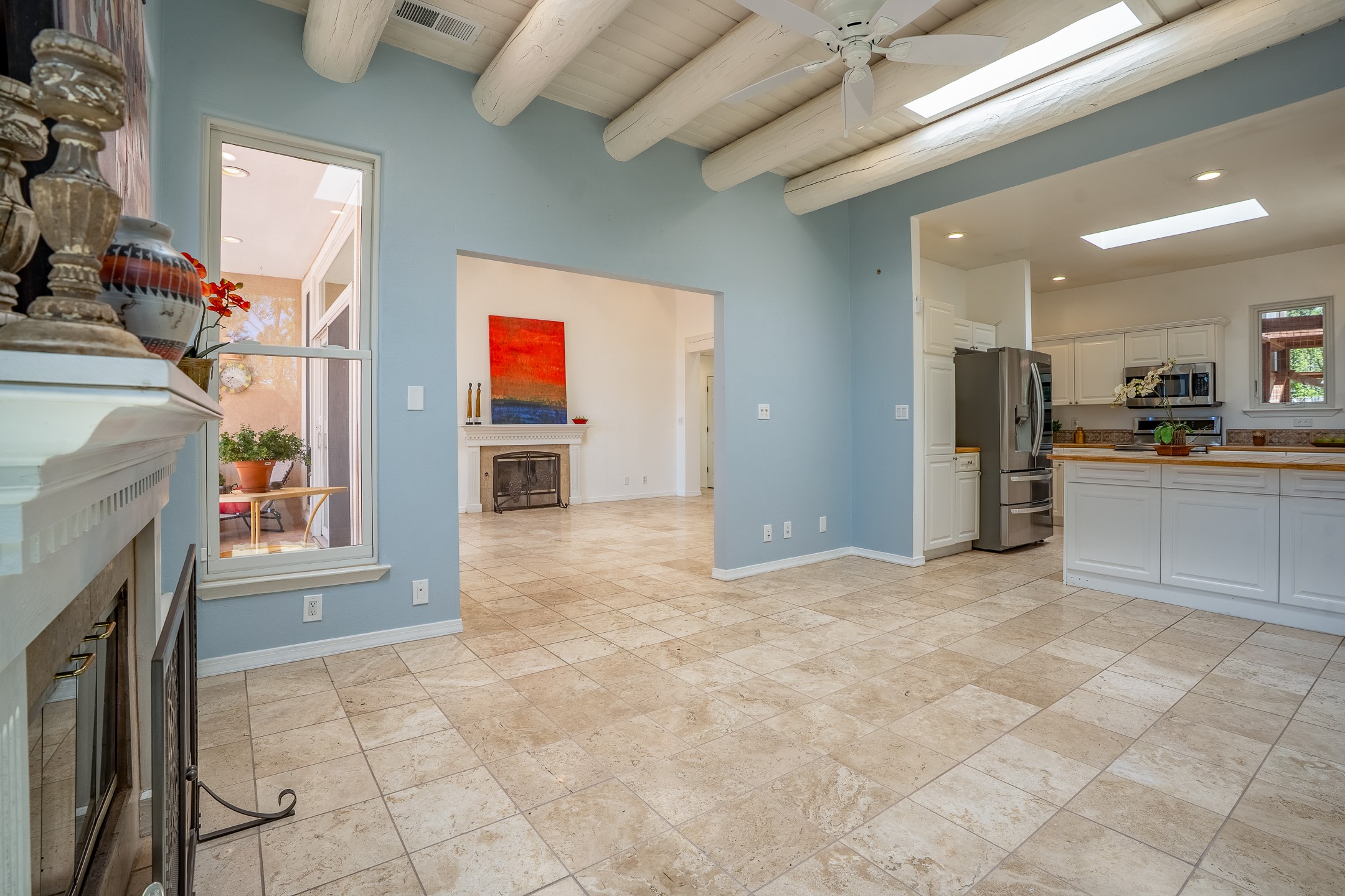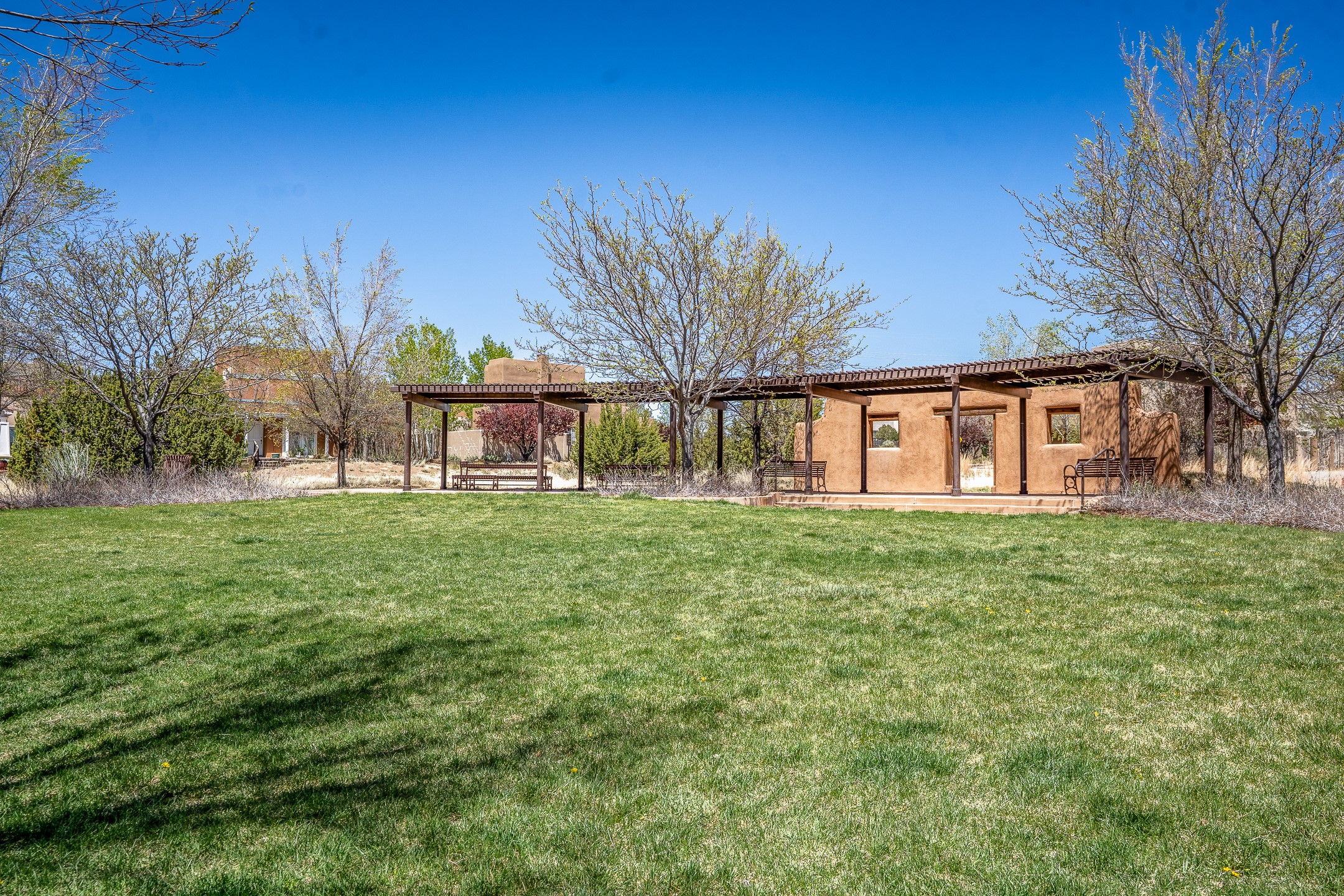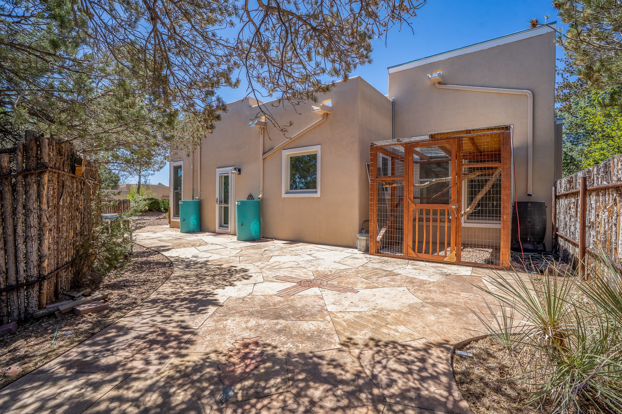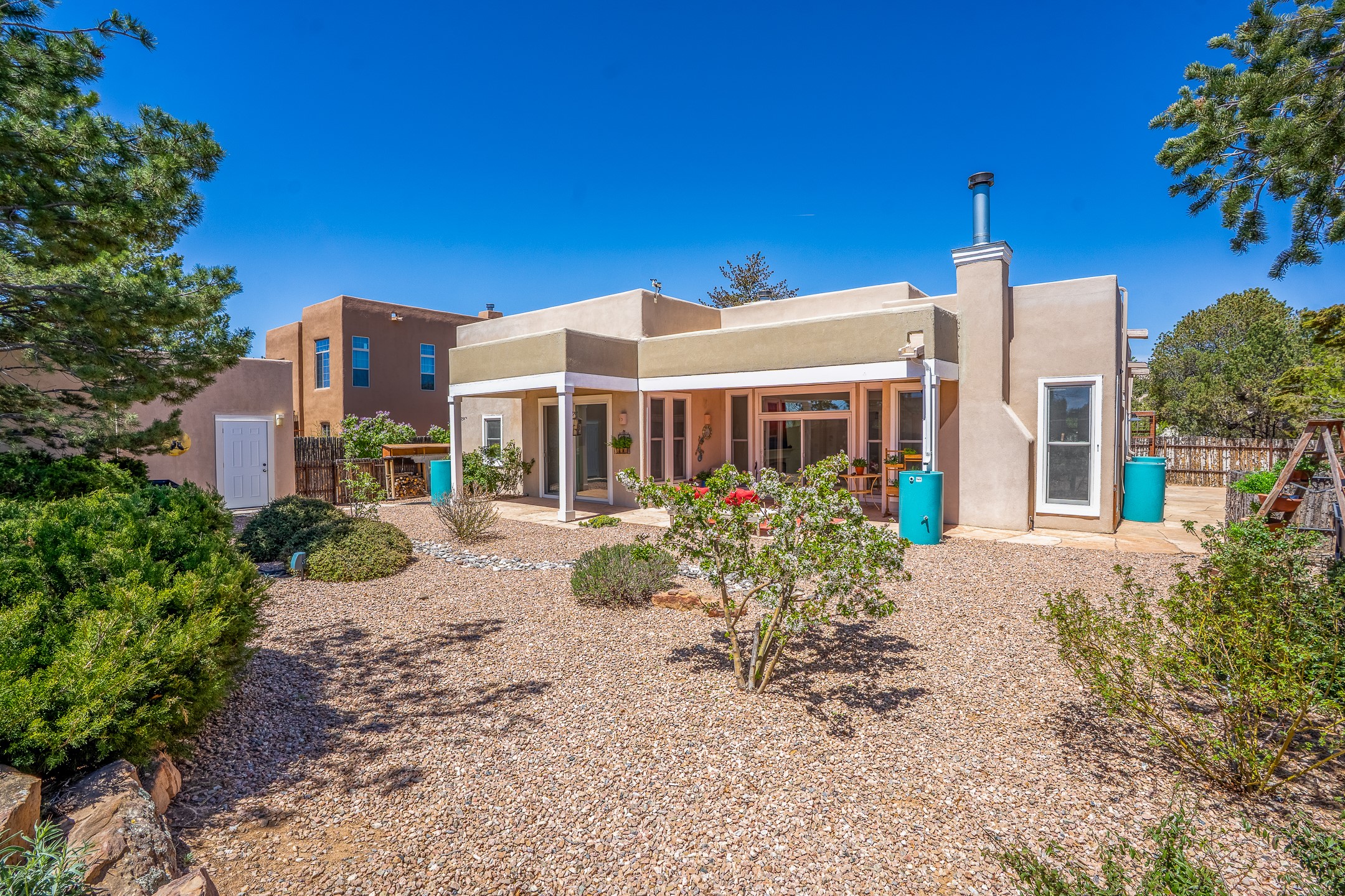 Southwestern Elegance in Nava AdeWelcome to this beautifully crafted 3-bedroom + flex room, 2.5-bath home located in the desirable Nava Ade community--known for its thoughtful design and exceptional lifestyle amenities that was once a model home. With over 2,000 square feet of living space, this Pueblo/Territorial-style residence blends timeless Southwestern character with modern updates and eco-conscious features.Inside, you'll find high ceilings with wood beams, two cozy fireplaces, and two spacious living areas that offer warmth and versatility. Elegant travertine stone and wood flooring flow throughout, adding texture and sophistication. The flex room is ideal for a home office, studio, or guest space, while the formal dining area and kitchen--with newer stainless steel appliances--make everyday living and entertaining a breeze.Situated on an extra-large lot with open spaces behind and walking paths on one side, the home is surrounded by beautifully landscaped xeriscape gardens with drip irrigation--perfectly suited to Santa Fe's climate. The freestanding two-car garage provides added convenience and flexibility. Additional upgrades include newer windows and patio doors (2018), a recently replaced roof system, and a fully owned solar energy system for enhanced energy efficiency.Nava Ade offers parks, walking paths, a community pool, and a clubhouse with fitness equipment--creating a vibrant, connected neighborhood you'll love coming home to.Experience the perfect balance of comfort, style, and sustainability in one of Santa Fe's most sought-after communities.