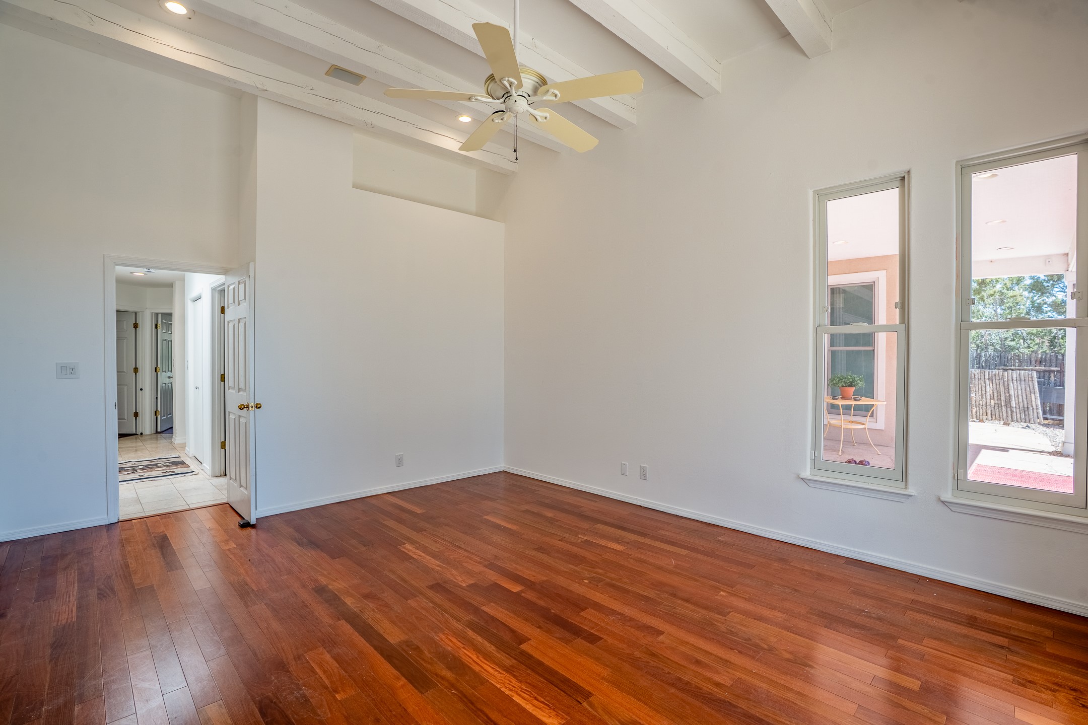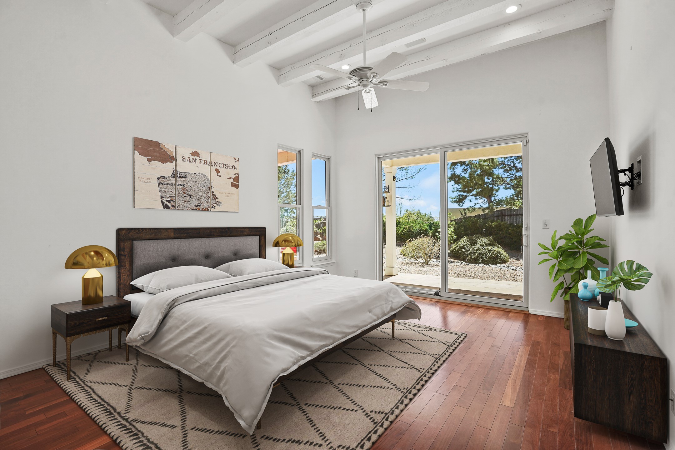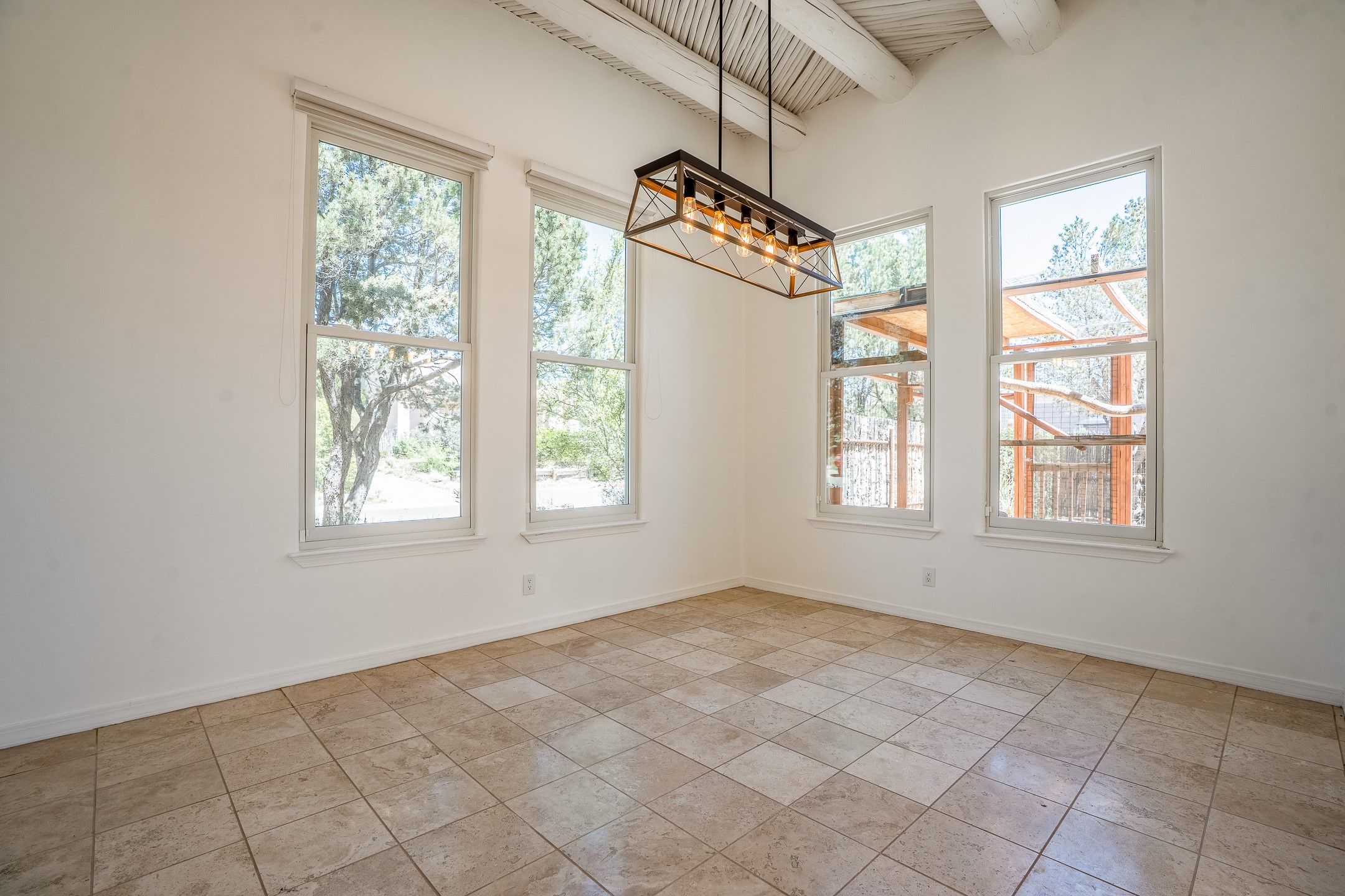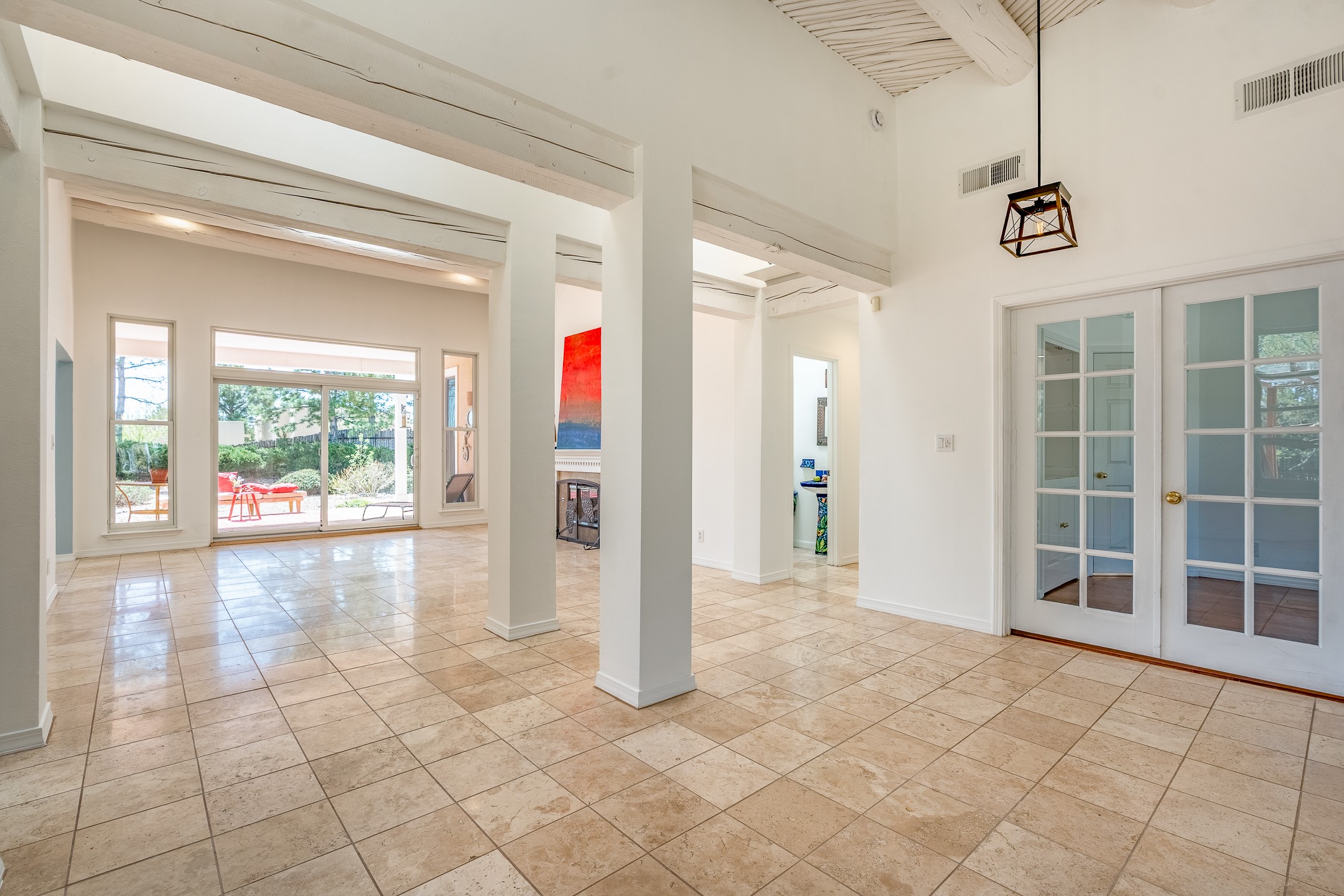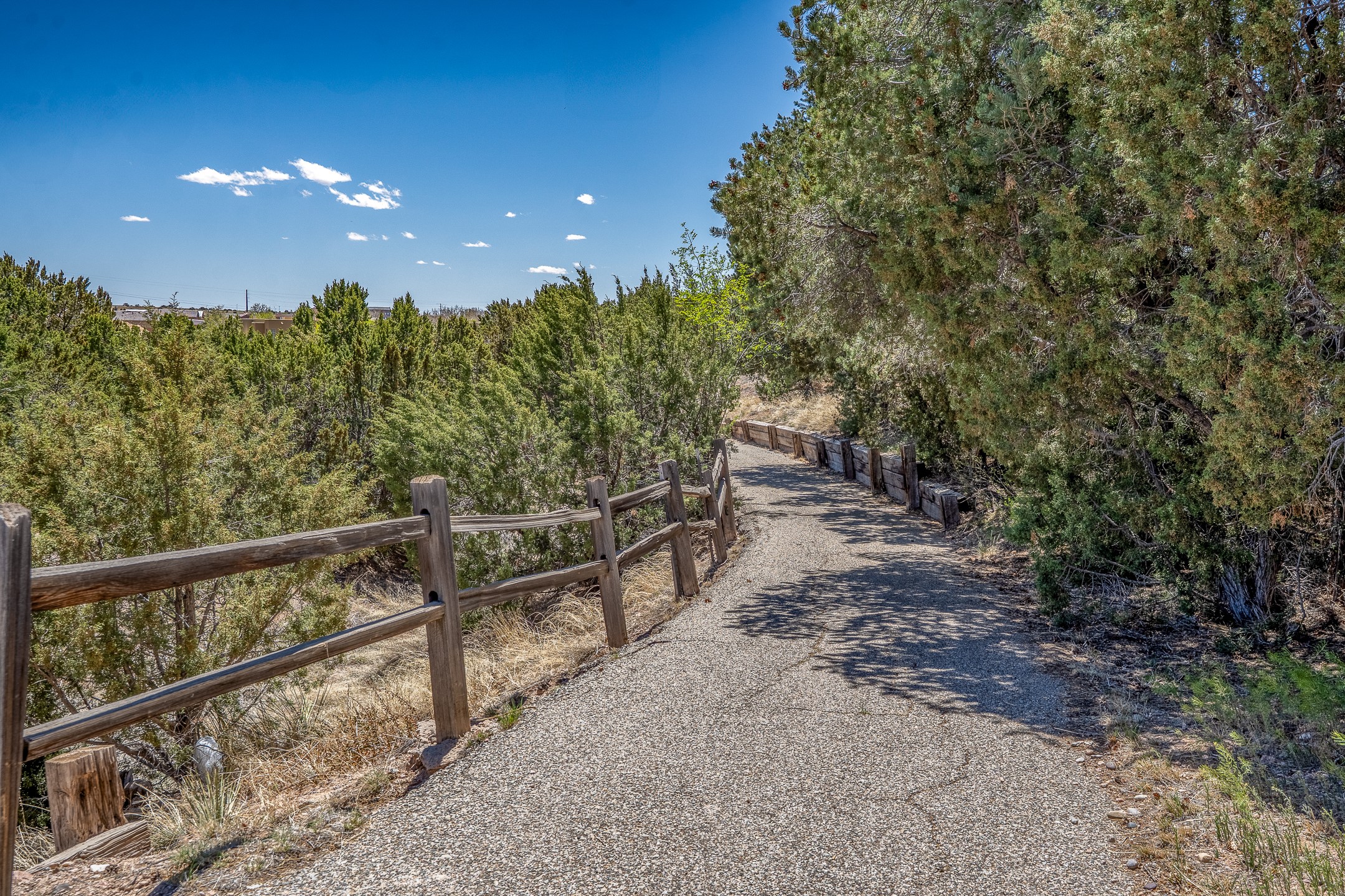 Southwestern Elegance in Nava AdeWelcome to this beautifully crafted 3-bedroom + flex room, 2.5-bath home located in the desirable Nava Ade community--known for its thoughtful design and exceptional lifestyle amenities that was once a model home. With over 2,000 square feet of living space, this Pueblo/Territorial-style residence blends timeless Southwestern character with modern updates and eco-conscious features.Inside, you'll find high ceilings with wood beams, two cozy fireplaces, and two spacious living areas that offer warmth and versatility. Elegant travertine stone and wood flooring flow throughout, adding texture and sophistication. The flex room is ideal for a home office, studio, or guest space, while the formal dining area and kitchen--with newer stainless steel appliances--make everyday living and entertaining a breeze.Situated on an extra-large lot with open spaces behind and walking paths on one side, the home is surrounded by beautifully landscaped xeriscape gardens with drip irrigation--perfectly suited to Santa Fe's climate. The freestanding two-car garage provides added convenience and flexibility. Additional upgrades include newer windows and patio doors (2018), a recently replaced roof system, and a fully owned solar energy system for enhanced energy efficiency.Nava Ade offers parks, walking paths, a community pool, and a clubhouse with fitness equipment--creating a vibrant, connected neighborhood you'll love coming home to.Experience the perfect balance of comfort, style, and sustainability in one of Santa Fe's most sought-after communities.