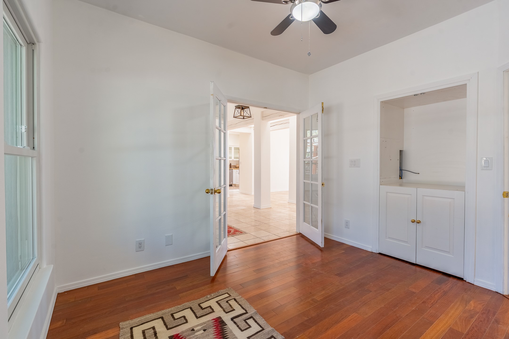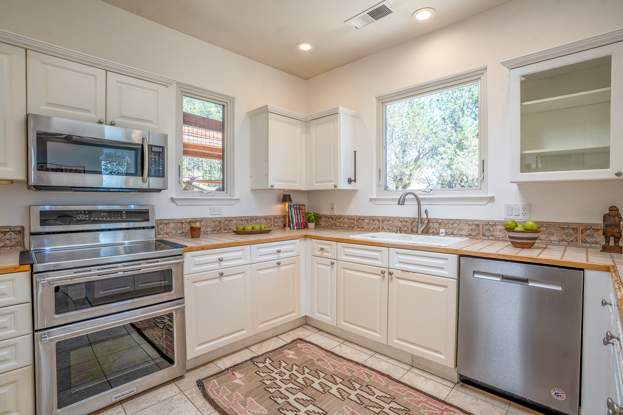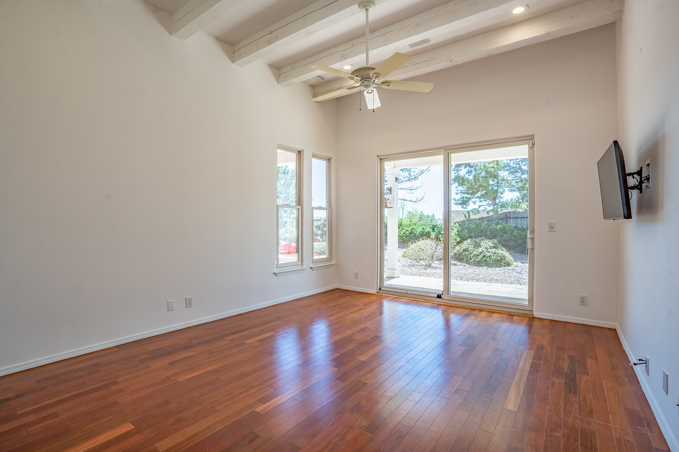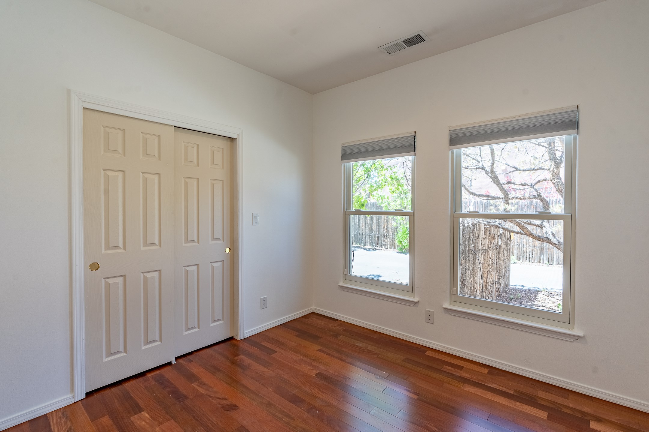 Southwestern Elegance in Nava AdeWelcome to this beautifully crafted 3-bedroom + flex room, 2.5-bath home located in the desirable Nava Ade community--known for its thoughtful design and exceptional lifestyle amenities that was once a model home. With over 2,000 square feet of living space, this Pueblo/Territorial-style residence blends timeless Southwestern character with modern updates and eco-conscious features.Inside, you'll find high ceilings with wood beams, two cozy fireplaces, and two spacious living areas that offer warmth and versatility. Elegant travertine stone and wood flooring flow throughout, adding texture and sophistication. The flex room is ideal for a home office, studio, or guest space, while the formal dining area and kitchen--with newer stainless steel appliances--make everyday living and entertaining a breeze.Situated on an extra-large lot with open spaces behind and walking paths on one side, the home is surrounded by beautifully landscaped xeriscape gardens with drip irrigation--perfectly suited to Santa Fe's climate. The freestanding two-car garage provides added convenience and flexibility. Additional upgrades include newer windows and patio doors (2018), a recently replaced roof system, and a fully owned solar energy system for enhanced energy efficiency.Nava Ade offers parks, walking paths, a community pool, and a clubhouse with fitness equipment--creating a vibrant, connected neighborhood you'll love coming home to.Experience the perfect balance of comfort, style, and sustainability in one of Santa Fe's most sought-after communities.