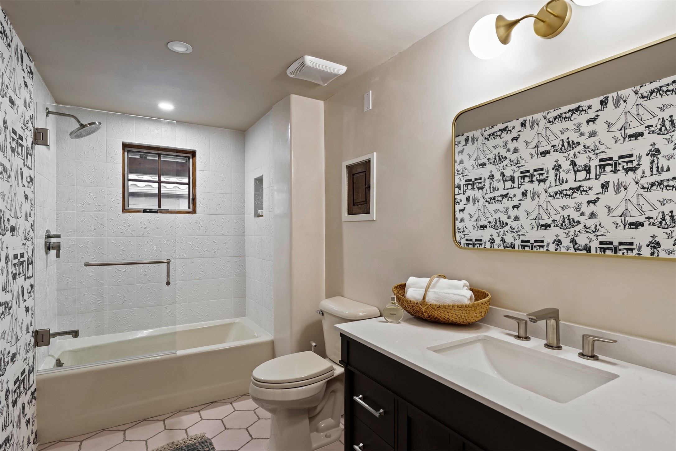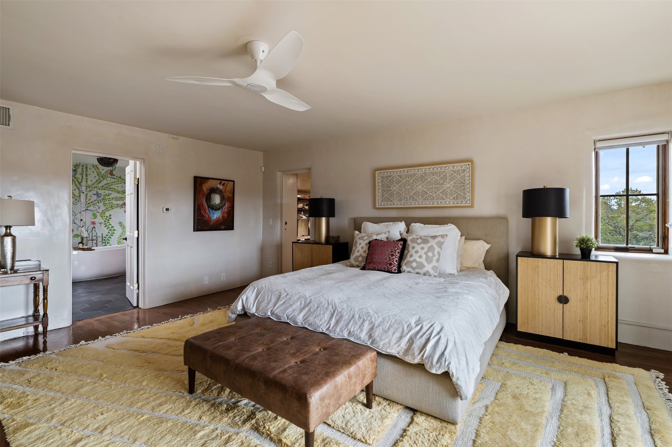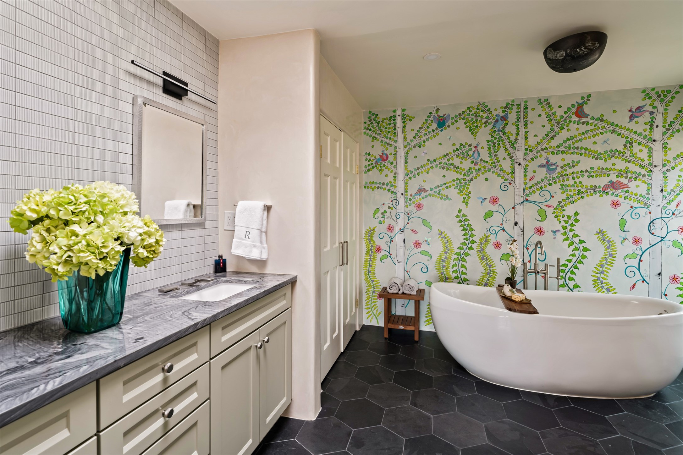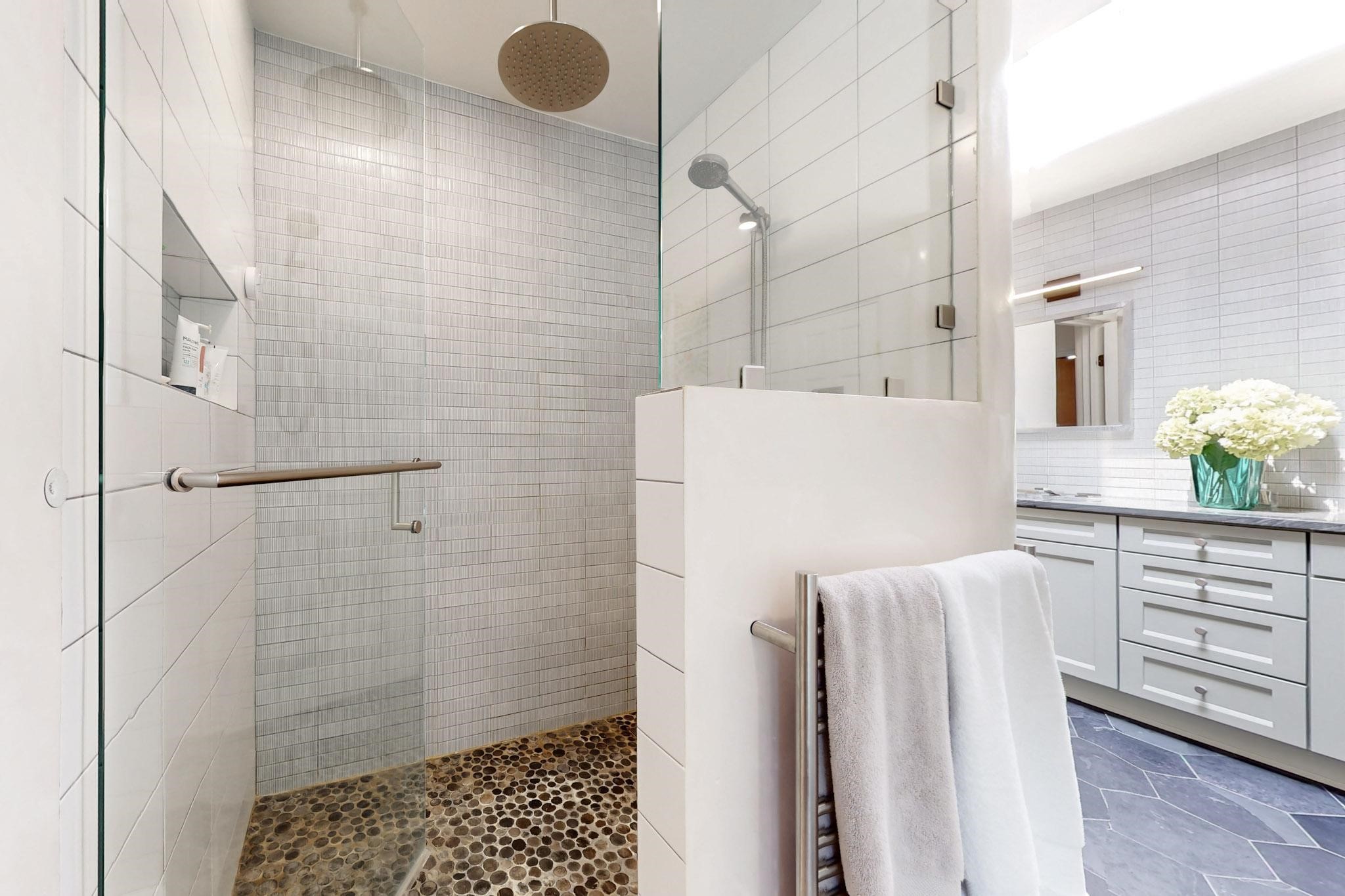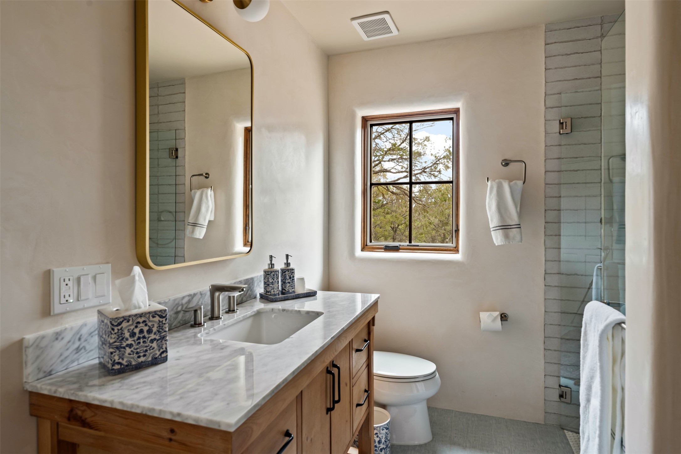 Beautiful, extensively remodeled, classic Santa Fe style home with jaw dropping panoramic mountain views on 3.4 wooded acres. Located on prestigious Circle Drive a mere 5 minute drive to downtown Santa Fe, this sensational home, built in 1936, impresses at every turn starting with the custom hand crafted iron gate, down the drive to a partially covered front entry courtyard leading to the front door and into a hallway of glistening diamond plaster walls that are throughout the house as, mostly, are the oak floors. Ahead is the spacious library/den with kiva fireplace. Through thick walled arches off the library is the formal living room beyond with its central fireplace and flanking windows and the 2 sets of French doors to bring in the light and the views; and boasting high ceilings with majestic corbels and vigas. The gourmet kitchen is entirely new with its own wet/coffee bar and nearby is an enormous pantry. Off the kitchen is a grand, heated portal and terrace to drink in the views and glory in the sunsets. The 3 bedroom suites are generously sized with remodeled bathrooms and each with glass doors to the outside. The closet in the primary bedroom is a wonder to behold and has its own washer and dryer. The 4th bedroom, currently set up as an office, is newly built and has some of the best views. A downstairs flex room (was a bedroom) is set up for exercise with adjacent laundry room. The heated detached studio nestles in the trees off the driveway and has multiple uses or, with adaption, could be another garage. A luxury home worthy of the name!